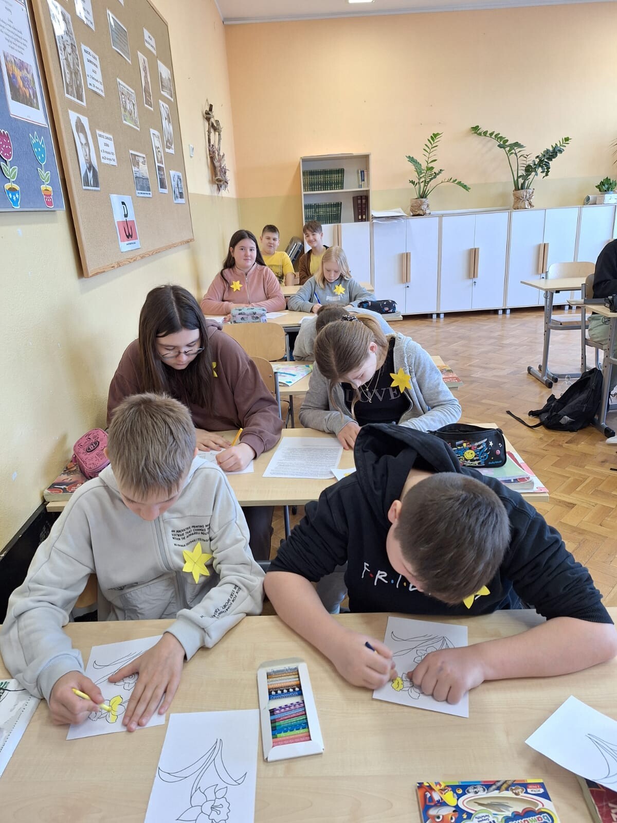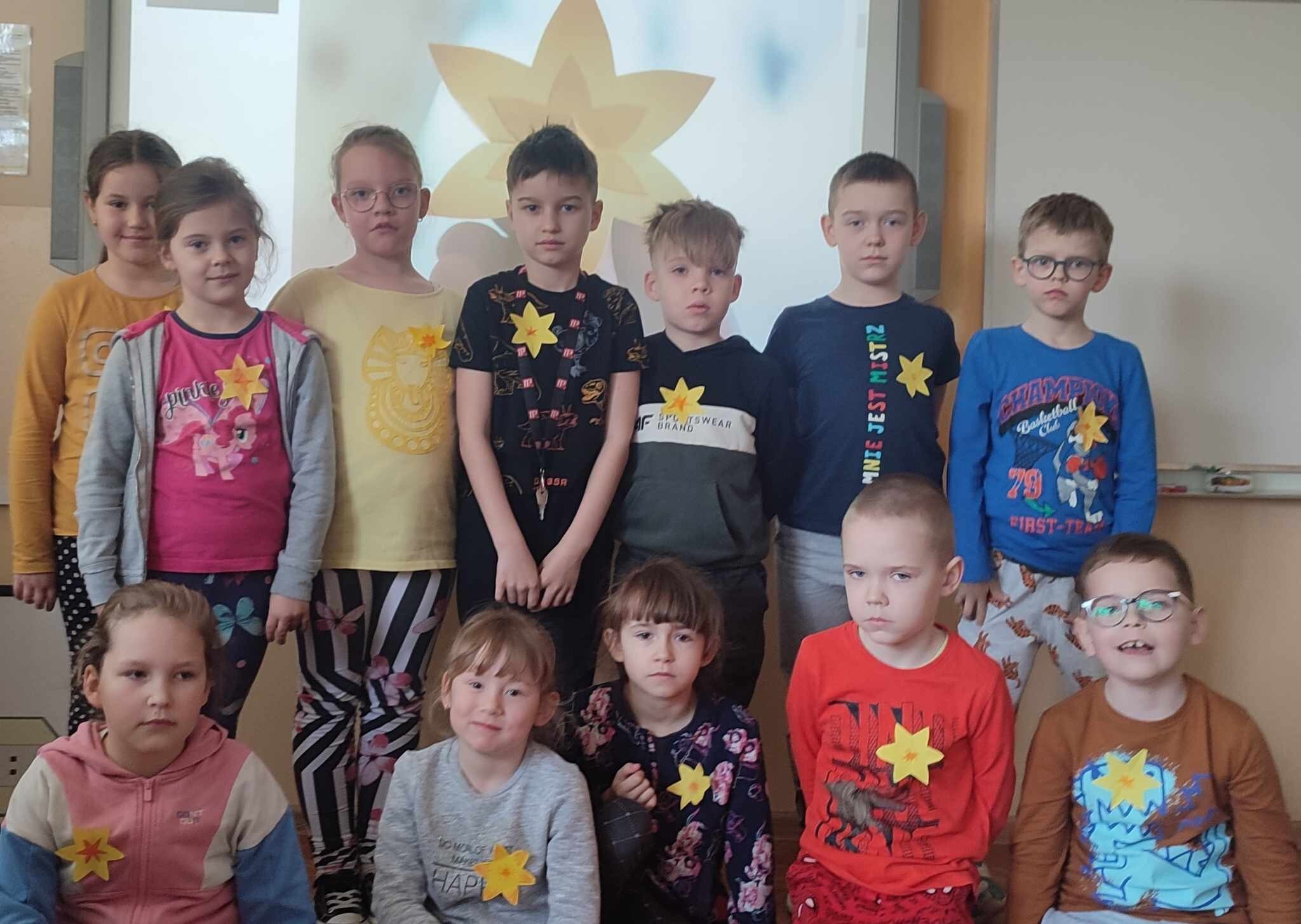 Również uczniowie z klas I – III oraz przedszkola wzięli udział w tej akcji, przypinając żółtego żonkila.