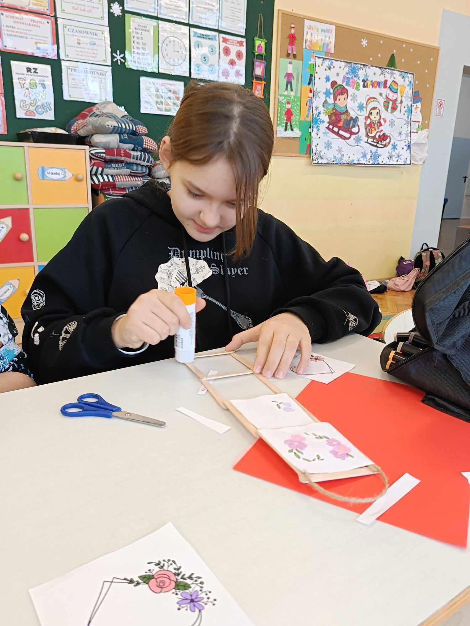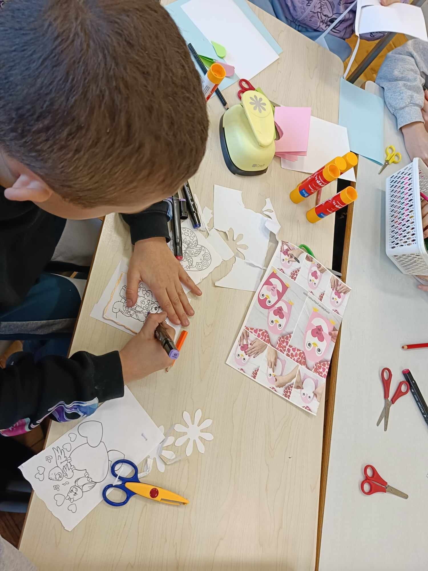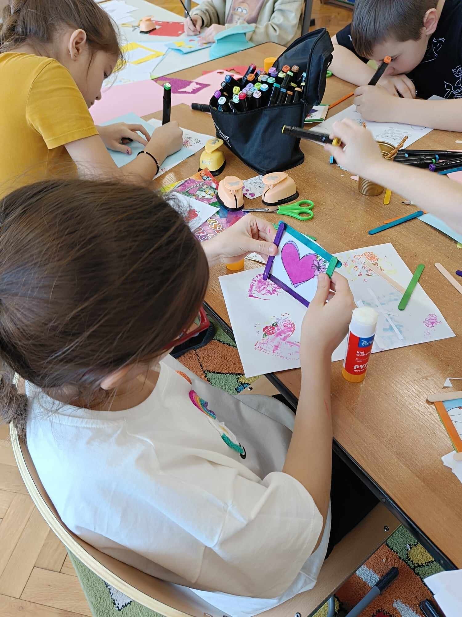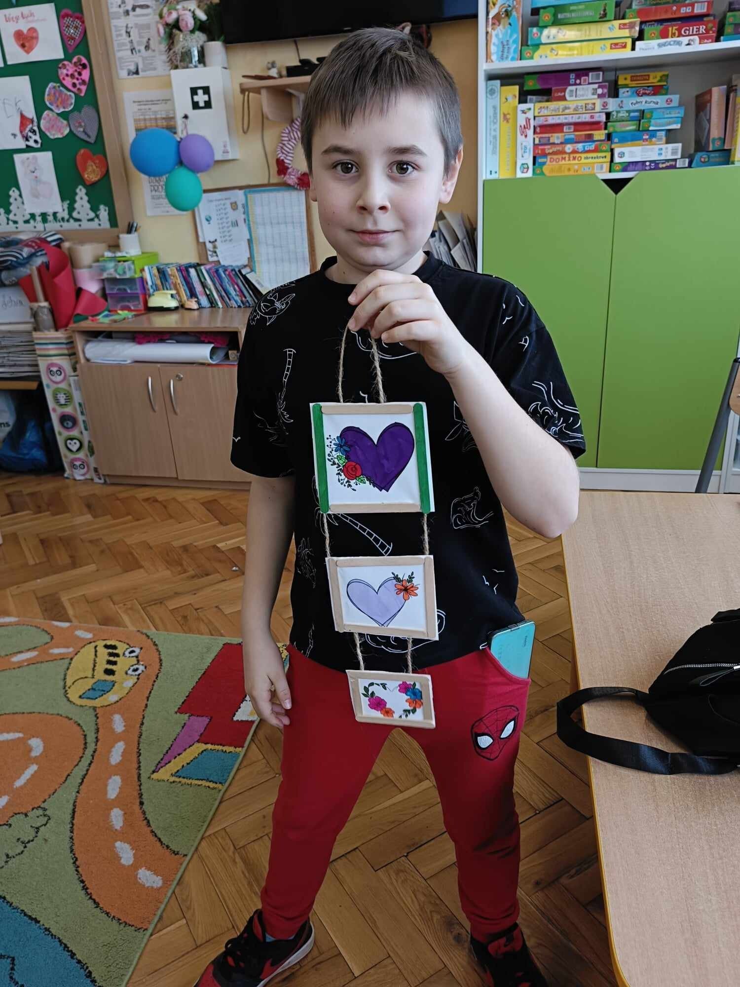 Czwarty dzień ferii na zajęciach plastycznych minął pod hasłem: walentynki. Dzieci oprócz kartek walentynkowych tworzyły także obrazki w ramkach z wykorzystaniem drewnianych patyczków. Nie zabrakło także zabawy integracyjnych, które świetnie pogłębiły relacje rówieśnicze. Na zajęciach sportowych dalsza część integracji poprzez zabawy zespołowe, a później ulubiona gra wszystkich uczestników ferii – unihokej. Niezastąpione panie z kuchni oprócz pysznego żurku przygotowały także frytki.