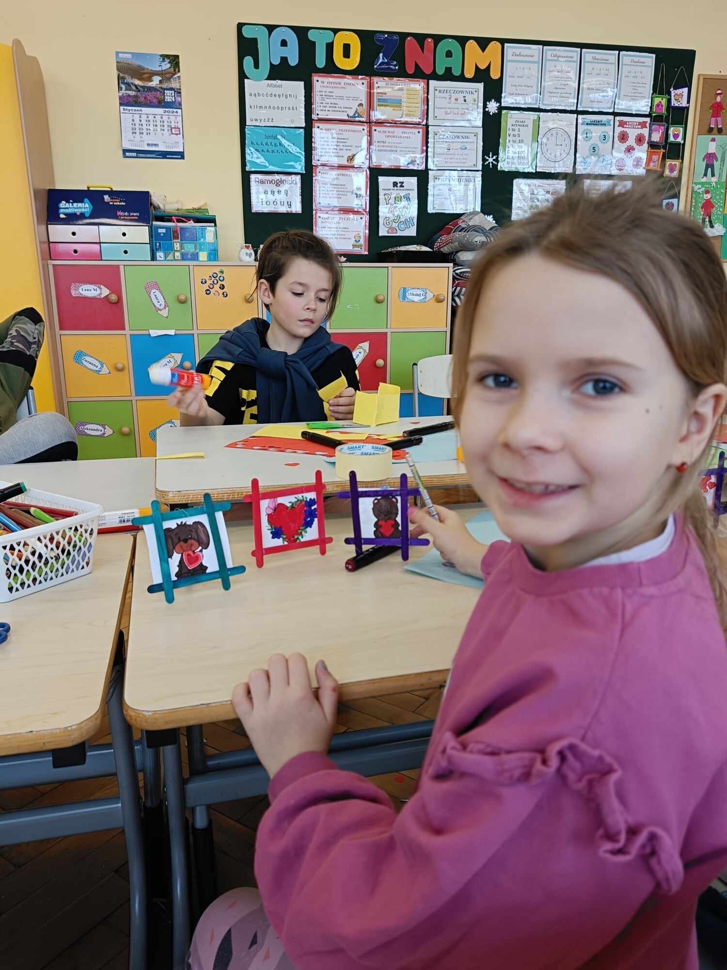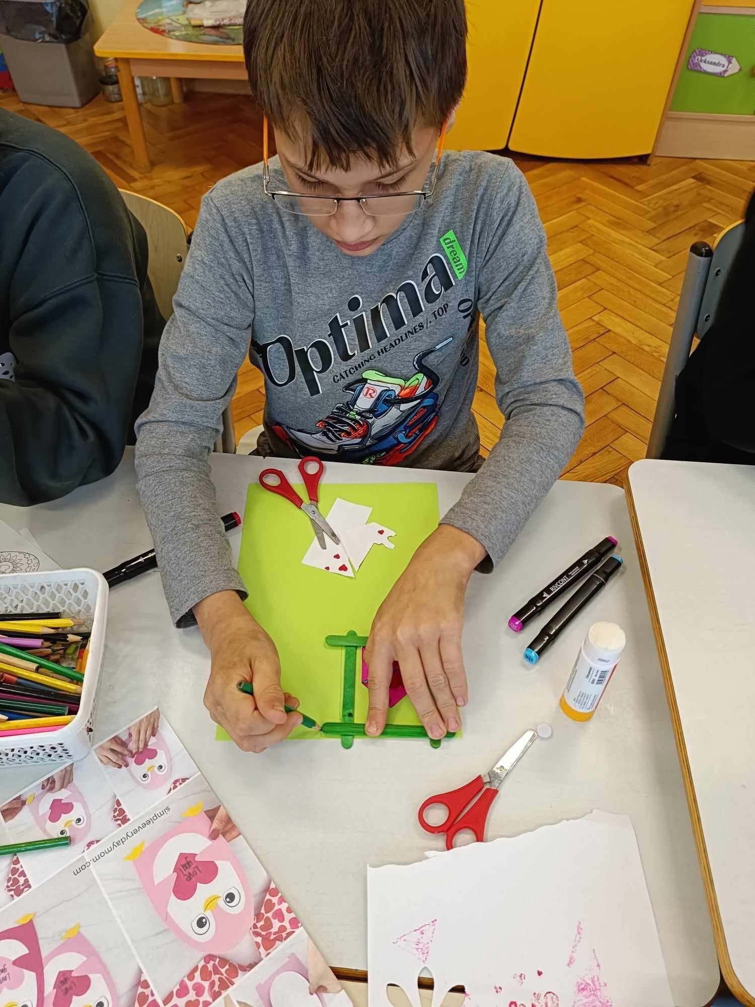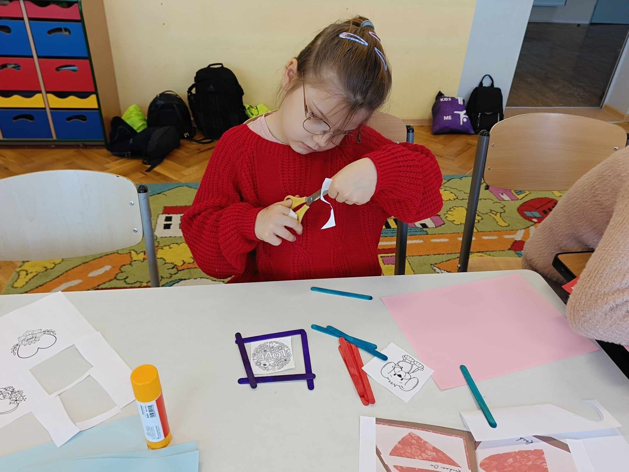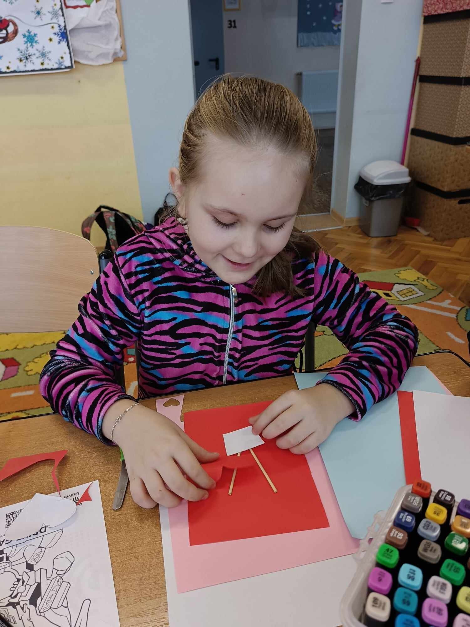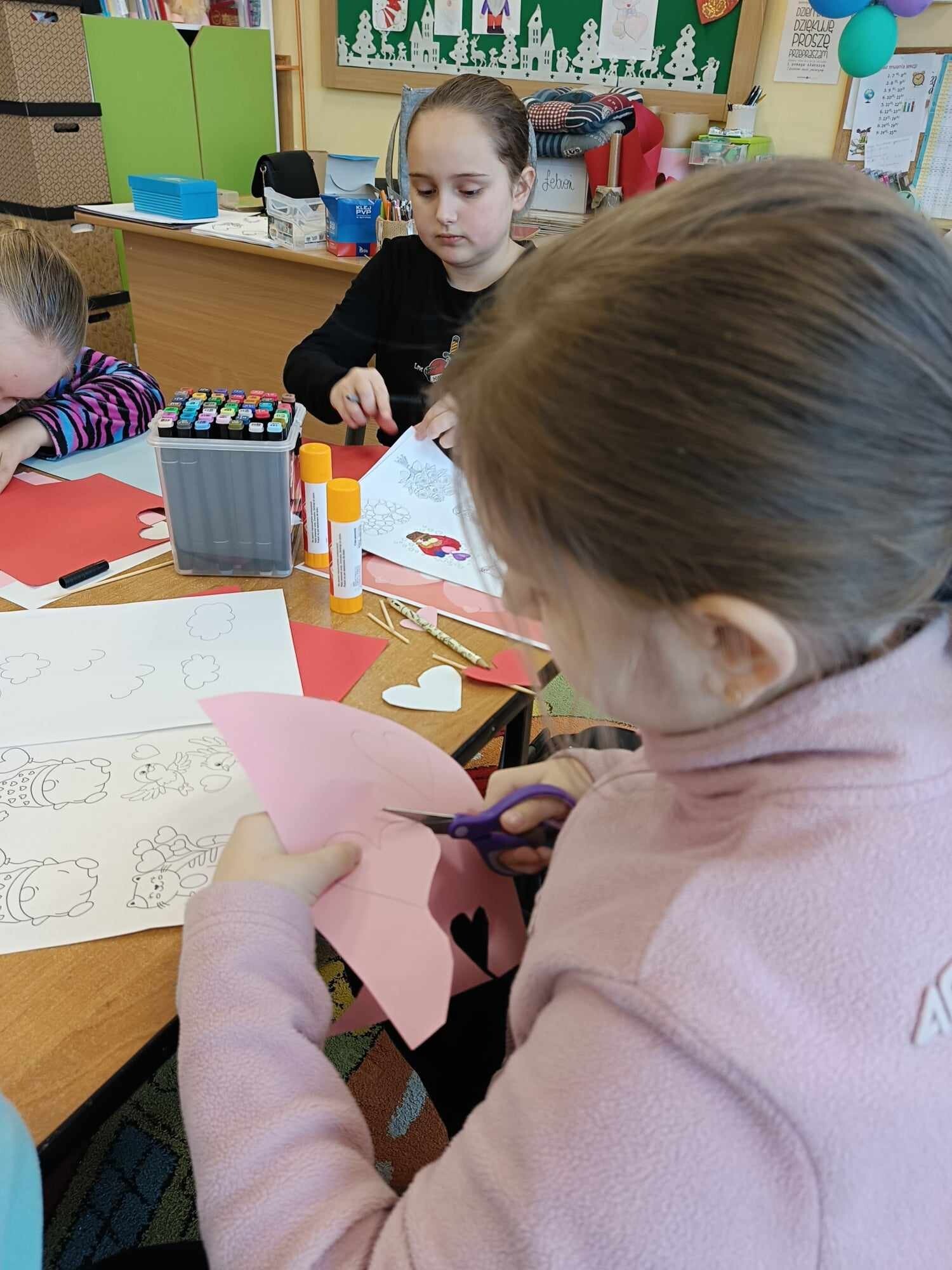 Czwarty dzień ferii na zajęciach plastycznych minął pod hasłem: walentynki. Dzieci oprócz kartek walentynkowych tworzyły także obrazki w ramkach z wykorzystaniem drewnianych patyczków. Nie zabrakło także zabawy integracyjnych, które świetnie pogłębiły relacje rówieśnicze. Na zajęciach sportowych dalsza część integracji poprzez zabawy zespołowe, a później ulubiona gra wszystkich uczestników ferii – unihokej. Niezastąpione panie z kuchni oprócz pysznego żurku przygotowały także frytki.