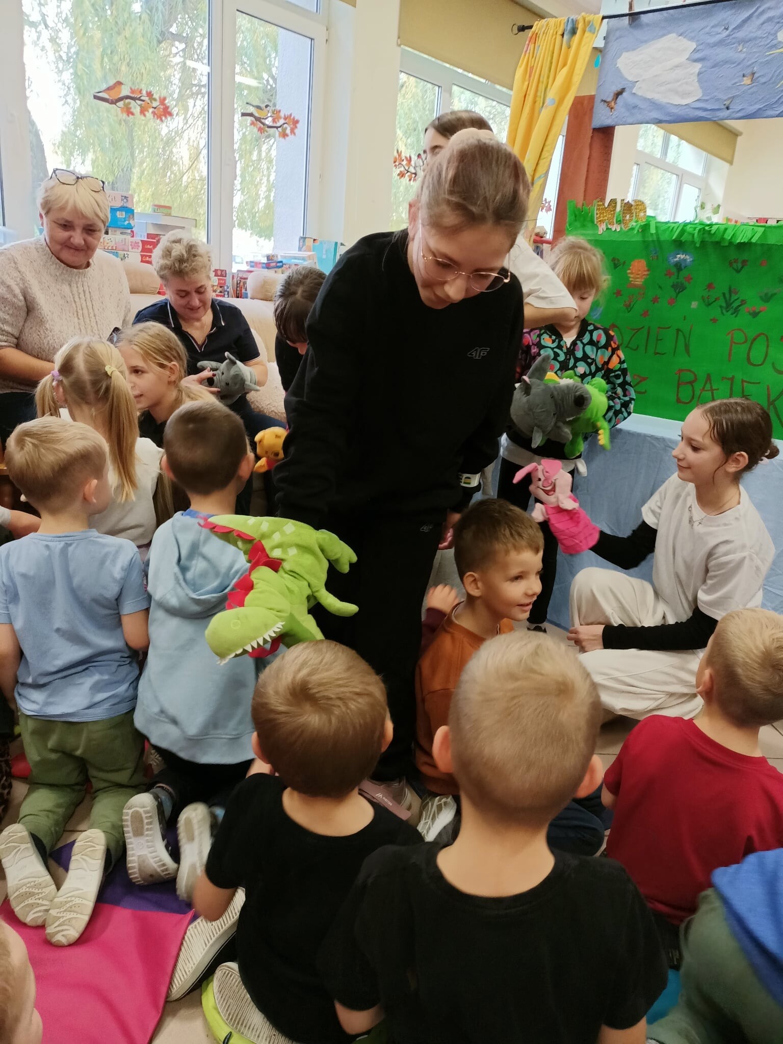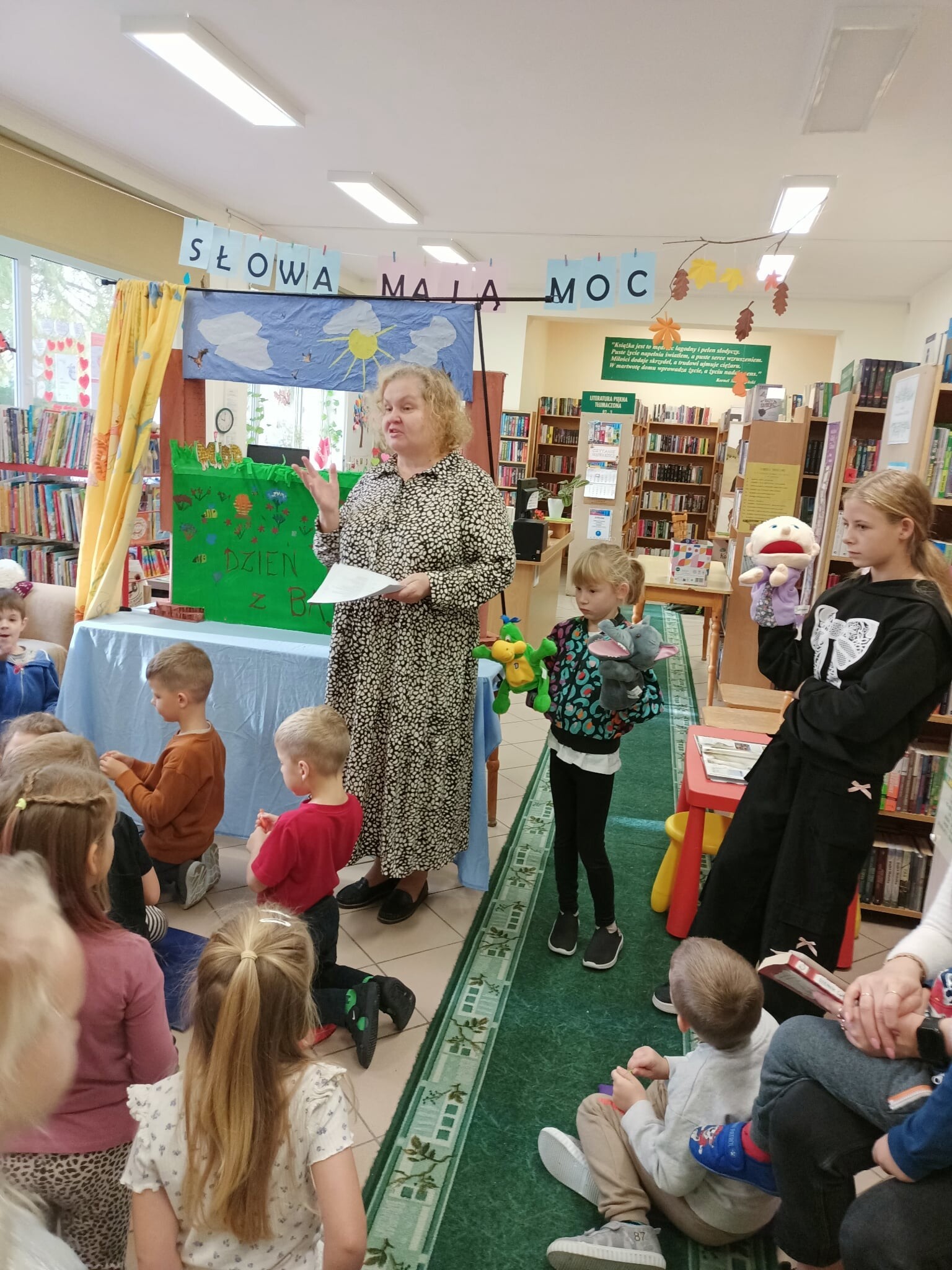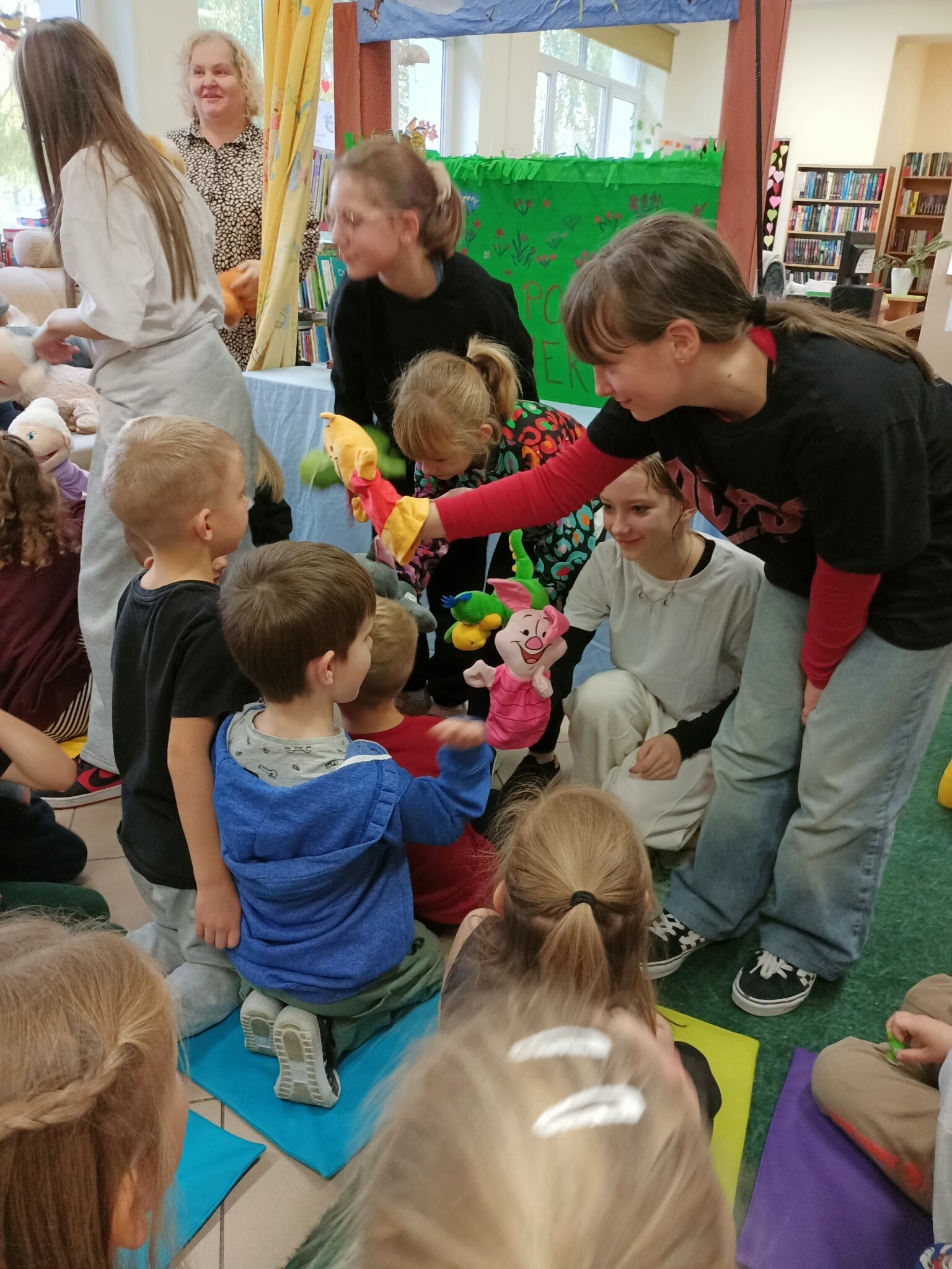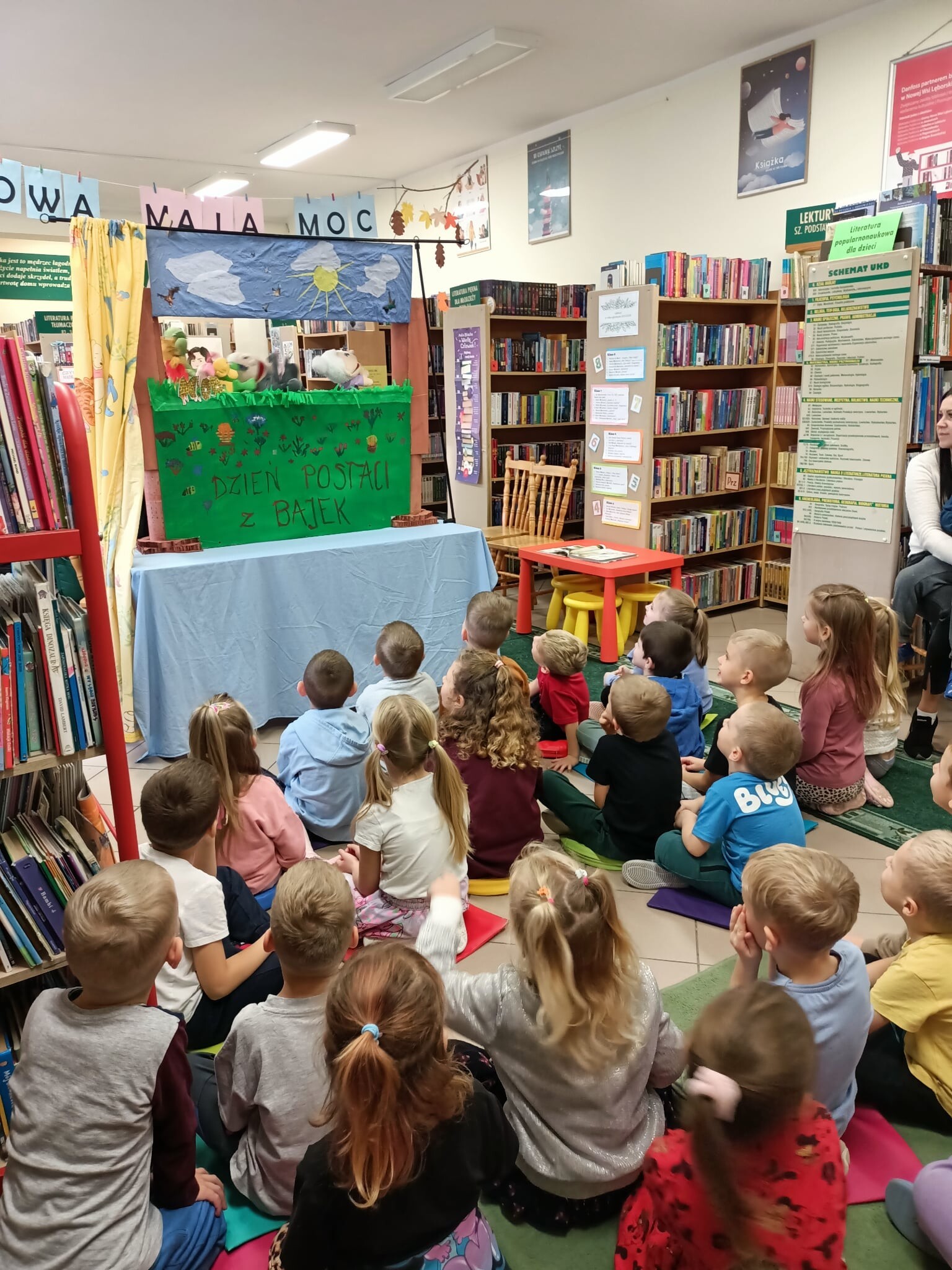 6 listopada Biblioteka gościła Calineczki, Koty w Butach, Czerwone Kapturki, królewny, księżniczki, a także superbohaterów i wiele innych postaci. Aby zachęcić najmłodszych do czytania bajek zaprosiliśmy je do obejrzenia przedstawienia przygotowanego według scenariusza pani Kasi z Biblioteki Publicznej. Postaciom z bajek głosu udzieliły uczennice z klas 3, 5 i 6. Starały się przekonać młodsze koleżanki i kolegów, że ważna jest zgoda i wspólne działanie.