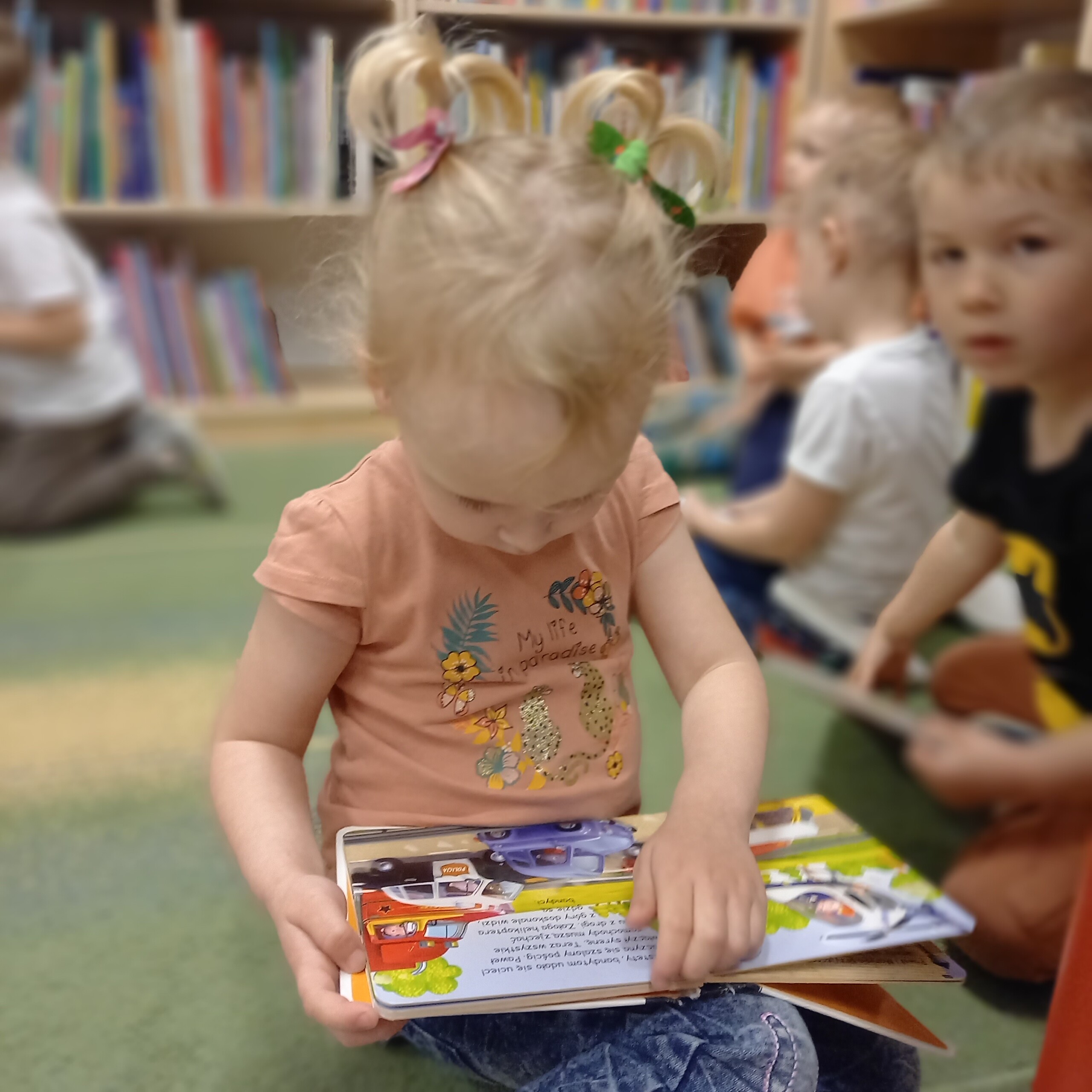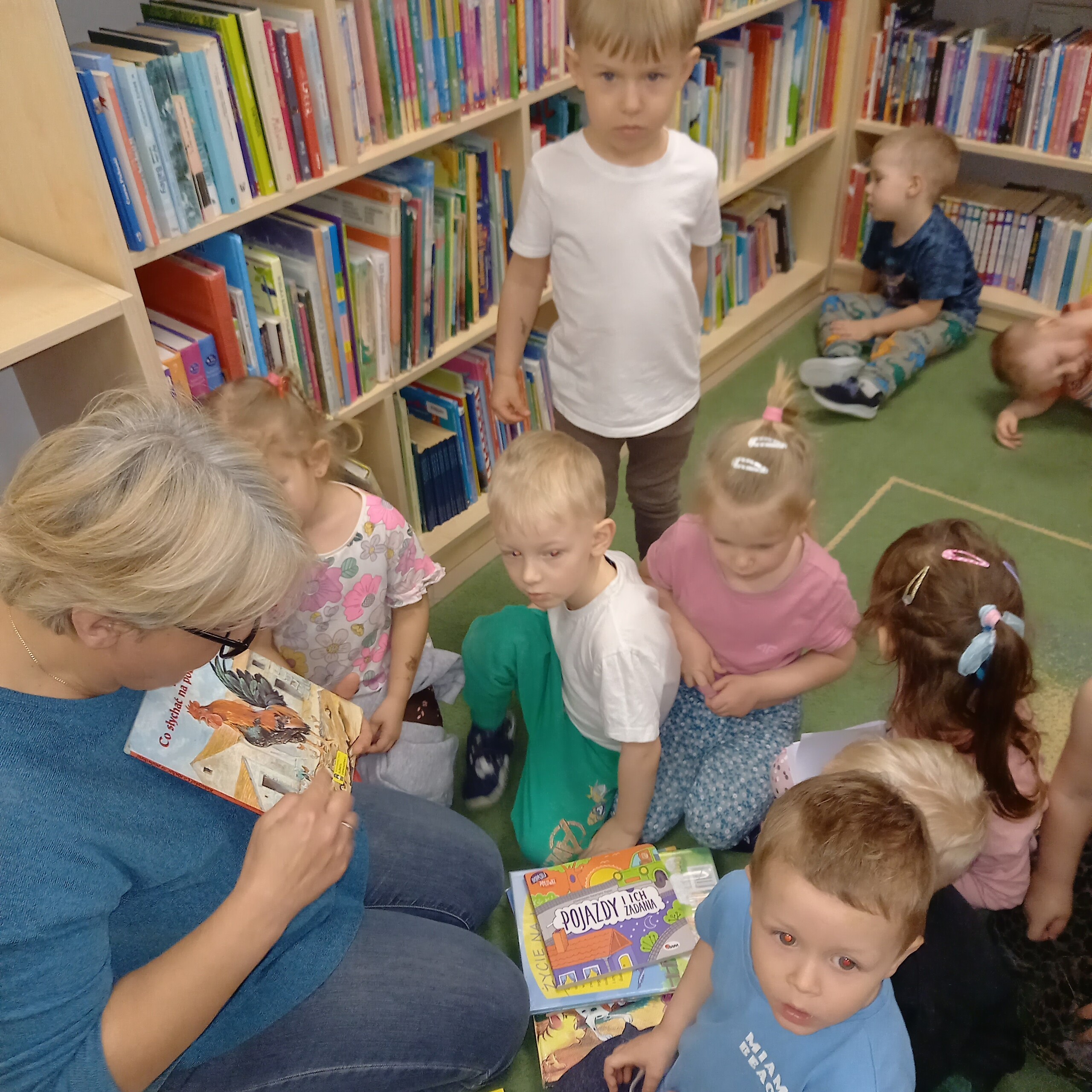 Bajkowe piątki to wieloletnia tradycja biblioteki w Łebieniu. Tym razem dzieci opuściły swą salę, aby w bibliotece posłuchać opowieści i piosenek o tym, co dzieje się na wsi. Starsza grupa wysłuchała czytaną przez panią Kasię historię Misia Tulisia, który bawi się w chowanego. Wszyscy uczestnicy spotkania chętnie oglądali książki, z których największą popularnością cieszyły się te, które mają koła, okienka, pachną i świecą.