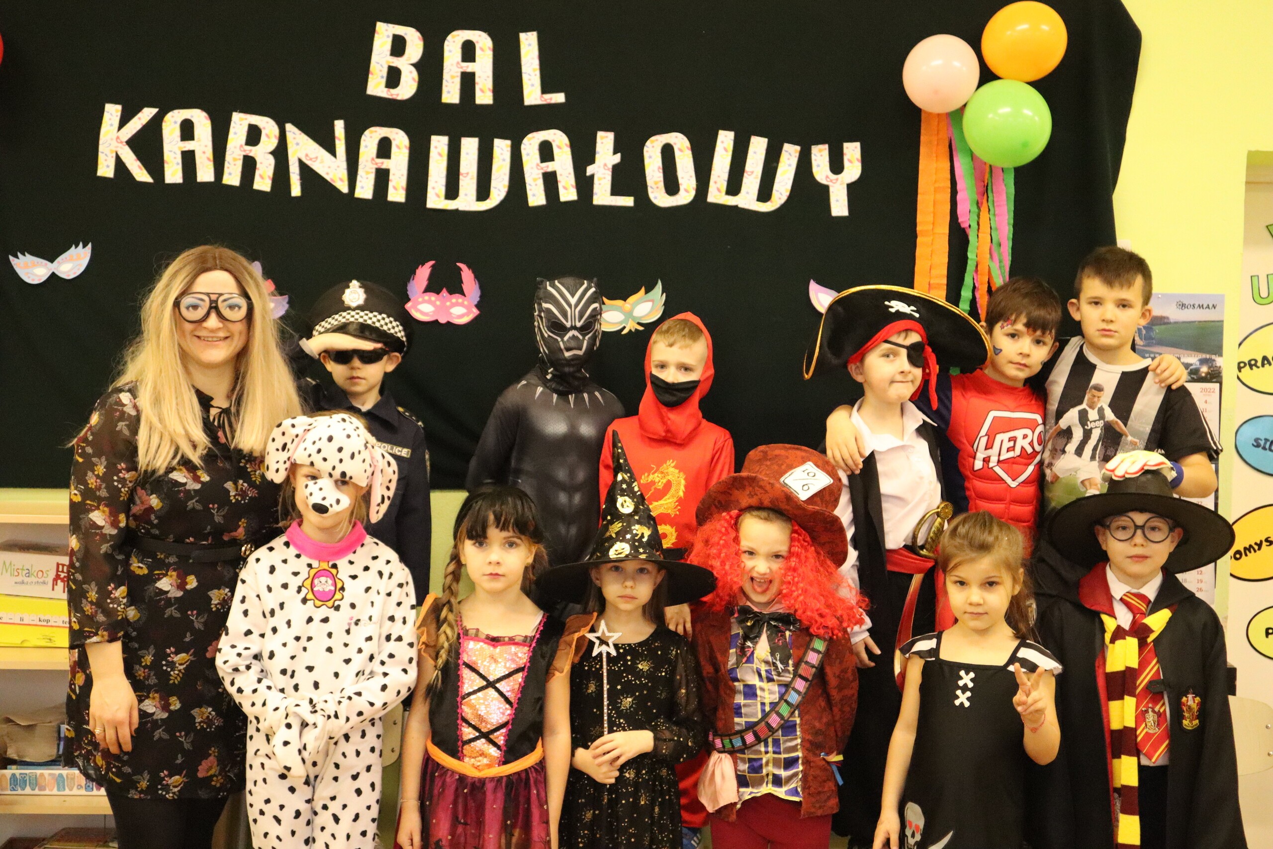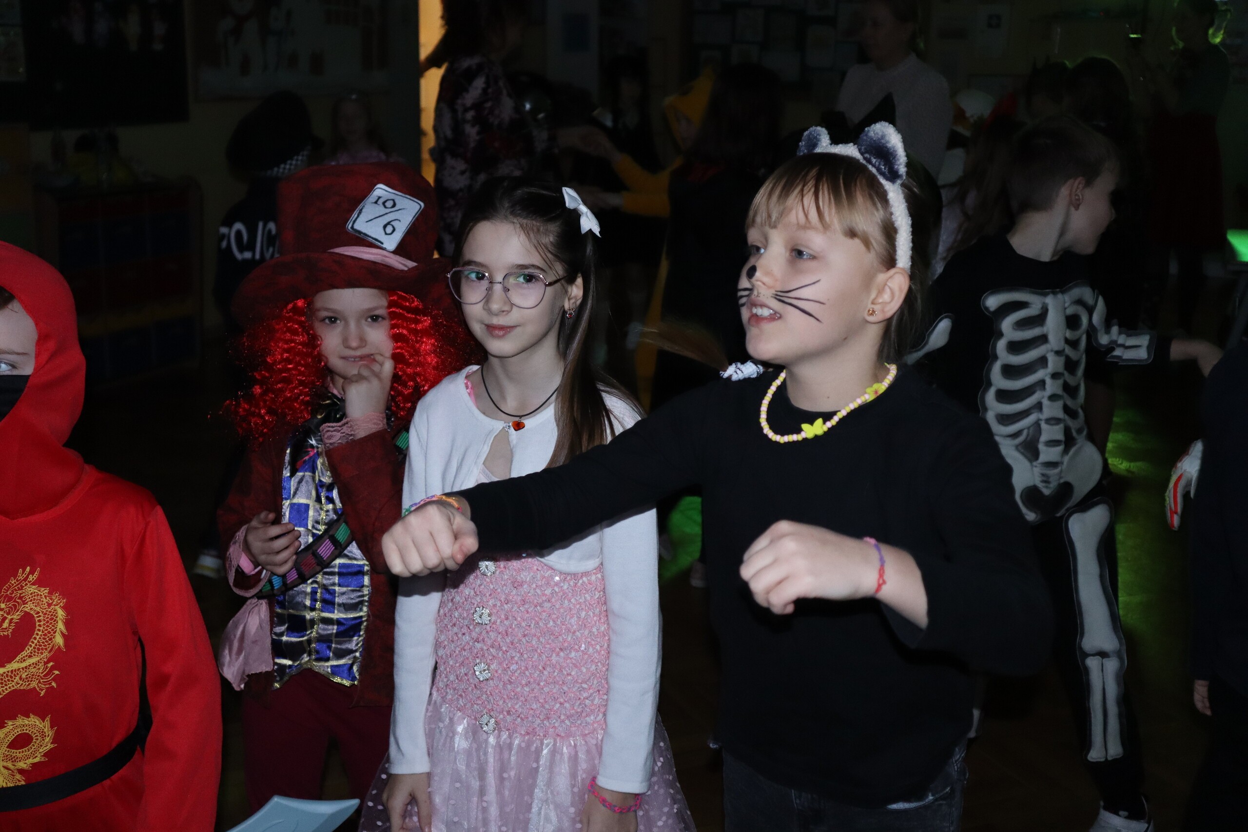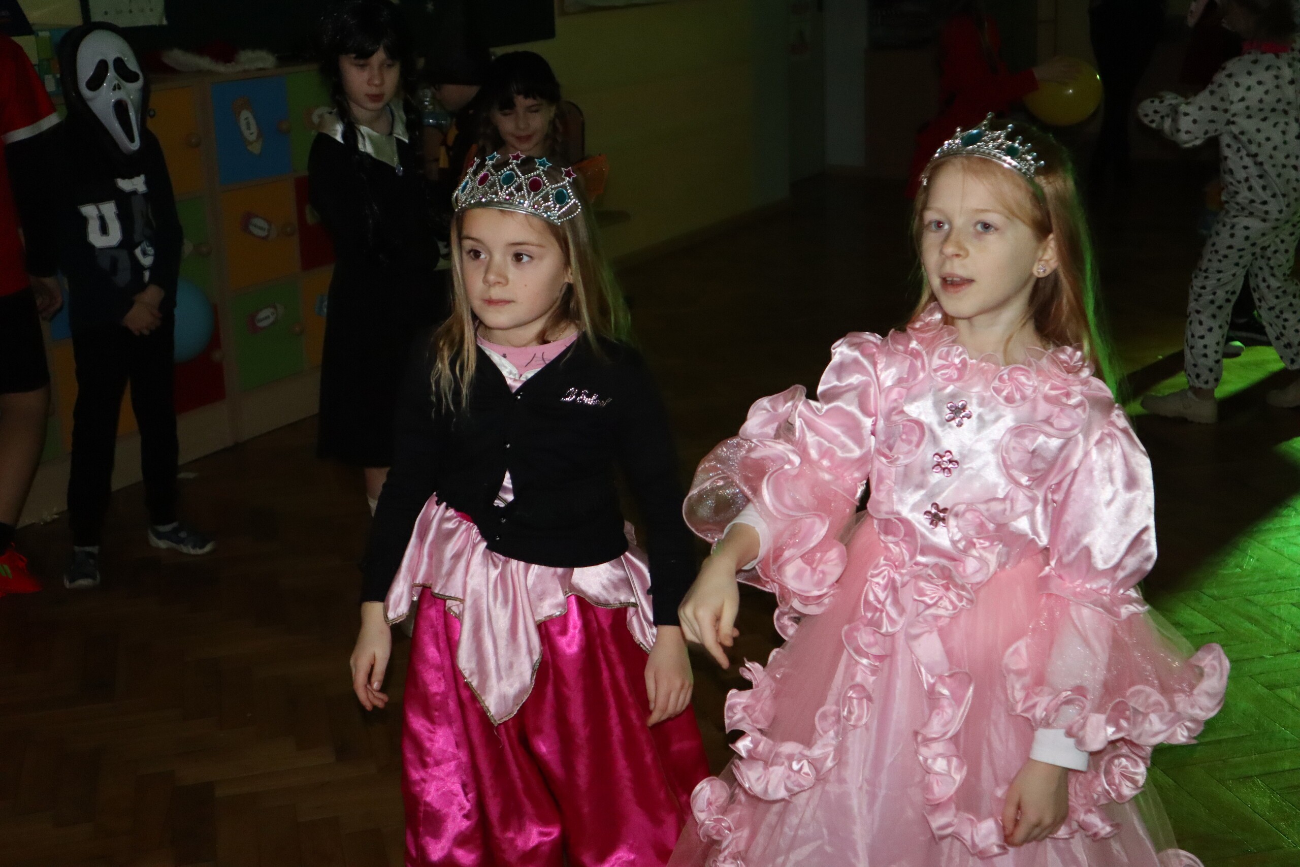 Tego dnia dzieciom towarzyszyło wiele emocji i wrażeń. Na szkolnym korytarzu można było spotkać wróżki, księżniczki, piłkarzy, policjantów oraz wiele innych barwnych postaci. Przy dźwiękach muzycznych hitów uczniowie bawili się znakomicie. Nie zabrakło także słodkiego poczęstunku przygotowanego przez rodziców.
