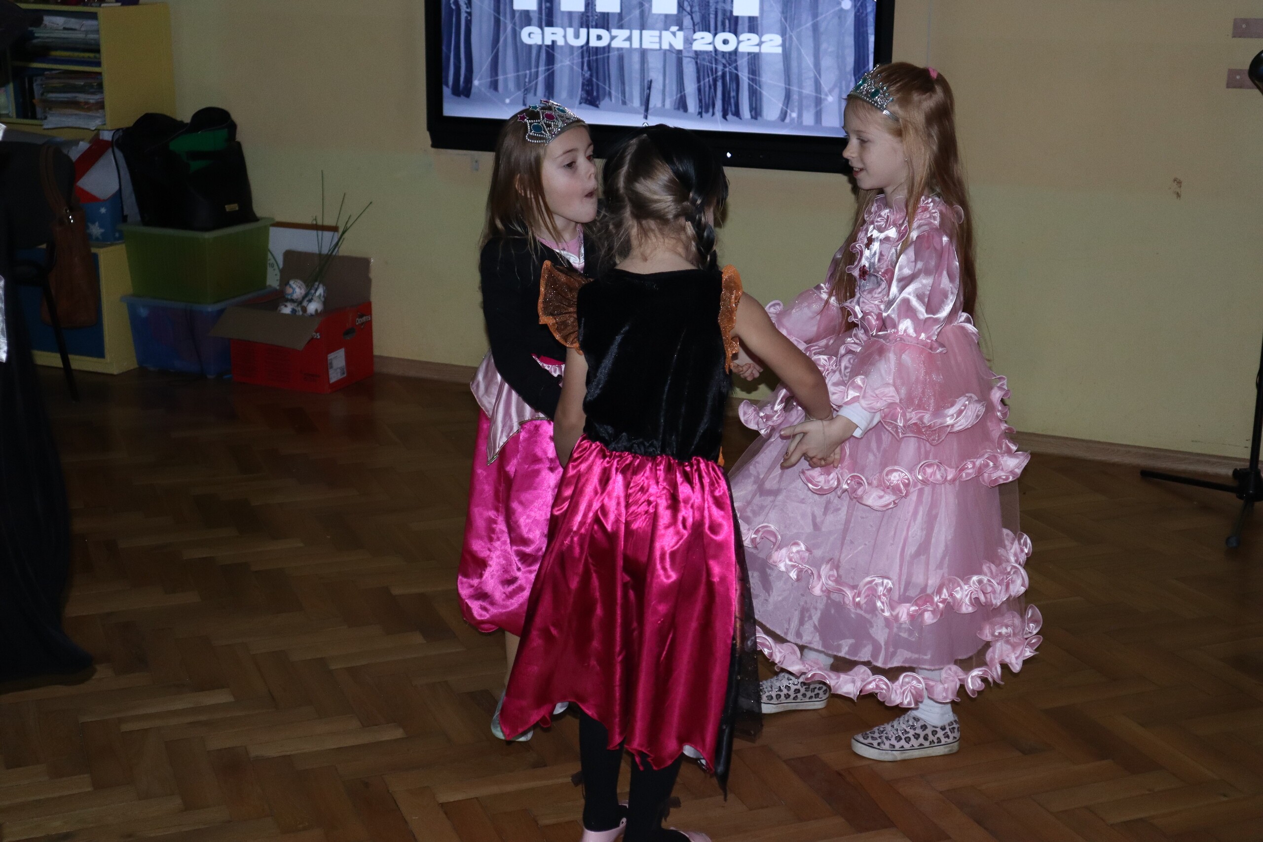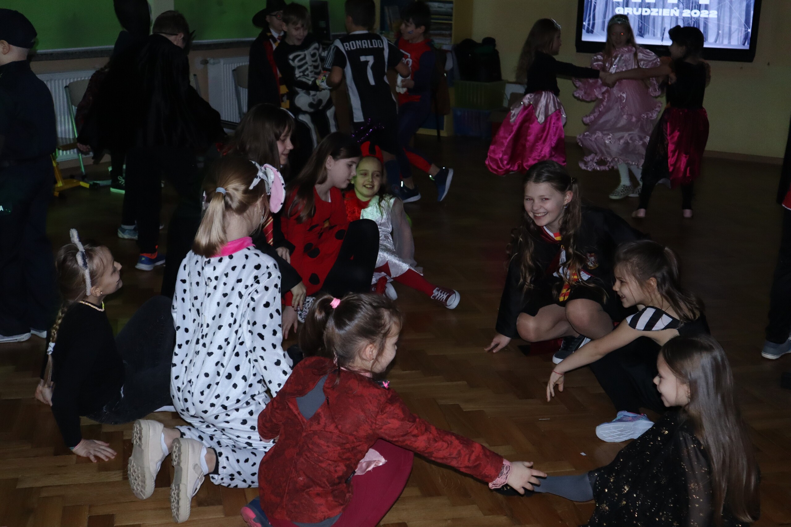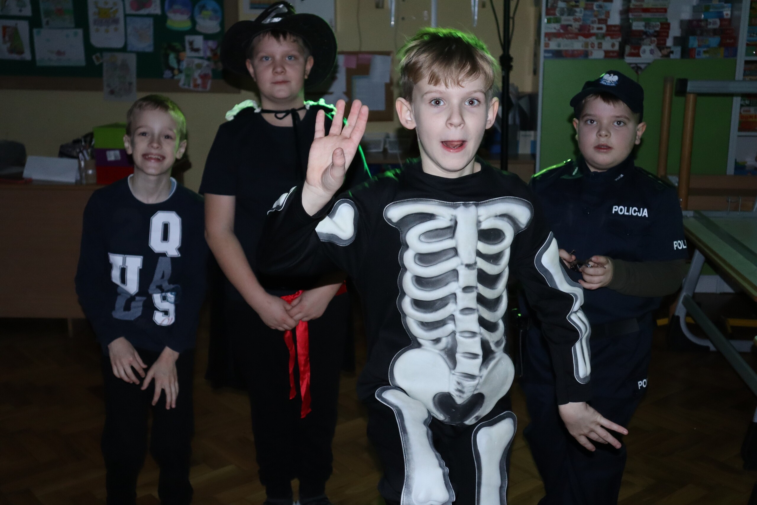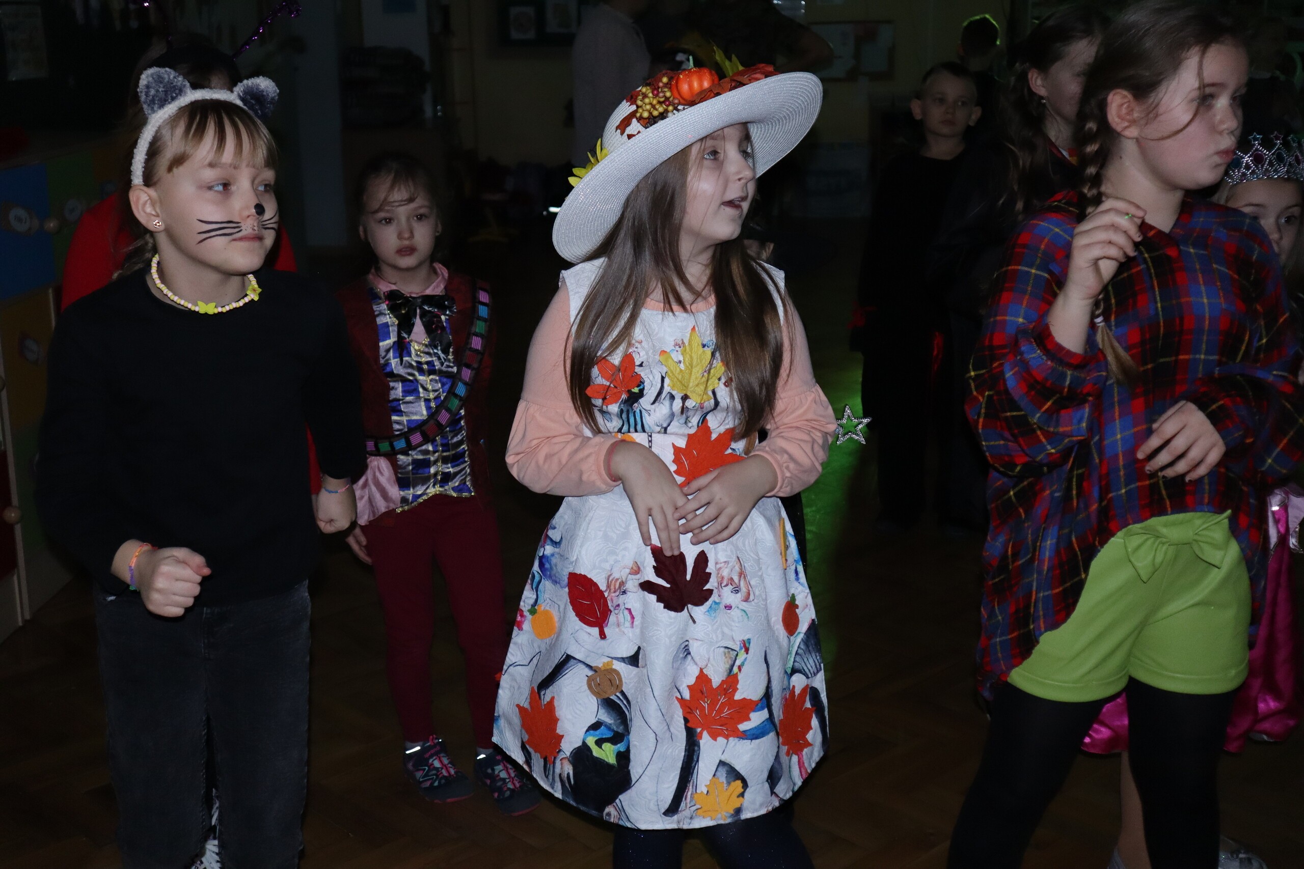 Tego dnia dzieciom towarzyszyło wiele emocji i wrażeń. Na szkolnym korytarzu można było spotkać wróżki, księżniczki, piłkarzy, policjantów oraz wiele innych barwnych postaci. Przy dźwiękach muzycznych hitów uczniowie bawili się znakomicie. Nie zabrakło także słodkiego poczęstunku przygotowanego przez rodziców.