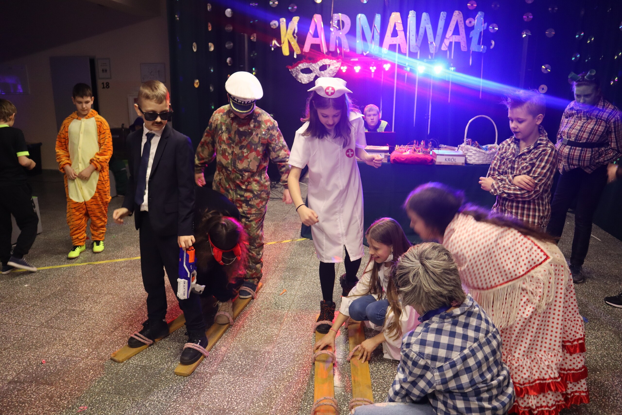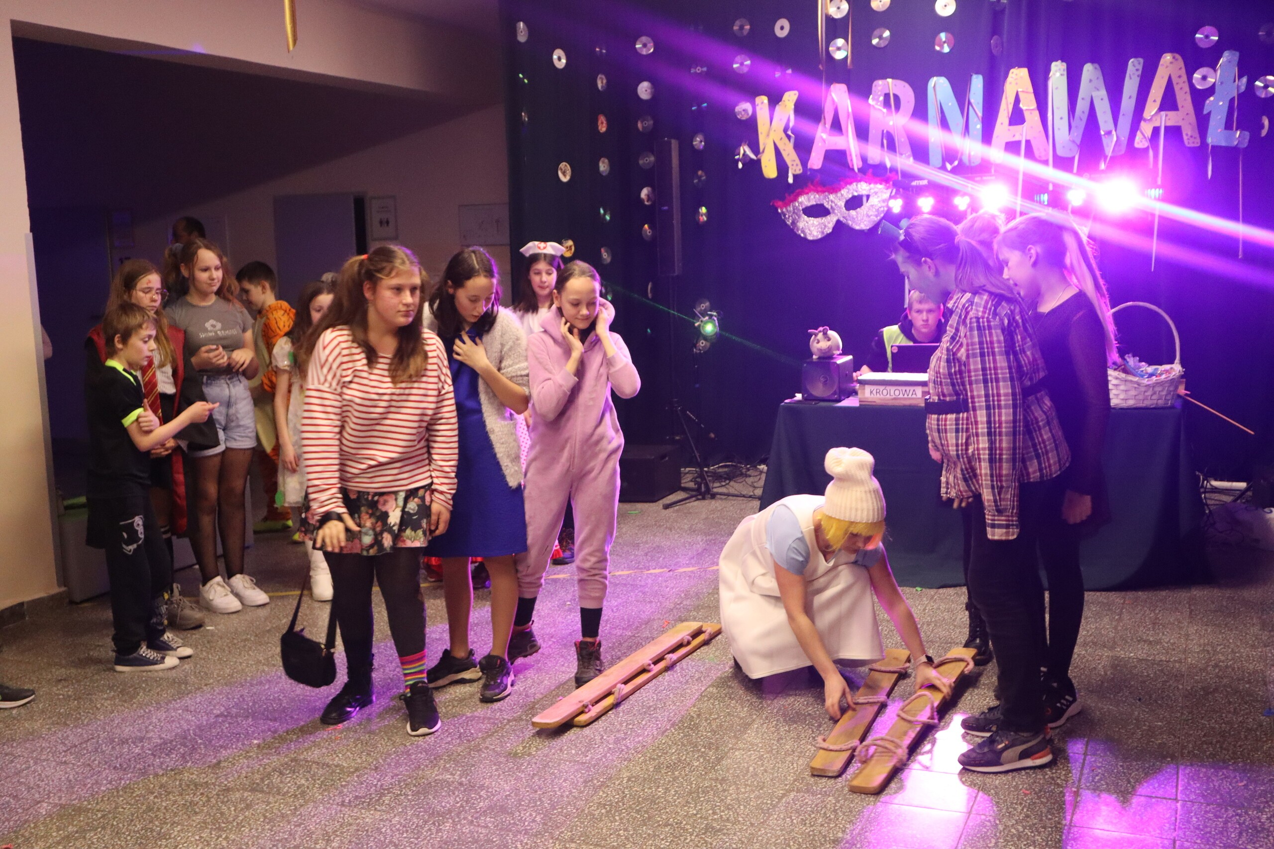 9 lutego w naszej szkole odbył się bal karnawałowy dla uczniów klas IV-VIII. Hol szkoły zamienił się w prawdziwą salę balową. Uczniowie przyodziani w ciekawe, kolorowe kostiumy przeróżnych bohaterów, postaci z bajek i nie tylko bawili się znakomicie przy rytmach różnorodnej muzyki serwowanej przez szkolnego didżeja. Były pociągi, korowody, kółeczka, tańce w parach i wiele konkursów. Wielką atrakcją dla dzieci był wybór króla i królowej balu, każdy uczeń sam nominował swojego faworyta. Po zliczeniu głosów uczniów, królem balu karnawałowego 2023r. został Mikołaj Konysz, a królową Nikola Kowalska. Odbyła się prezentacja strojów karnawałowych. Wyróżniono 5 osób: Shrek: Zuzanna Malek, Fiona: Zuzanna Stanuch, dziecko Shreka: Julia Jaskulska, Agentki FBI: Zofia Brokowska, Anna Sysik, Agent FBI: Filip Burak.
