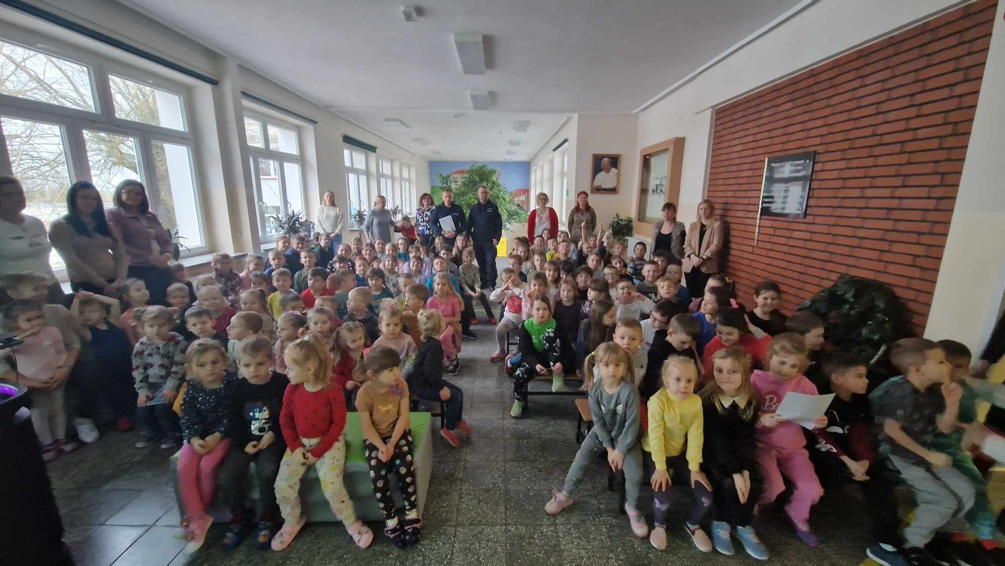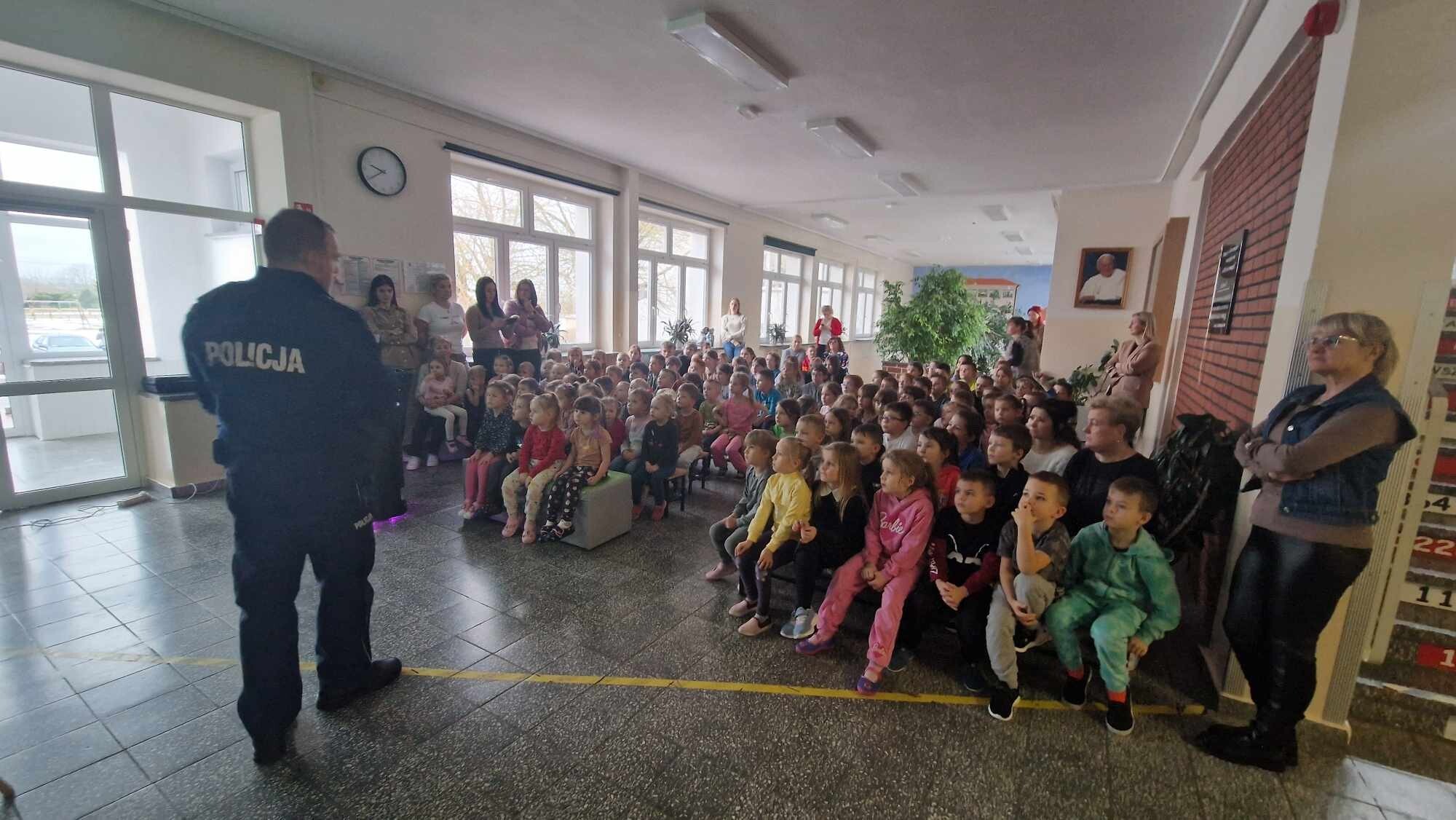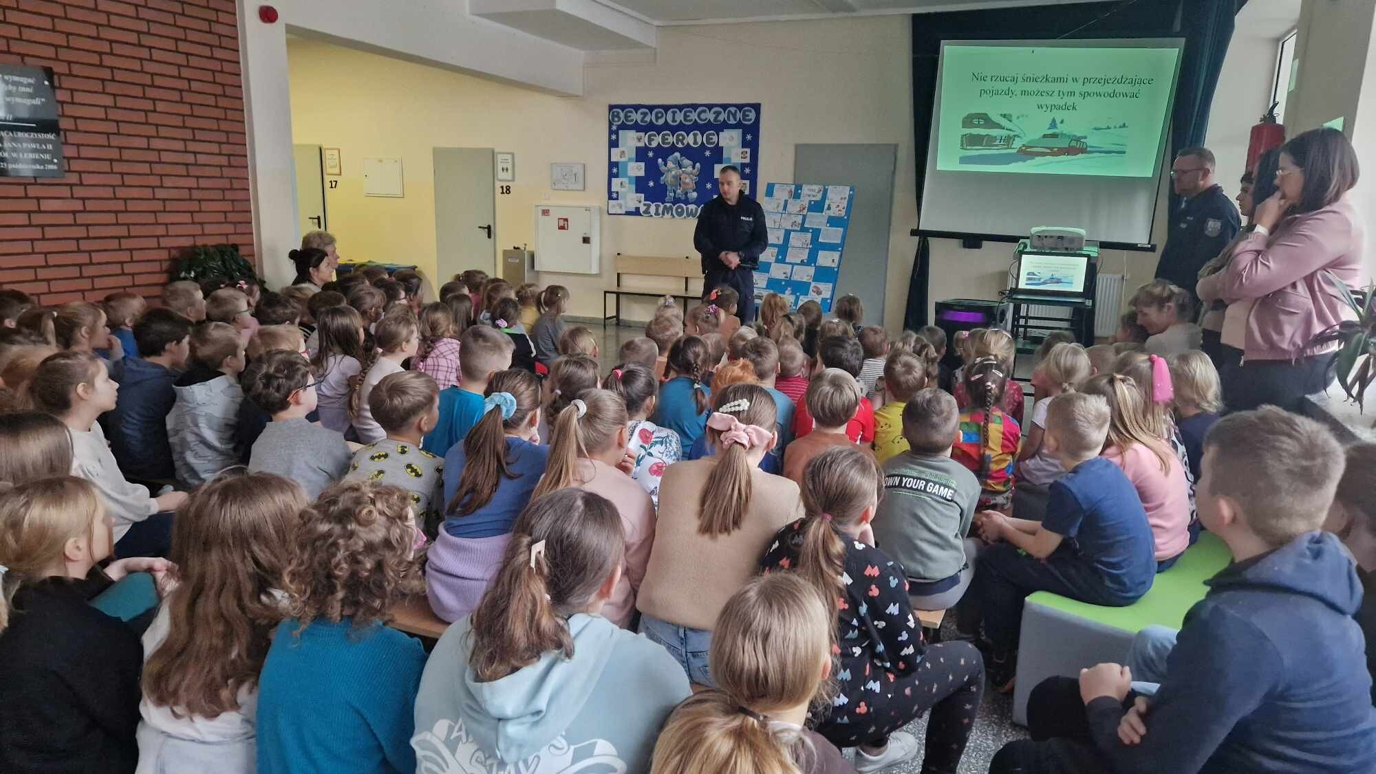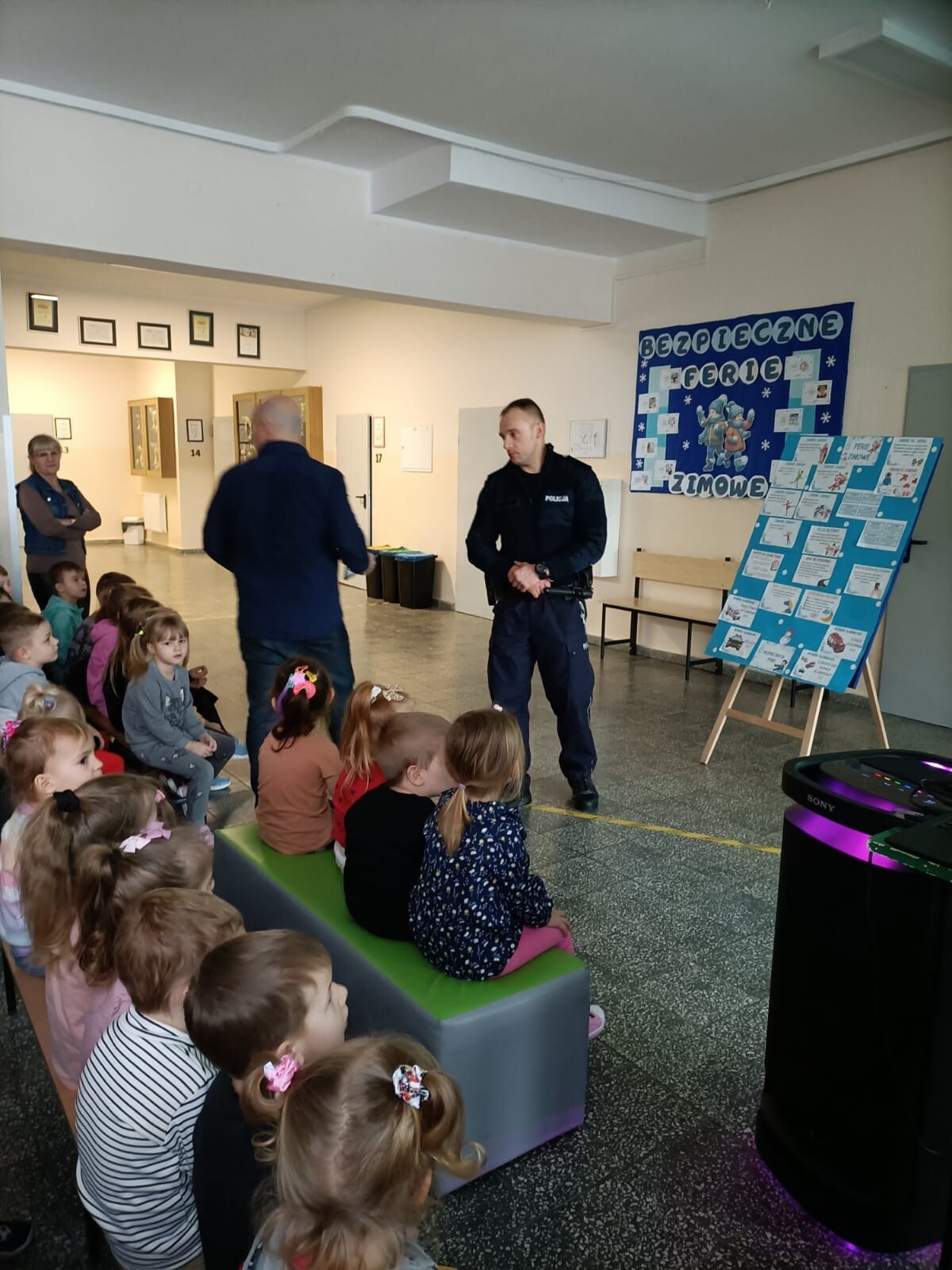 23 stycznia 2024 r. gościliśmy w naszej szkole funkcjonariuszy policji z Komendy Powiatowej Policji w Lęborku. Wizyta była związana ze zbliżającymi się feriami zimowymi. Funkcjonariusze przekazali mnóstwo rad i wskazówek jak bezpiecznie spędzać ferie. Apelowali przede wszystkim o rozważne zachowania podczas zabaw.