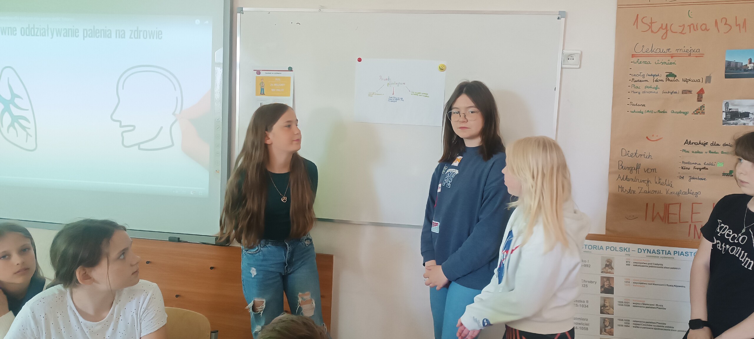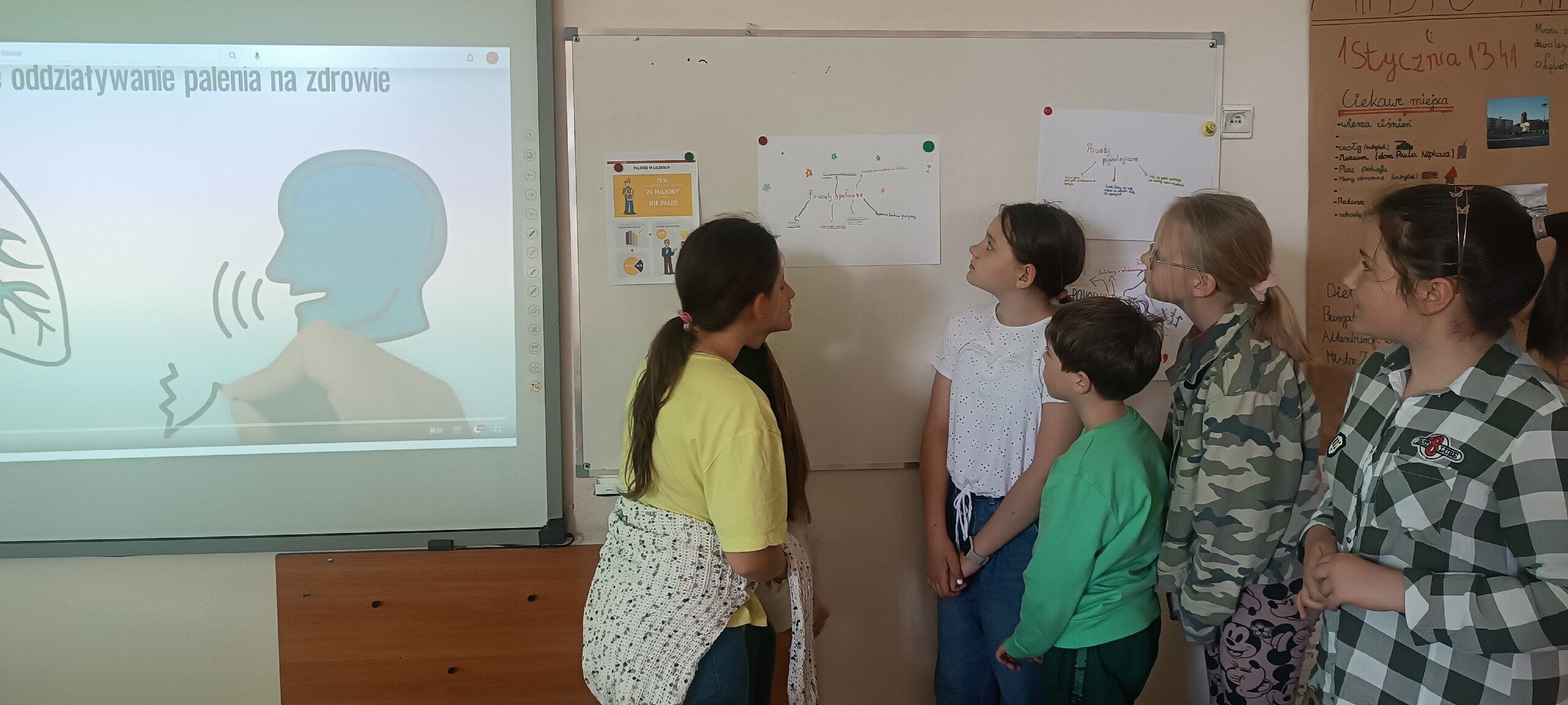 Uczniowie klasy IV aktywnie uczestniczyli w opracowanym przez Główny Inspektorat Sanitarny -programie antynikotynowej edukacji zdrowotnej pt. „Bieg po zdrowie”. Głównym celem programu było zwiększenie wiedzy uczniów na temat zdrowia w kontekście szkodliwości palenia papierosów i e-papierosów. Zajęcia nastawione zostały na stymulowanie kreatywności i aktywności uczniów. Założeniem programu było przeprowadzenie sześciu lekcji, dzięki którym uczniowie zdobywali wiedzę o szkodliwości i skutkach palenia papierosów oraz o sposobach zachowań, które pozwolą, by nie ulec temu nałogowi. Dzięki tematyce programu dzieci wzmocniły poczucie odpowiedzialności za zdrowie własne i innych osób. Efektem uczestnictwa w zajęciach stała się przygotowana przez uczniów gazetka szkolną na temat szkodliwych substancji zawartych w papierosach.