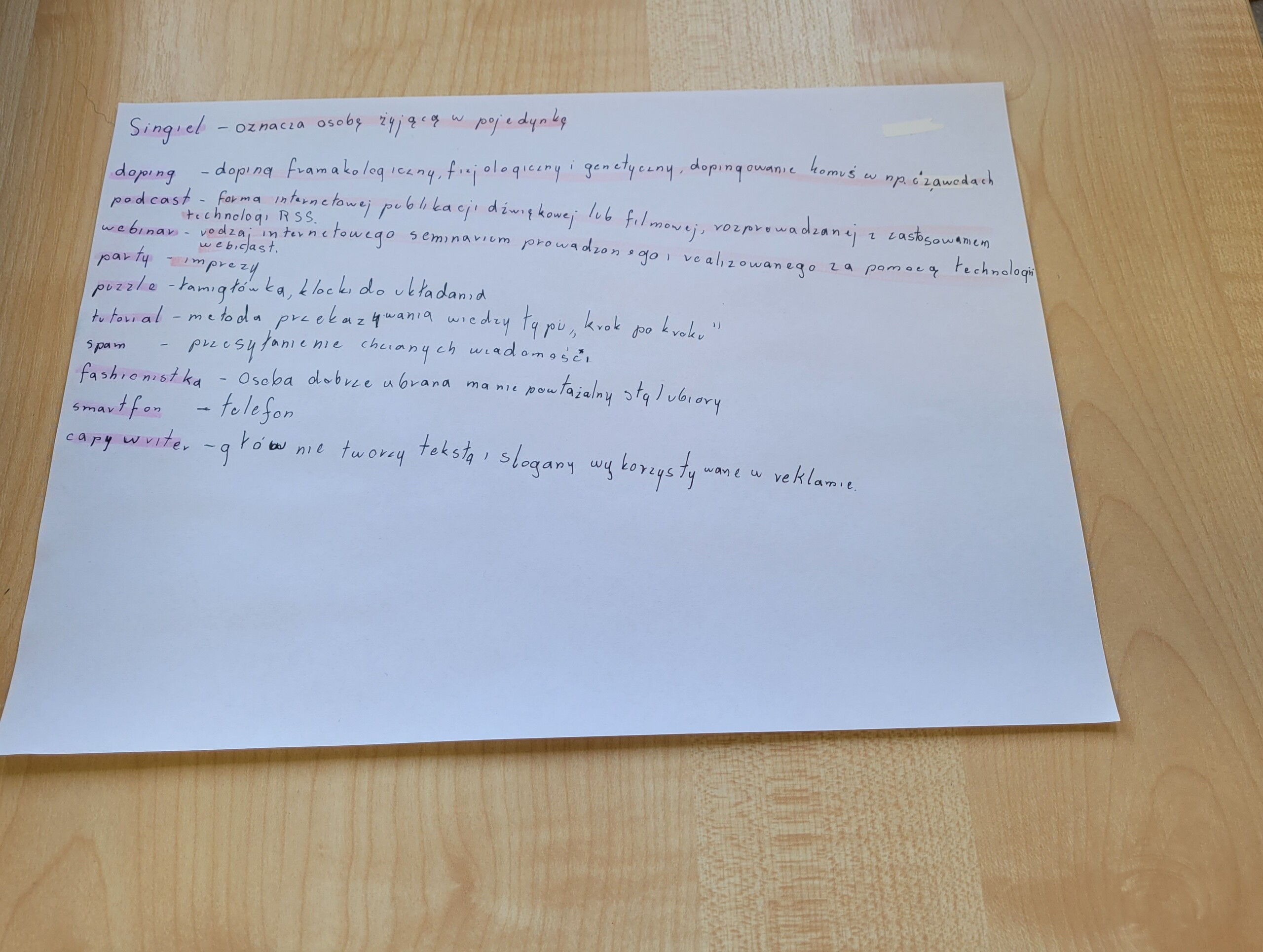 W środę wykonaliśmy zadanie, które nazywało się „Angielska herbatka anagramowa”. Uczniowie wyjaśniali przy pomocy Internetu i słowników znaczenie anglicyzmów i ich rolę w języku polskim. Następnie poznali pojęcie anagram i tworzyli nowe słowa, które mimo tego że pochodzą z języka angielskiego, to na dobre zagościły w naszym języku ojczystym.