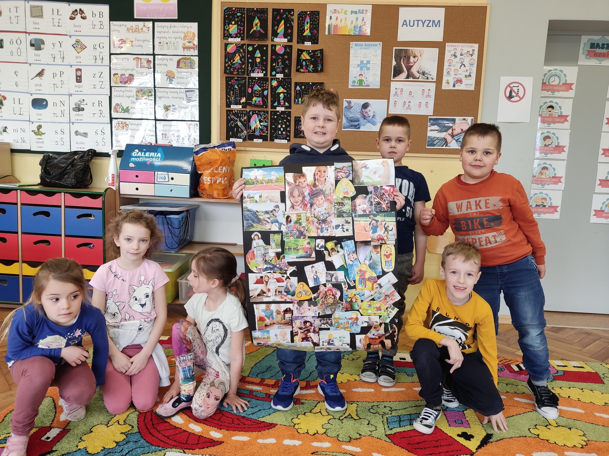 Podczas zajęć uczniowie klasy pierwszej samodzielnie poszukiwali własne mocne strony. Zaprezentowali swoje pasje w formie kalamburów i utworzyli wspólny kolaż. Poznali różnorodne zawody czytając wiersz Juliana Tuwima „ Wszyscy dla wszystkich”. Wiemy już, że w naszej klasie jest wielu uczniów, którzy w przyszłości będą sławnymi ludźmi. Nie zabraknie wśród nich strażaków, piłkarzy, piosenkarek, lekarek, kierowców, policjantów, ratowników medycznych.