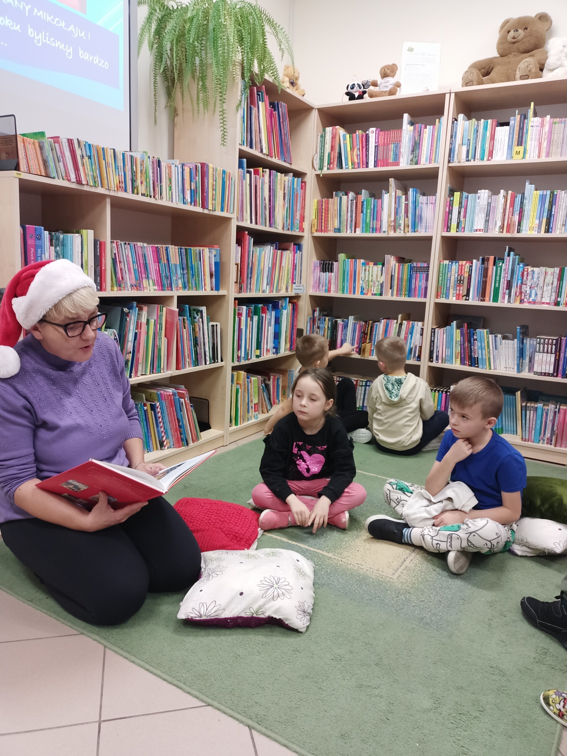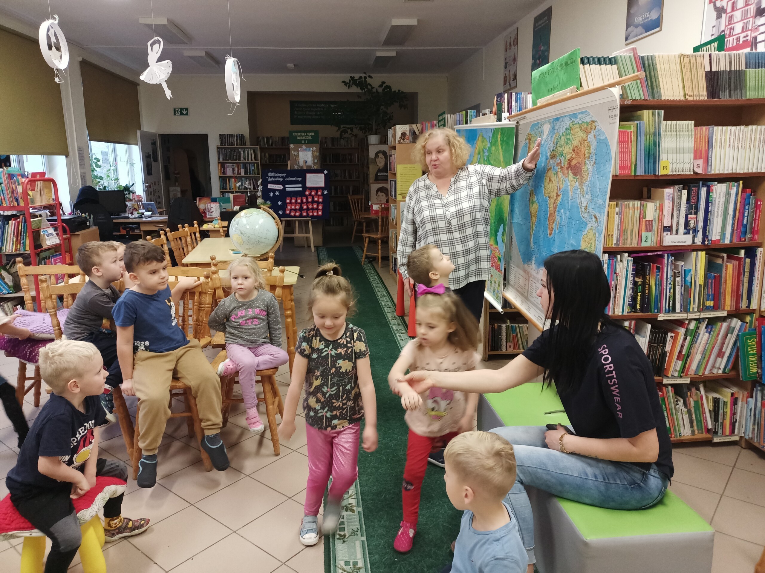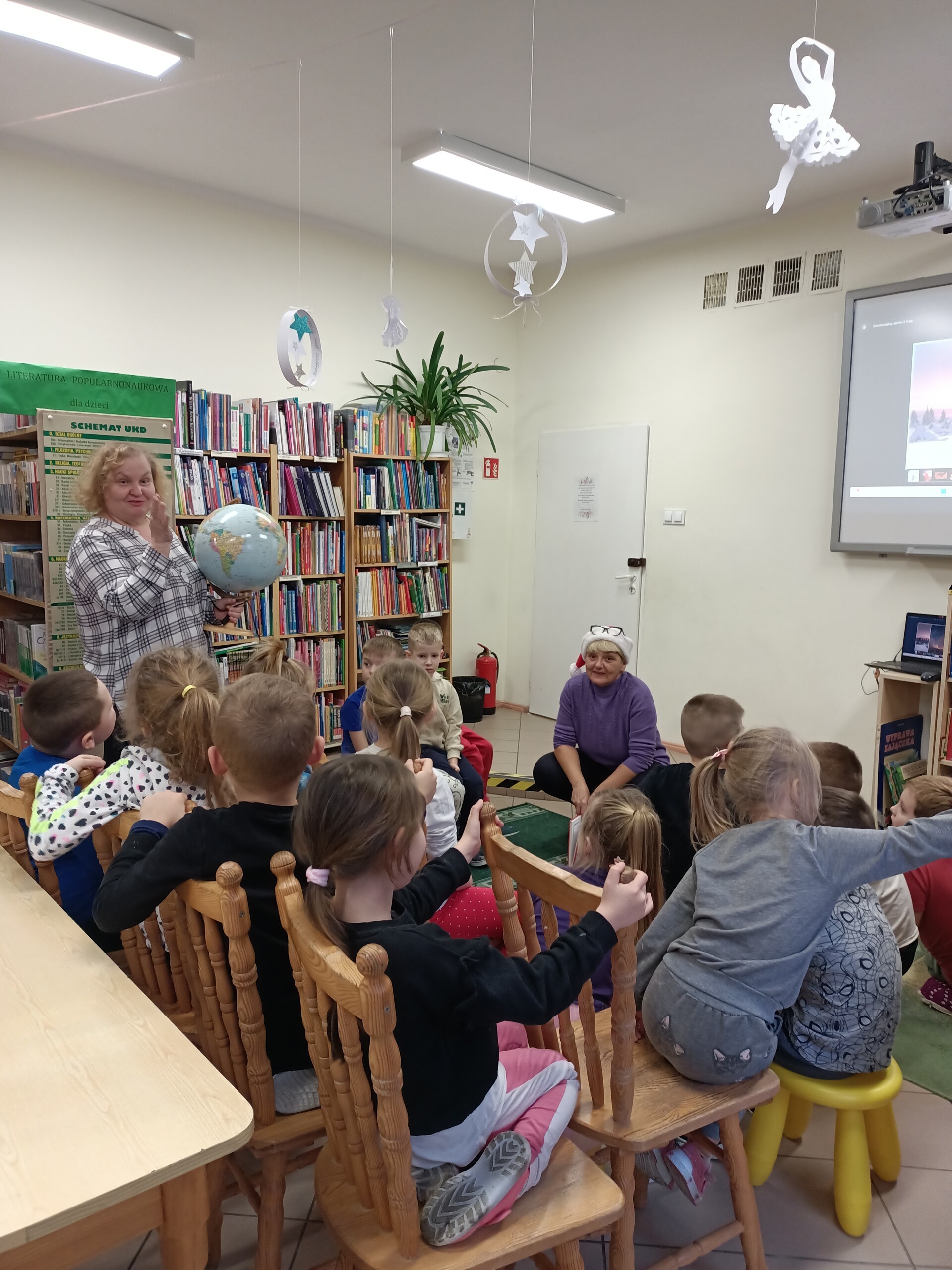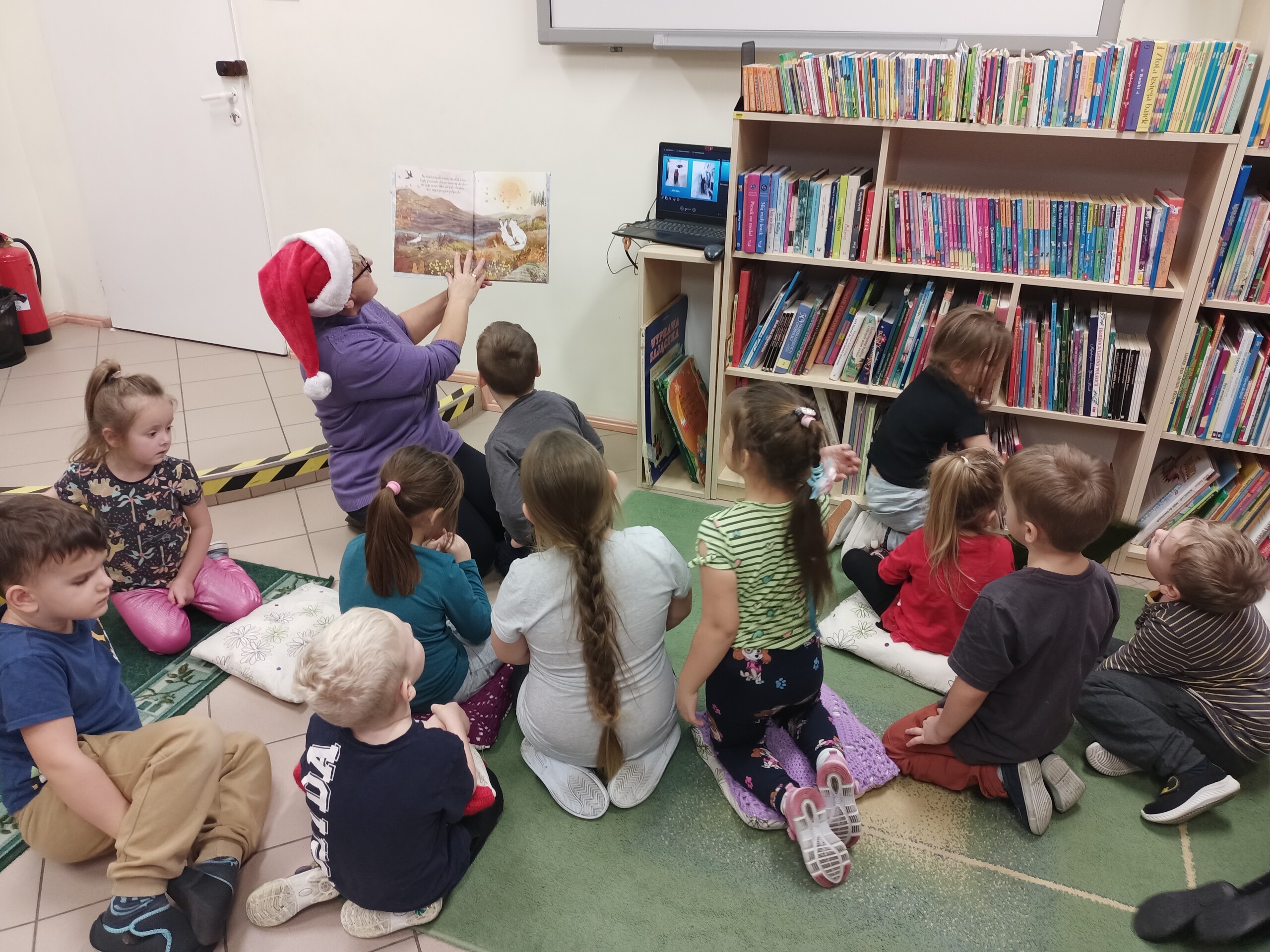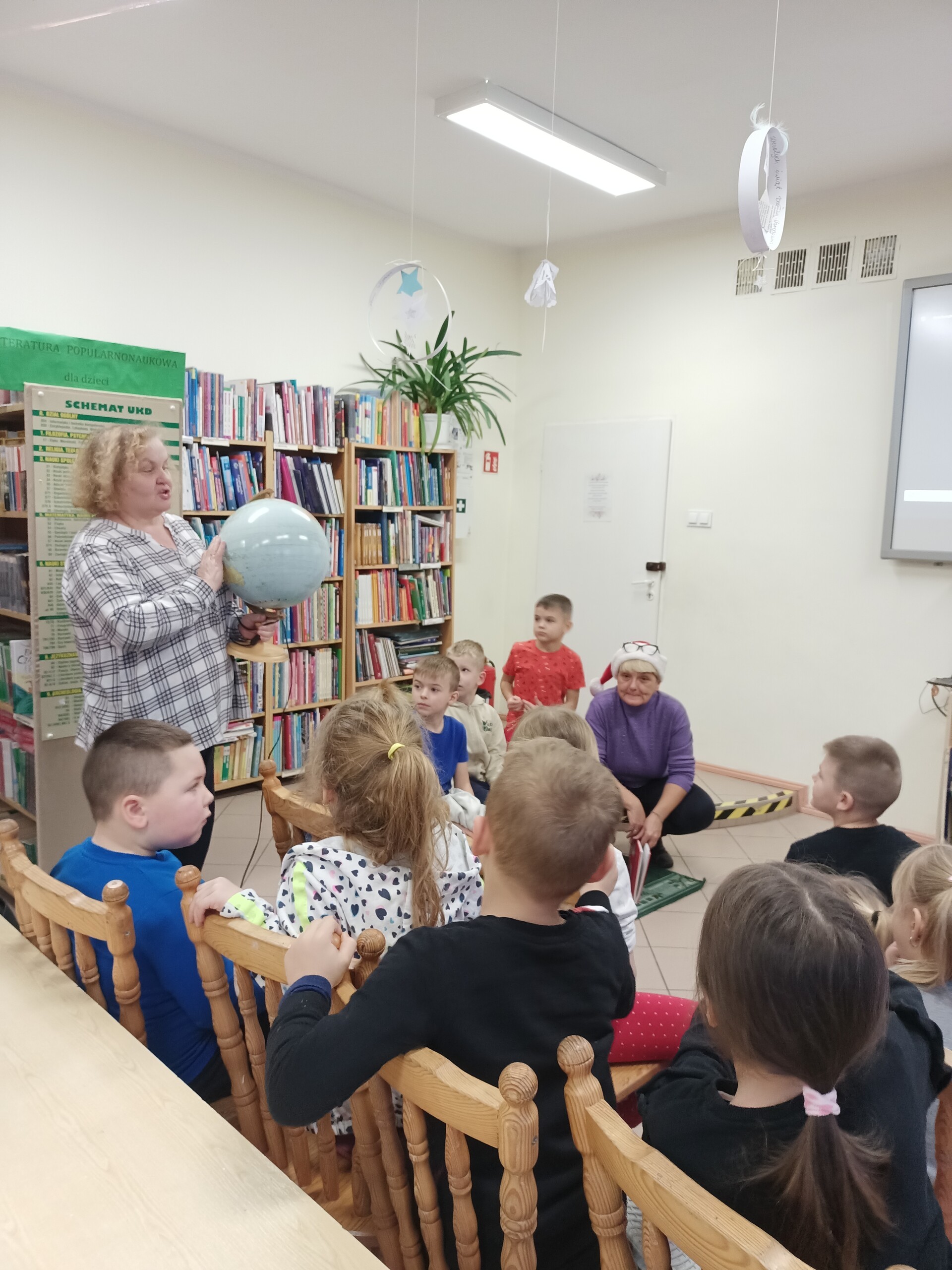 20 grudnia dzieci z przedszkola kolejny raz odwiedziły bibliotekę. Tym razem zostały zabrane w podróż do krainy świętego Mikołaja, czyli Laponii. Szukały tego miejsca na globusie i na mapie, w książkach i we wspomnieniach. Z uwagą obejrzały prezentację o zimowej krainie, opowiadały o upragnionych prezentach, a także wysłuchały czytania książek zakupionych w ramach Narodowego Programu rozwoju Czytelnictwa, np.: „Co to jest ten śnieg?”