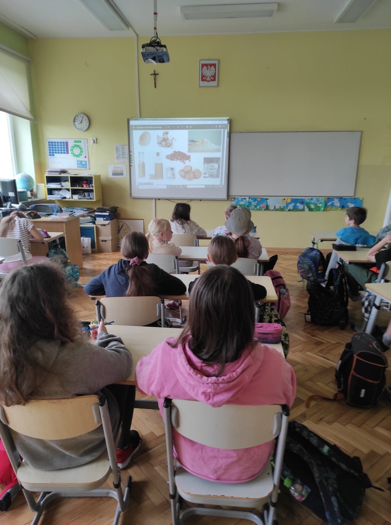 Uczniowie klasy 3 uczestniczyli w ostatniej lekcji projektowej. Temat zajęć: Czy z każdej mąki powstanie chleb? Na początku zajęć uczniowie obejrzeli film, z którego dowiedzieli się, jak z mąki powstaje chleb. Dzięki obejrzeniu prezentacji poznali zboża, rodzaje mąki, a także poznali używane w piekarni maszyny do wyrobu pieczywa. Podczas zajęć zapoznali się także z instrukcją wykonania czapki kucharskiej. Omówili przepisy na upieczenie chleba i zostały zachęcone do ich wykonania w domu wspólnie z rodzicami.