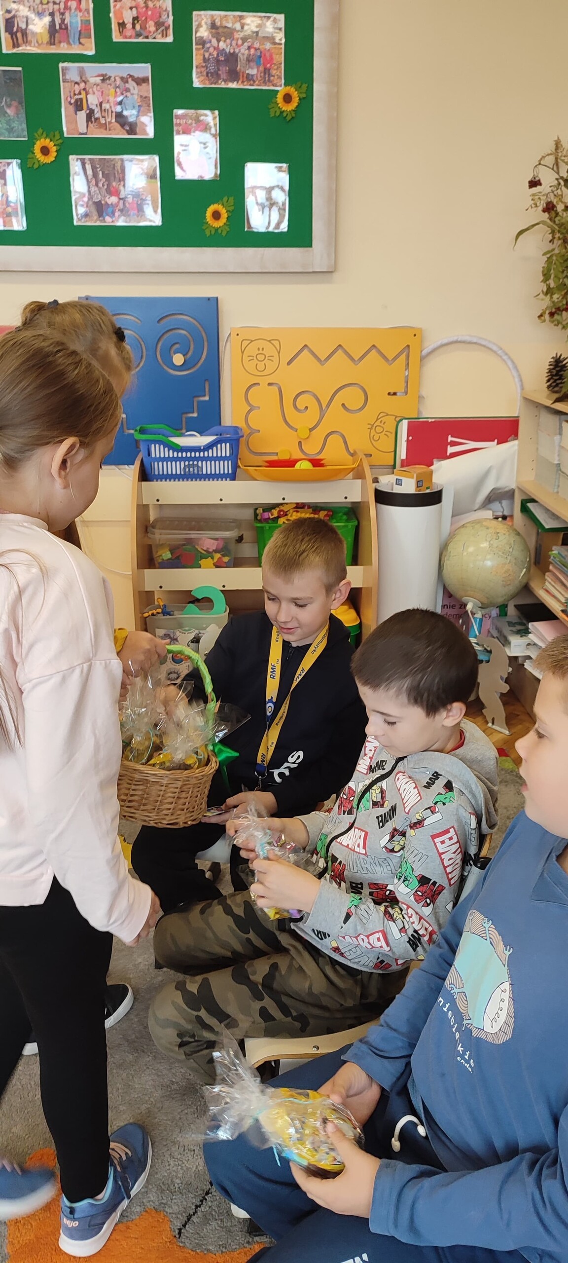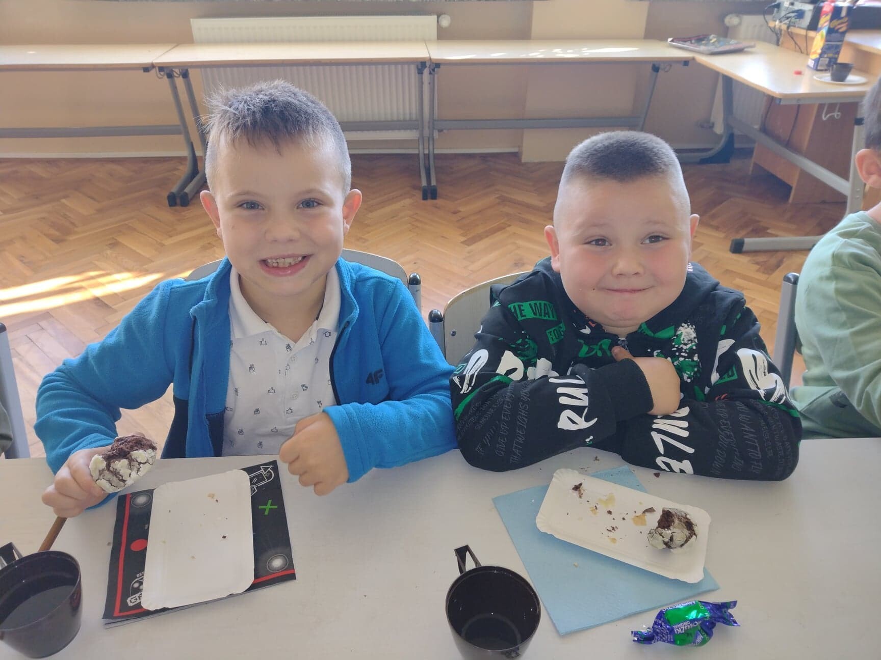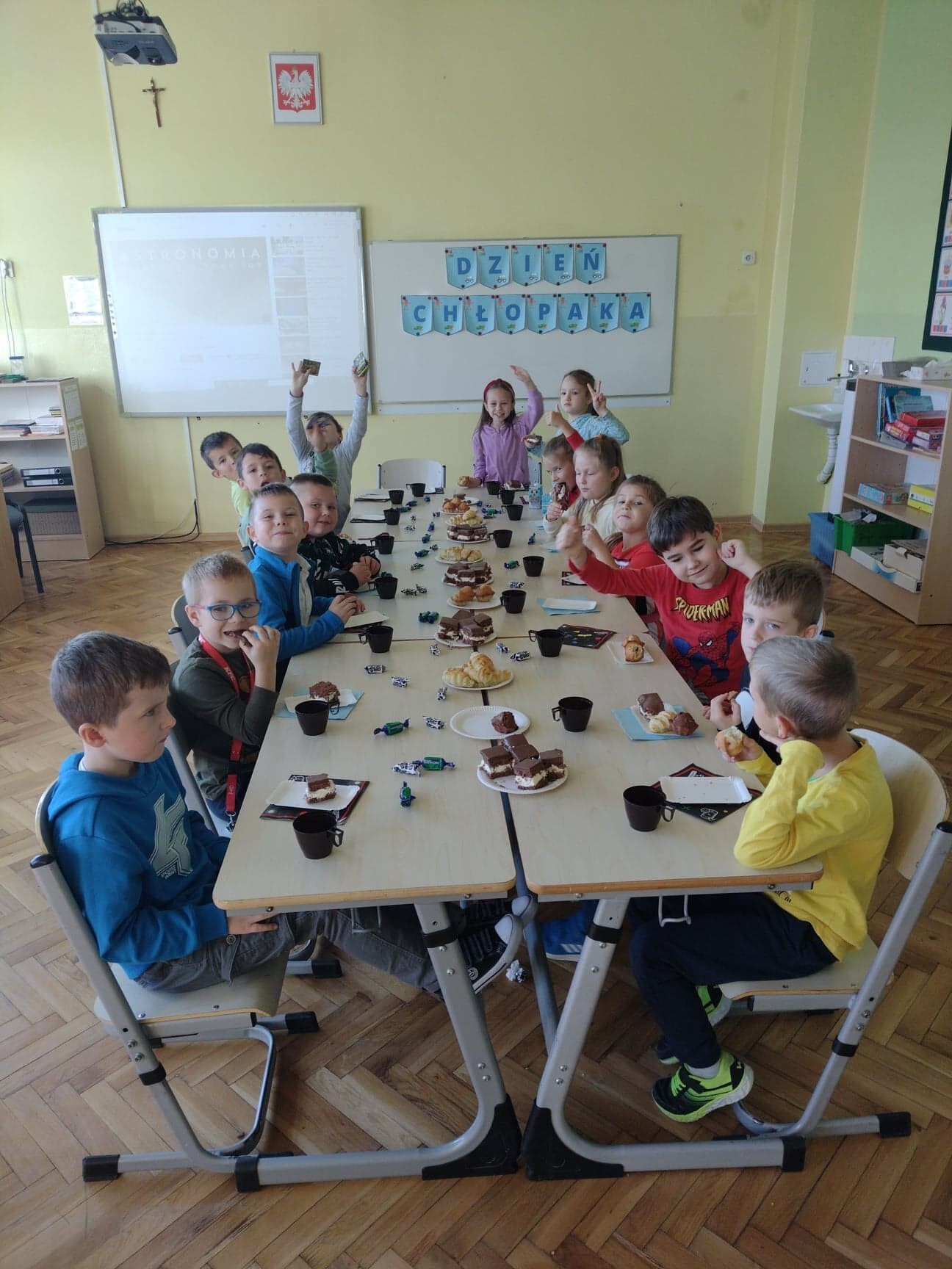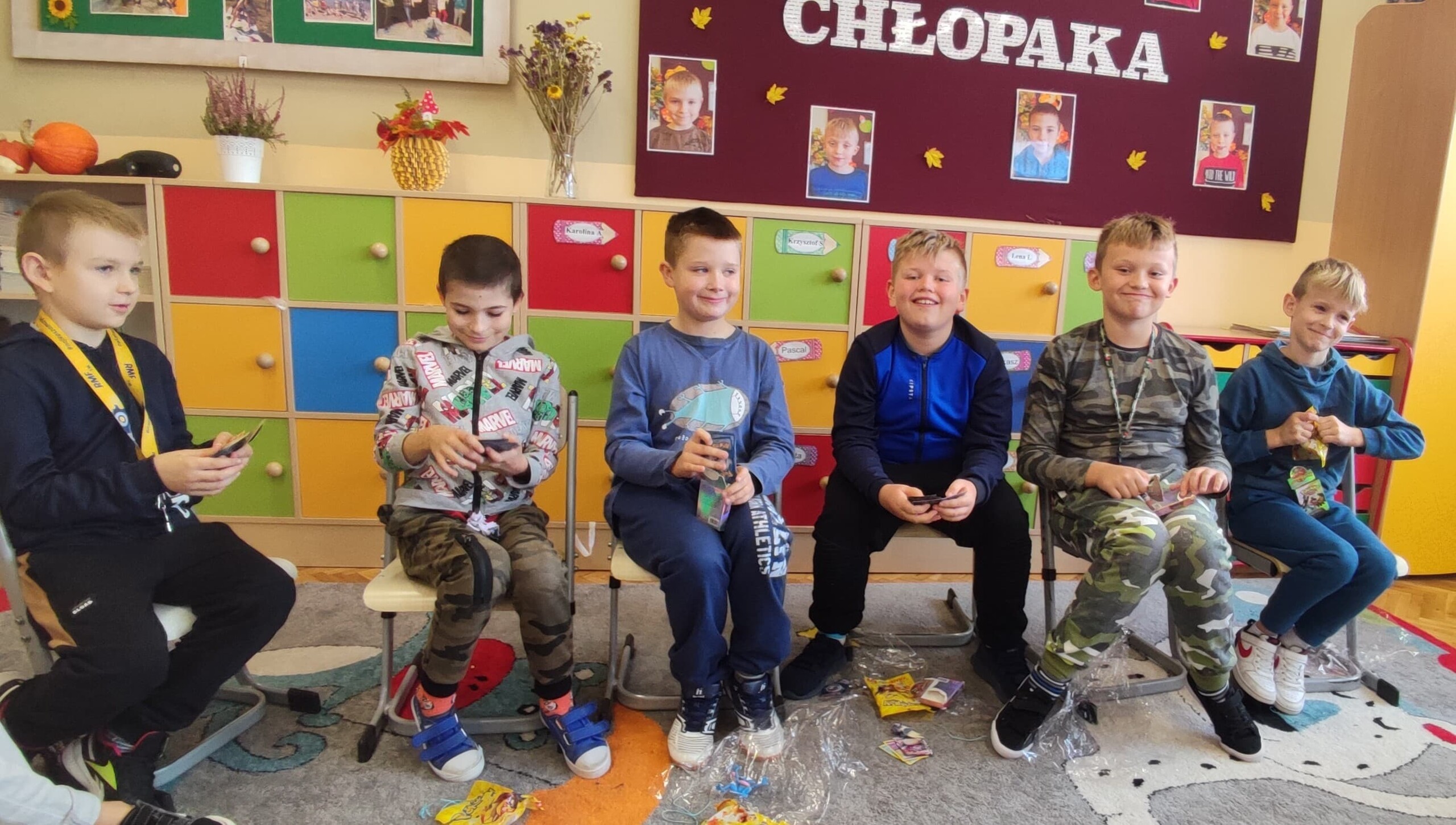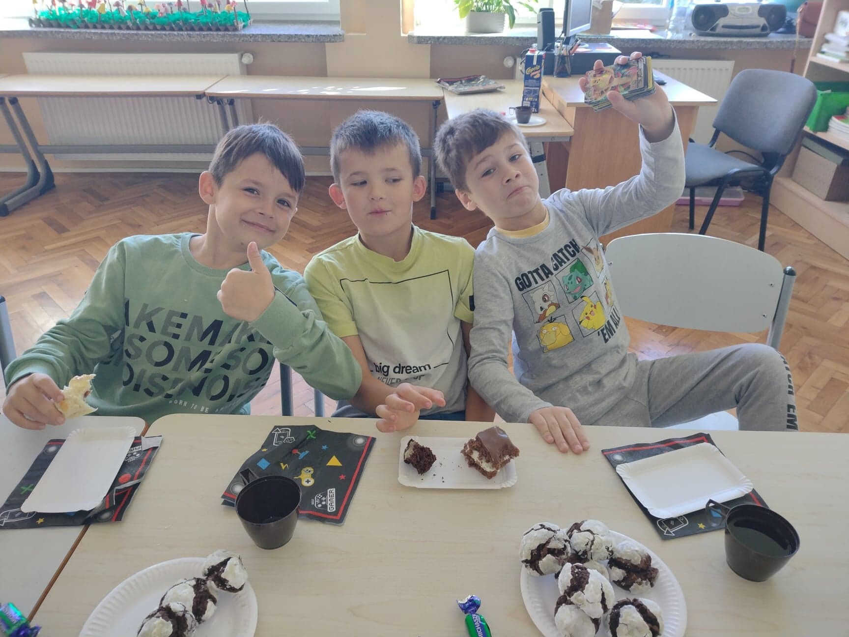 Uczennice klas 1 – 3 stanęły na wysokości zadania i postarały się, aby ten dzień na długo pozostał w pamięci ich kolegów. Zaśpiewały sto lat, złożyły życzenia i obdarowały chłopców prezencikami. Wspólne świętowanie bez wątpienia umilił słodki poczęstunek przygotowany przez rodziców.