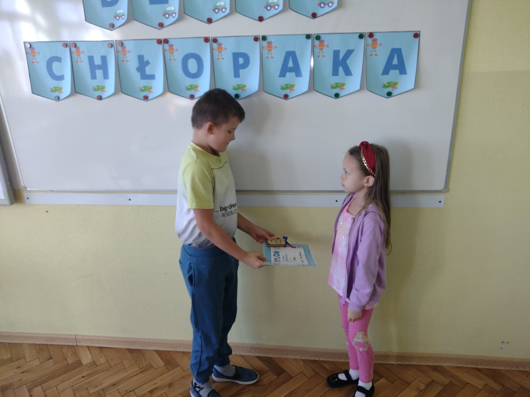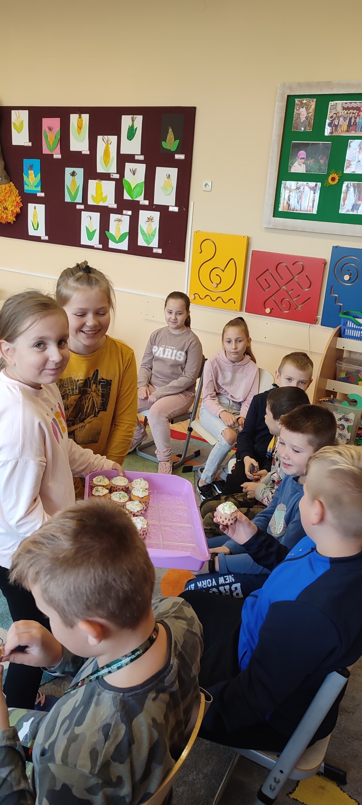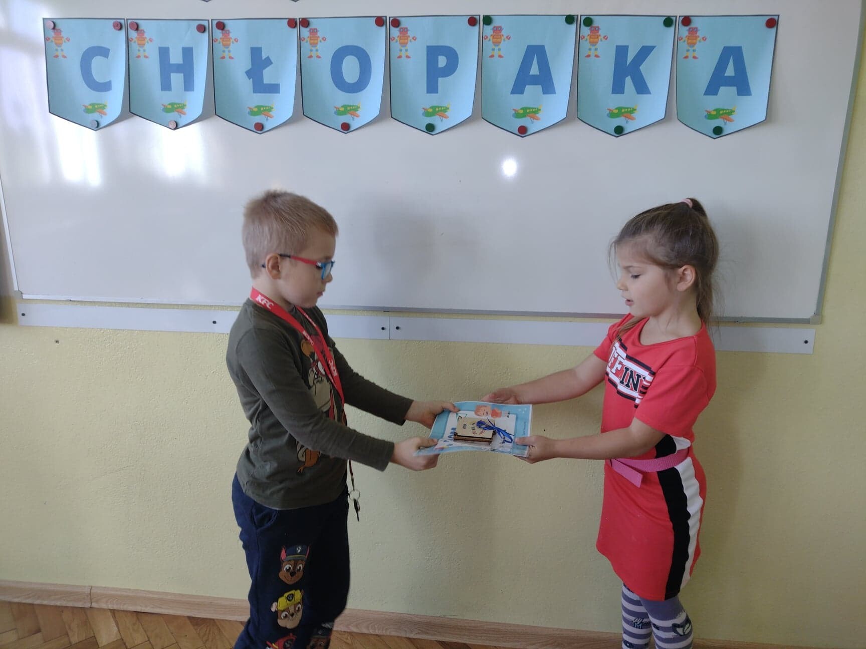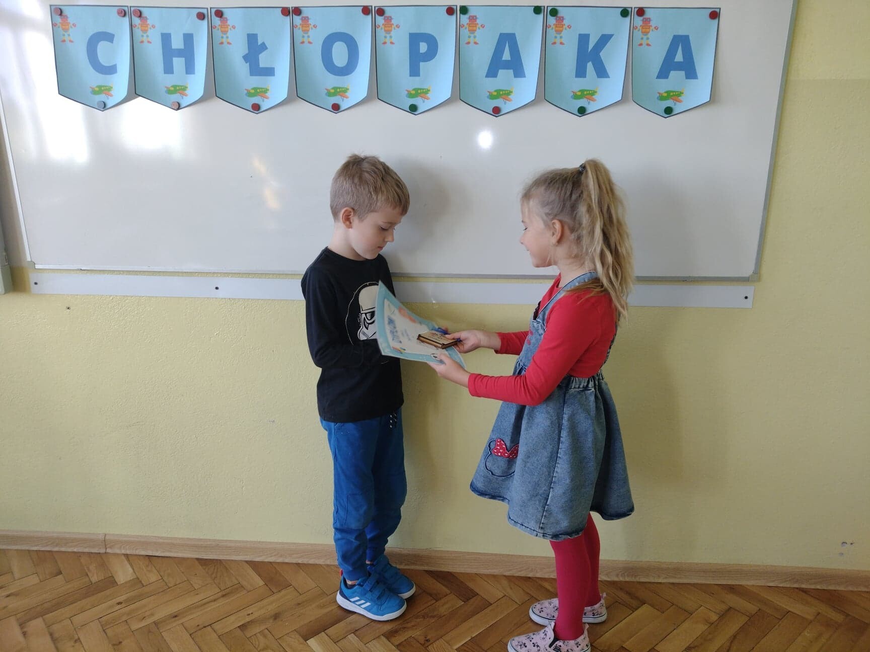Uczennice klas 1 – 3 stanęły na wysokości zadania i postarały się, aby ten dzień na długo pozostał w pamięci ich kolegów. Zaśpiewały sto lat, złożyły życzenia i obdarowały chłopców prezencikami. Wspólne świętowanie bez wątpienia umilił słodki poczęstunek przygotowany przez rodziców.