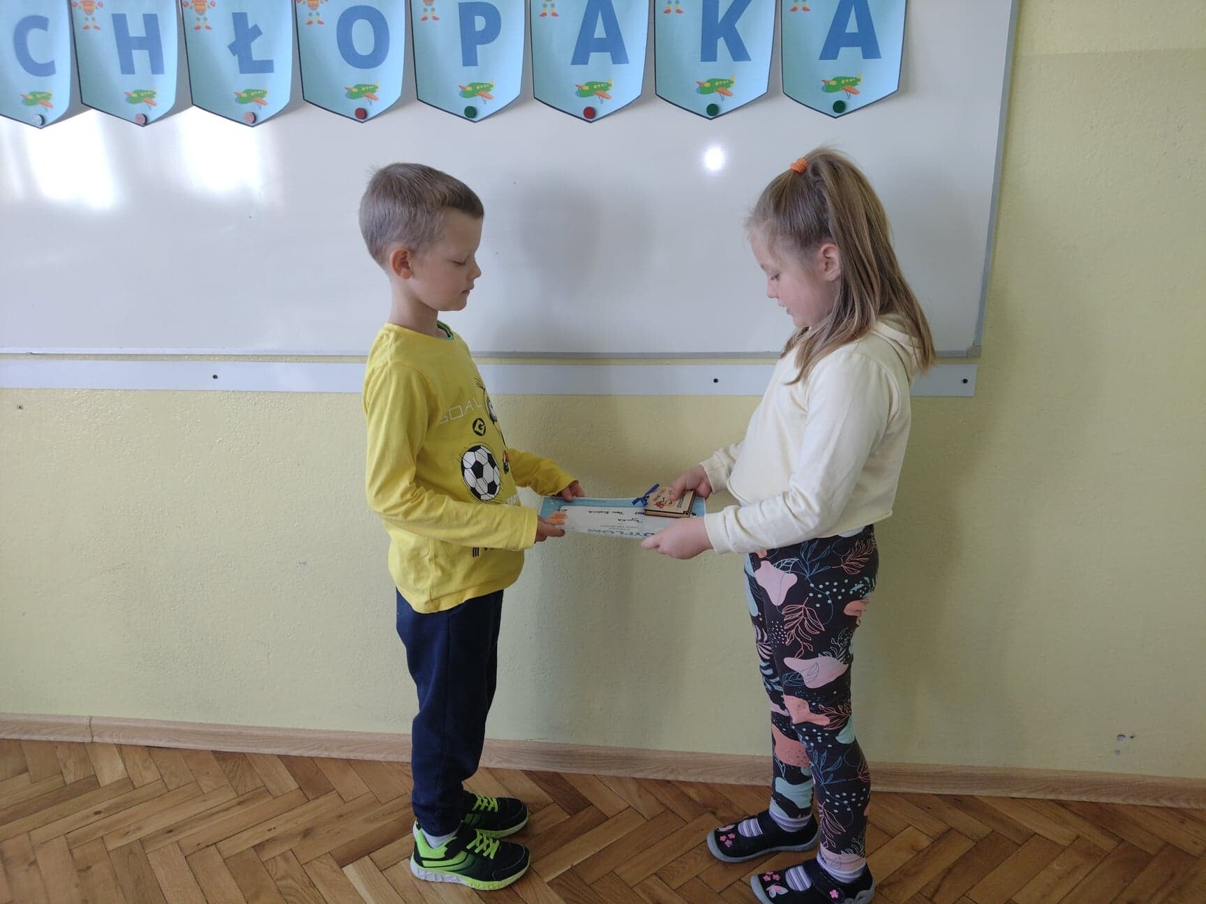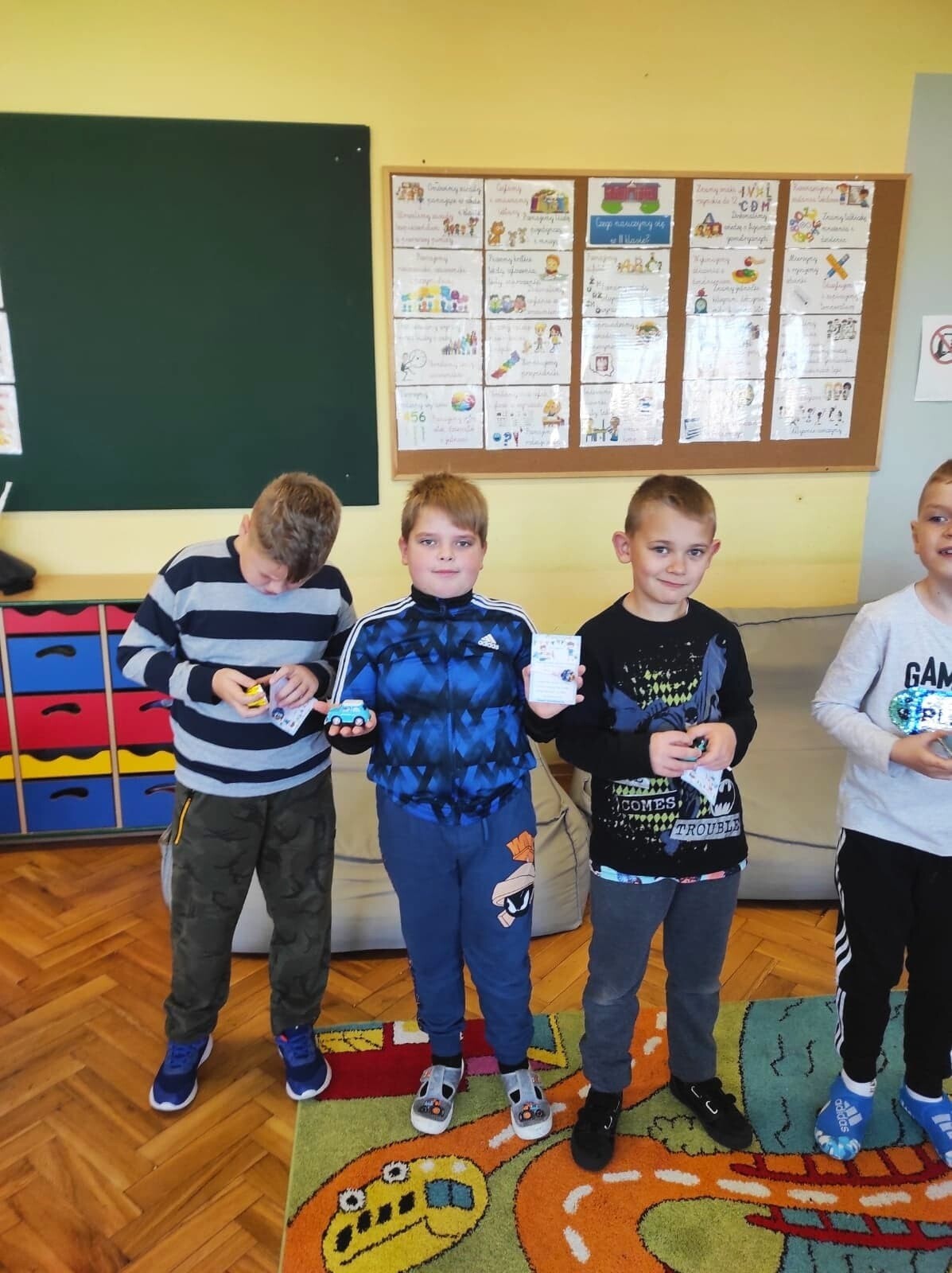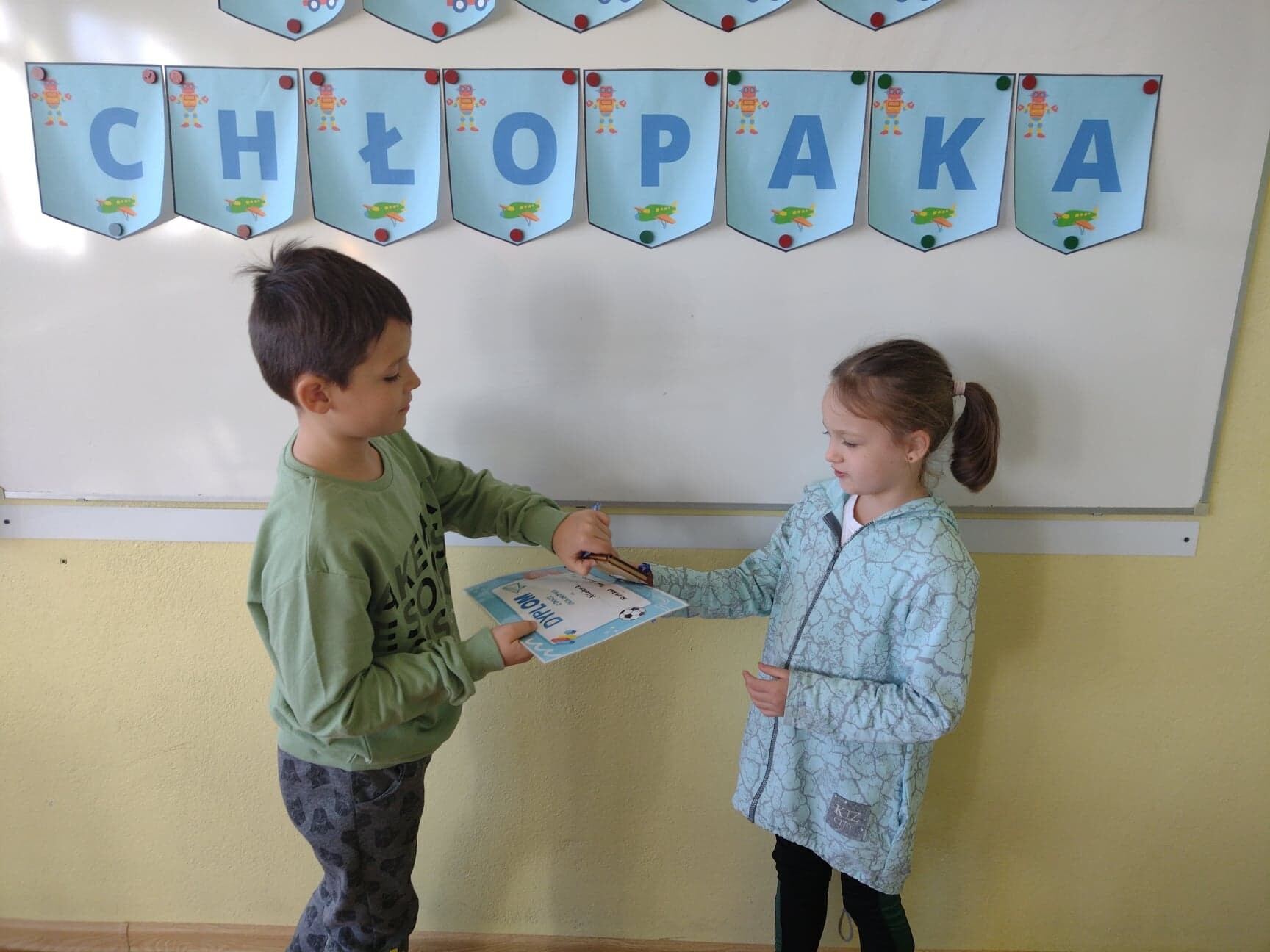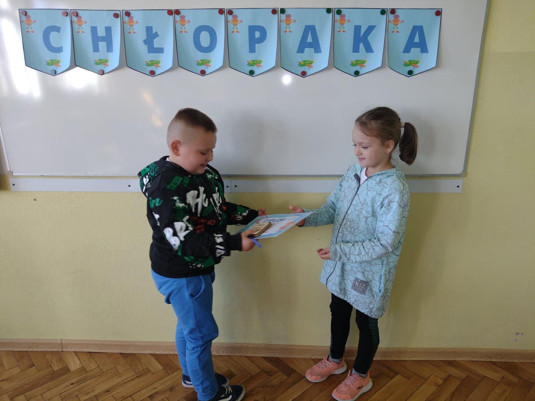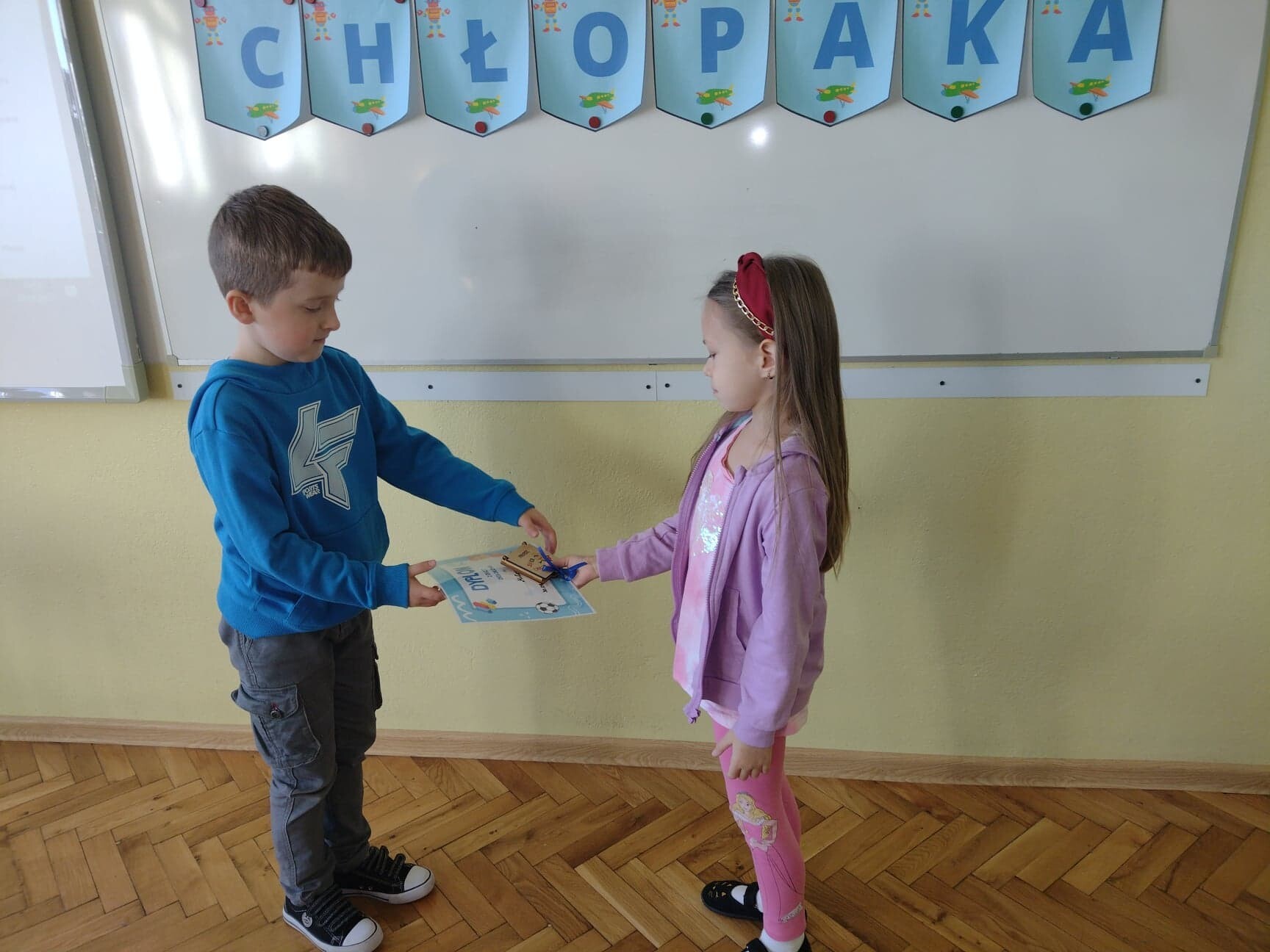 Uczennice klas 1 – 3 stanęły na wysokości zadania i postarały się, aby ten dzień na długo pozostał w pamięci ich kolegów. Zaśpiewały sto lat, złożyły życzenia i obdarowały chłopców prezencikami. Wspólne świętowanie bez wątpienia umilił słodki poczęstunek przygotowany przez rodziców.