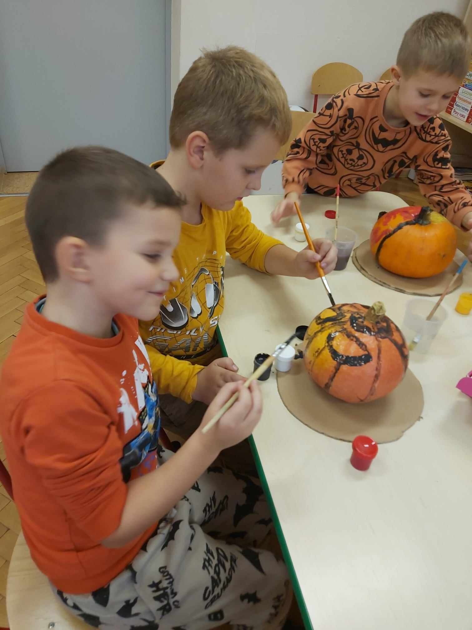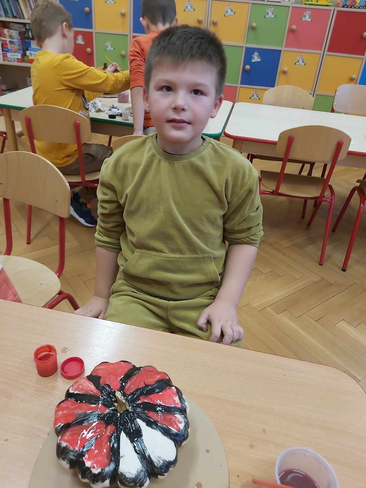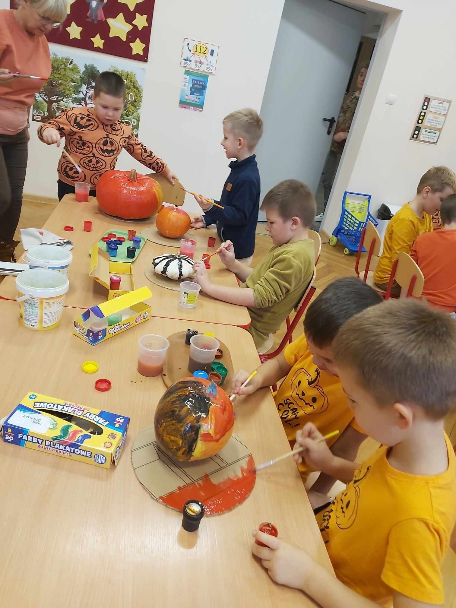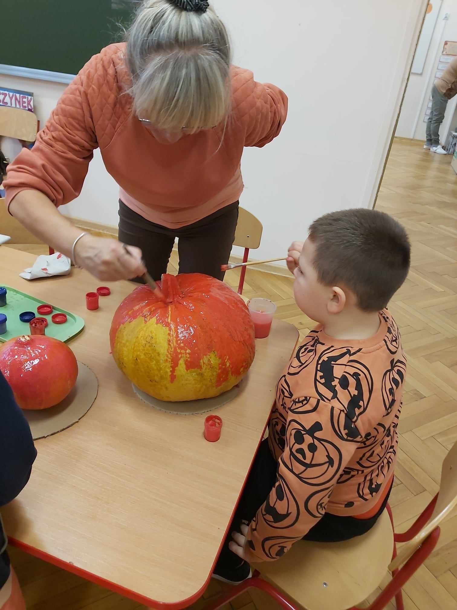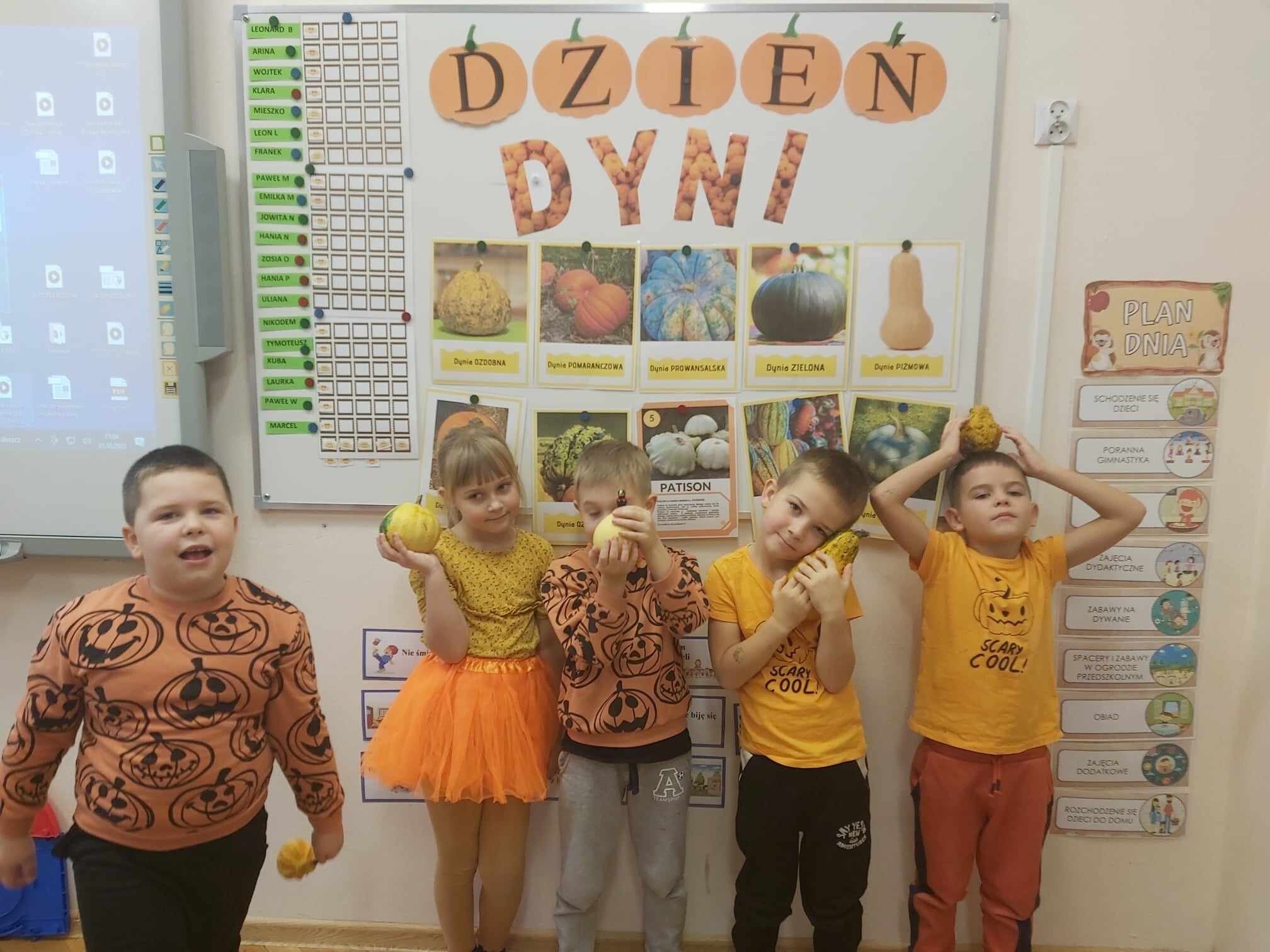 Dynia to bardzo zdrowe, urodziwe, różnorodne i łatwe do współpracy warzywo - przekonały się o tym nasze przedszkolaki we wtorek 31 października. Sala Jeżyków zamieniła się w dyniową krainę, gdyż z okazji Dnia Dyni dzieci ubrały się na kolor pomarańczowy, przyniosły różnorodne dynie i rozpoczęły zabawę. Klasyfikowały dynie wg wielkości, naśladowały to wdzięczne warzywo oraz wzbogaciły swoją wiedzę na jej temat. Na koniec wiele radości przyniosła praca plastyczna, gdyż pomarańczowa dynia za sprawą działania dzieci zamieniła się w ulubionych bohaterów dziecięcych bajek. To był bardzo miły dzień i z pewnością na długo zostanie w pamięci naszych przedszkolaków.