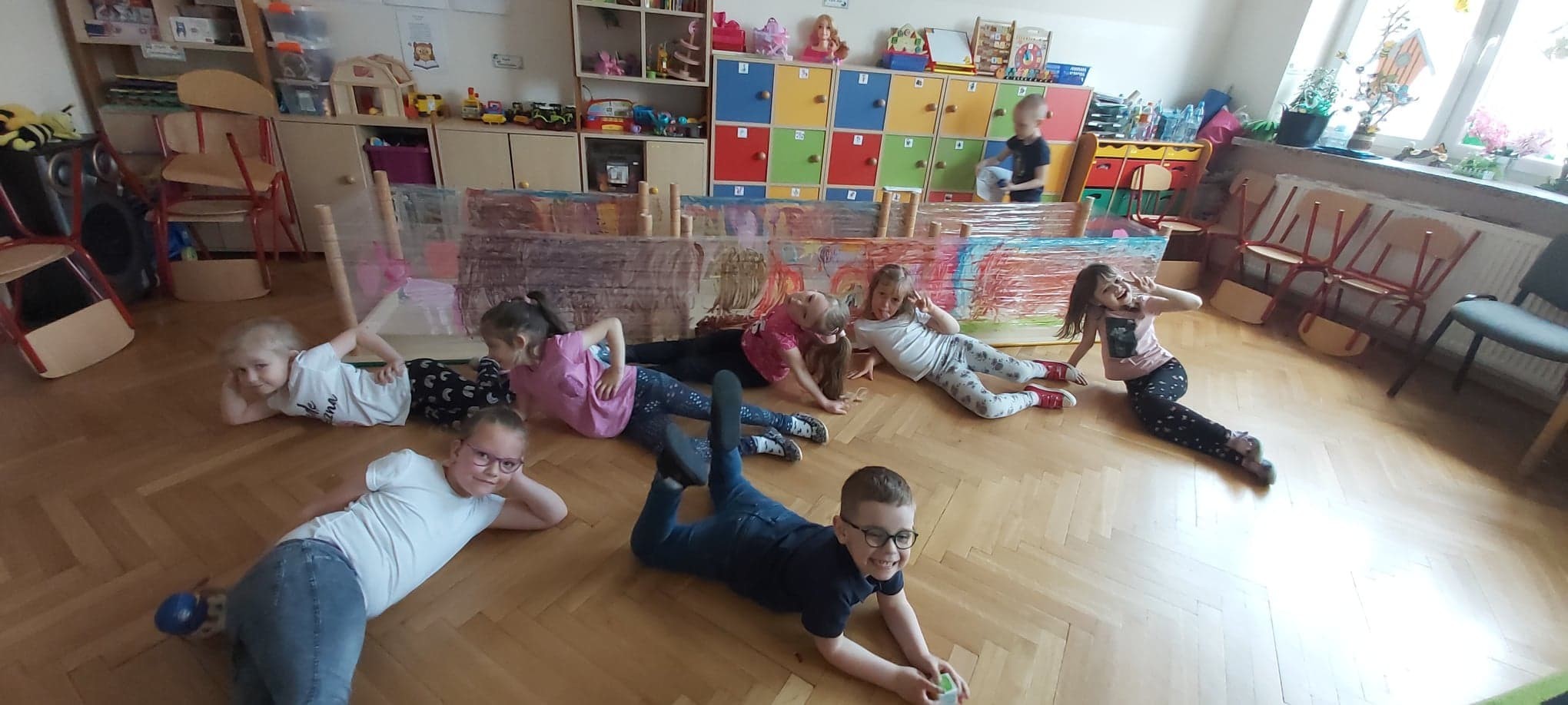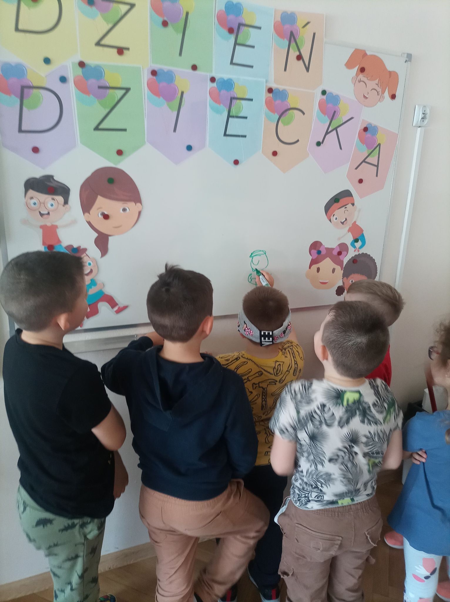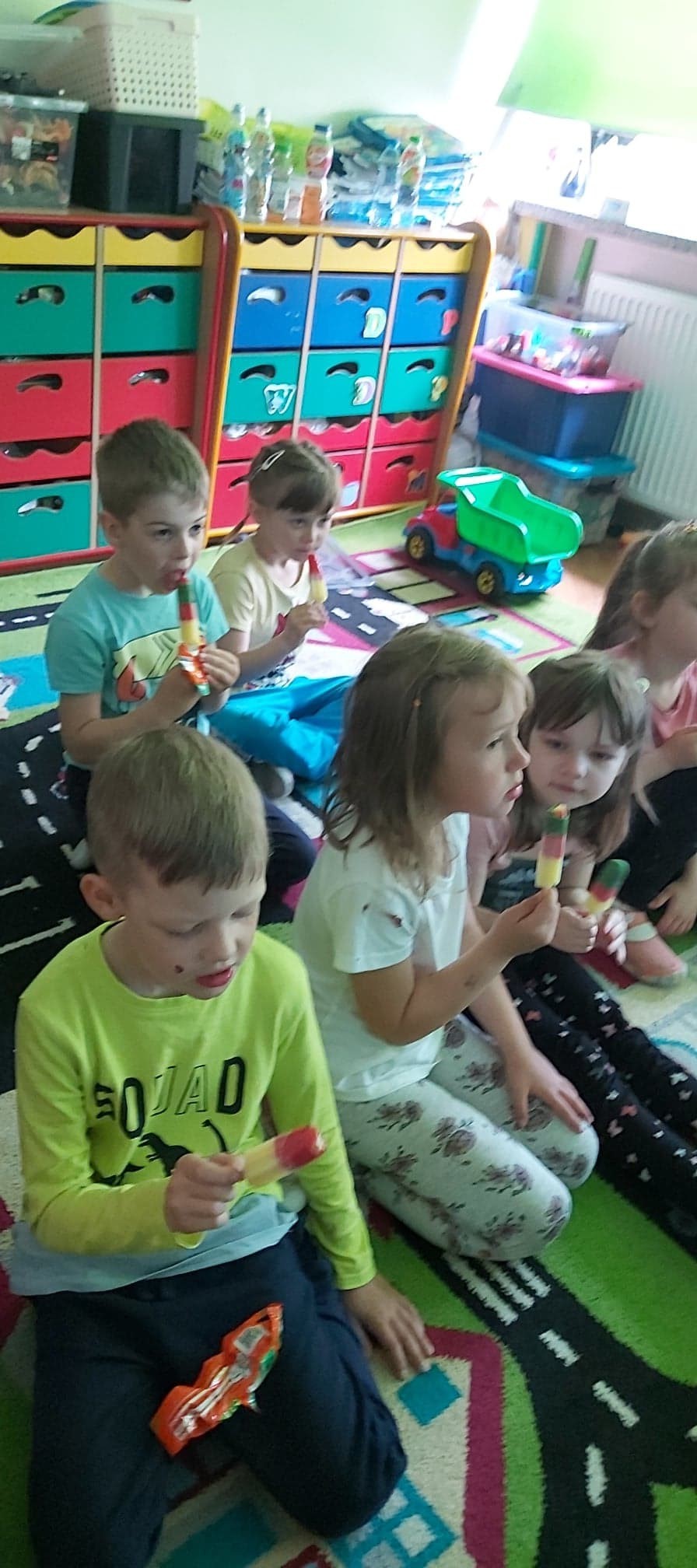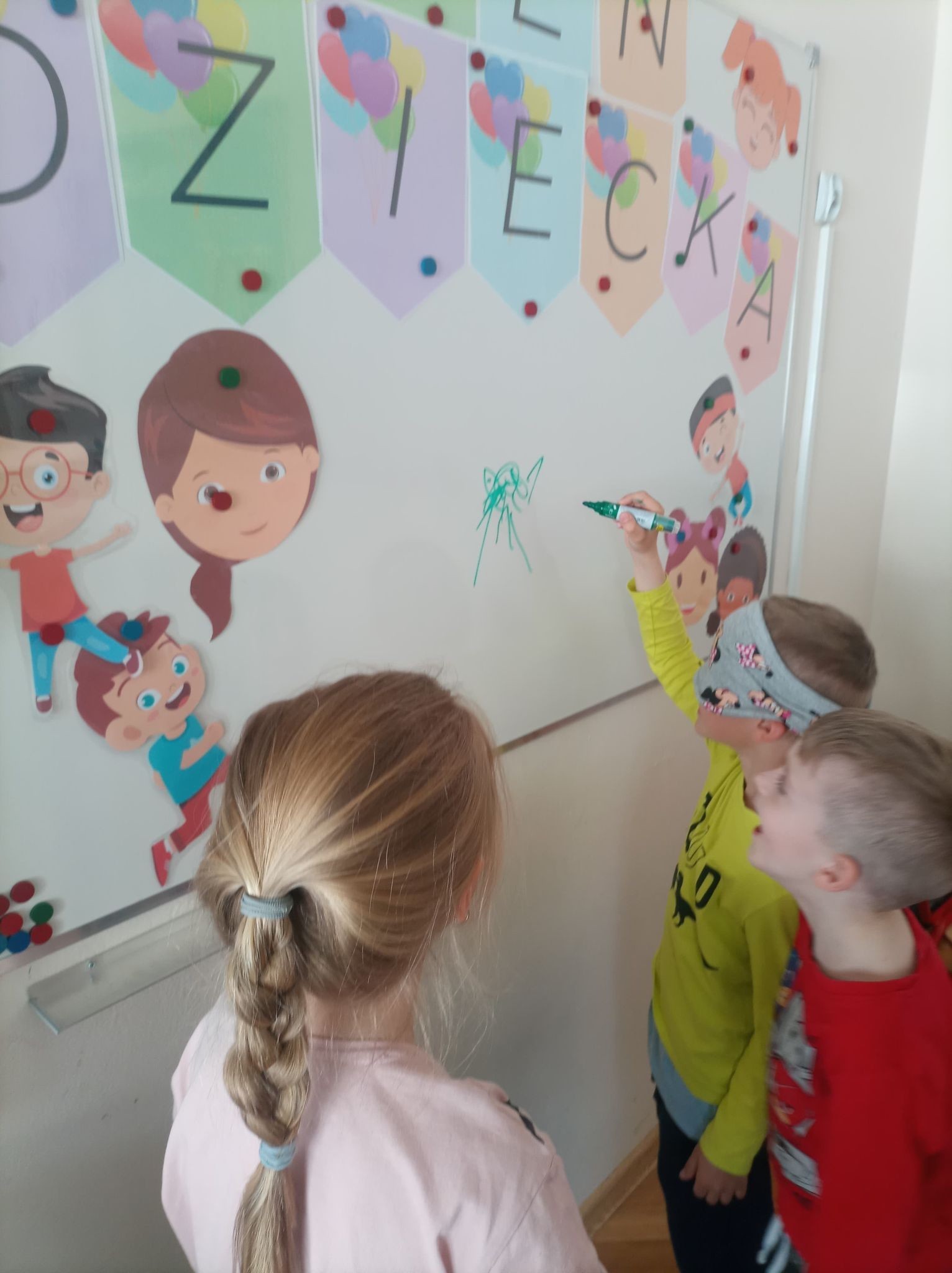 W naszym przedszkolu tego dnia również nie zabrakło atrakcji. Były tańce, zabawy z chustą, malowanie folii farbami, lody, seans bajkowy i wiele innych niespodzianek. Przedszkolaki bawiły się świetnie, z ich twarzy nie schodził uśmiech, a cały dzień dostarczył wielu emocji i niezapomnianych wrażeń.