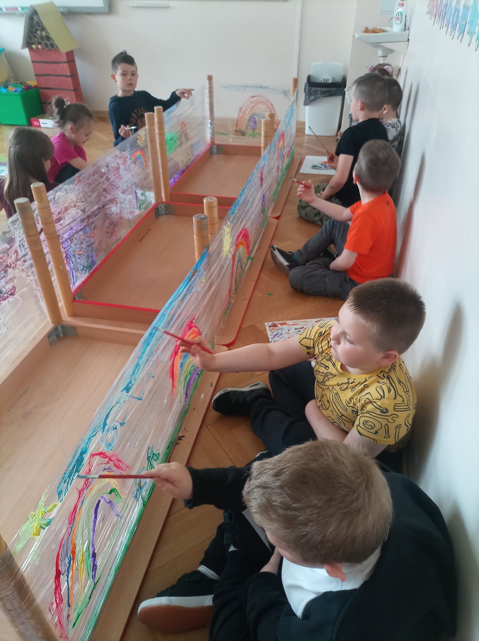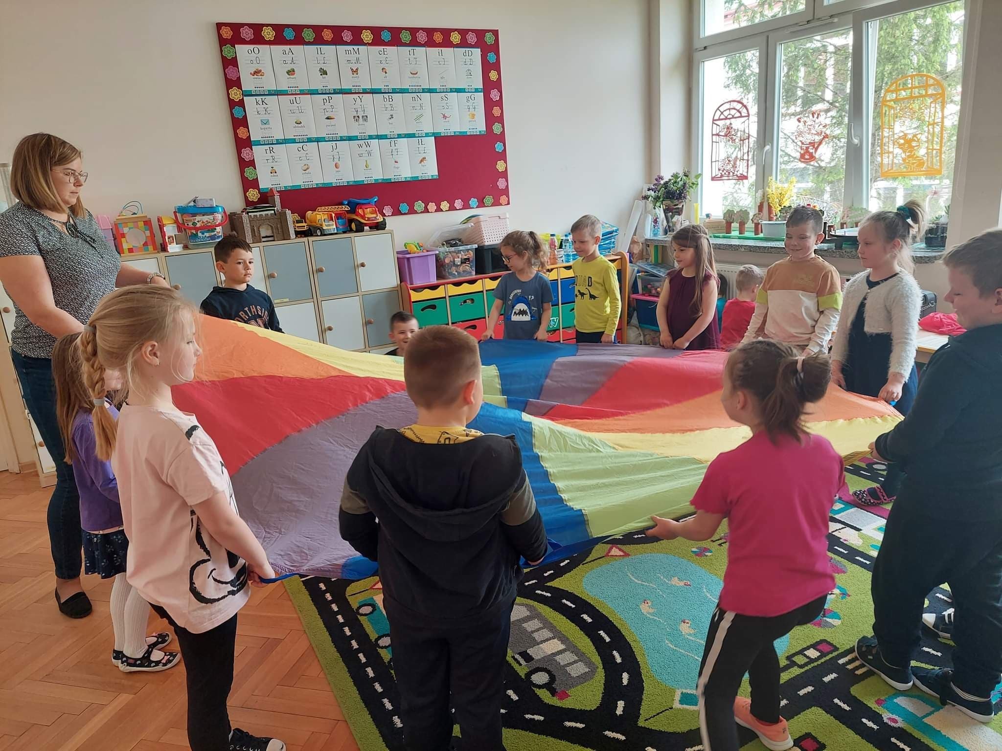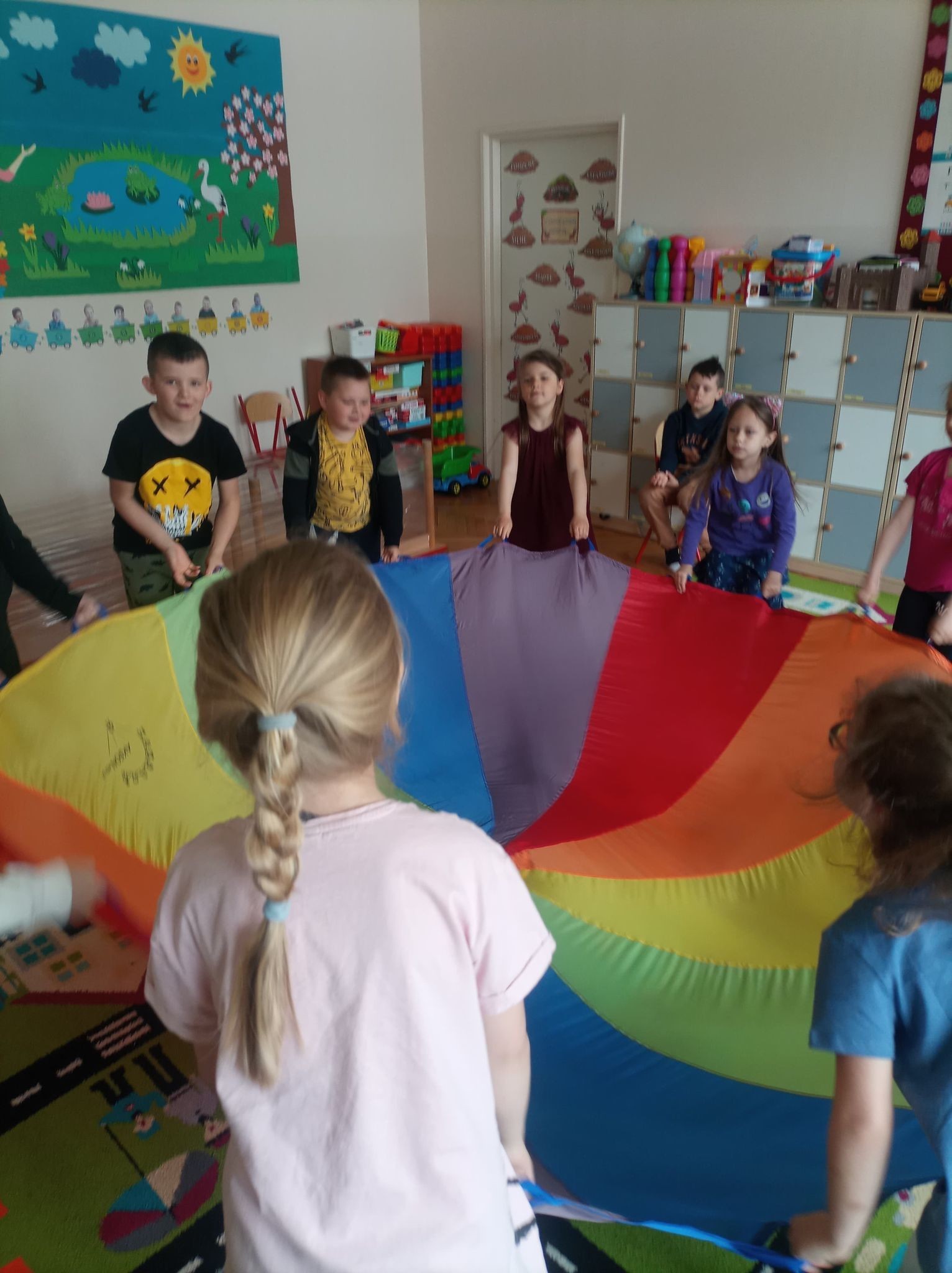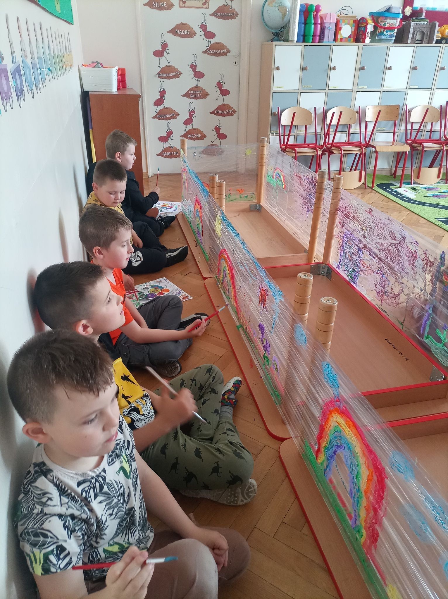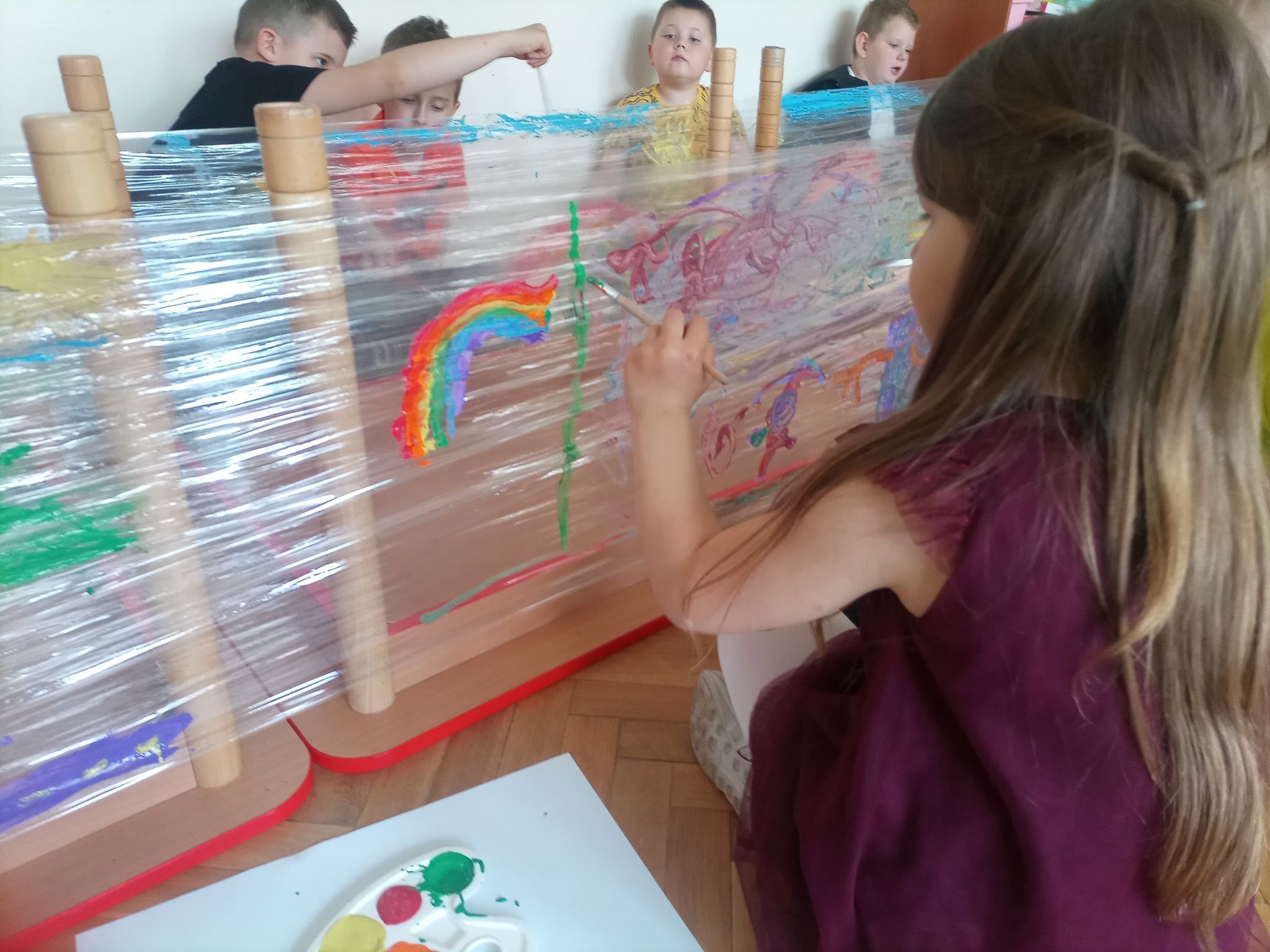 W naszym przedszkolu tego dnia również nie zabrakło atrakcji. Były tańce, zabawy z chustą, malowanie folii farbami, lody, seans bajkowy i wiele innych niespodzianek. Przedszkolaki bawiły się świetnie, z ich twarzy nie schodził uśmiech, a cały dzień dostarczył wielu emocji i niezapomnianych wrażeń.