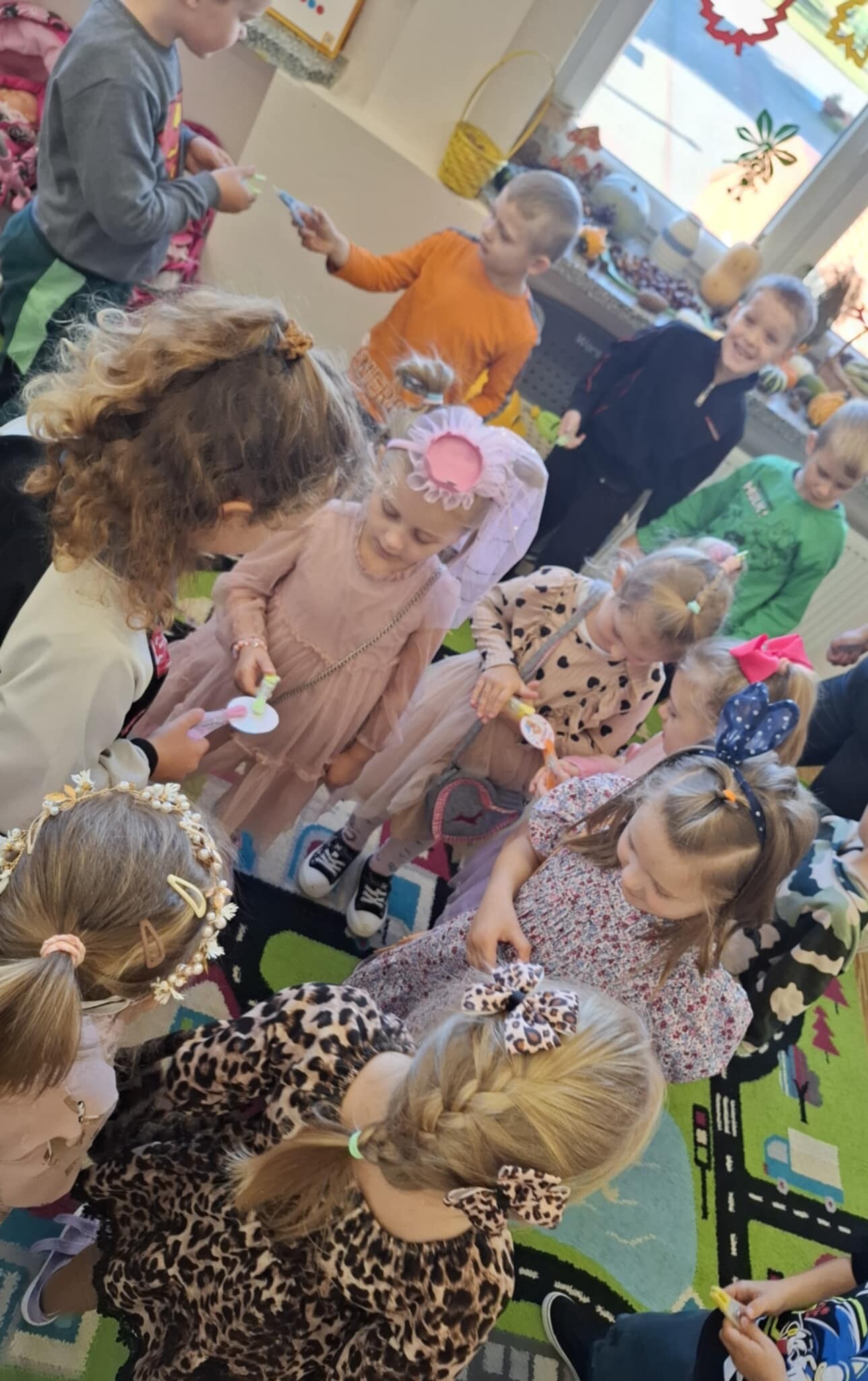 Ten dzień był bardzo ważny dla dziewczynek z naszej grupy. Radosna atmosfera panowała już od samego rana. Były wspólne śpiewy, tańce, zabawy i oczywiście słodki poczęstunek.