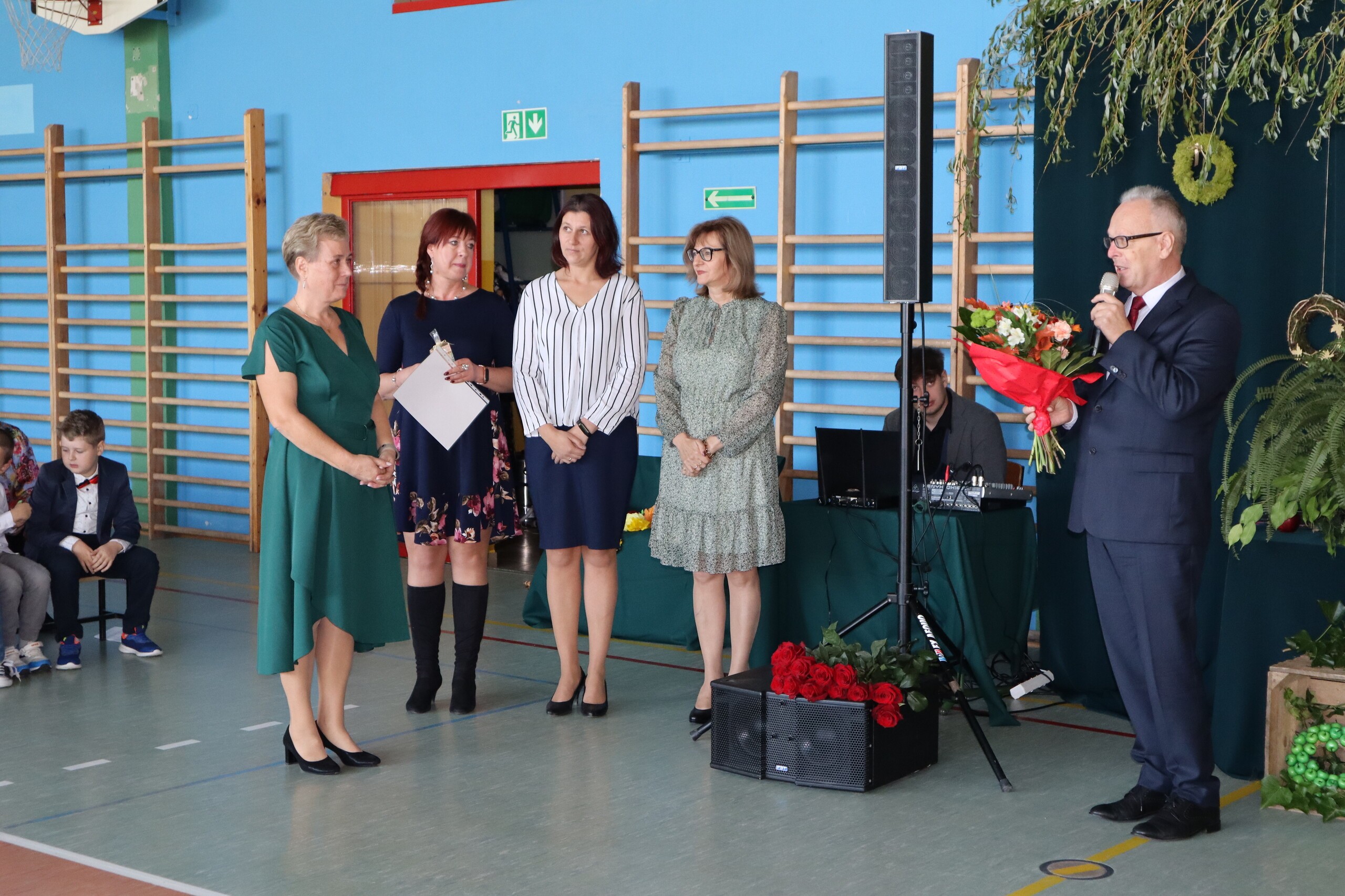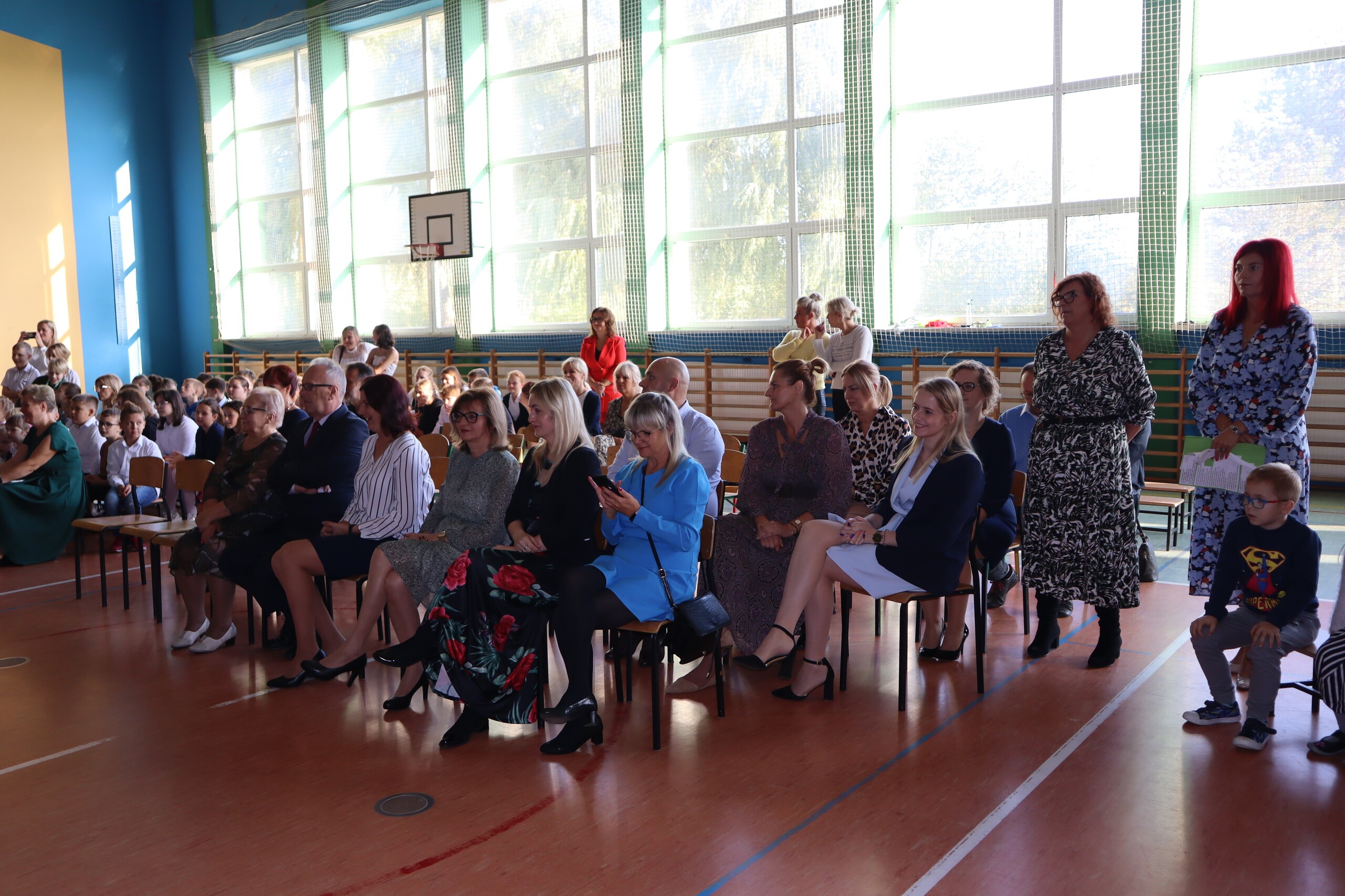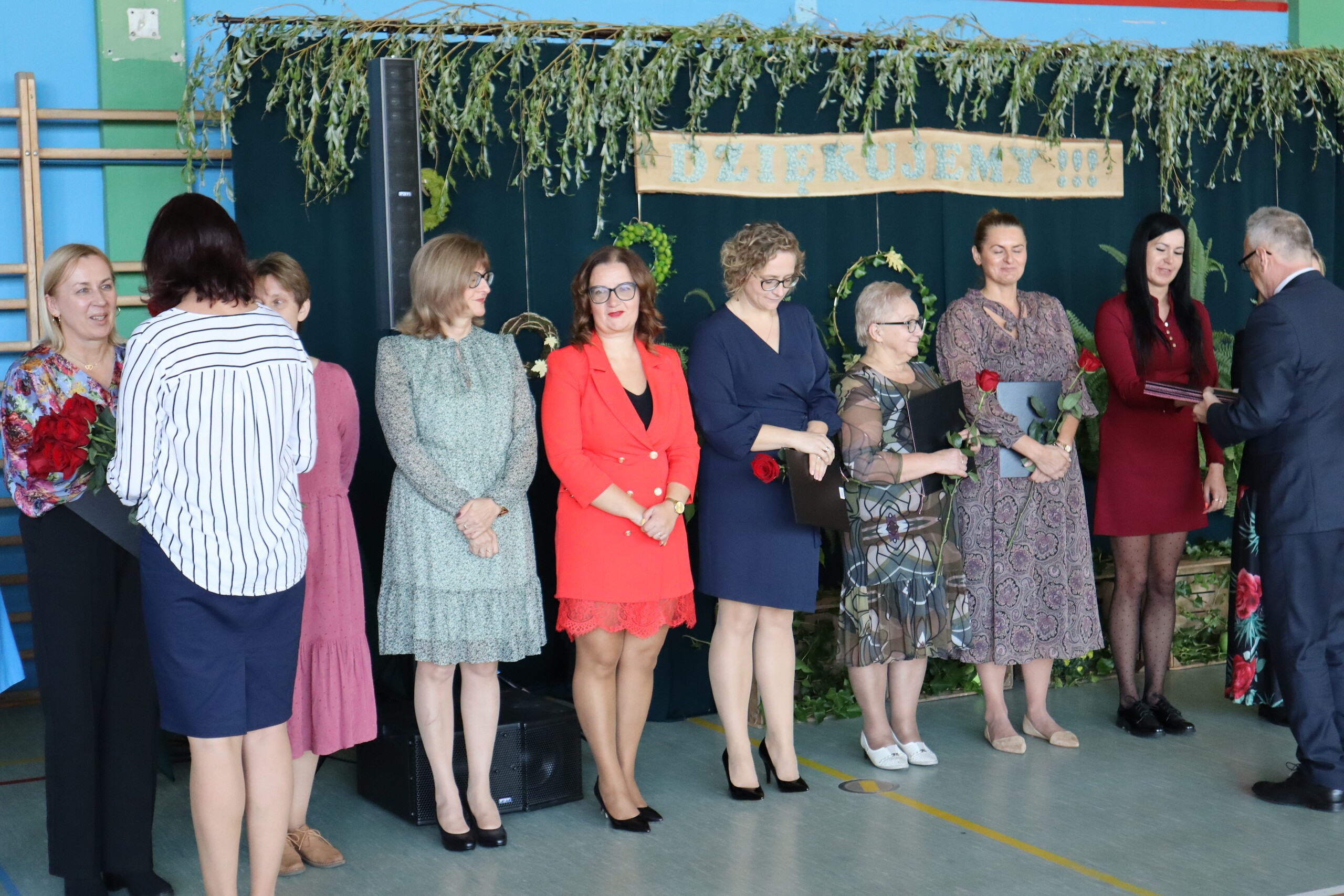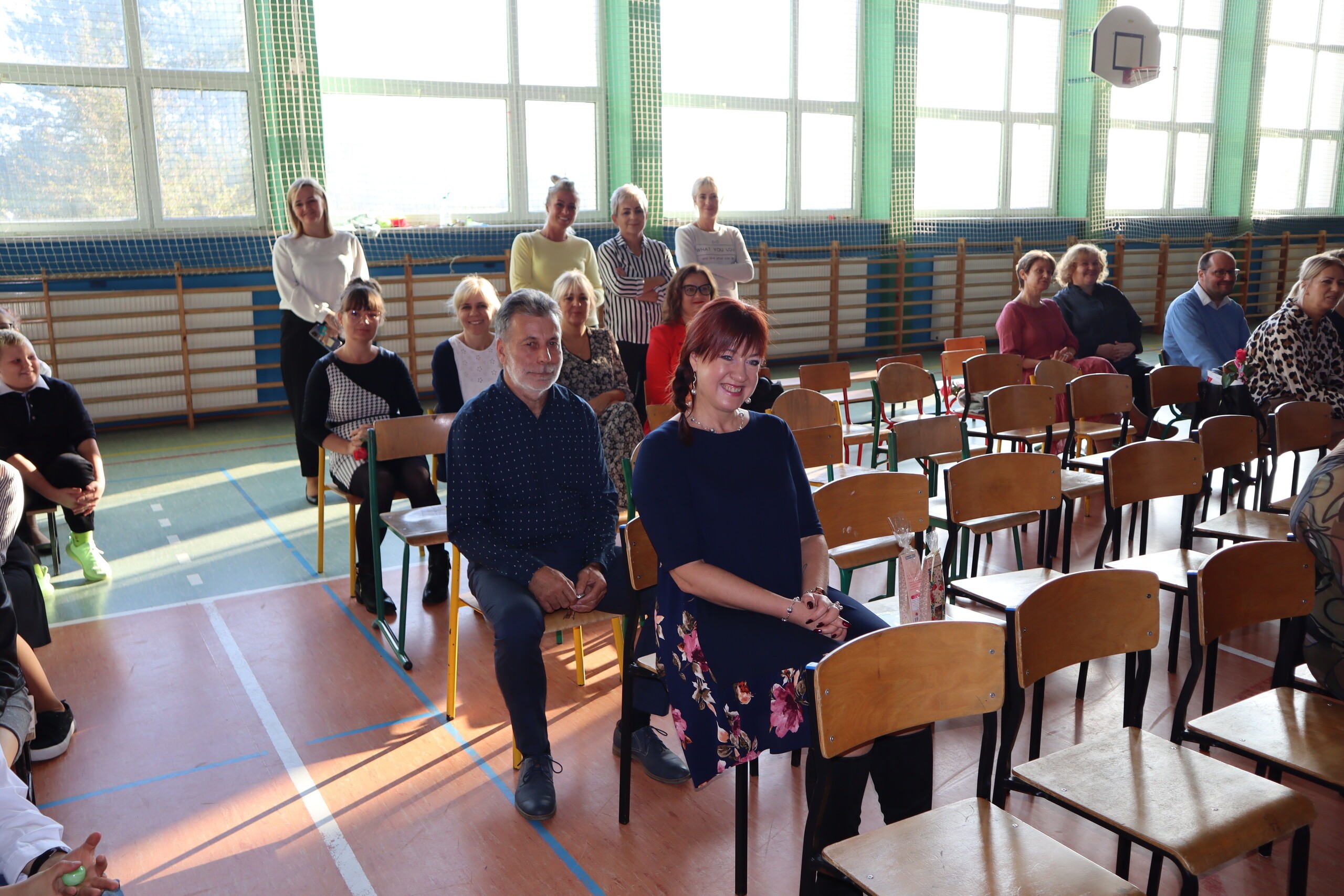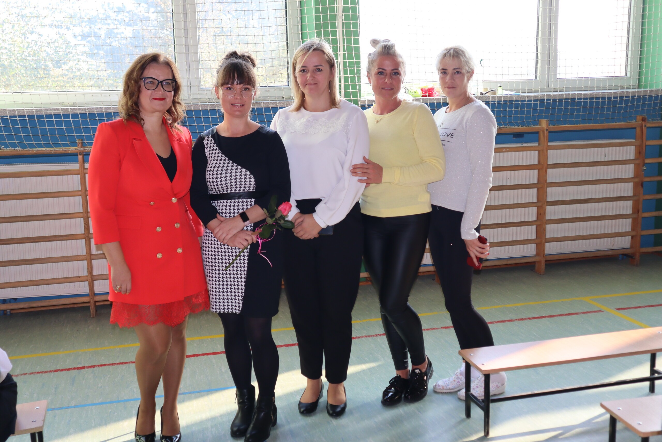 13 października 2022 r. odbyła się uroczystość z okazji Dnia Edukacji Narodowej, na którą przybyli nauczyciele, pracownicy administracji i obsługi, oraz uczniowie. W części artystycznej uczniowie klasy II i III tańcem i śpiewem wyrazili swoje podziękowanie i słowa uznania dla trudnej pracy pedagogów. Na zakończenie reprezentanci Samorządu Uczniowskiego wręczyli nauczycielom i pracownikom szkoły drobny upominek. Uroczystość wywołała uśmiech zarówno nauczycieli, jak i uczniów. Naładowani pozytywną energią wróciliśmy na lekcje.