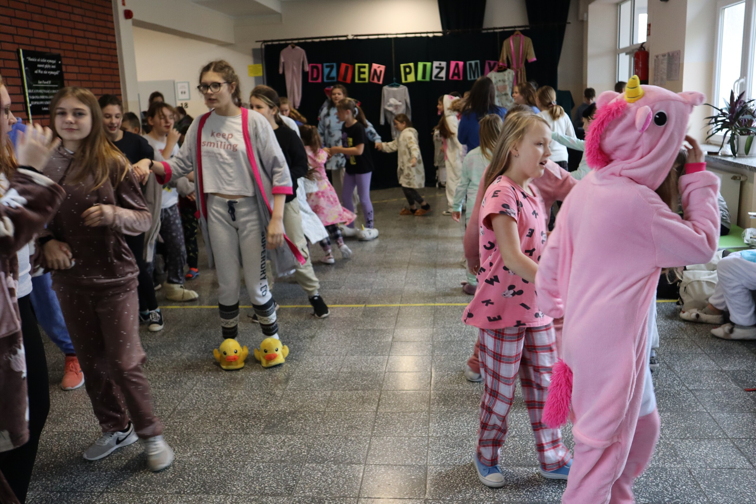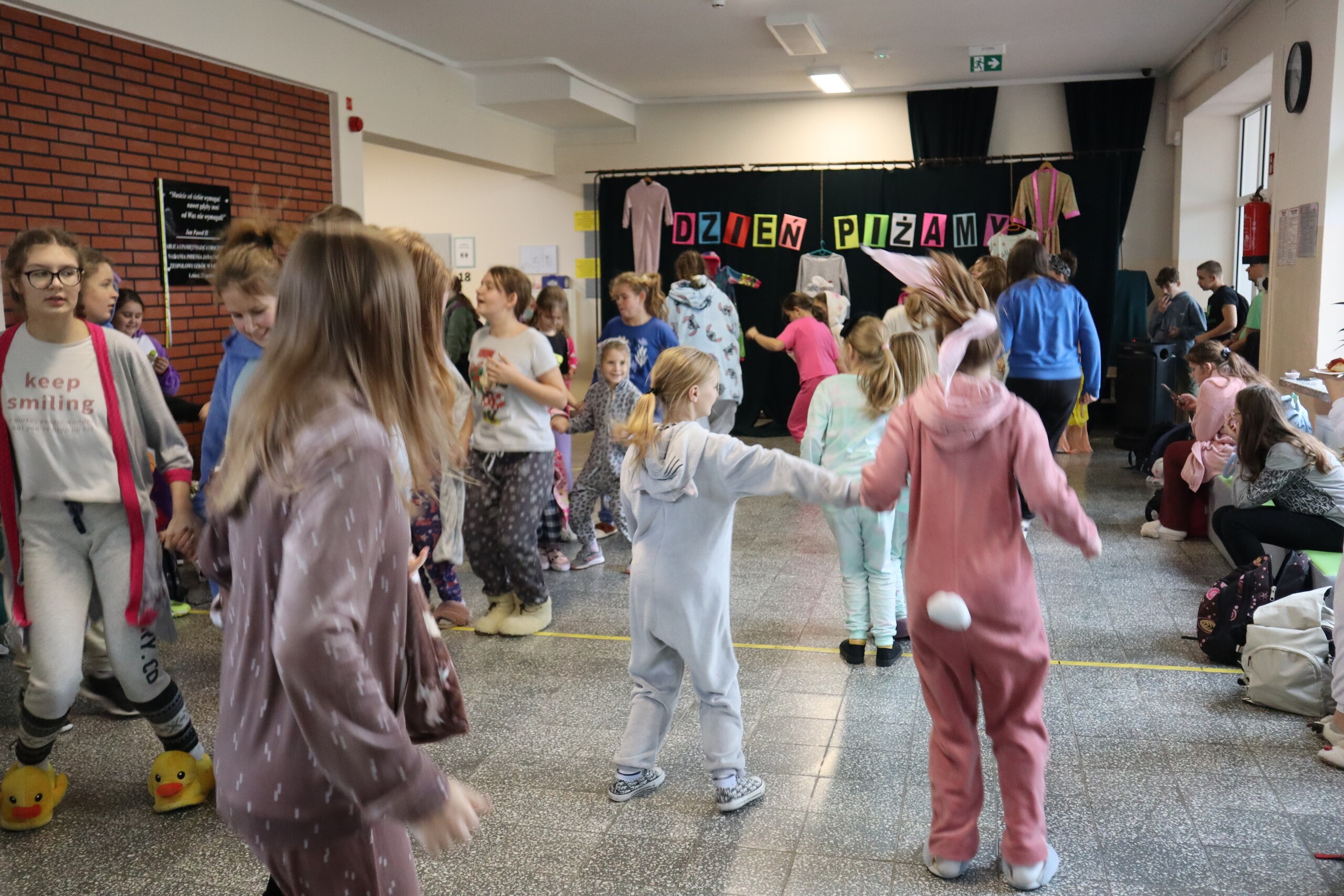7 listopada nasza szkoła wzięła udział w ogólnopolskiej akcji charytatywnej „Dzień w Piżamach”, której głównym celem była zbiórka środków na pomoc dzieciom z chorobami nowotworowymi. Założyliśmy piżamki, szlafroczki, chcąc tym sposobem okazać wsparcie i solidarność z chorymi. Dlaczego akurat piżamki? Bo to typowe ubranie chorych dzieci leżących na oddziałach szpitalnych.