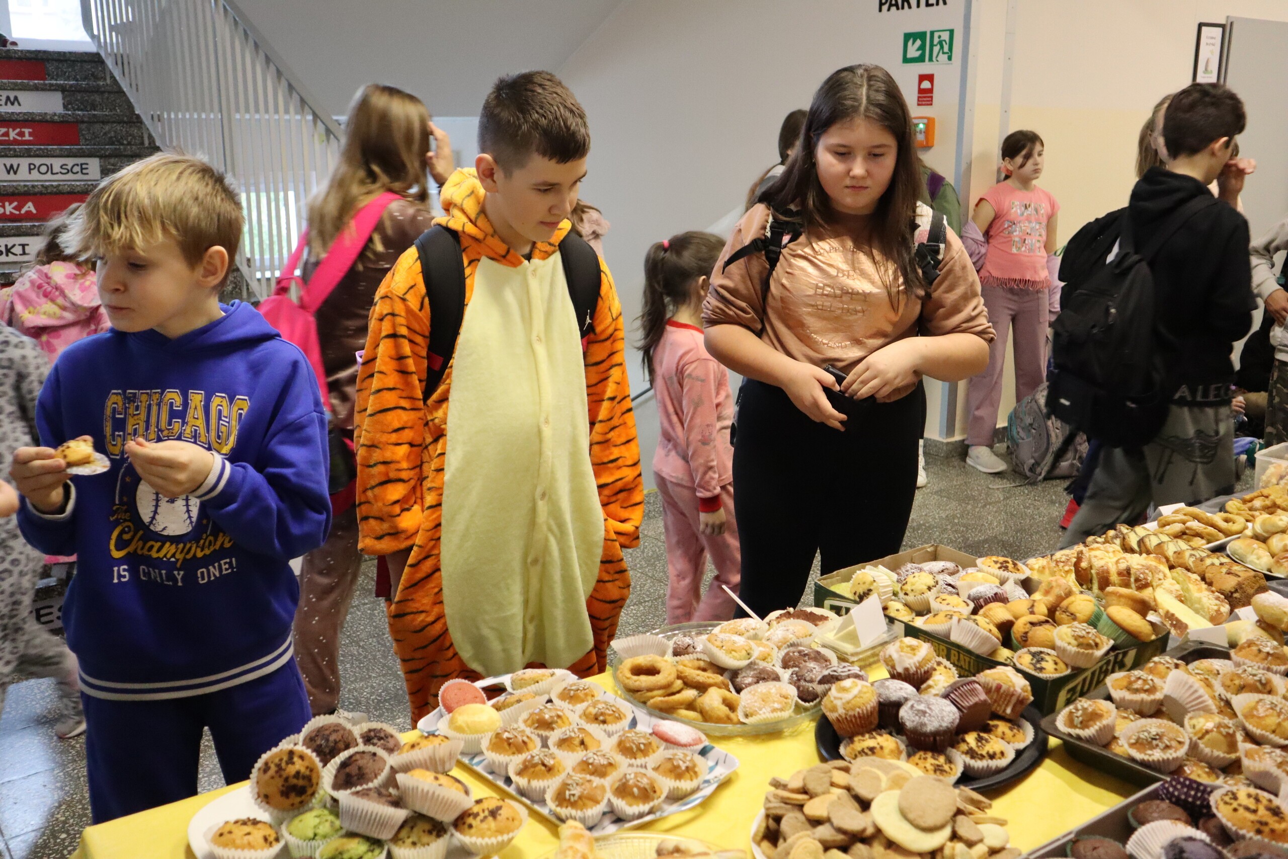 W tym szczególnym dniu cała społeczność szkolna miała okazję uczestniczyć w piżamowej zumbie, zabawach zorganizowanych przez Samorząd Uczniowski oraz każdy mógł zakupić pyszne wypieki rodziców uczniów naszej szkoły. Serdecznie dziękujemy rodzicom za wsparcie akcji oraz pomoc w obsłudze stoiska kiermaszowego.