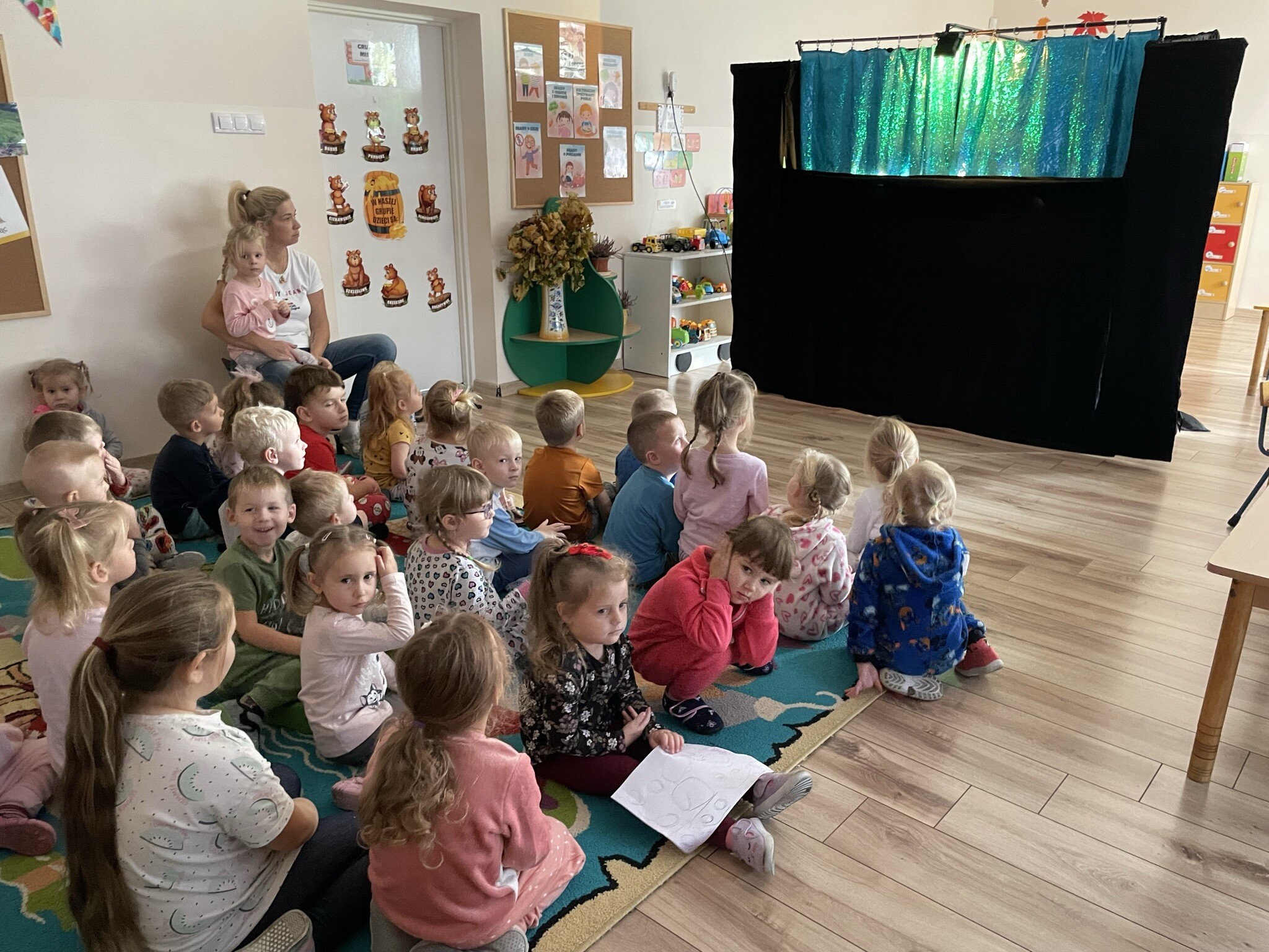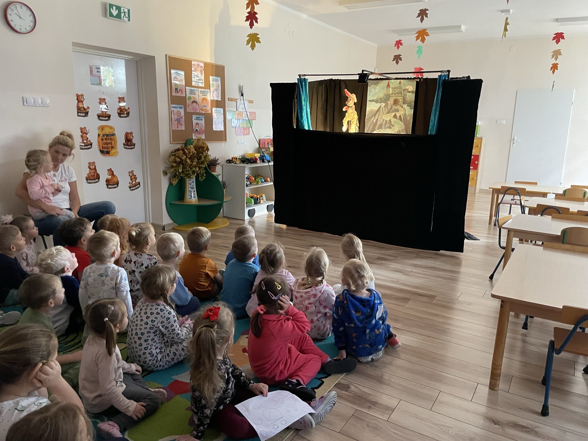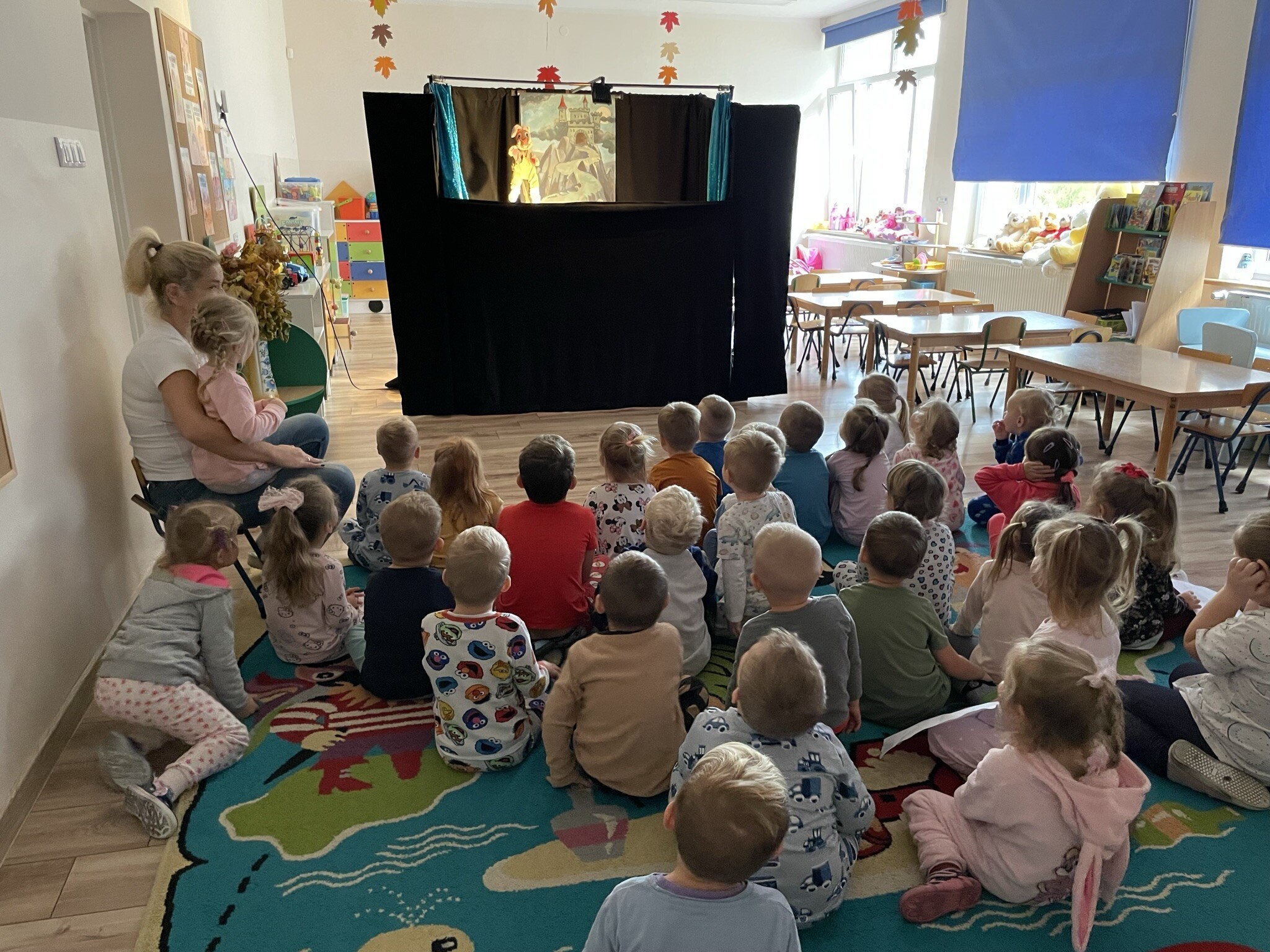 7 listopada - ten dzień przyniósł wiele atrakcji naszym przedszkolakom. Obchodziliśmy Dzień Piżamy- akcję charytatywna mającą na celu solidaryzowanie się z dziećmi z oddziałów onkologicznych. Wszyscy wskoczyliśmy w kolorowe piżamy, szlafroki, kapcie i popędziliśmy na kiermasz charytatywny. Zaraz po nim w naszym przedszkolu zagościł teatrzyk kukiełkowy, który zapewnił dzieciom wiele ciekawych wrażeń. Oglądaliśmy spektakl pt. "W zamku króla".