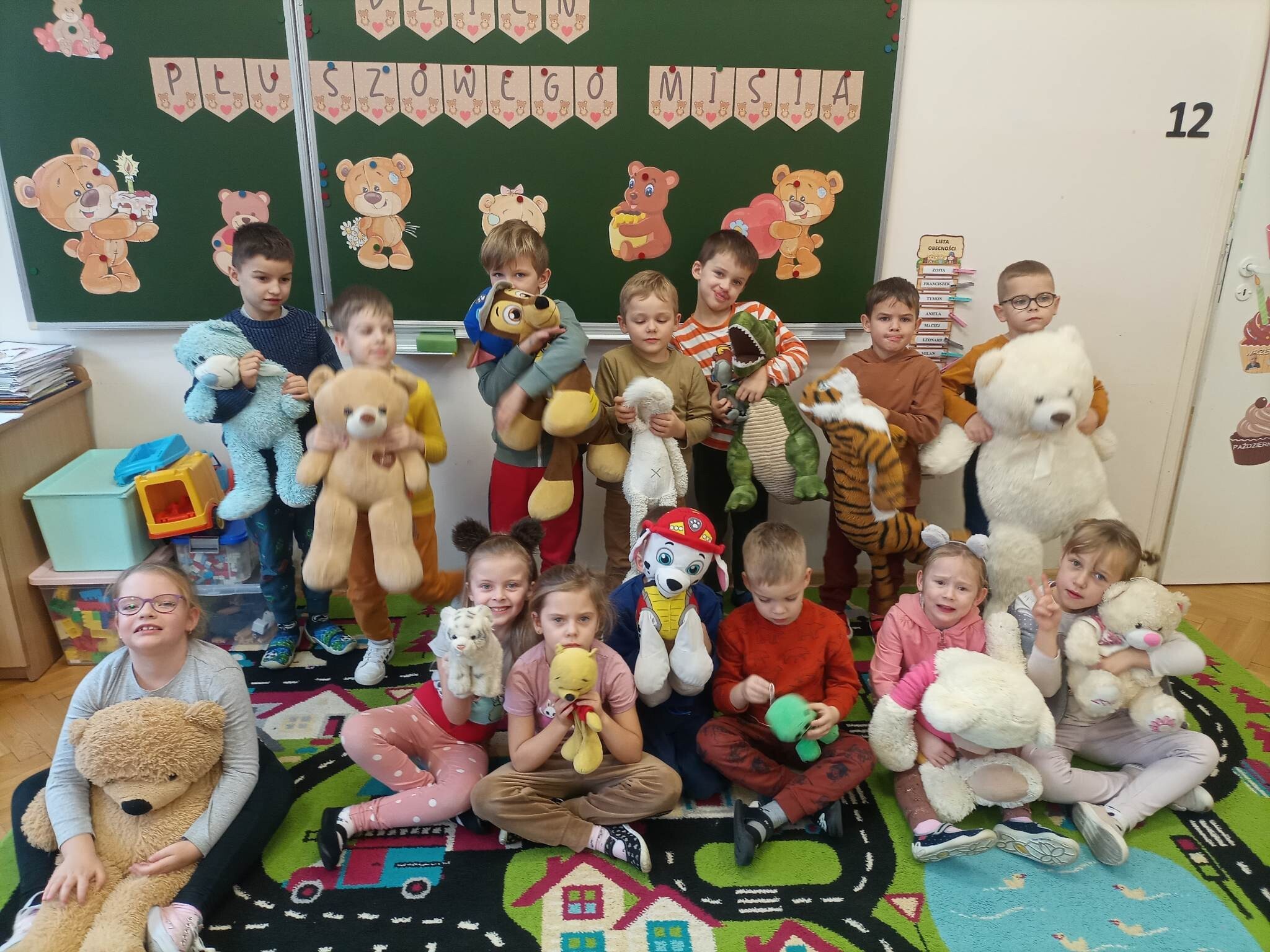 W tym wesołym dniu przedszkolaki czekało wiele atrakcji. Zostały zaproszone do wspólnej zabawy ze swoimi misiami, poznały historię ich święta, oglądały o nich bajki oraz prezentację przedstawiającą ilustracje i imiona różnych misiów. Bawiły się przy piosenkach m.in.: "Dwa malutkie misie", "Jadą, jadą misie" Brały udział w różnych zabawach ruchowych, konkursach, quizach, zgadywankach, wykonywały prace plastyczne.