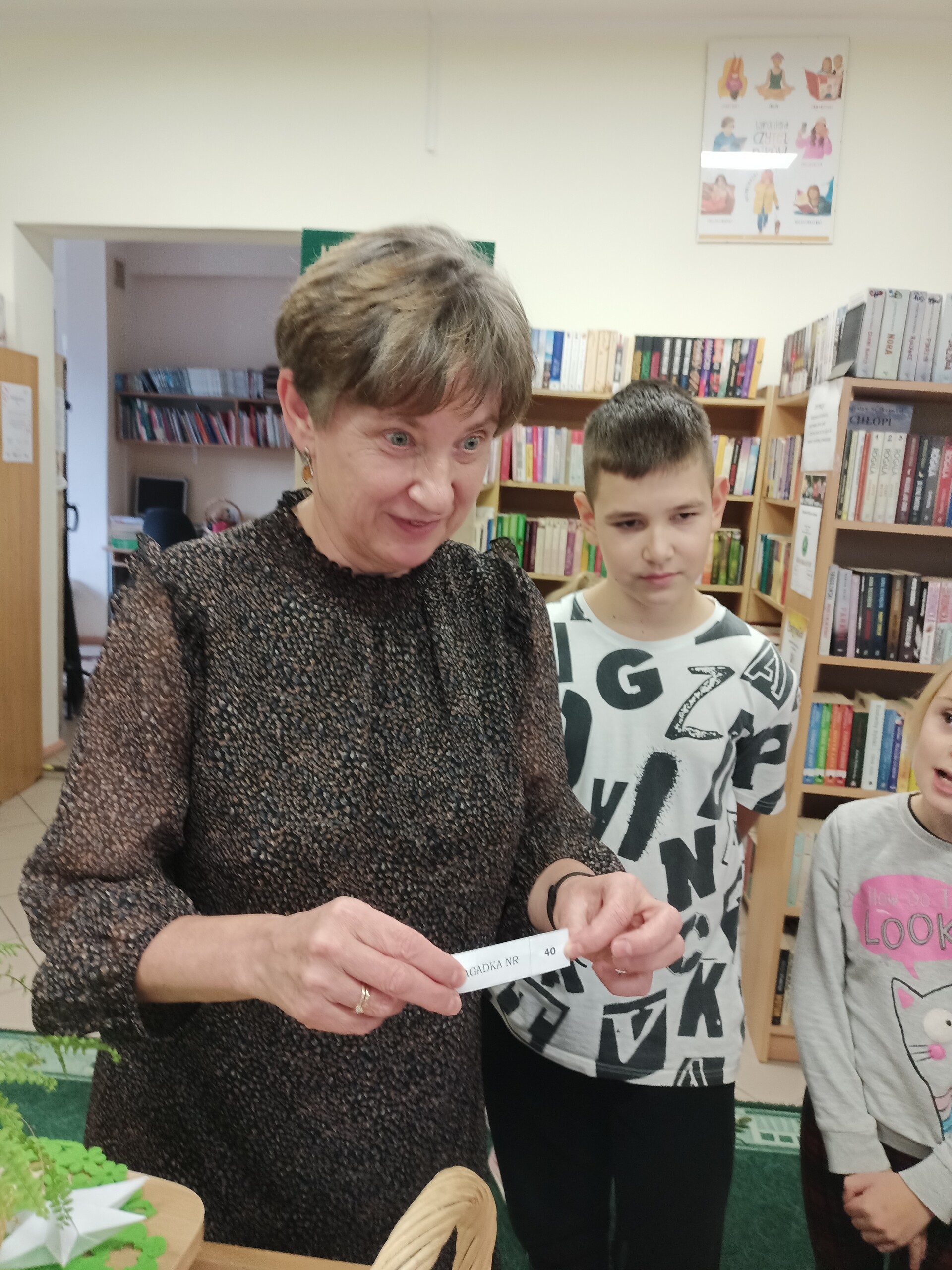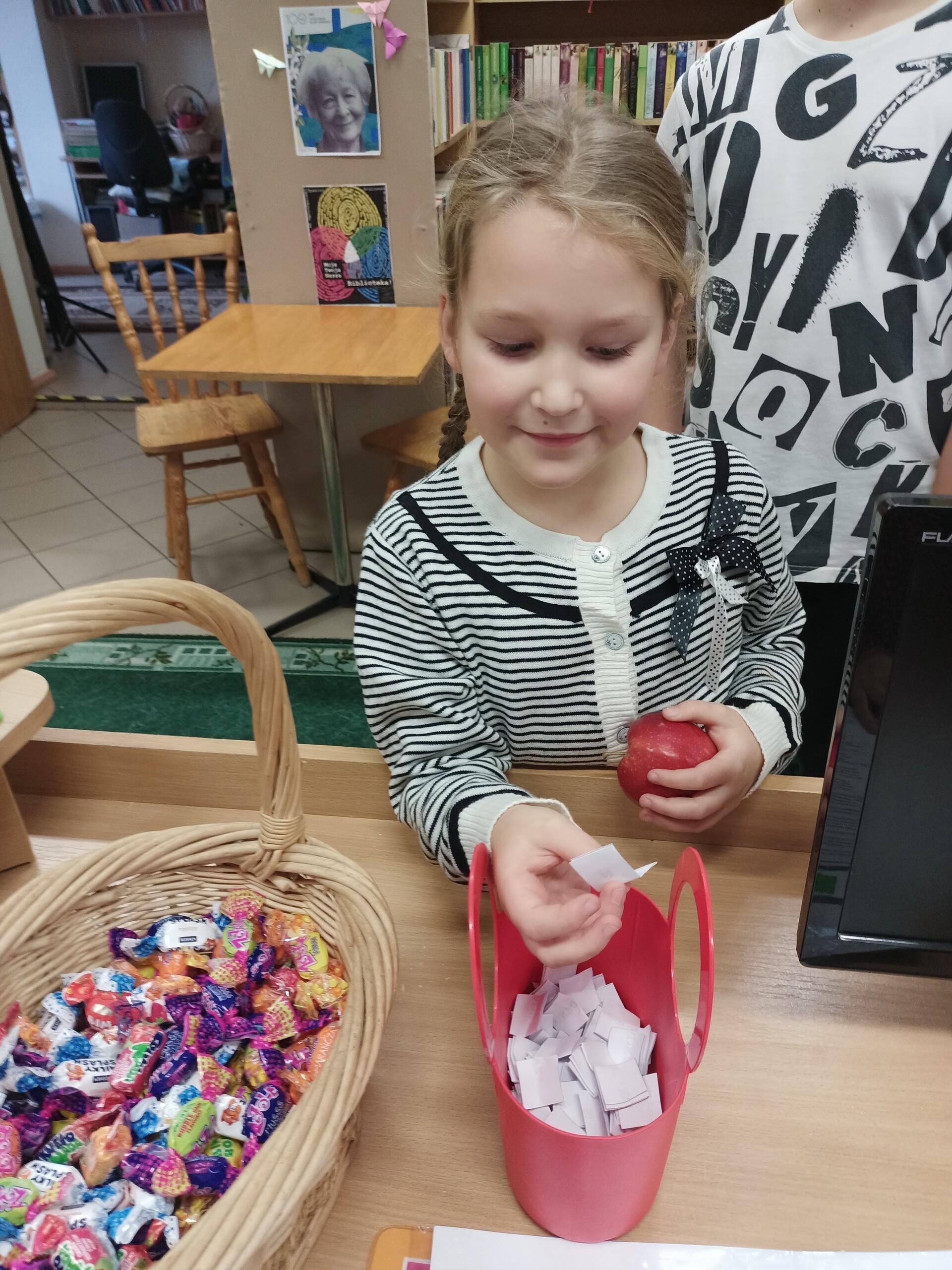 6 listopada młodzi czytelnicy chętnie odwiedzali bibliotekę, by sprawdzić swą znajomość baśni rozwiązując zagadki, wykonując wylosowane zadania (krzyżówki, rebusy, bajkowe sudoku i inne). Chętnych było wielu. Każdy miał okazję wygrać drobną nagrodę