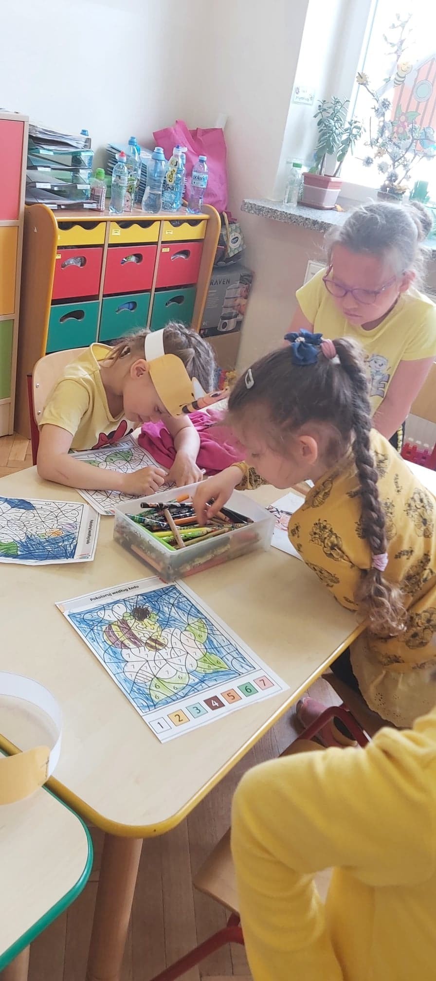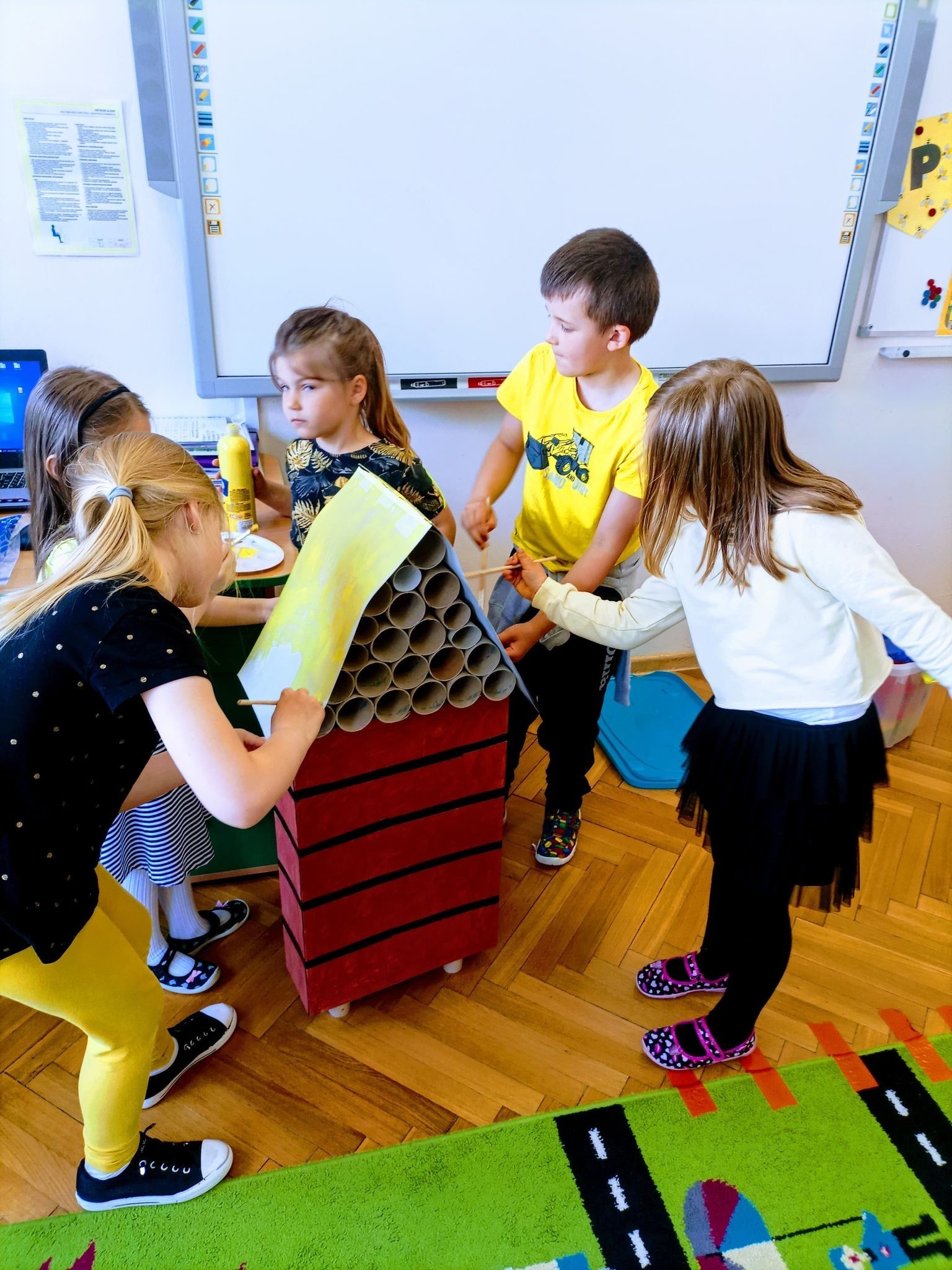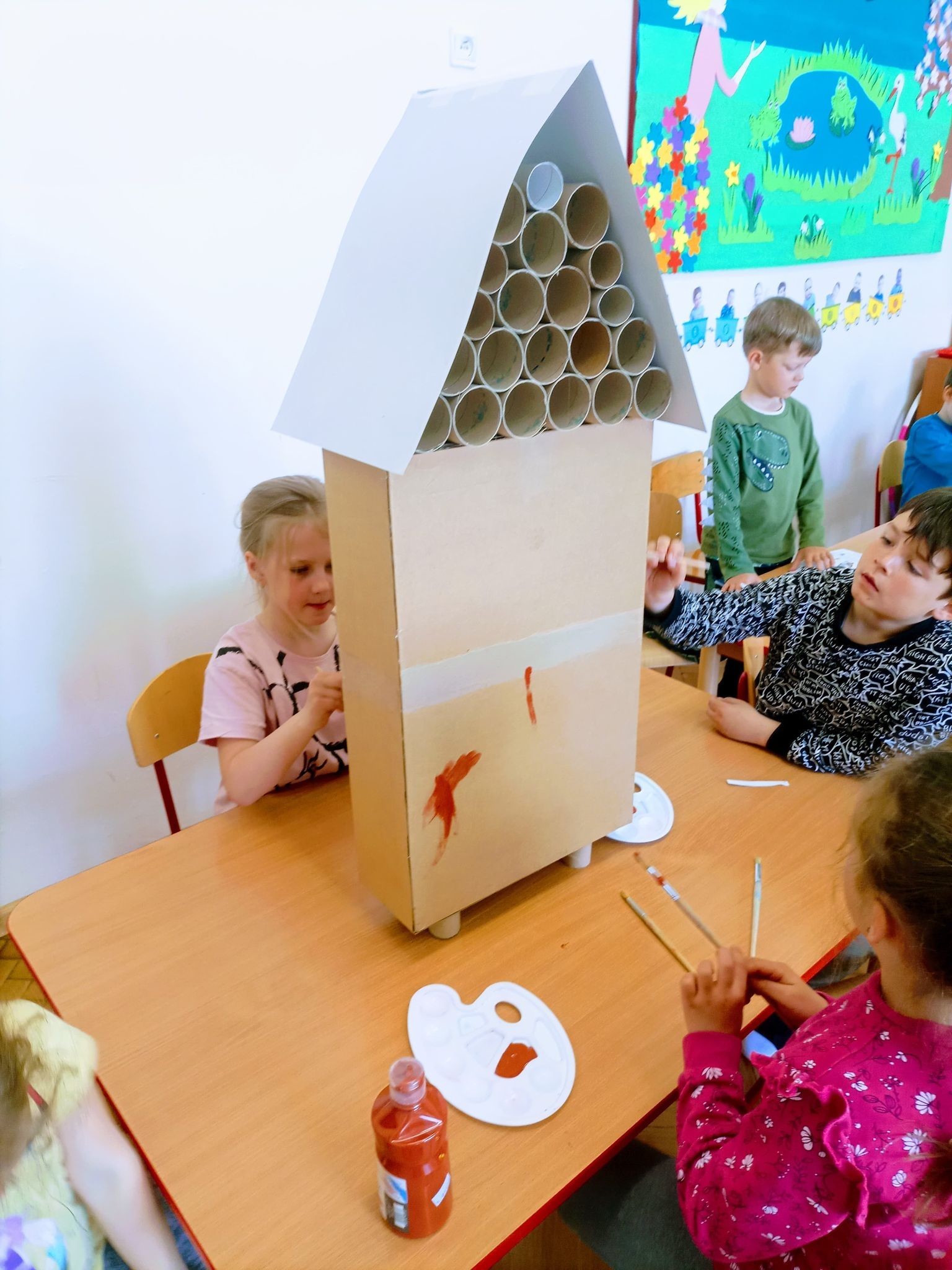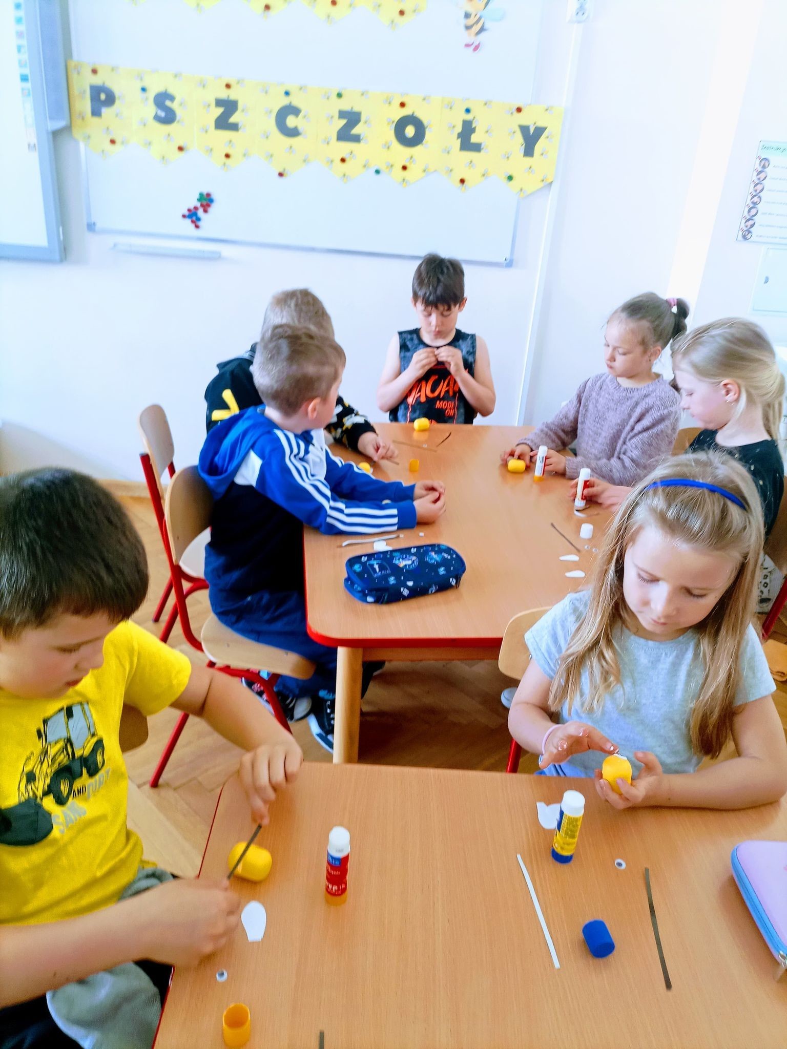 Wszystkie grupy z wielkim zaangażowaniem wykonywały również prace plastyczne. Powstały także piękne ule dla pszczółek. Dzień był pełen wrażeń, a dzieci były pracowite jak pszczółki.