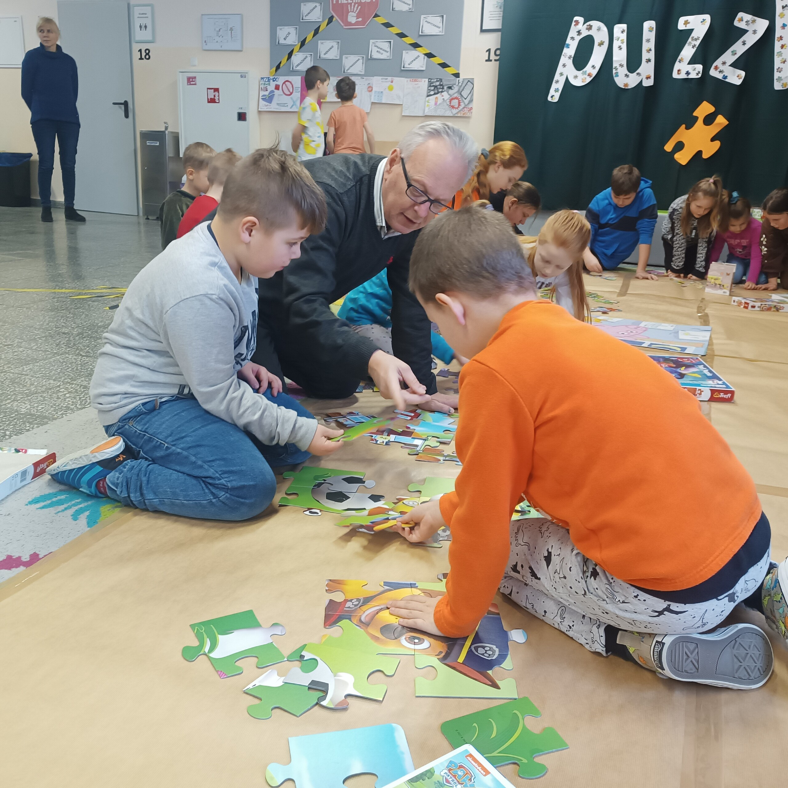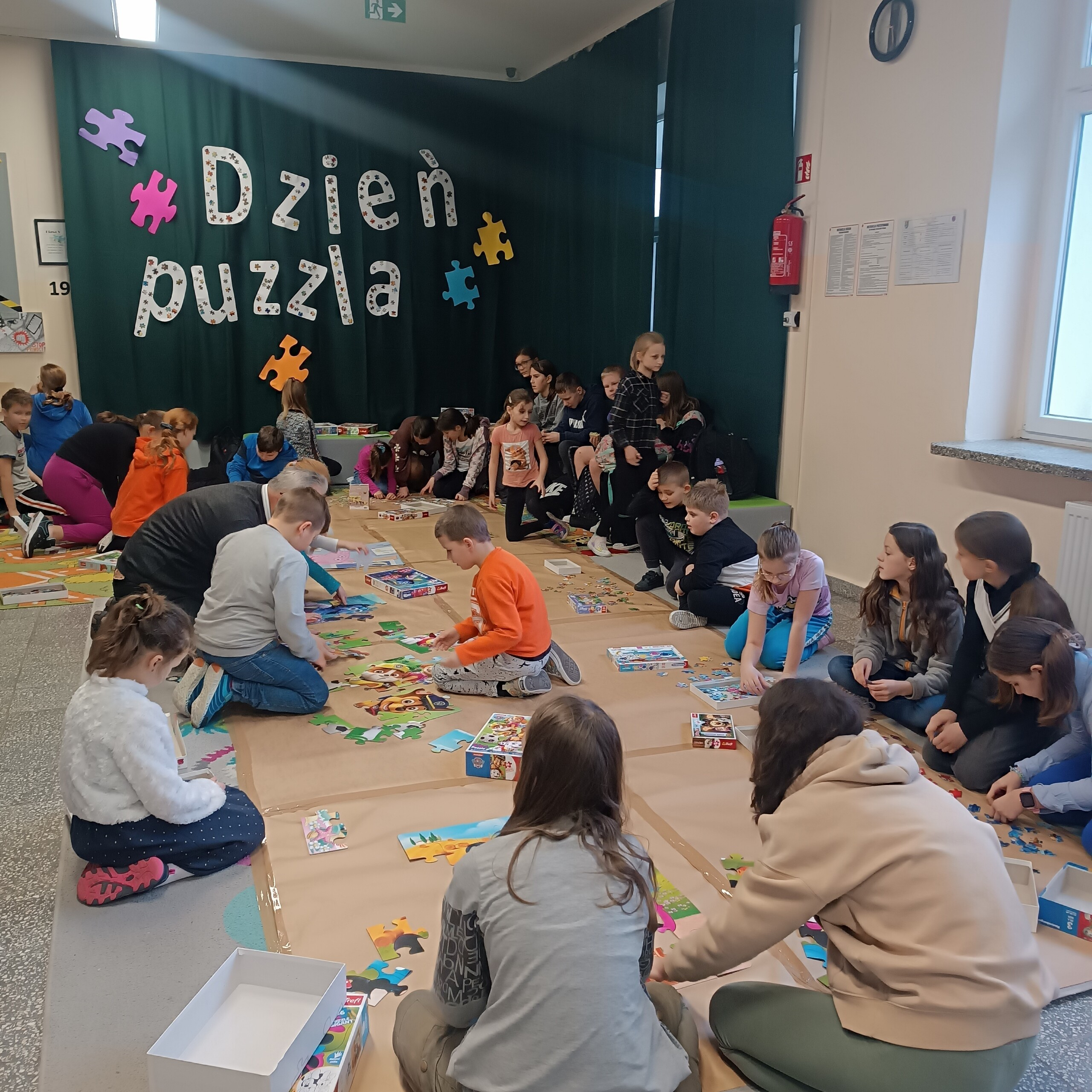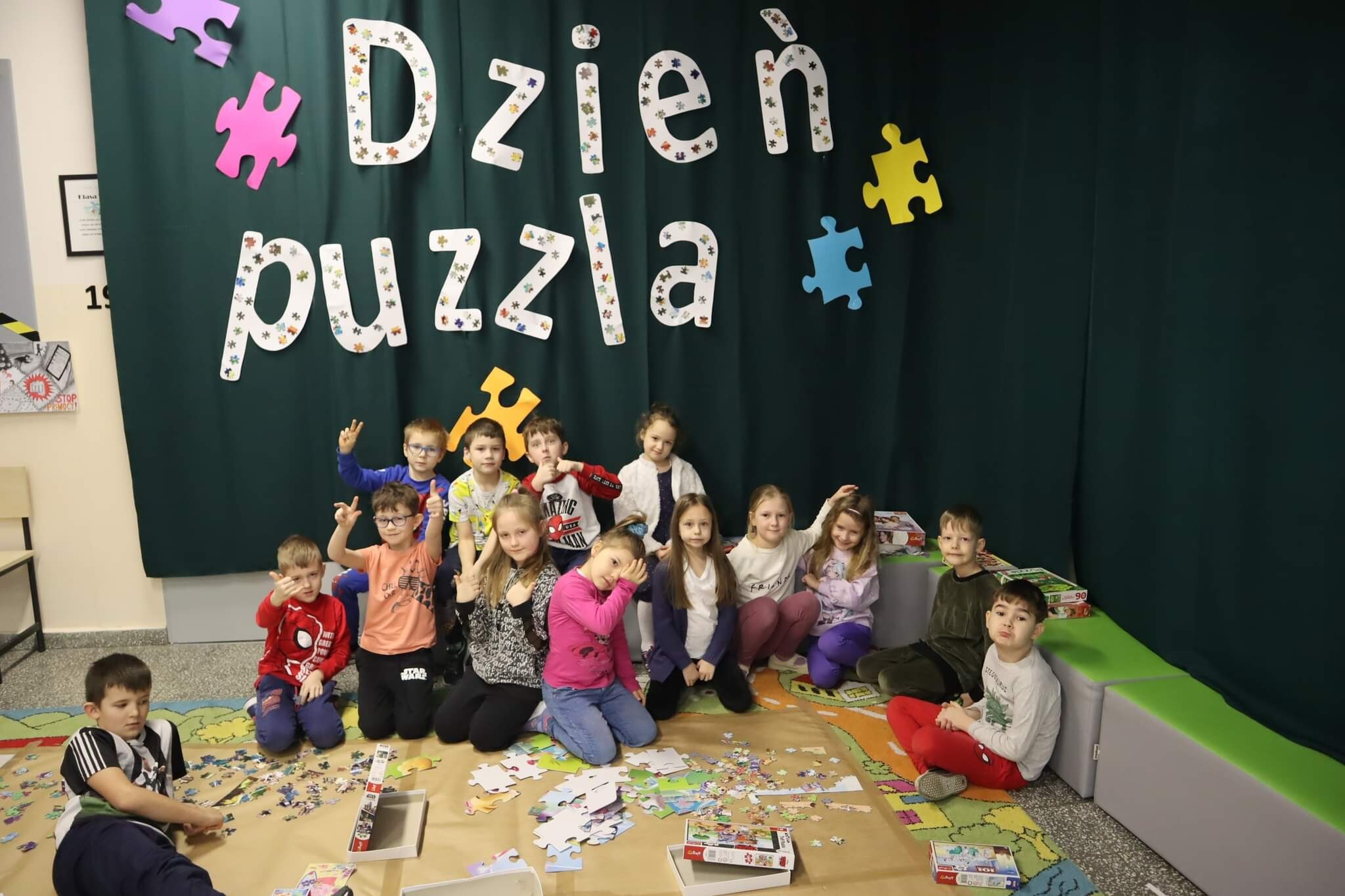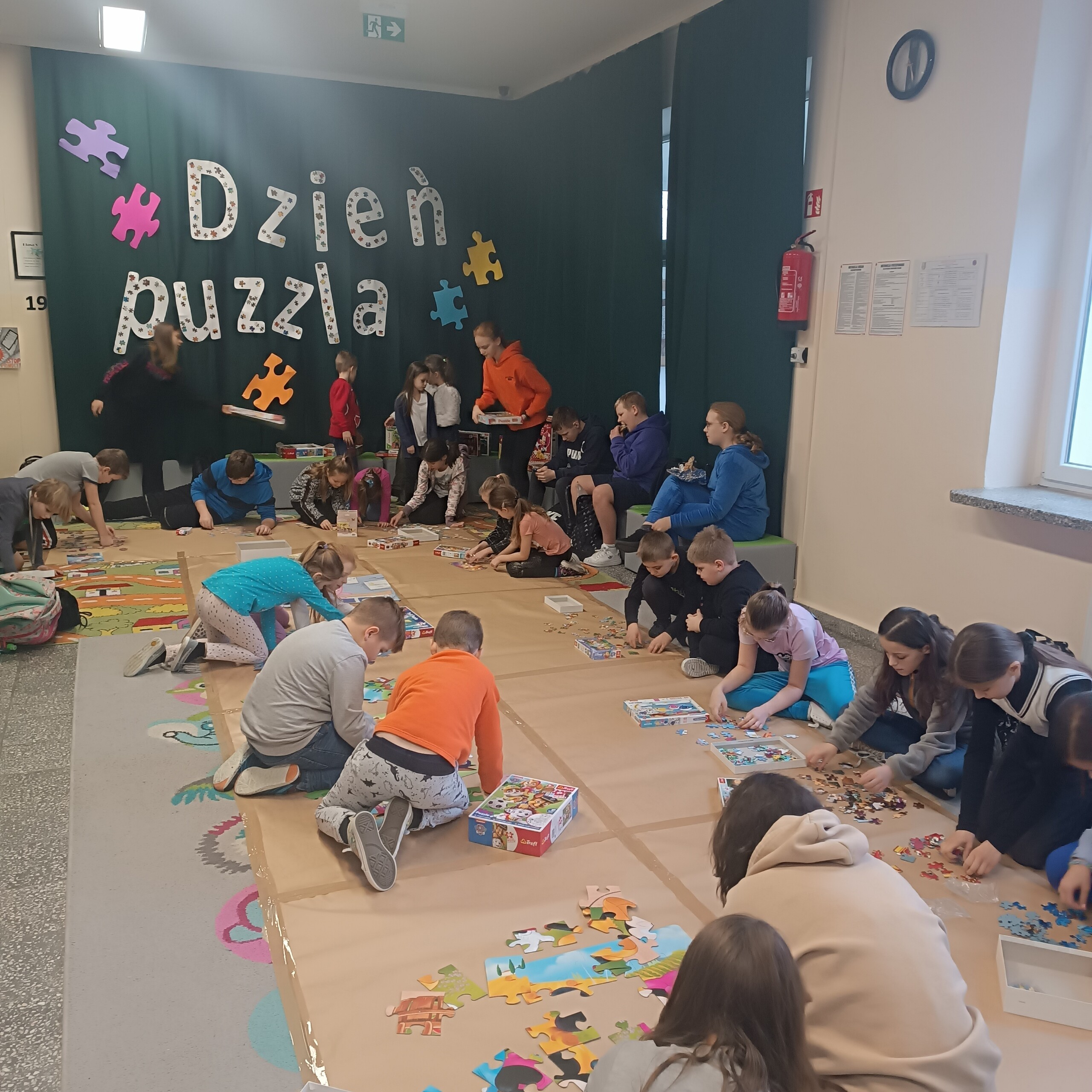 Tego dnia na szkolnym holu emocji i uśmiechów nie było końca. Udało się ułożyć 15 wzorów puzzli różnego rodzaju trudności, tym samym ustaliliśmy pierwszy szkolny rekord, który za rok będziemy chcieli pokonać!. Układanie puzzli to jedna z ciekawszych propozycji spędzania wolnego czasu z wieloma walorami edukacyjnymi. Zabawa nimi rozwija zdolność analizy i syntezy wzrokowej, stymuluje rozwój mózgu, ćwiczy spostrzegawczość, koncentrację i cierpliwość. Buduje także wiarę we własne możliwości, trenuje pamięć i rozwija manualnie. Dodatkową zaletą układania puzzli jest zmniejszanie poziomu stresu.