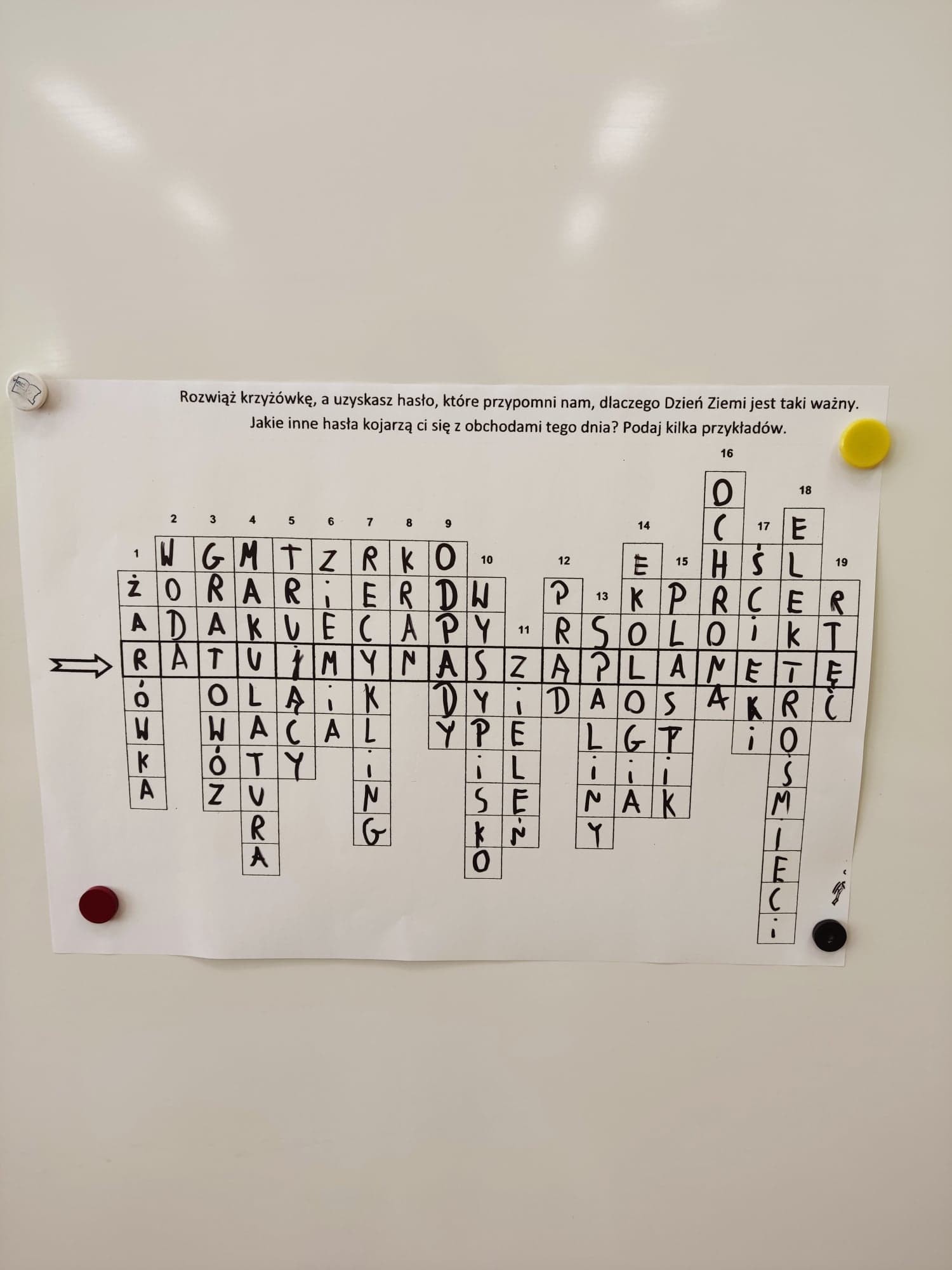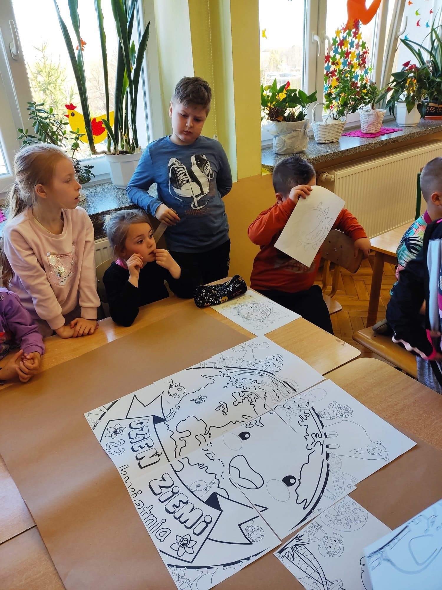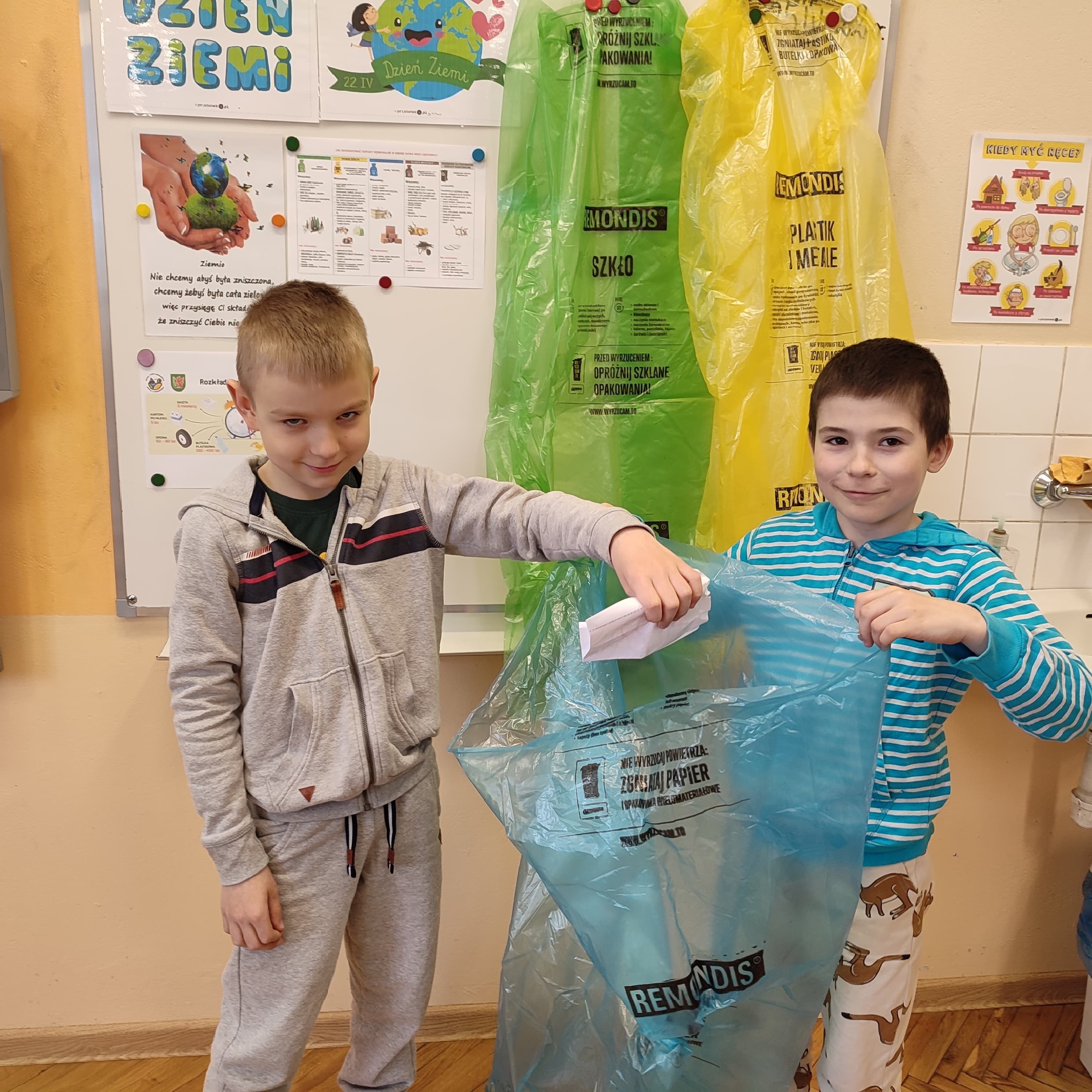22 kwietnia na całym świecie obchodzony jest Dzień Ziemi. W naszej szkole uczniowie najmłodszych klas brali udział w lekcjach poświęconych ochronie i dbaniu o środowisko, a także promowaniu postaw ekologicznych. Podczas lekcji oglądali ciekawe filmiki edukacyjne, dzięki którym dowiedzieli się, jak długo rozkładają się śmieci. Pisali życzenia dla Ziemi z okazji jej święta. Rozwiązywali krzyżówki i inne zadania związane z troską o środowisko. Powstał także piękny kolorowy plakat. Uczniowie wzbogacili swoją wiedzę na temat konieczności oszczędzania wody, energii elektrycznej i segregowania śmieci. Zastanawiali się jak możemy pomóc naszej planecie podając przykłady działań, dzięki którym każdy człowiek może pomóc Ziemi. Efektem końcowym był nagrany filmik, w którym uczniowie podsumowują swoje rozważania na temat ochrony naszej planety.