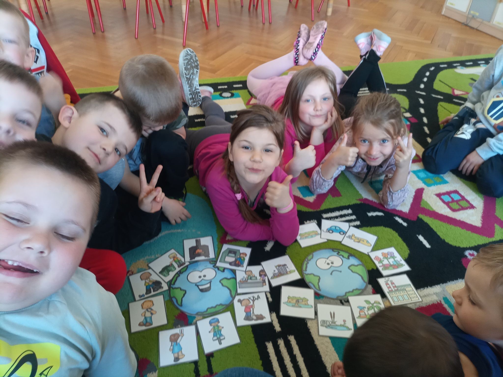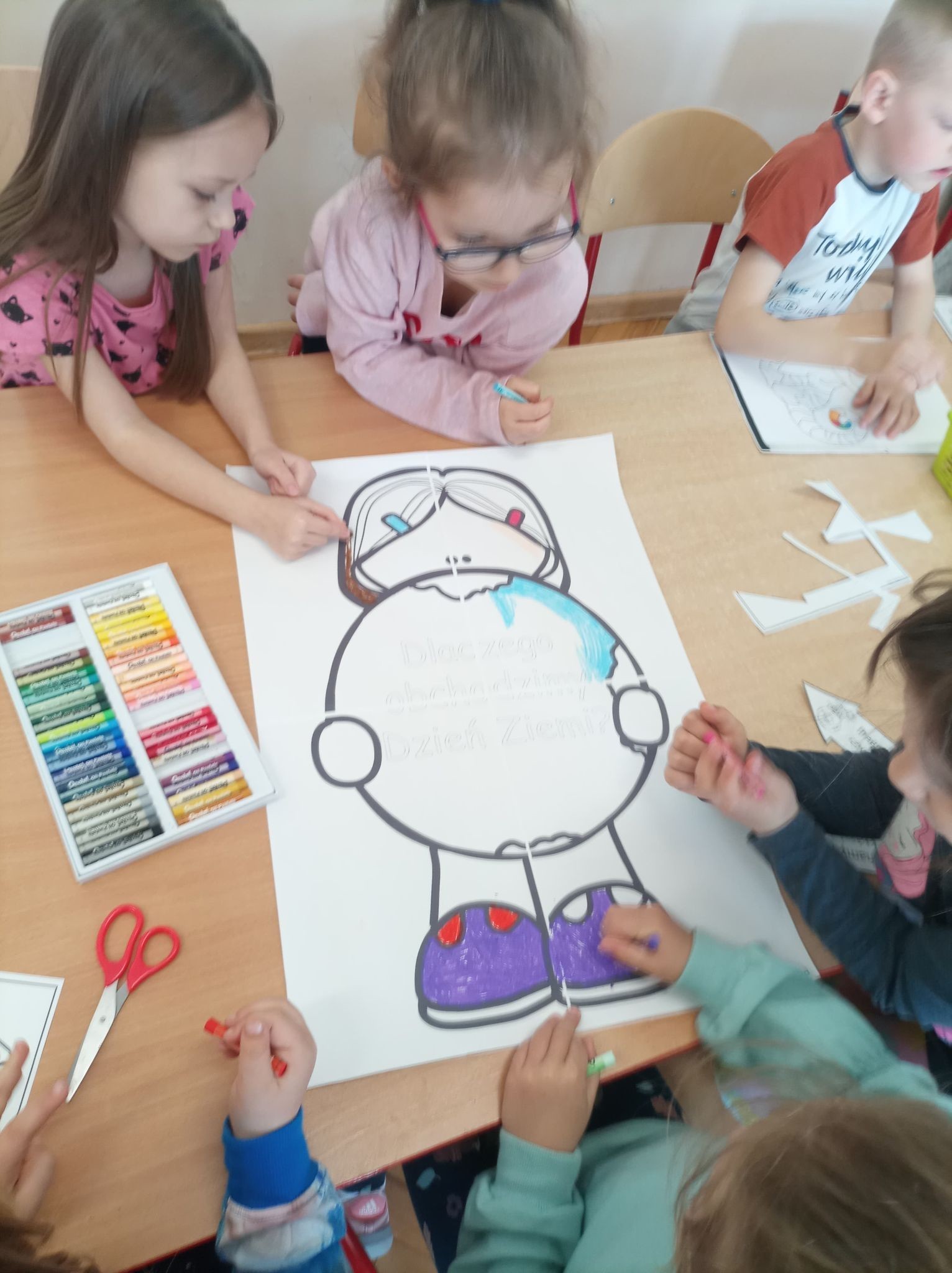 22 kwietnia obchodziliśmy w naszym przedszkolu Światowy Dzień Ziemi. W tym dniu odbyły się zajęcia ekologiczne. Przedszkolaki dowiedziały się o niebezpieczeństwach grożących środowisku przyrodniczemu ze strony człowieka. Poznały ekologiczny sposób wyrzucania śmieci, czyli segregację odpadów. Dowiedziały się wielu ciekawostek na temat Ziemi, która jest naszym wspólnym domem. Dzieci wykonały pracę plastyczną - ekologiczną kulę ziemską.