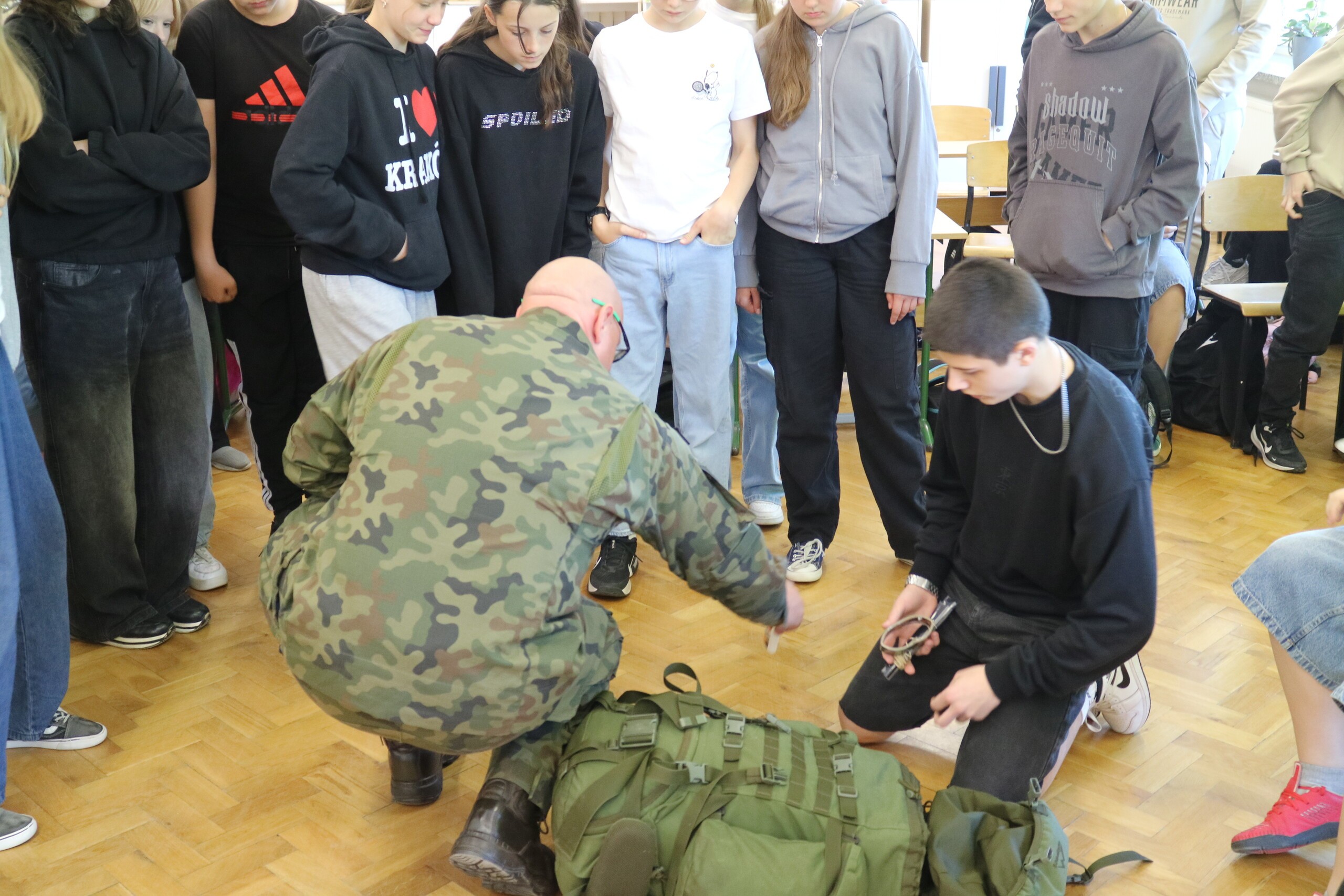 W naszej szkole w dniu 21 maja 2025r. odbyły się zajęcia w ramach programu pn. „Edukacja z wojskiem”. To program edukacyjno-obronny przygotowany i realizowany we współdziałaniu Ministerstwa Edukacji Narodowej i Ministerstwa Obrony Narodowej. Polega na przeprowadzeniu przez żołnierzy Wojska Polskiego specjalnie przygotowanych szkoleń w polskich szkołach podstawowych i ponadpodstawowych.
