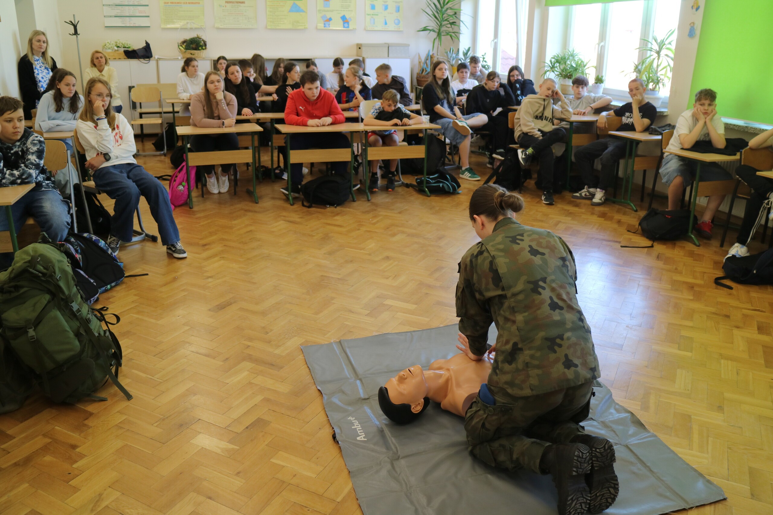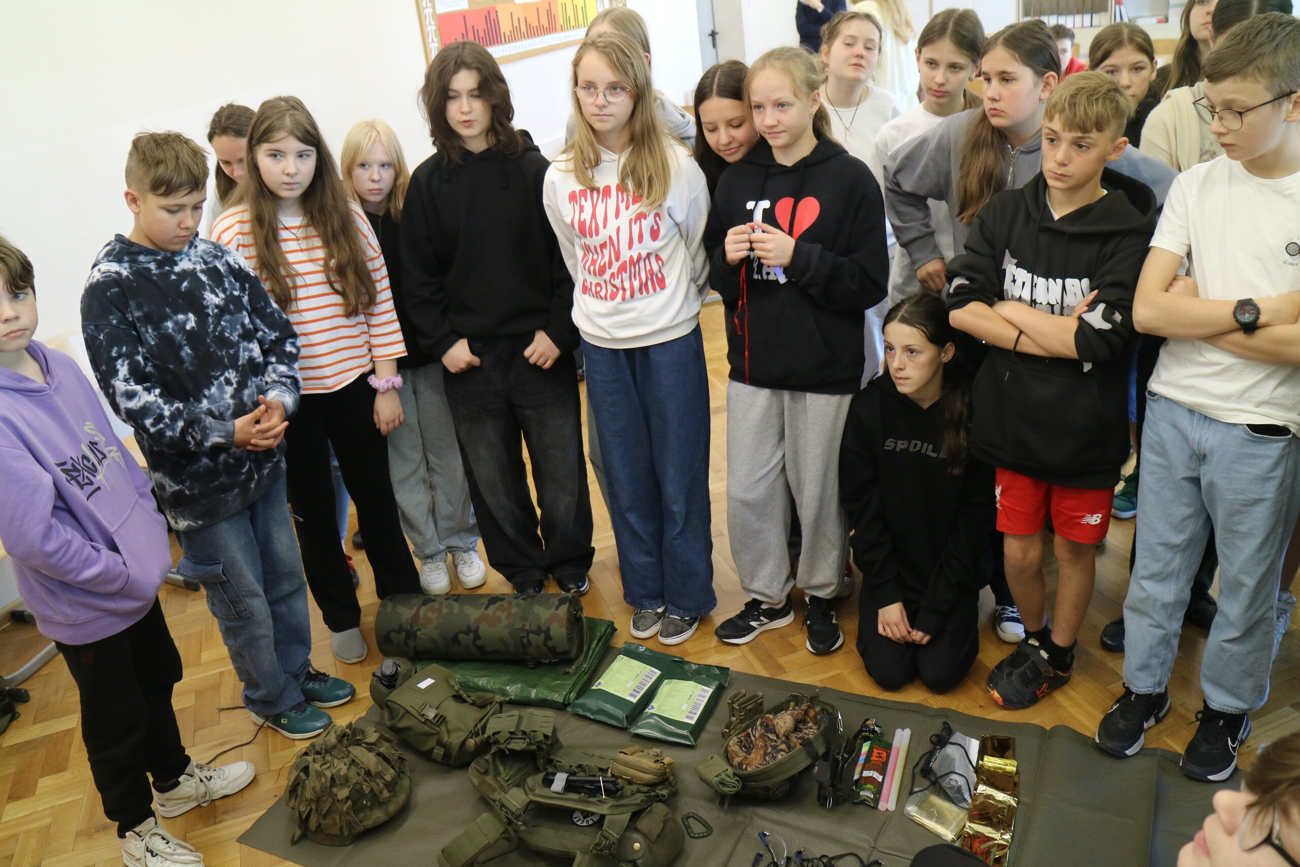 Uczniowie klasy szóstej i siódmej zapoznali się m.in. z zasadami alarmowania, sposobami szukania i wzywania pomocy, podstawami ewakuacji i schronienia oraz nawykami udzielania pomocy. W naszej szkole zajęcia prowadzili żołnierze z Jednostki Wojskowej w Lęborku. Serdecznie dziękujemy !