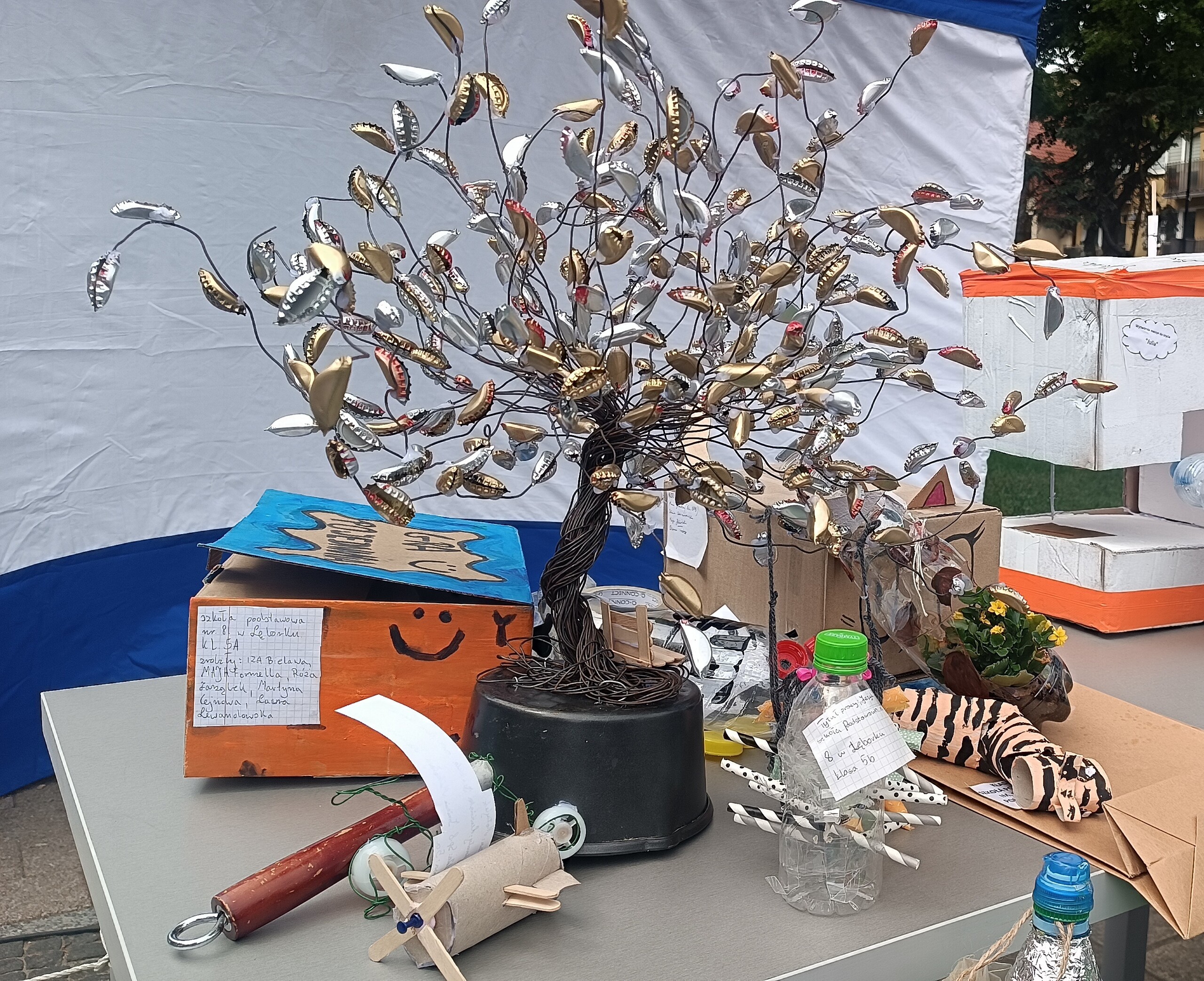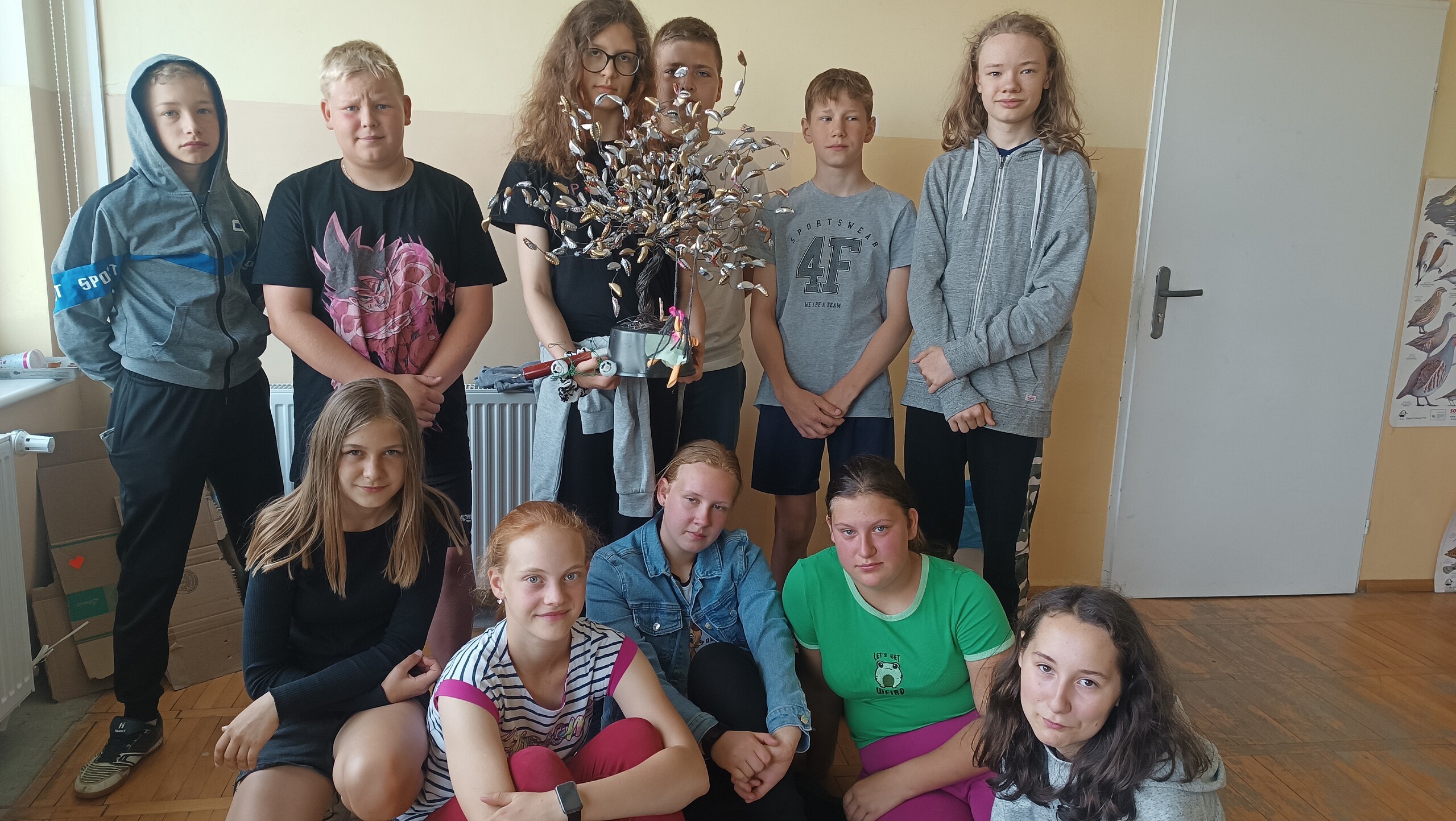 13.06.2023r. reprezentanci klas I, III i VI wzięli udział w zorganizowanym przez Zakład Zagospodarowania Odpadów „Czysta Błękitna Kraina” w Czarnówku Pikniku Ekologicznym pt.: „EKODZIECI NIE LUBIĄ ŚMIECI”. Uczniowie w zamian za przywiezione na piknik plastikowe butelki otrzymali dla szkoły sadzonki kwiatów. Poza tym EKODZIEŁO klasy VI : „DRZEWKO SZCZĘŚCIA” zdobyło I miejsce, a uczniowie wygrali wycieczkę do Tajnej Bazy Pirackiej w Grąbkowie. Gratulujemy uczniom klasy VI za pomysł oraz realizację swojego ekodzieła i życzymy niezapomnianych wrażeń z wycieczki.