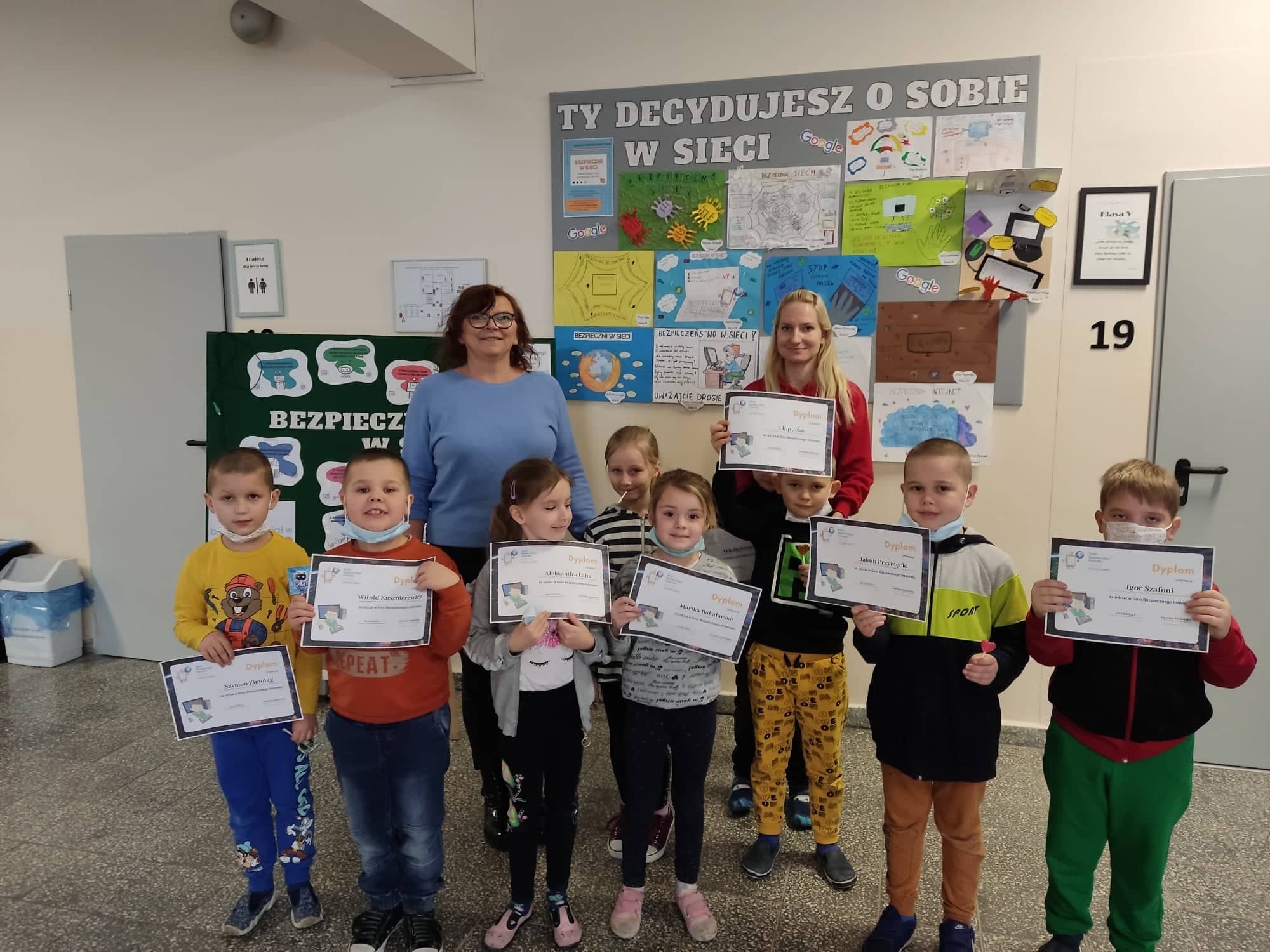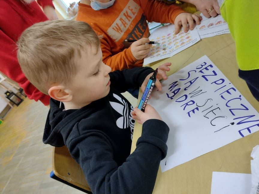 8 lutego obchodzony jest Dzień Bezpiecznego Internetu, w związku z tym i w naszej szkole uczniowie klas 1 – 4 zostali zapoznani z tym ważnym tematem. Zajęcia zostały przeprowadzone z w formie zabawy – Escape Room. Na początku zostały przypomniane dzieciom wszystkie zasady bezpieczeństwa w sieci i zapoznano uczniów z zasadami netykiety, czyli dobrego zachowania w internecie. Następnie uczestnicy zabawy odczytali list od rybaka Piotra, prosił on uczniów o pomoc dla złotej rybki, która wpadła w sieć internetu. Uczniowie z wielkim zaangażowaniem przystąpili do zadania. Szukali wskazówek, dzięki którym z łatwością mogli odnaleźć ukryte w klasie zadania do wykonania. Po każdym poprawnie wykonanym zadaniu zapisywali zdania, z których na końcu odczytali hasło. Wszystkie klasy wykazały się ogromną umiejętnością pracy zespołowej, dzięki czemu bez problemu wykonali wszystkie zadania i odgadli hasło: