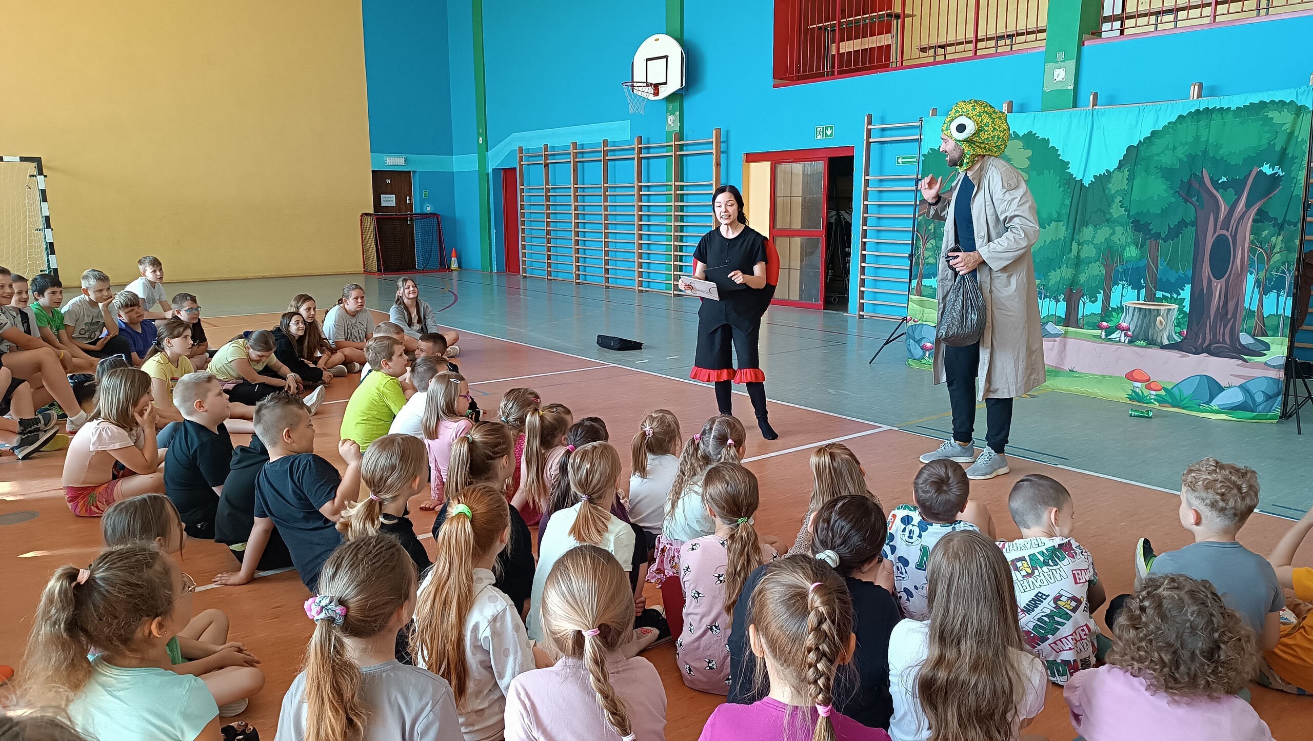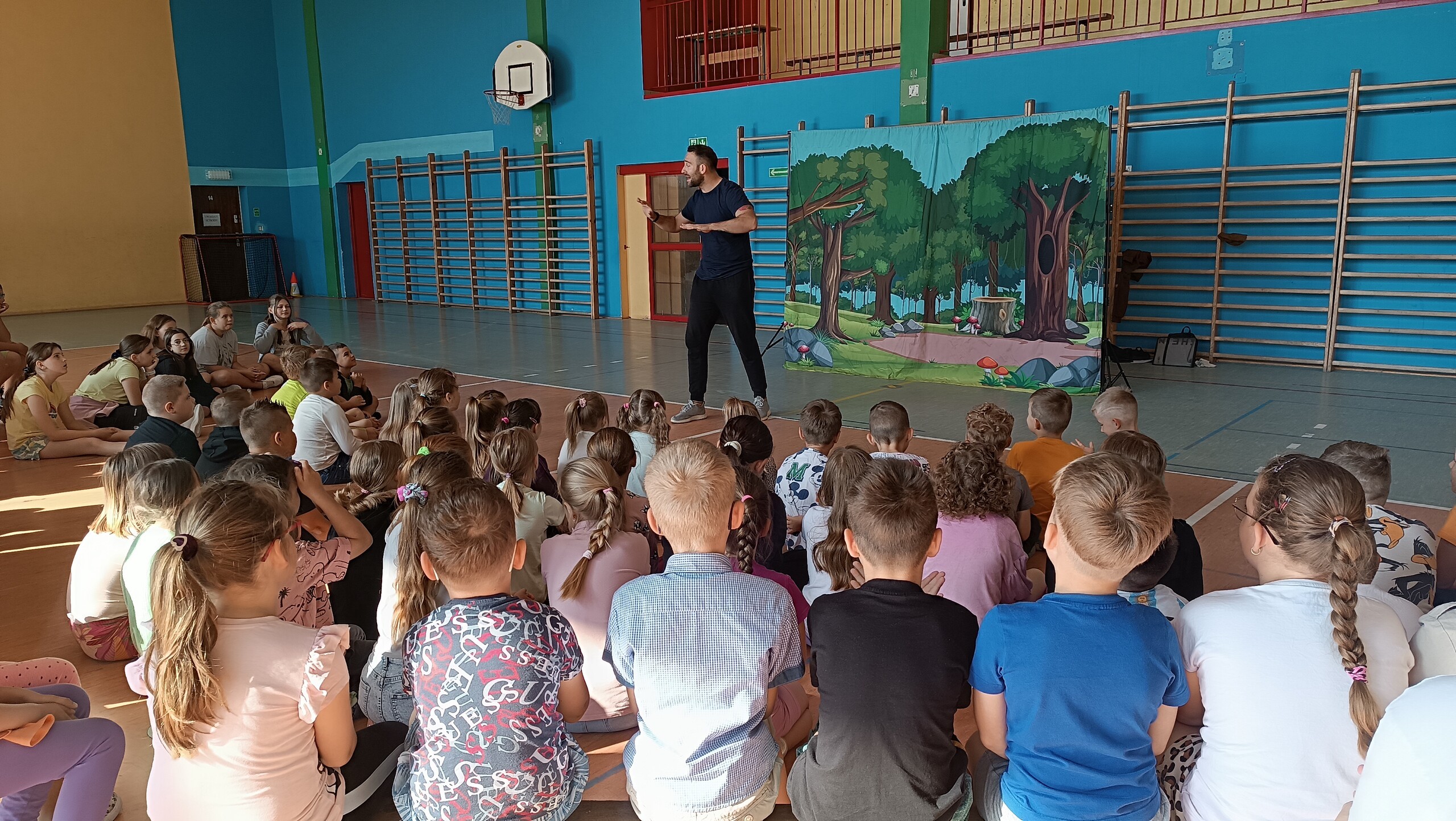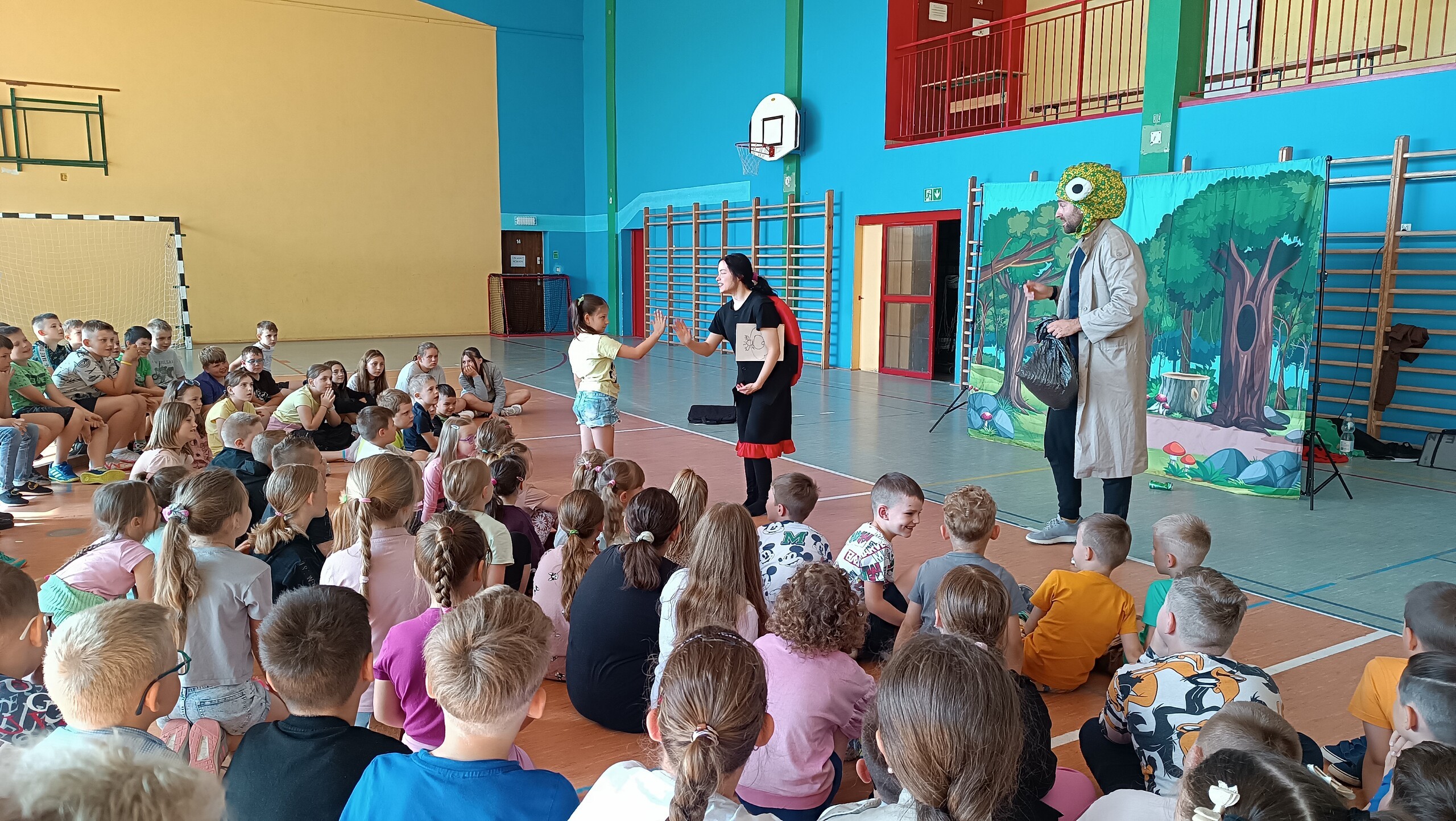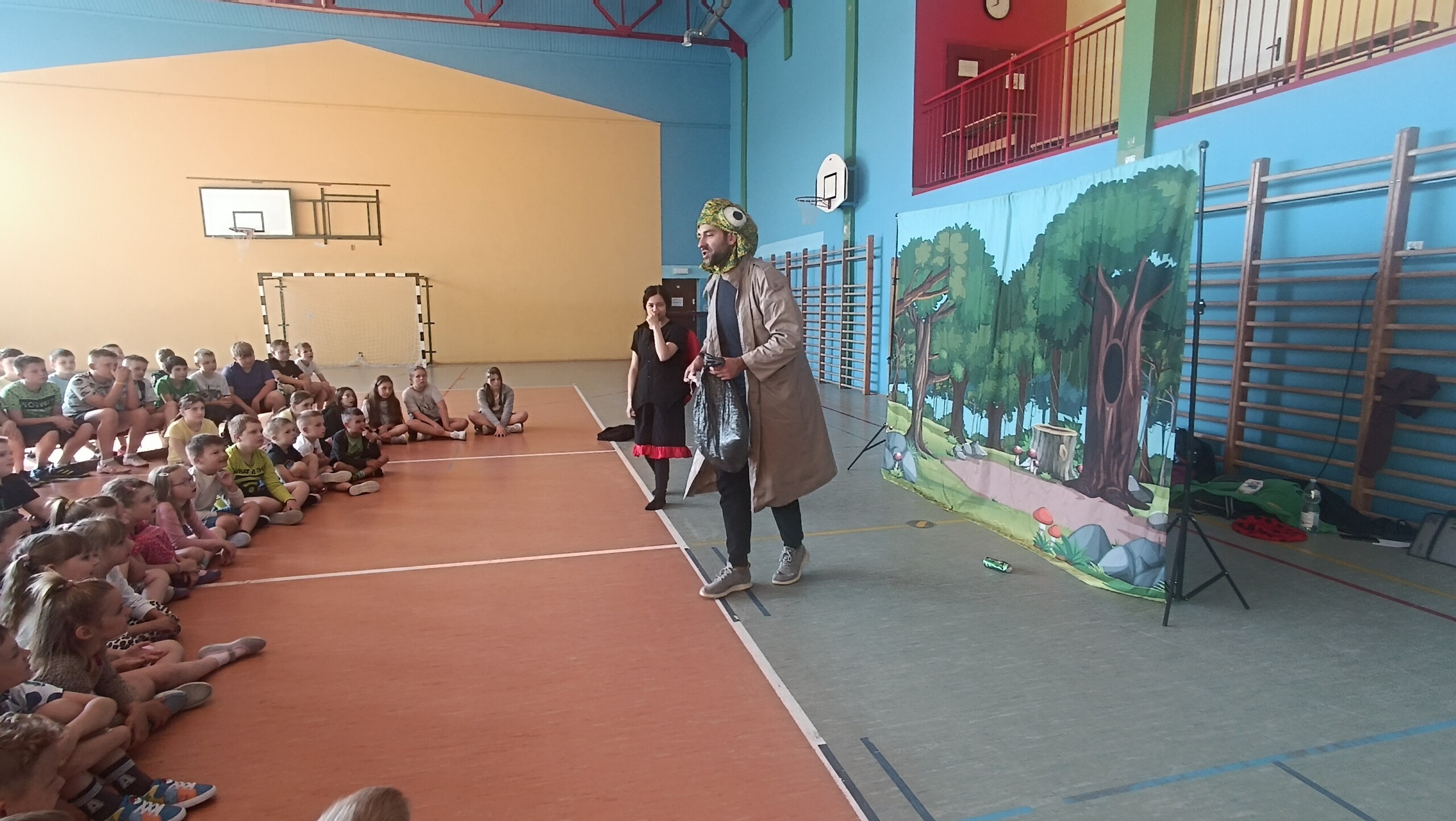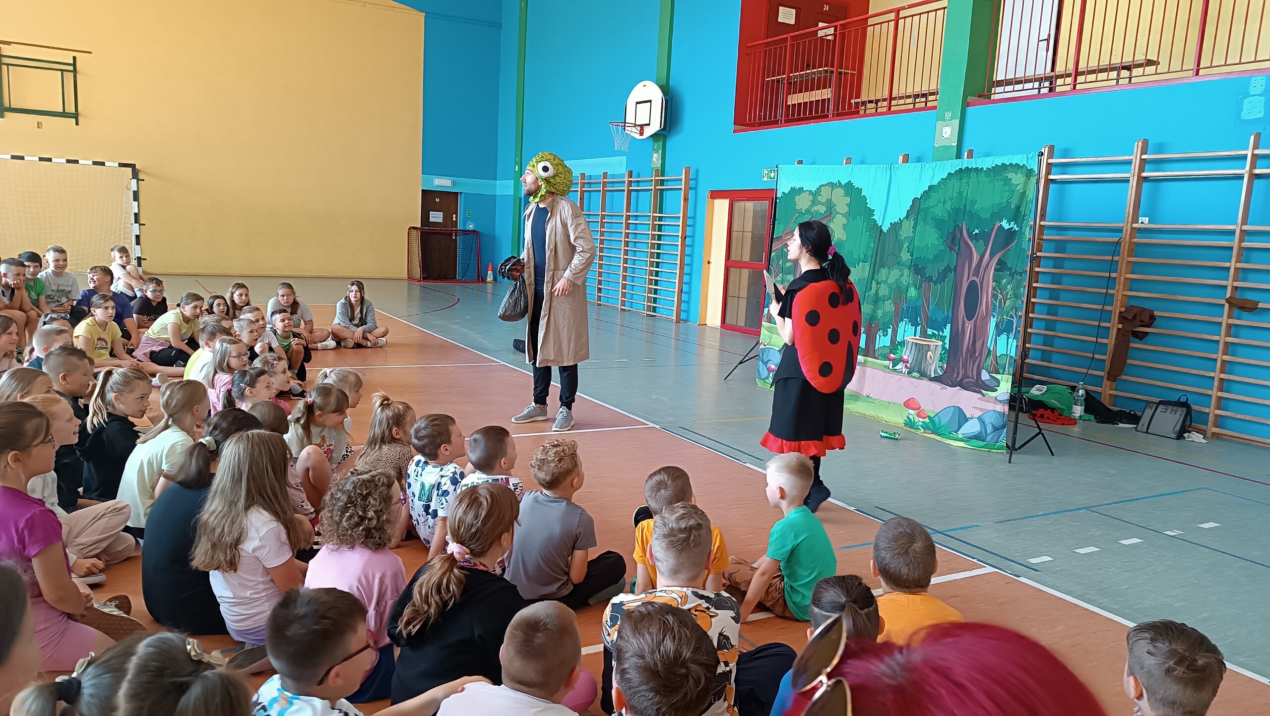 22 maja dzieci z zerówki i uczniowie klas 1-4 mieli okazję obejrzeć spektakl profilaktyczny pod tytułem „Gang śmieciaków” prezentowany przez grupę teatralną Fundacja Grupa T z Olsztyna.