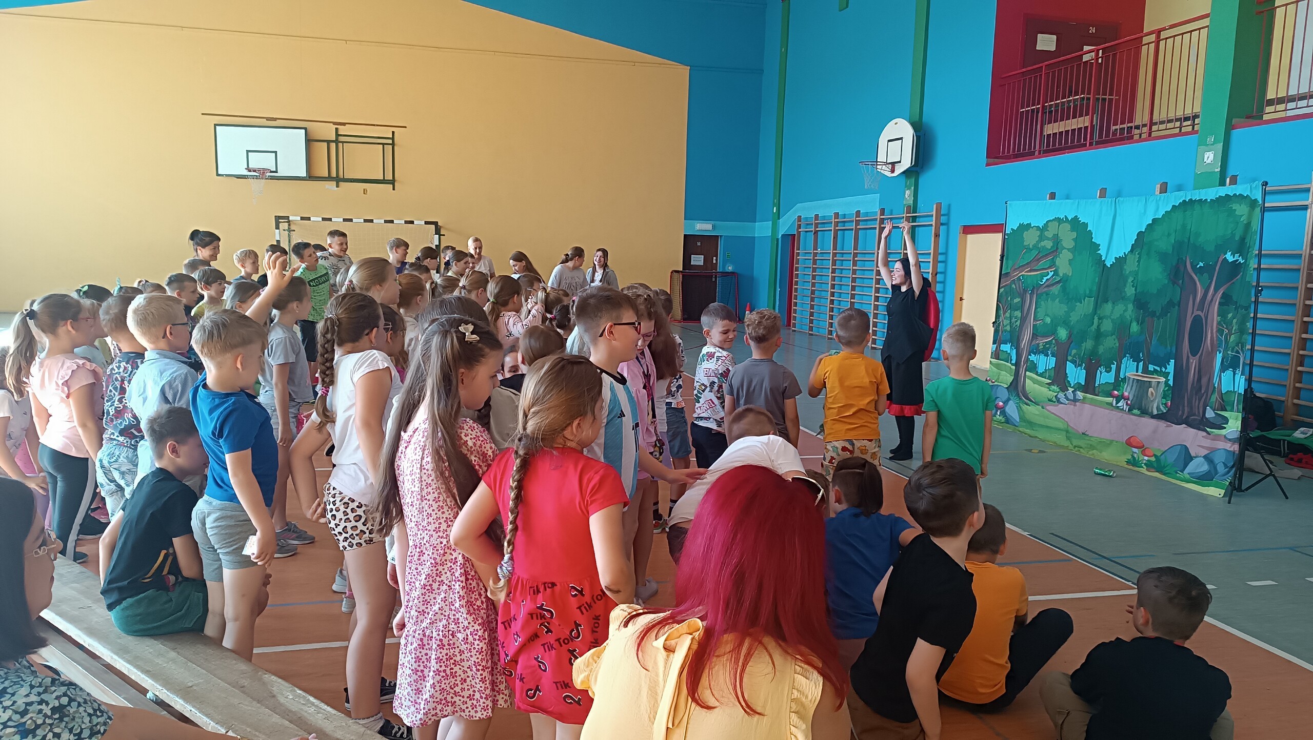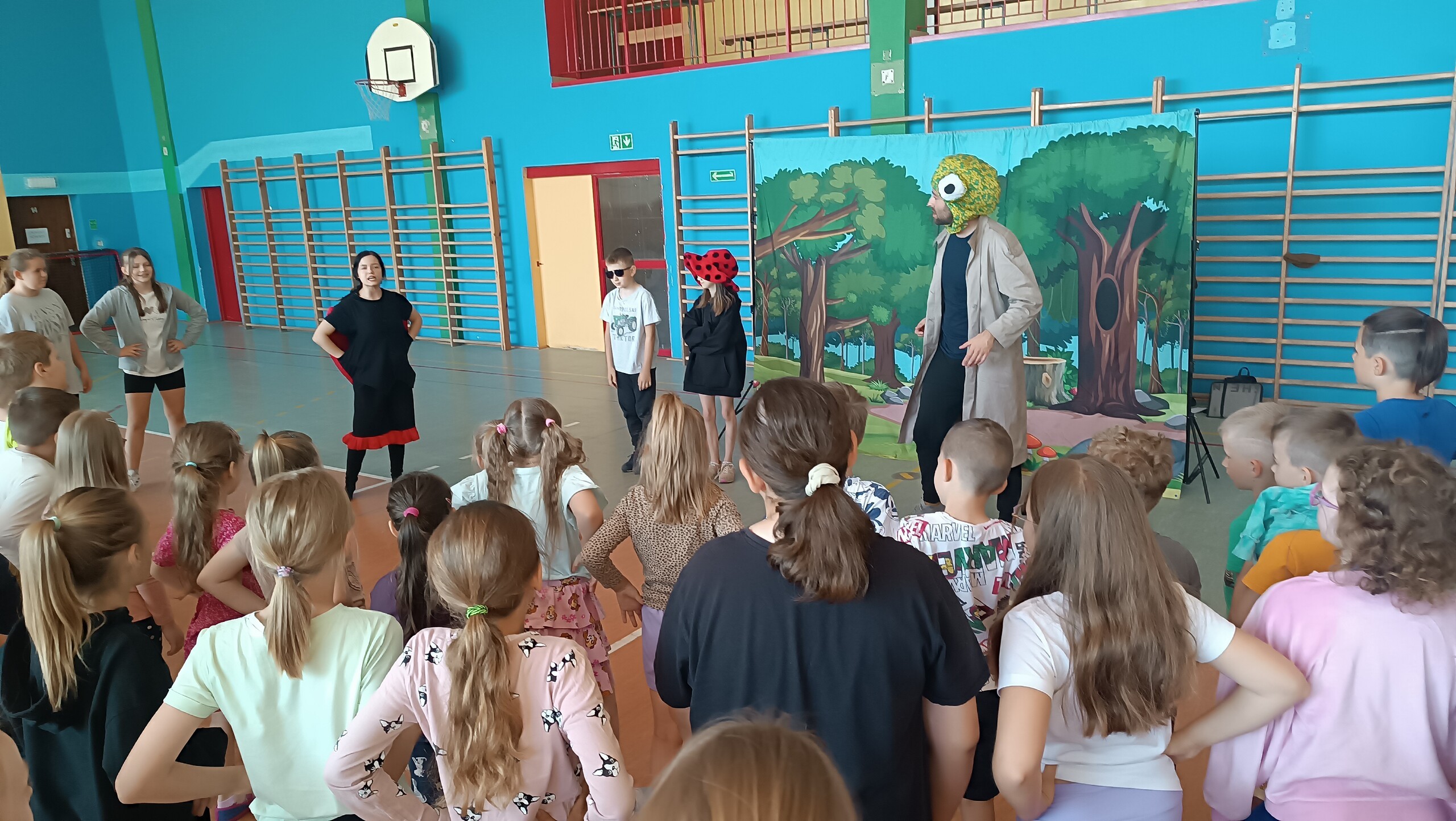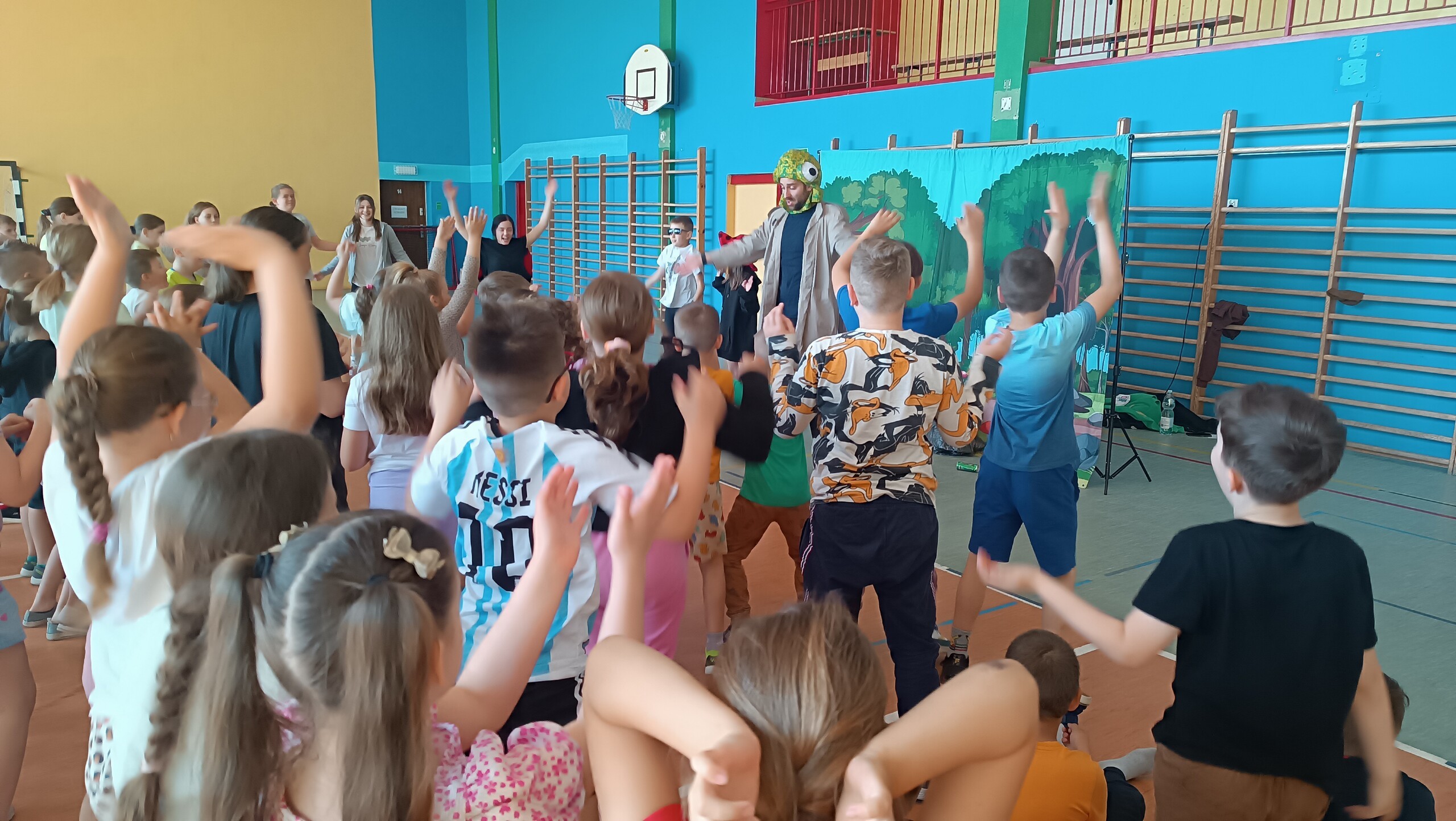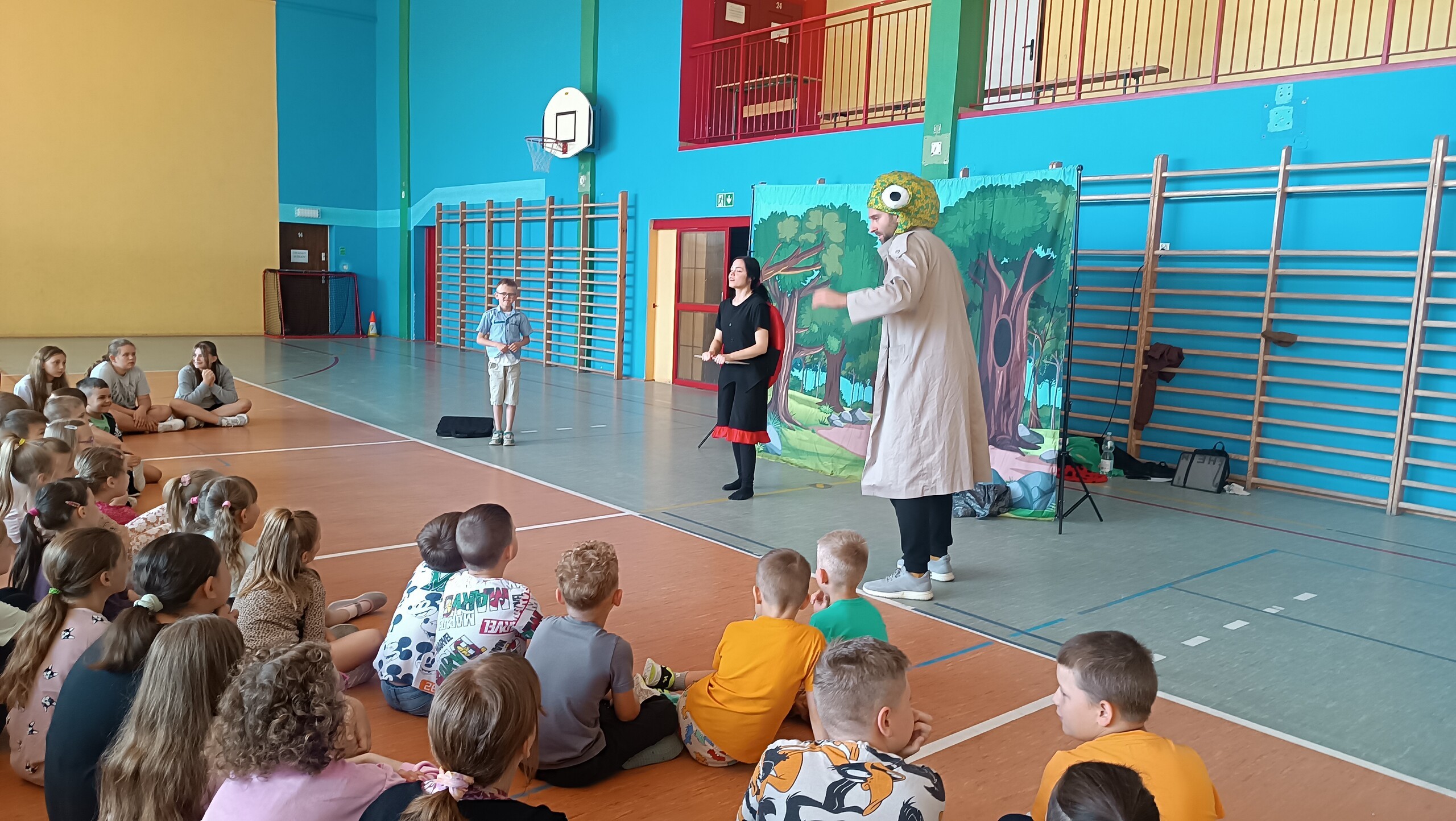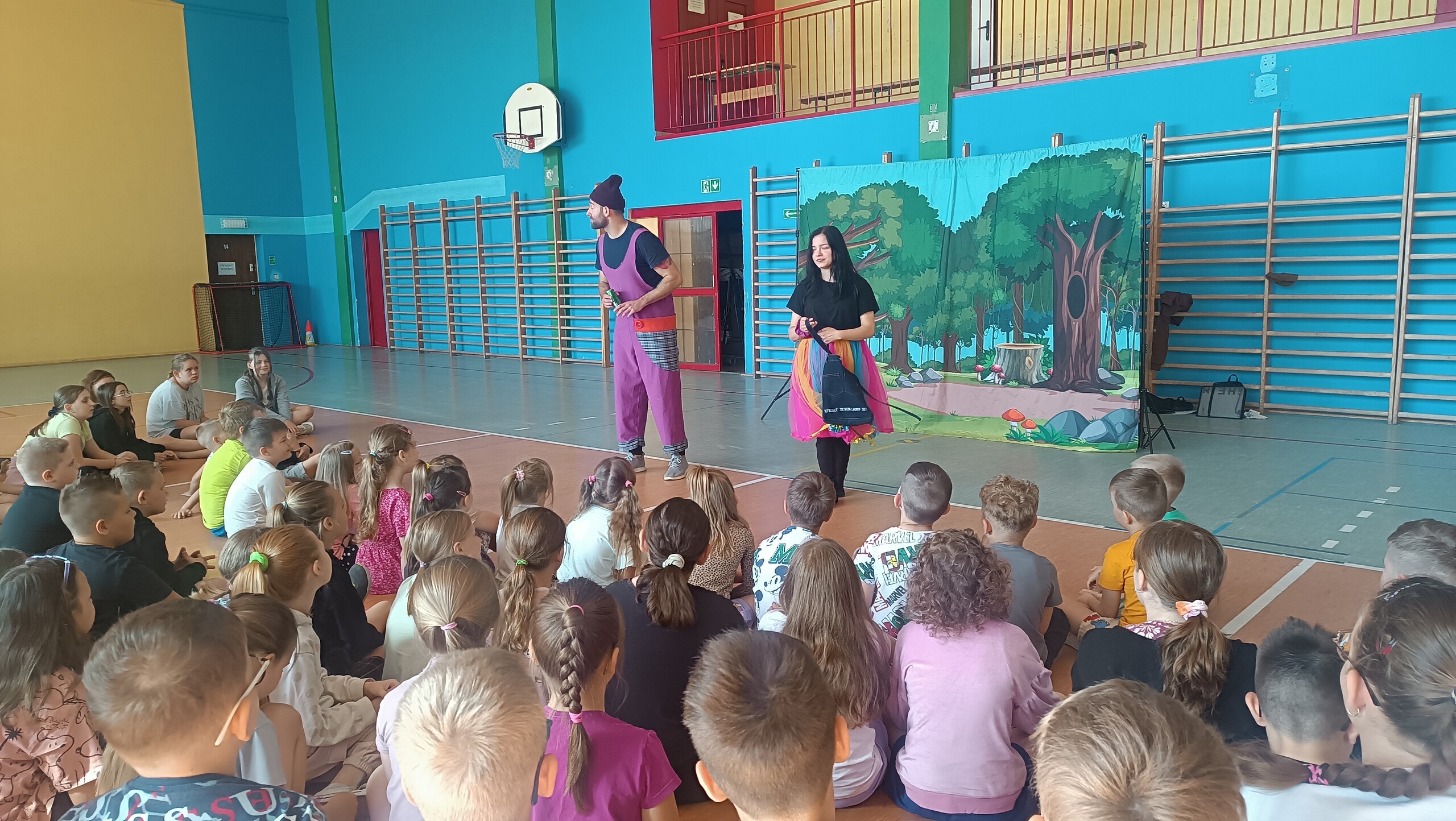 22 maja dzieci z zerówki i uczniowie klas 1-4 mieli okazję obejrzeć spektakl profilaktyczny pod tytułem „Gang śmieciaków” prezentowany przez grupę teatralną Fundacja Grupa T z Olsztyna.