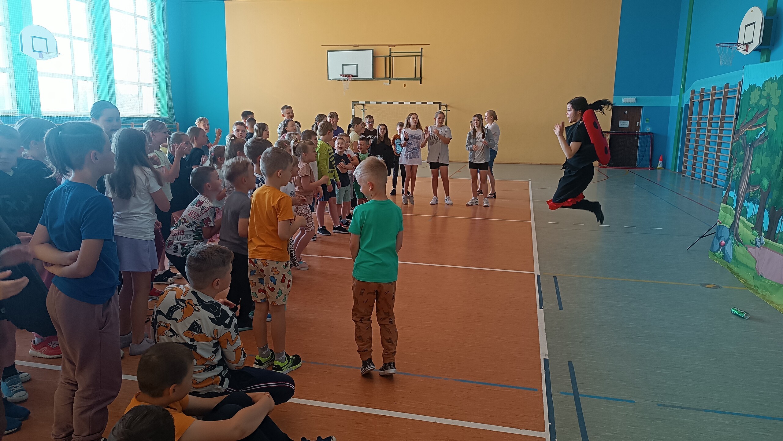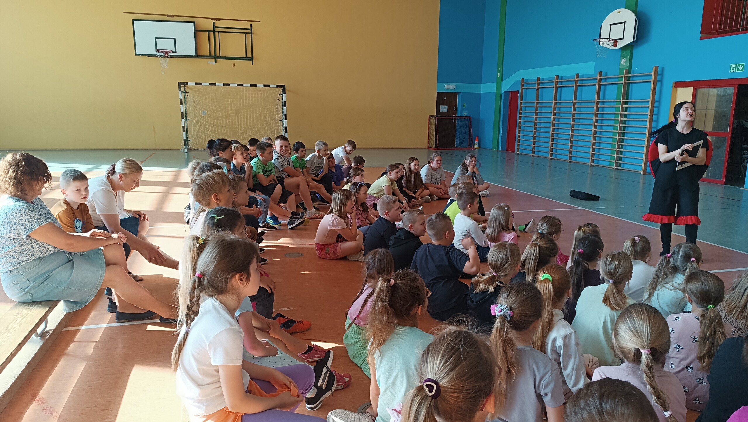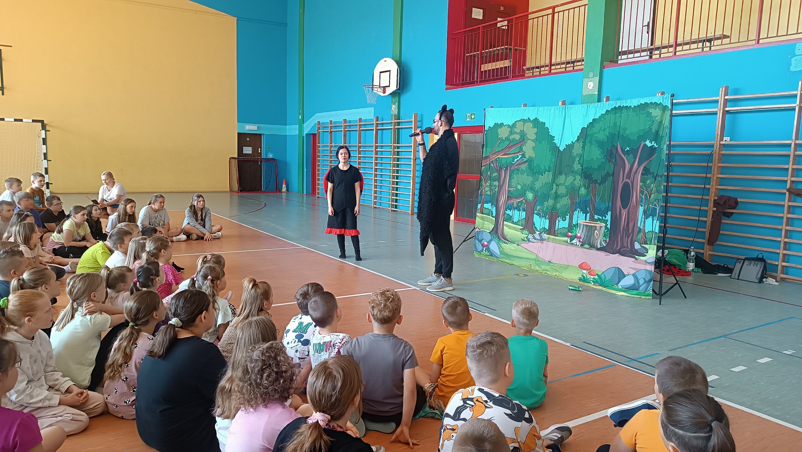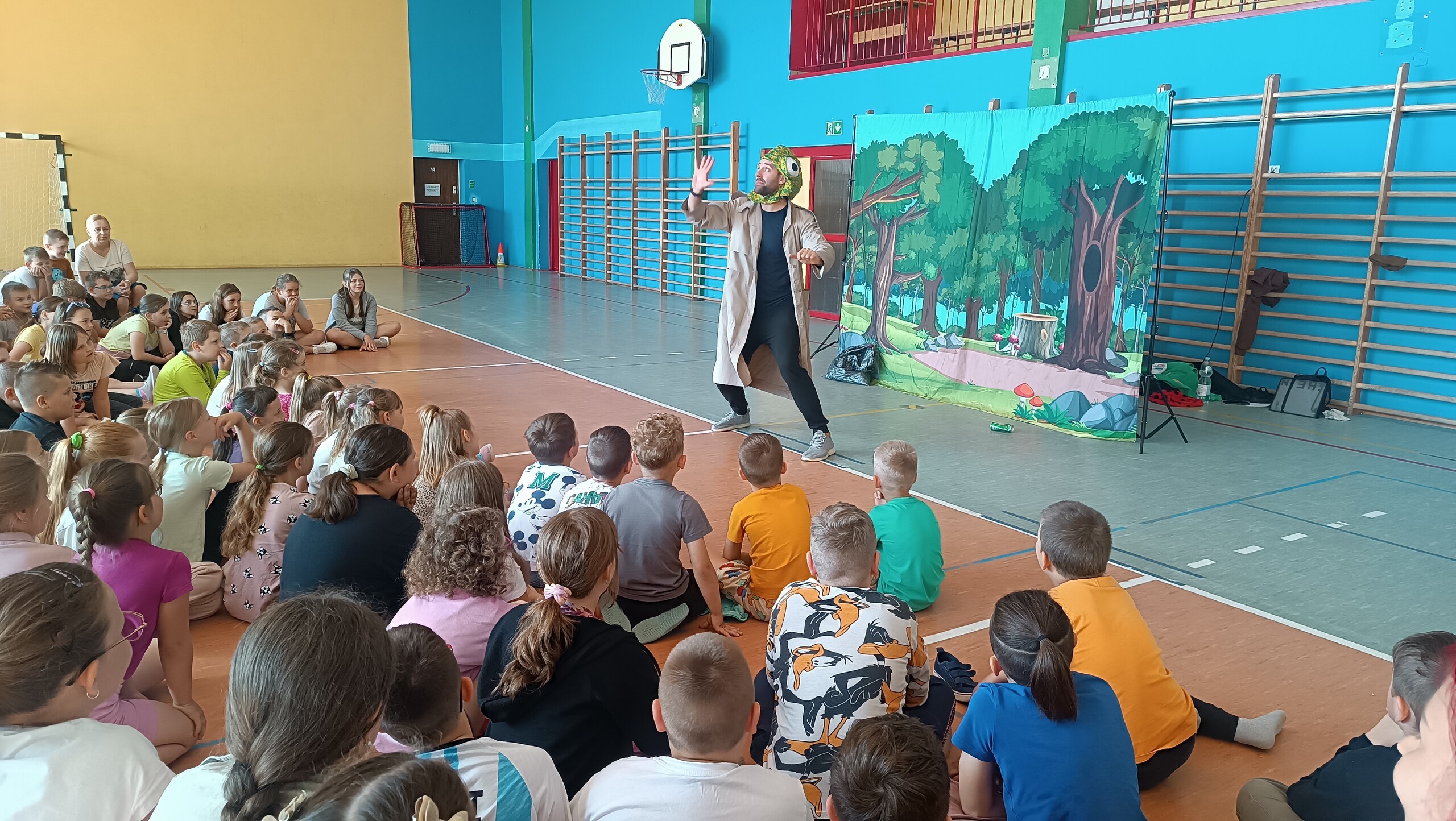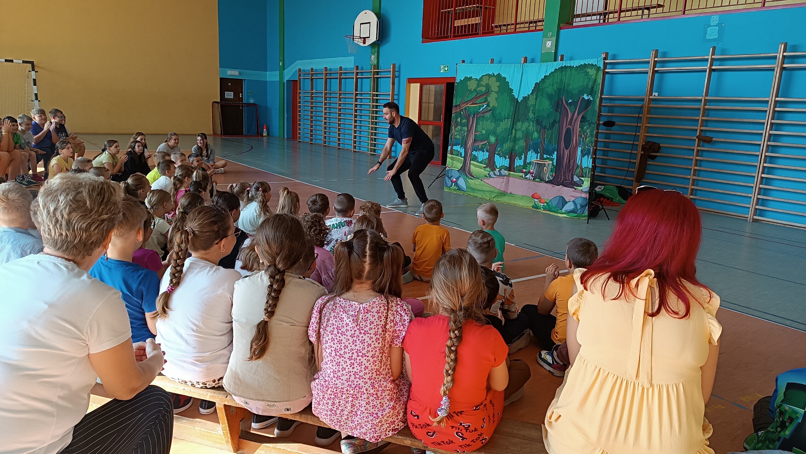 22 maja dzieci z zerówki i uczniowie klas 1-4 mieli okazję obejrzeć spektakl profilaktyczny pod tytułem „Gang śmieciaków” prezentowany przez grupę teatralną Fundacja Grupa T z Olsztyna.