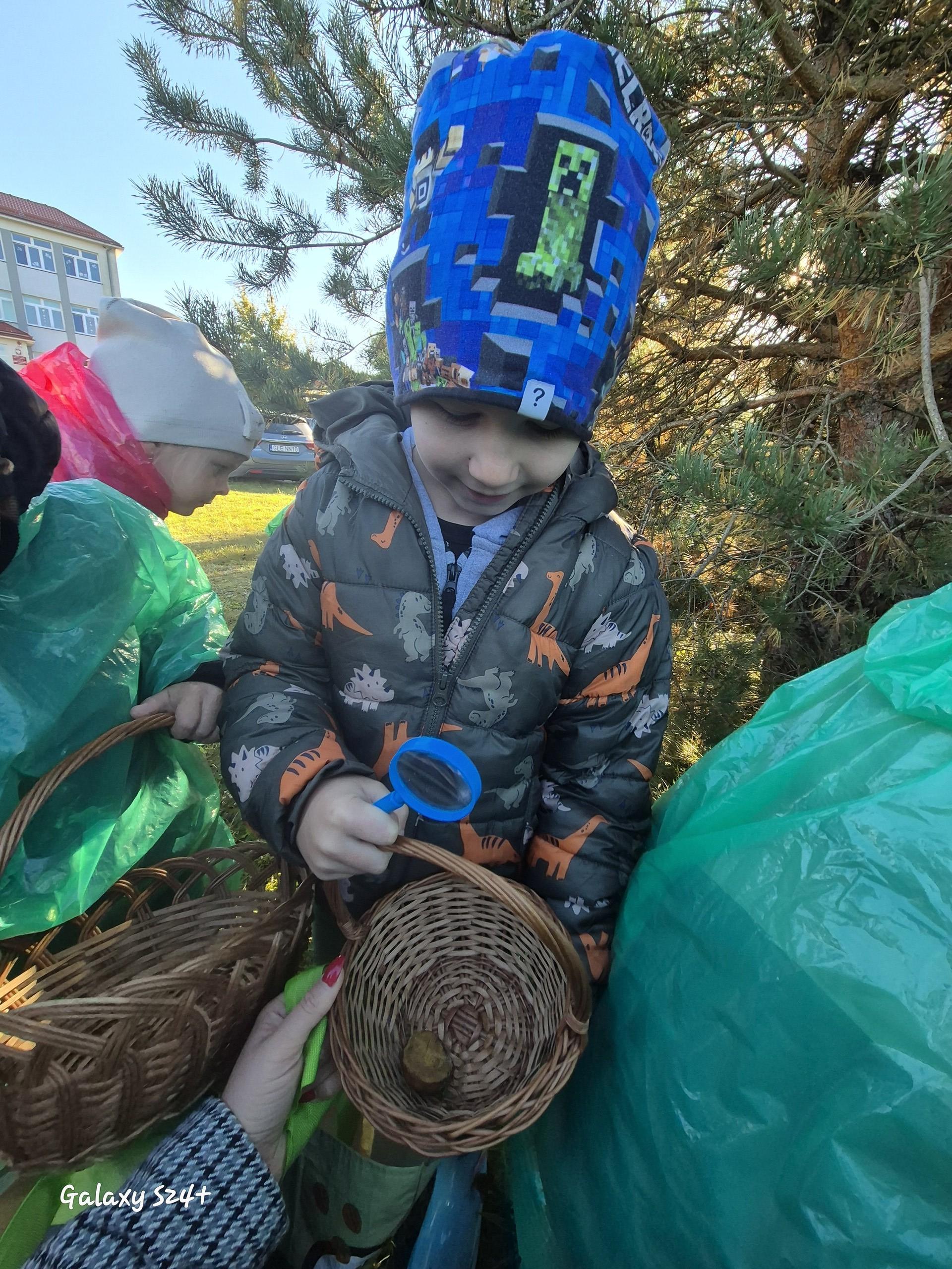 20 października w piękny, jesienny poranek dzieci z naszego przedszkola wybrały się na grzybobranie do pobliskiego lasu. Ubrane w kolorowe pelerynki, kalosze i z koszykami w dłoniach z radością wyruszyły na poszukiwanie jesiennych skarbów.