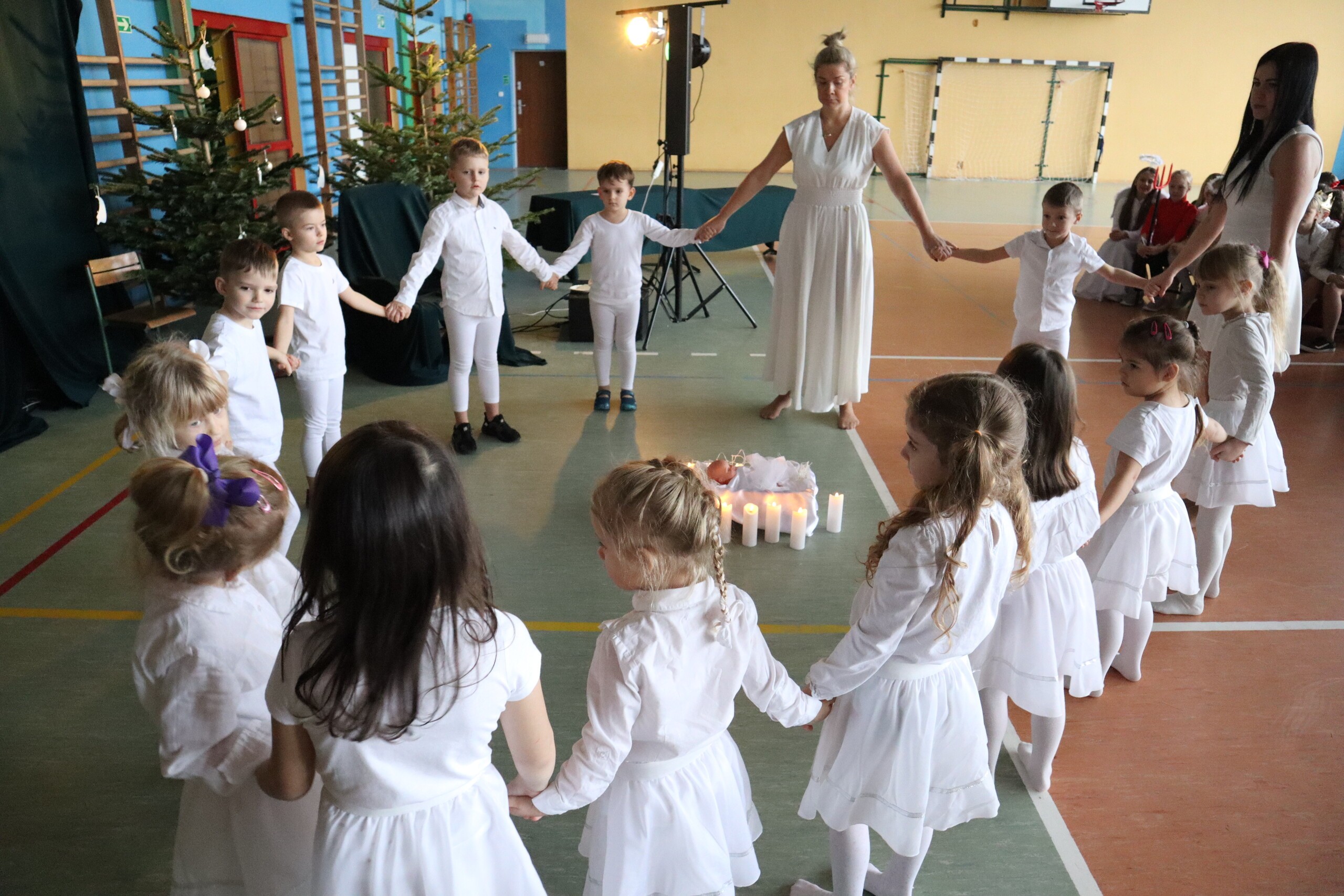 W świąteczny nastrój wprowadziły nas dzieci z grupy cztero i pięciolatków, które zatańczyły „ Taniec ze świecami” do piosenki „Noel” w aranżacji Katarzyny Cerekwickiej.
