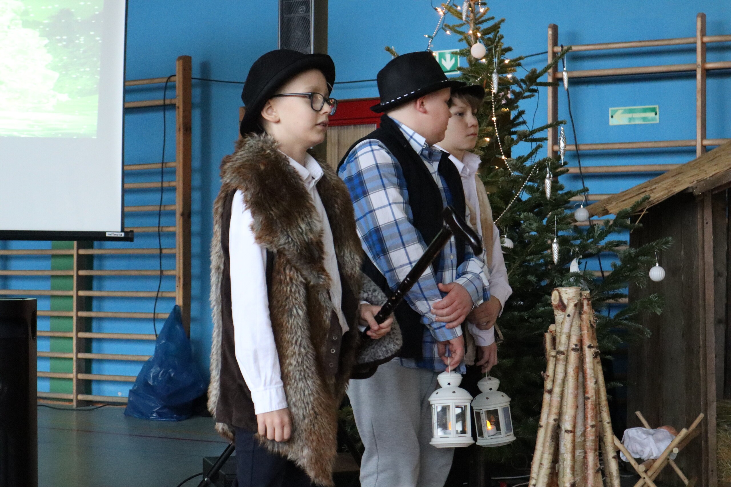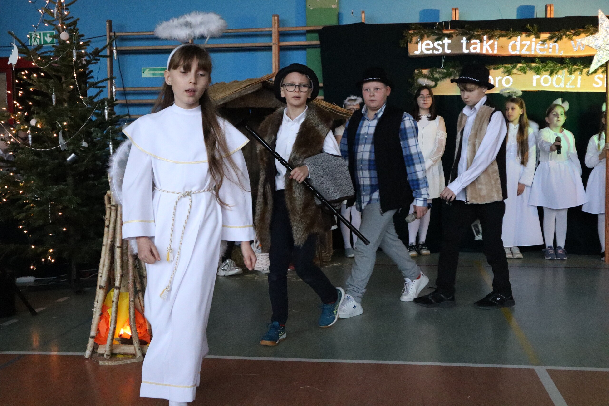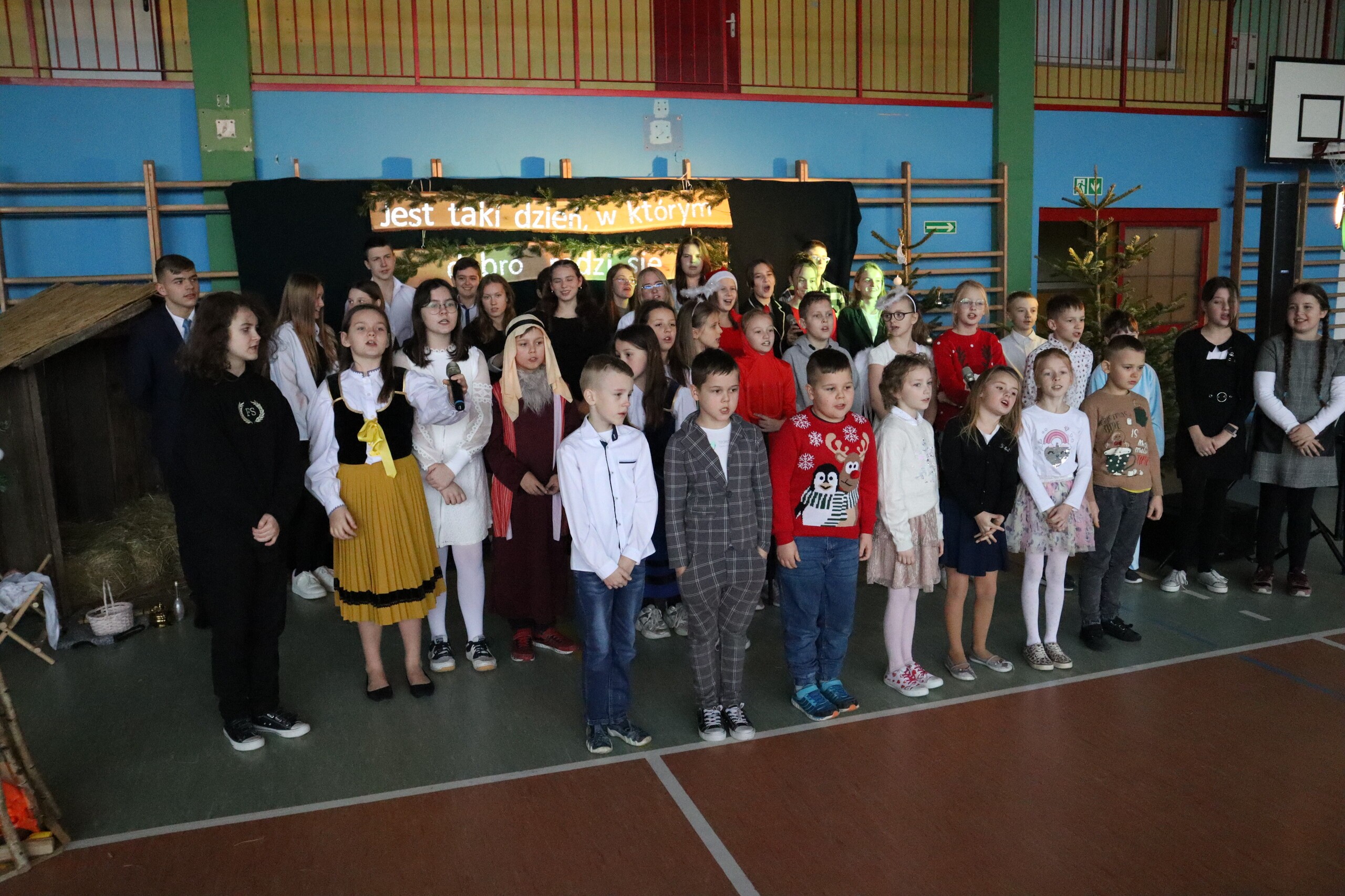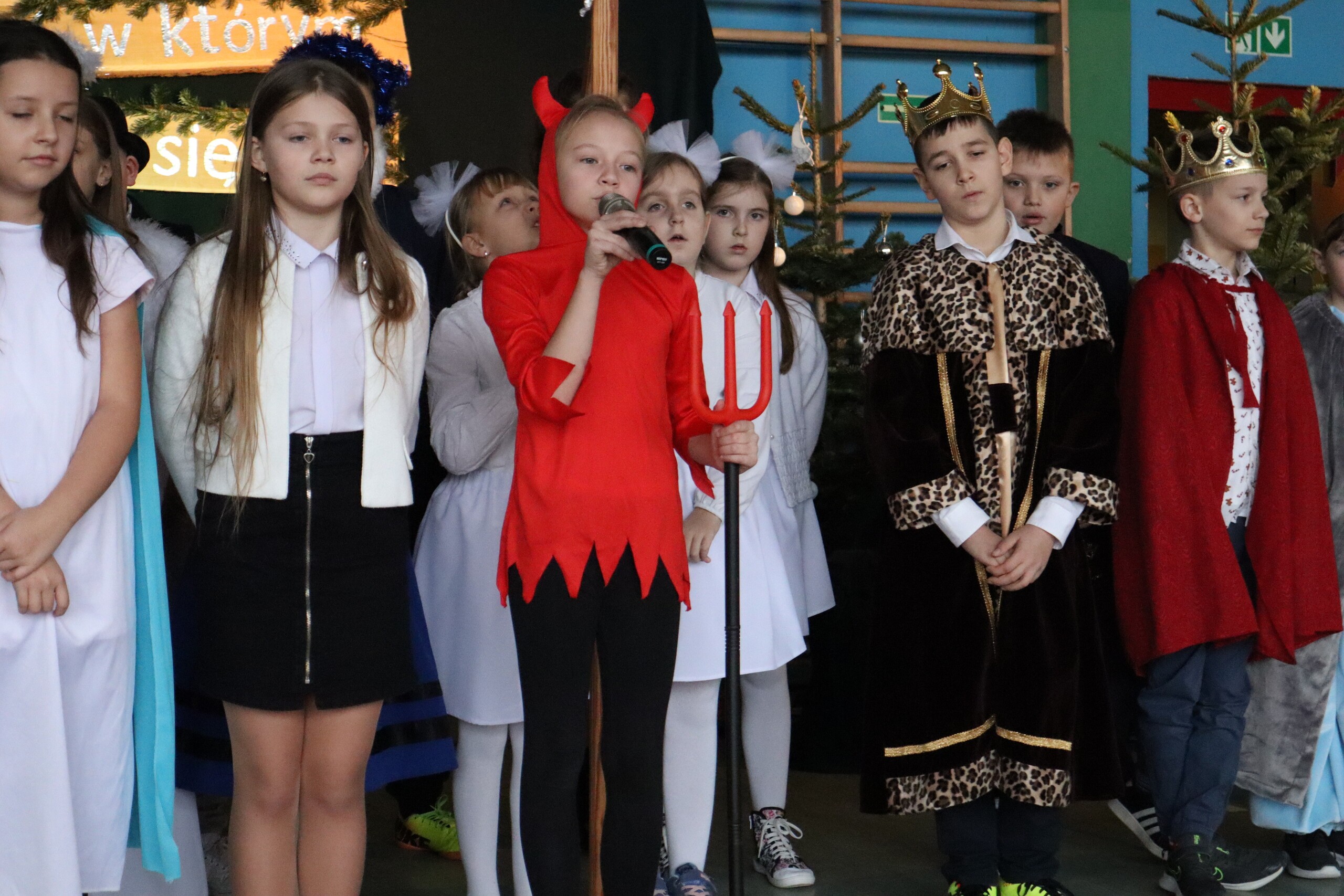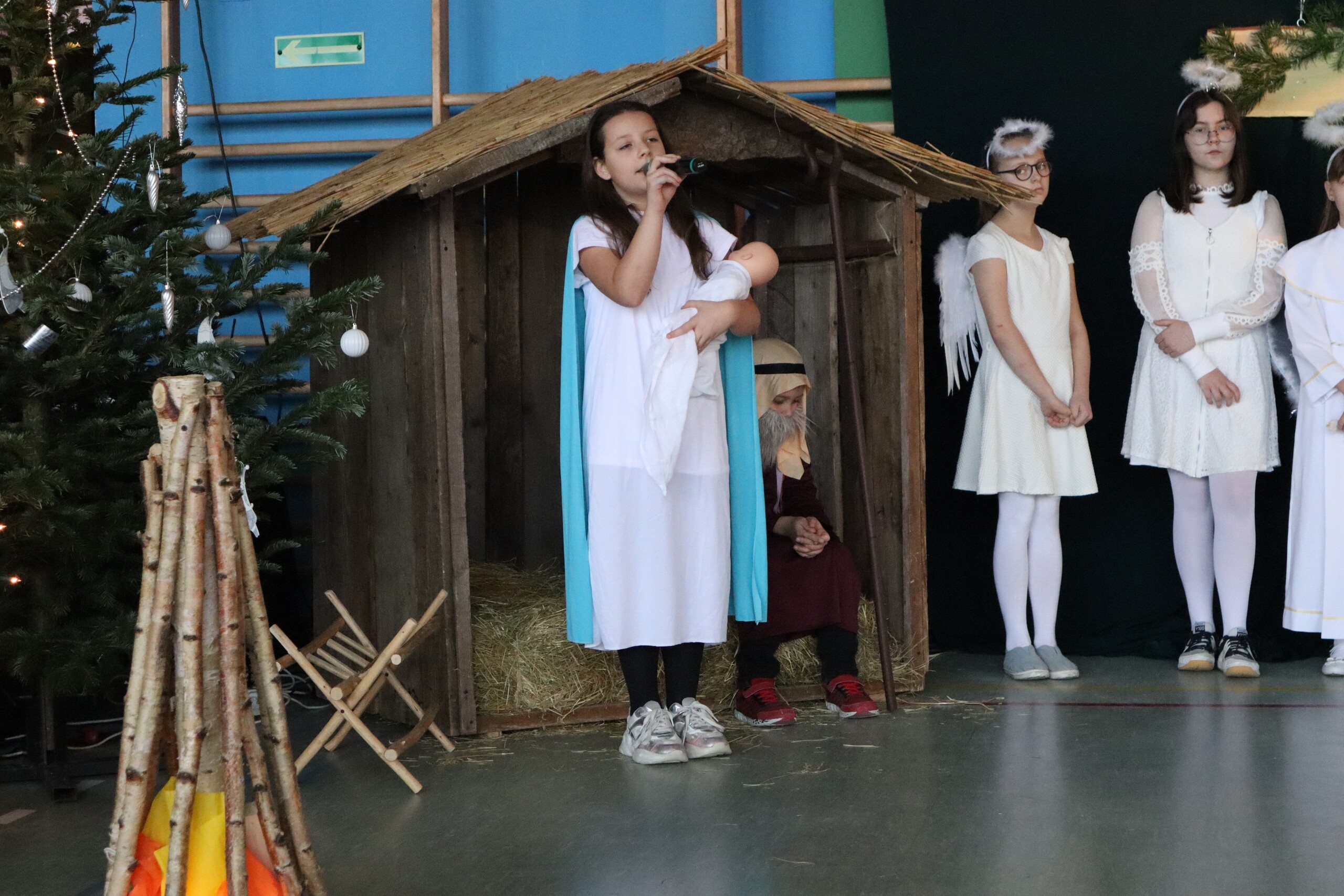 Tradycją naszej szkoły są coroczne jasełka przygotowywane przez uczniów pod opieką nauczycieli. „On jest królem” – to tytuł przedstawienia, które zaprezentowali uczniowie z klasy drugiej, trzeciej, czwartej i szóstej. Mali artyści odgrywali różne sceny przybliżające dzieciom dzieje narodzin Pana Jezusa. Każda scena zakończona była kolędą lub pastorałką. Piękny śpiew, bogata dekoracja i nastrojowe oświetlenie wprowadziły nas w klimat zbliżających się świąt. Kiedy część artystyczna dobiegła końca, występujący aktorzy otrzymali gromkie brawa. Występ był niezwykłym przeżyciem zarówno dla aktorów, nauczycieli i pracowników szkoły.