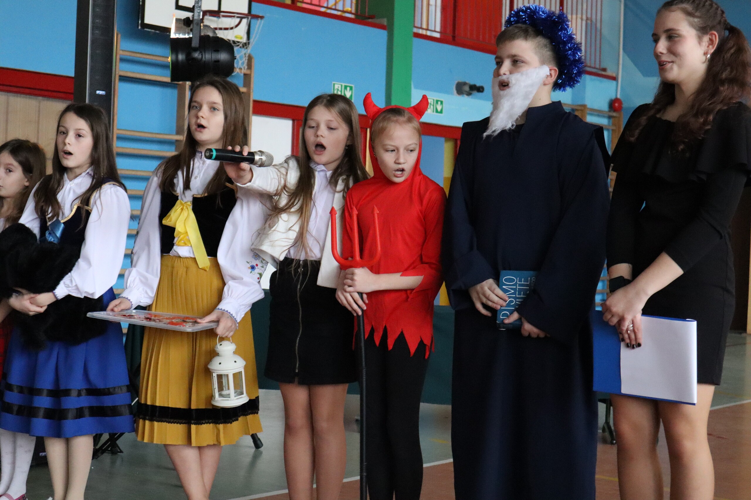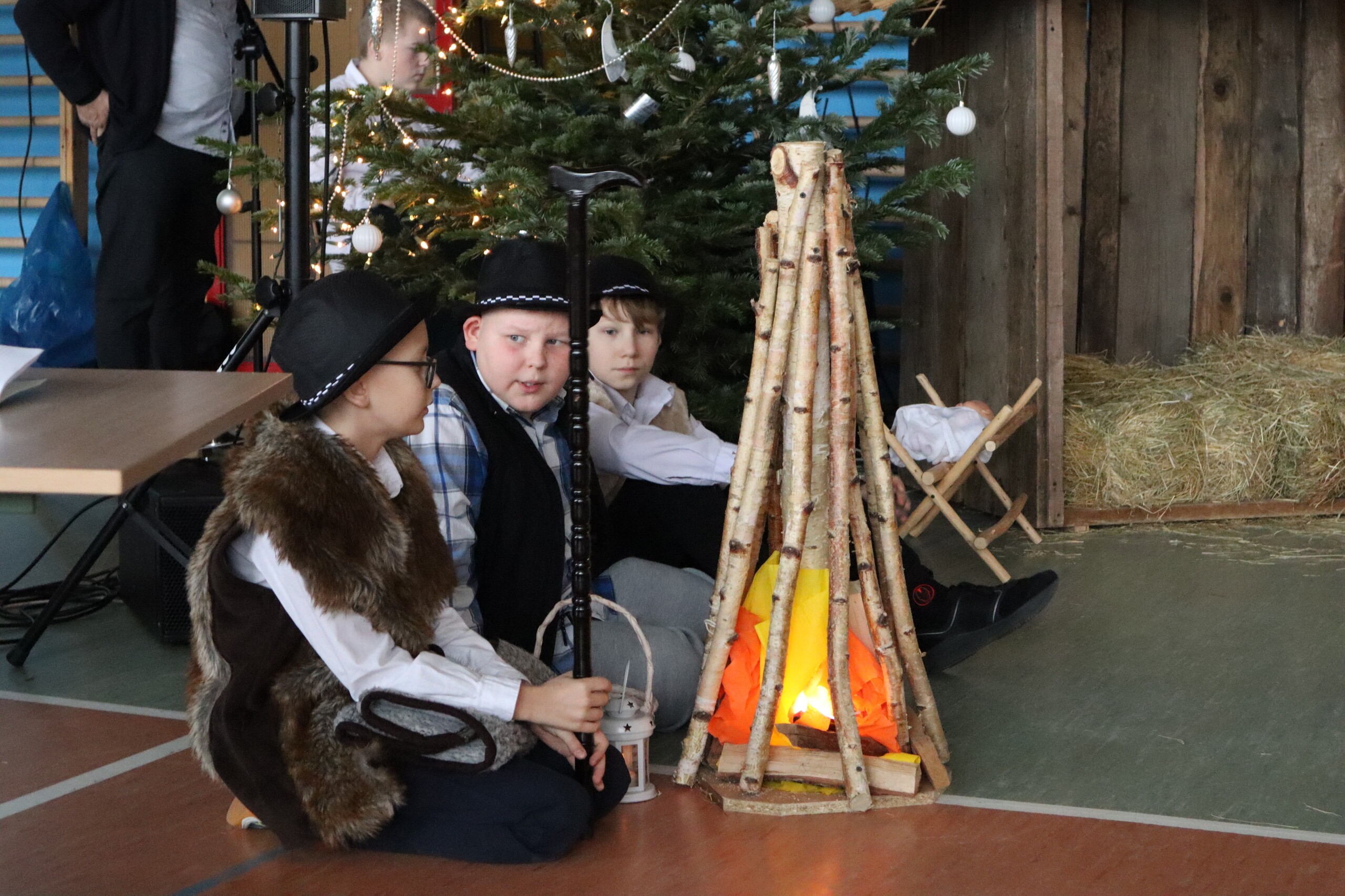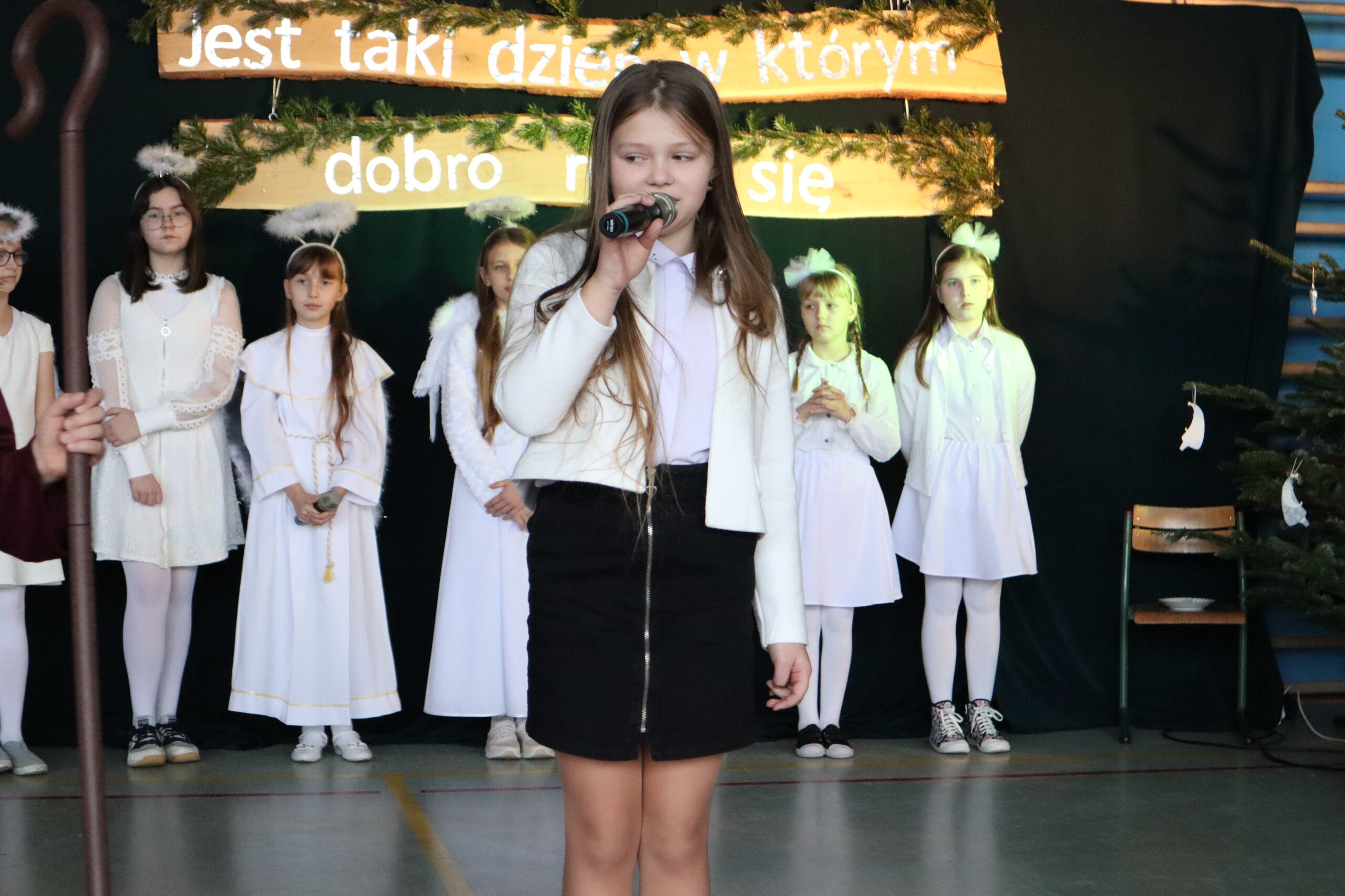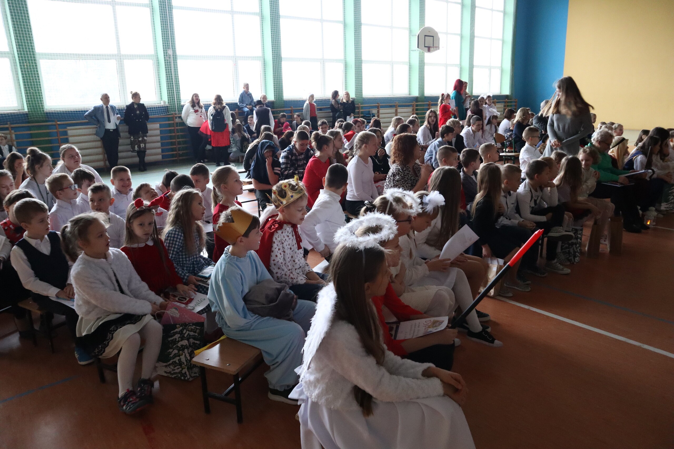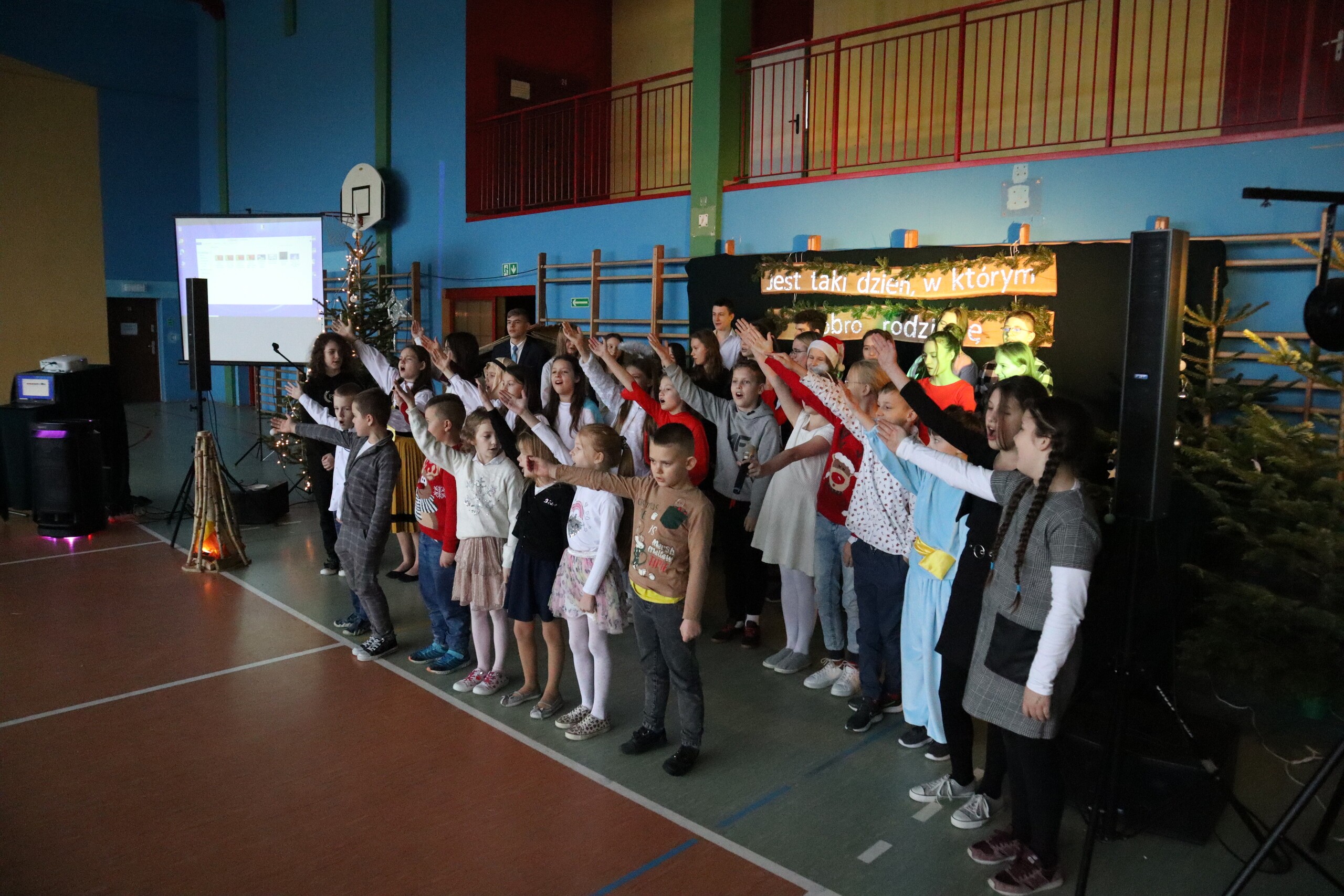 Tradycją naszej szkoły są coroczne jasełka przygotowywane przez uczniów pod opieką nauczycieli. „On jest królem” – to tytuł przedstawienia, które zaprezentowali uczniowie z klasy drugiej, trzeciej, czwartej i szóstej. Mali artyści odgrywali różne sceny przybliżające dzieciom dzieje narodzin Pana Jezusa. Każda scena zakończona była kolędą lub pastorałką. Piękny śpiew, bogata dekoracja i nastrojowe oświetlenie wprowadziły nas w klimat zbliżających się świąt. Kiedy część artystyczna dobiegła końca, występujący aktorzy otrzymali gromkie brawa. Występ był niezwykłym przeżyciem zarówno dla aktorów, nauczycieli i pracowników szkoły.