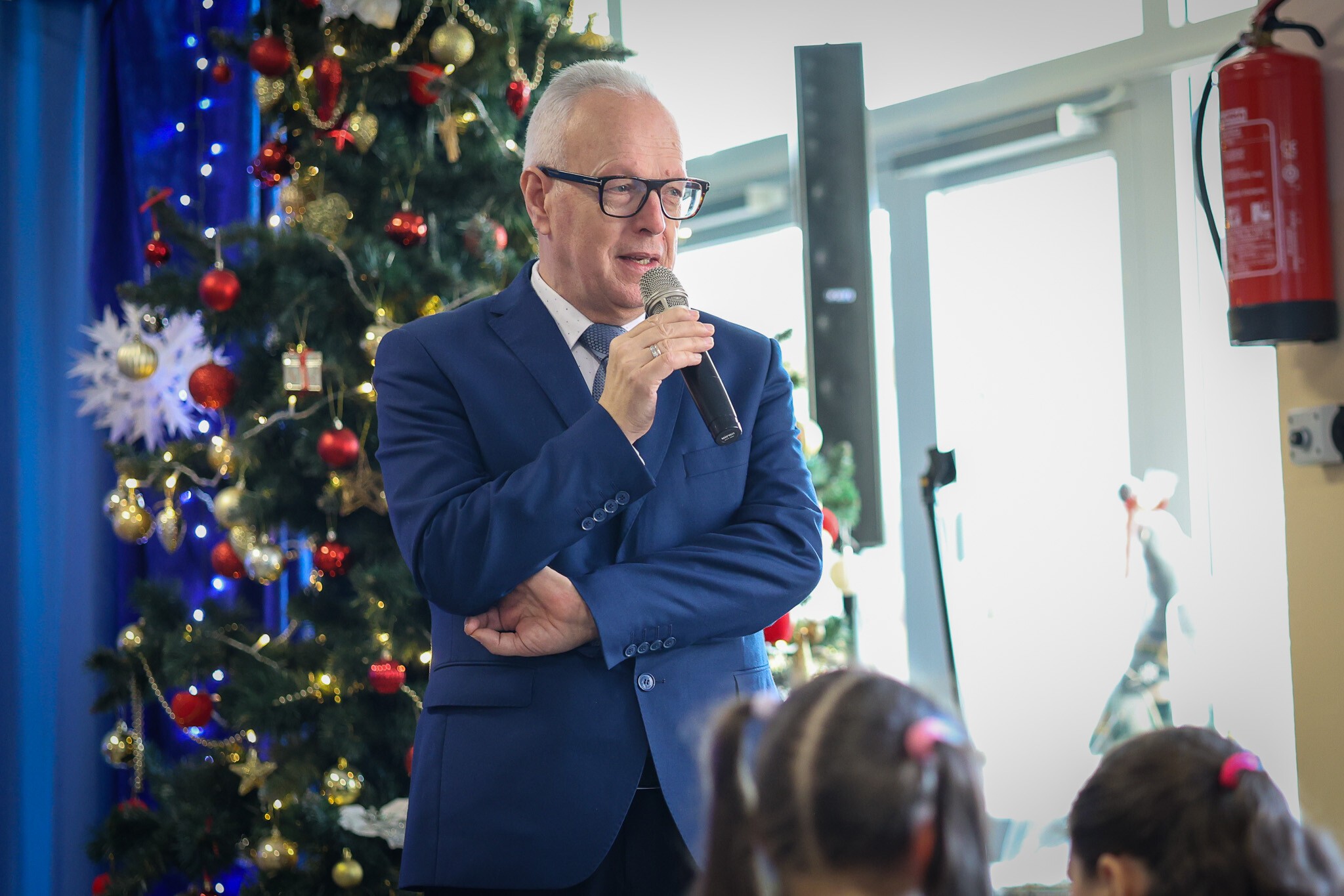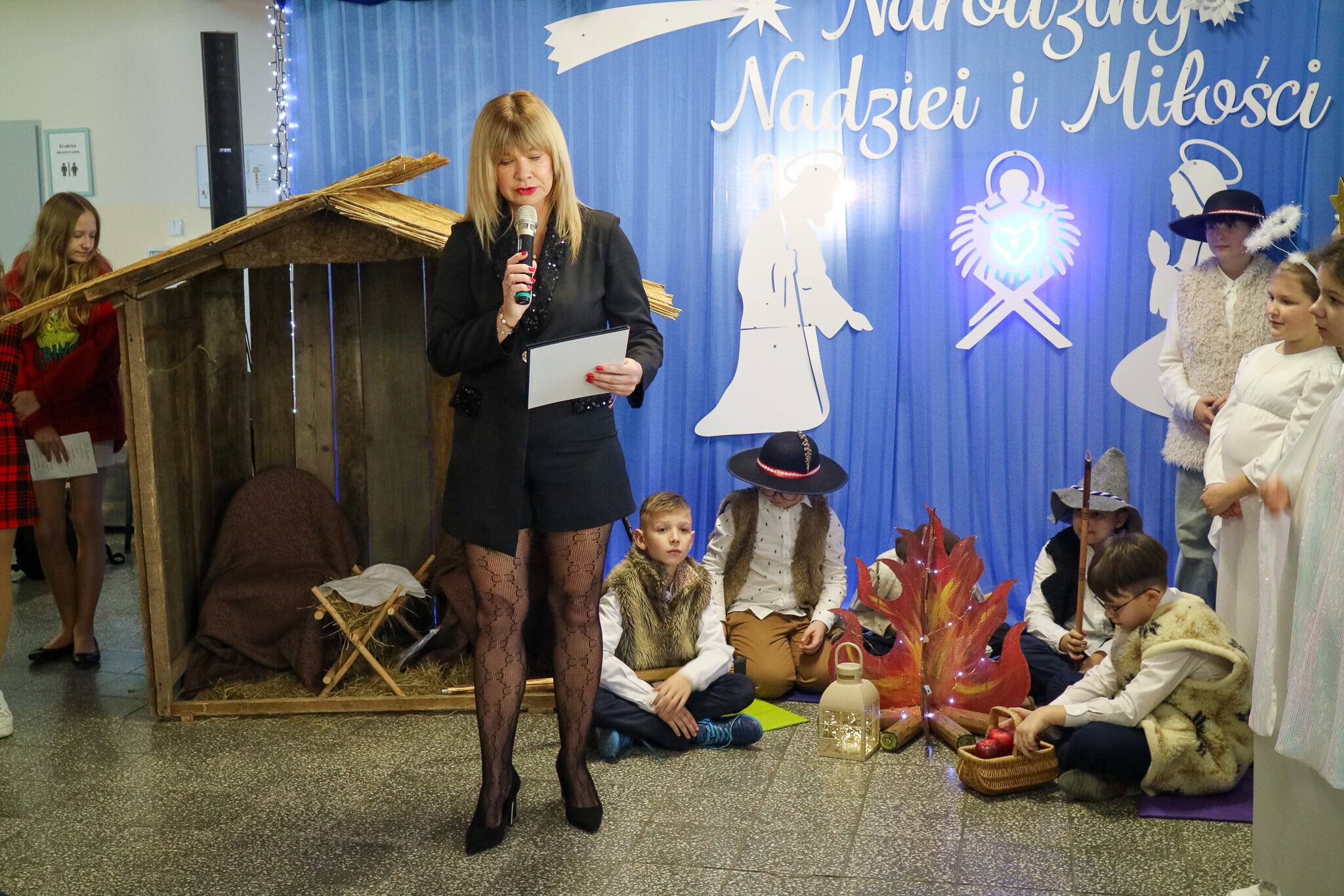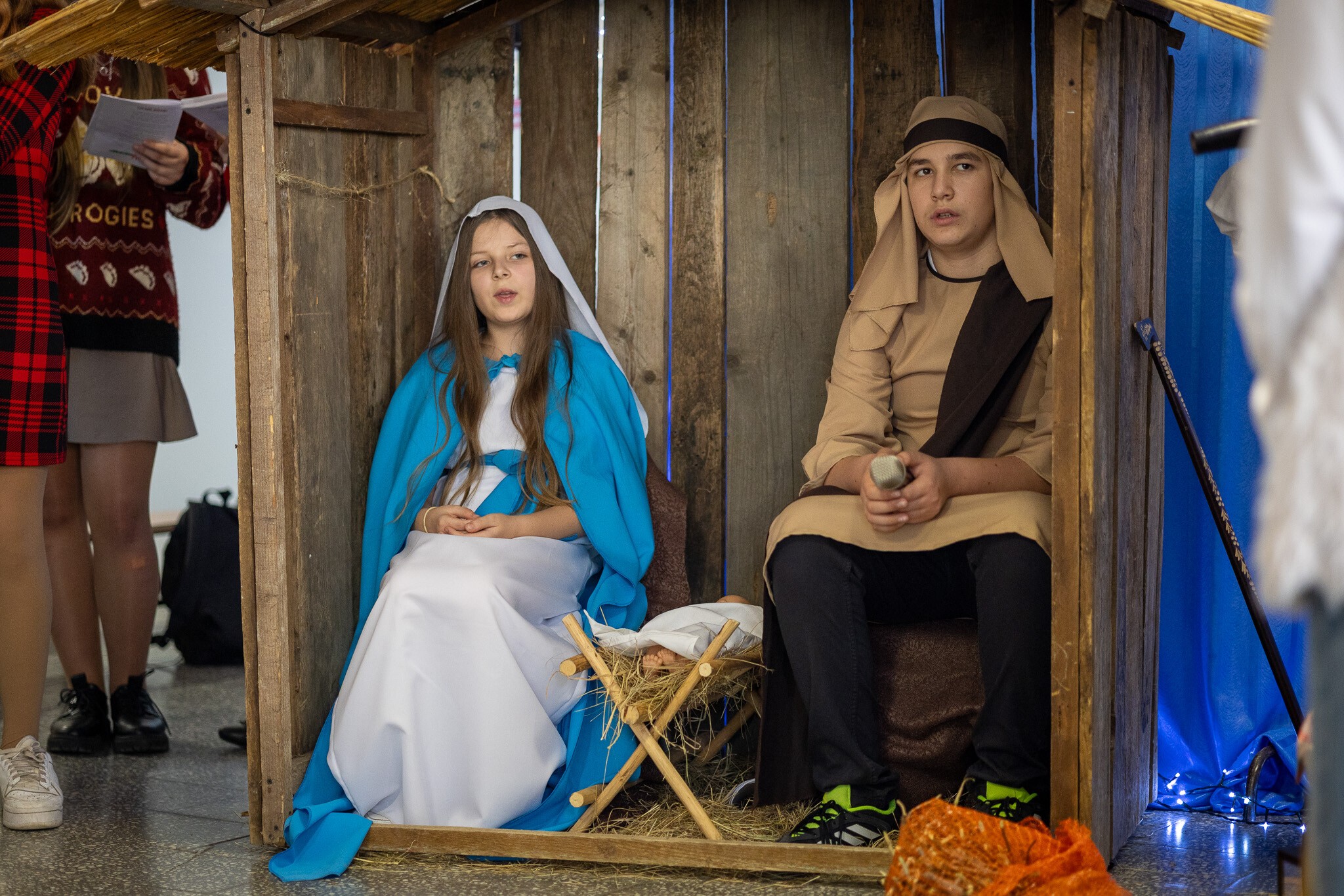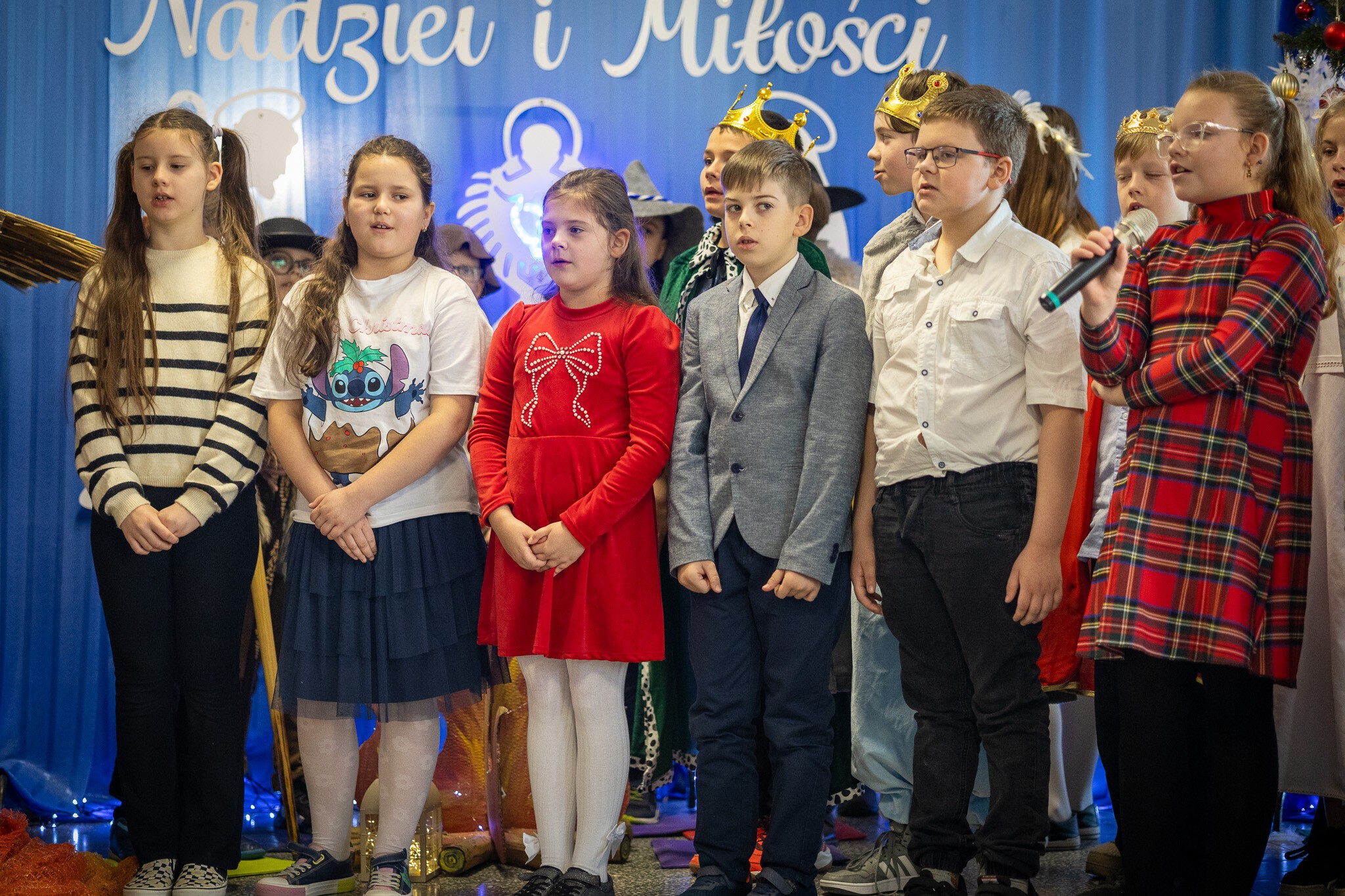19 XII 2025r. piątek - ten dzień upłynął nam w świątecznym nastroju. Już o godzinie ósmej rano dzieci z zerówki i uczniowie klas I - III obejrzeli jasełka, a o 9.30 przedstawienie bożonarodzeniowe obejrzeli uczniowie klas IV - VIII oraz zaproszeni goście. Uczniowie wcielili się w role Maryi i Józefa, pasterzy, aniołów, Trzech Królów oraz dzieci przybywających złożyć pokłon Jezusowi narodzonemu w ubogiej stajence. Przedstawienie pokazujące scenki z życia nowonarodzonego dzieciątka przeplatały kolędy i pastorałki. Na zakończenie zabrał głos dyrektor szkoły dziękując za przygotowania. Życzenia składali także ksiądz proboszcz Janusz Góral, przewodnicząca Rady Rodziców Justyna Wilga oraz sołtys Łebienia Adam Folga. W świątecznych nastrojach rozeszliśmy się do sal, w których odbyły się klasowe spotkania wigilijne.
