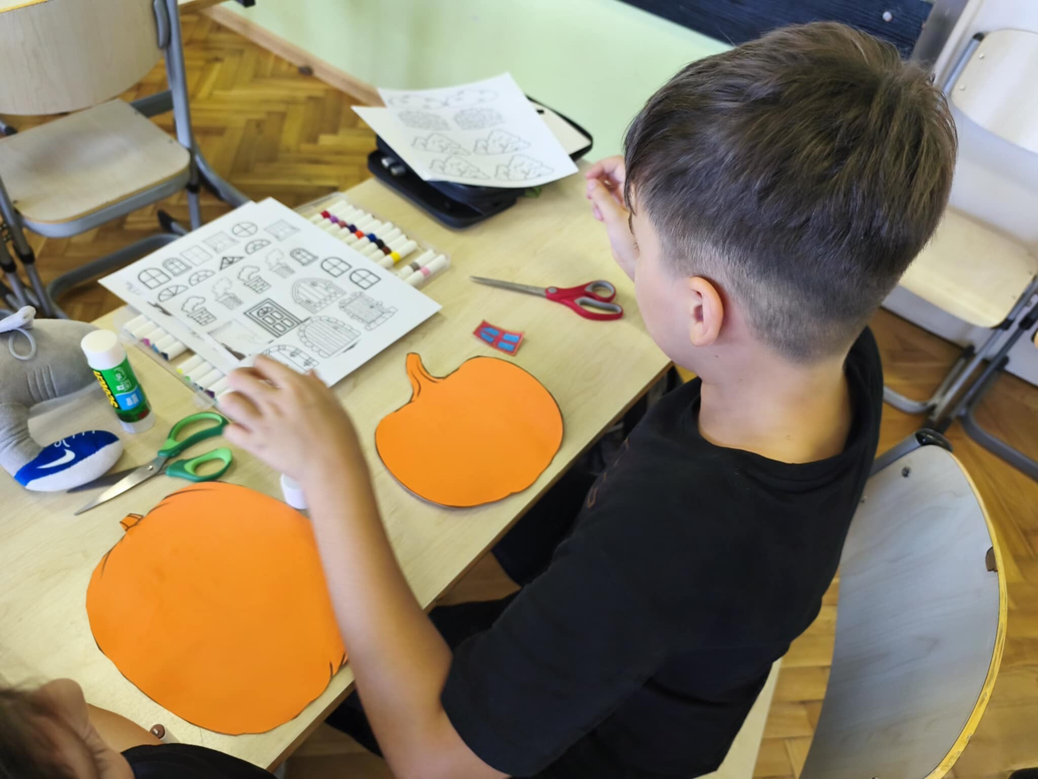 Na nasze spotkania „nuda nie ma wstępu”. Tym razem utrzymane były one w jesiennym klimacie. Młodzi artyści tworzyli dyniowe domki, barwne wianki, a także brali udział w zabawnych wyścigach pająków.