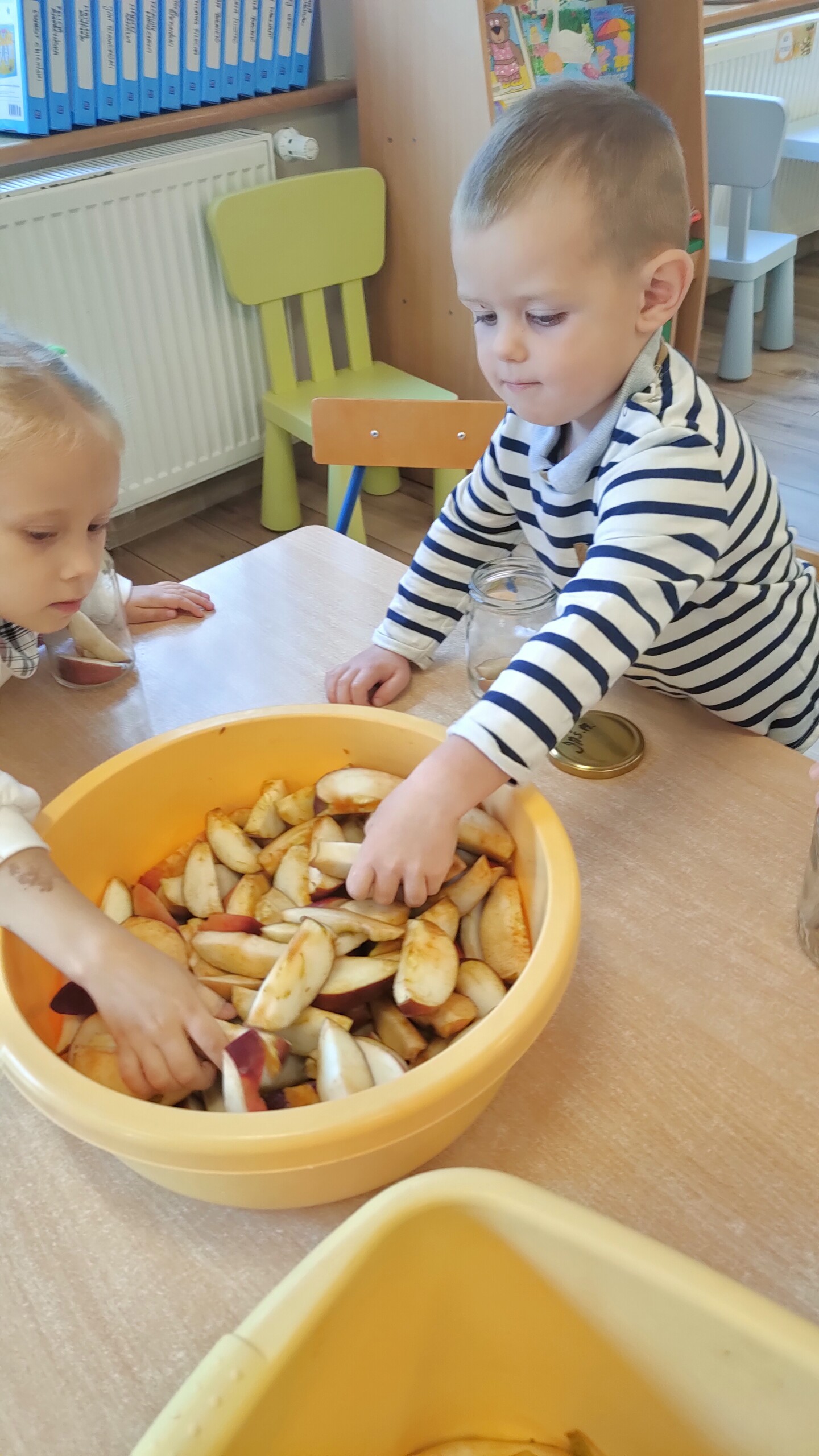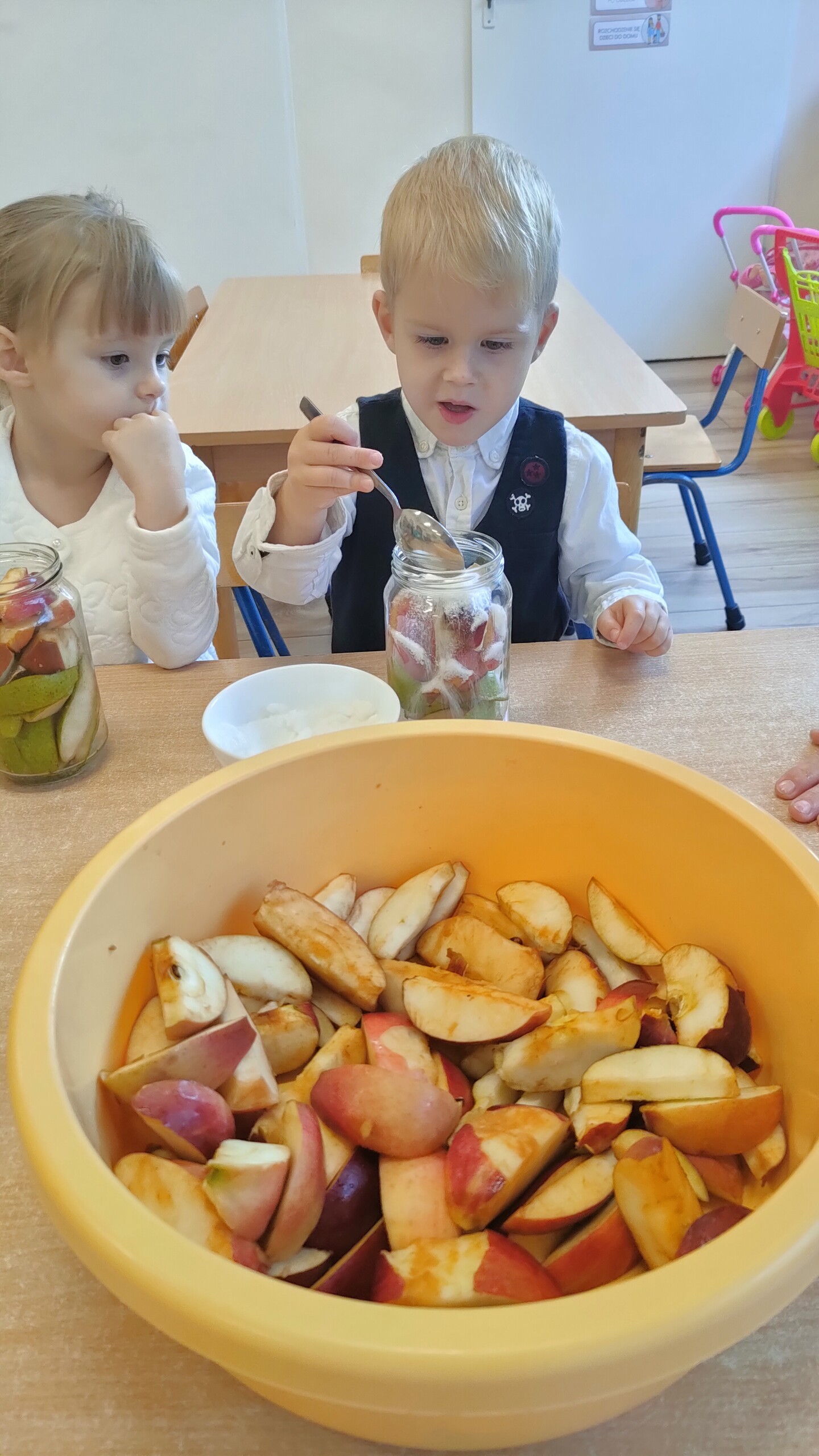 Dzisiejsze zajęcia rozpoczęliśmy od przygotowywania owoców do kompotu.