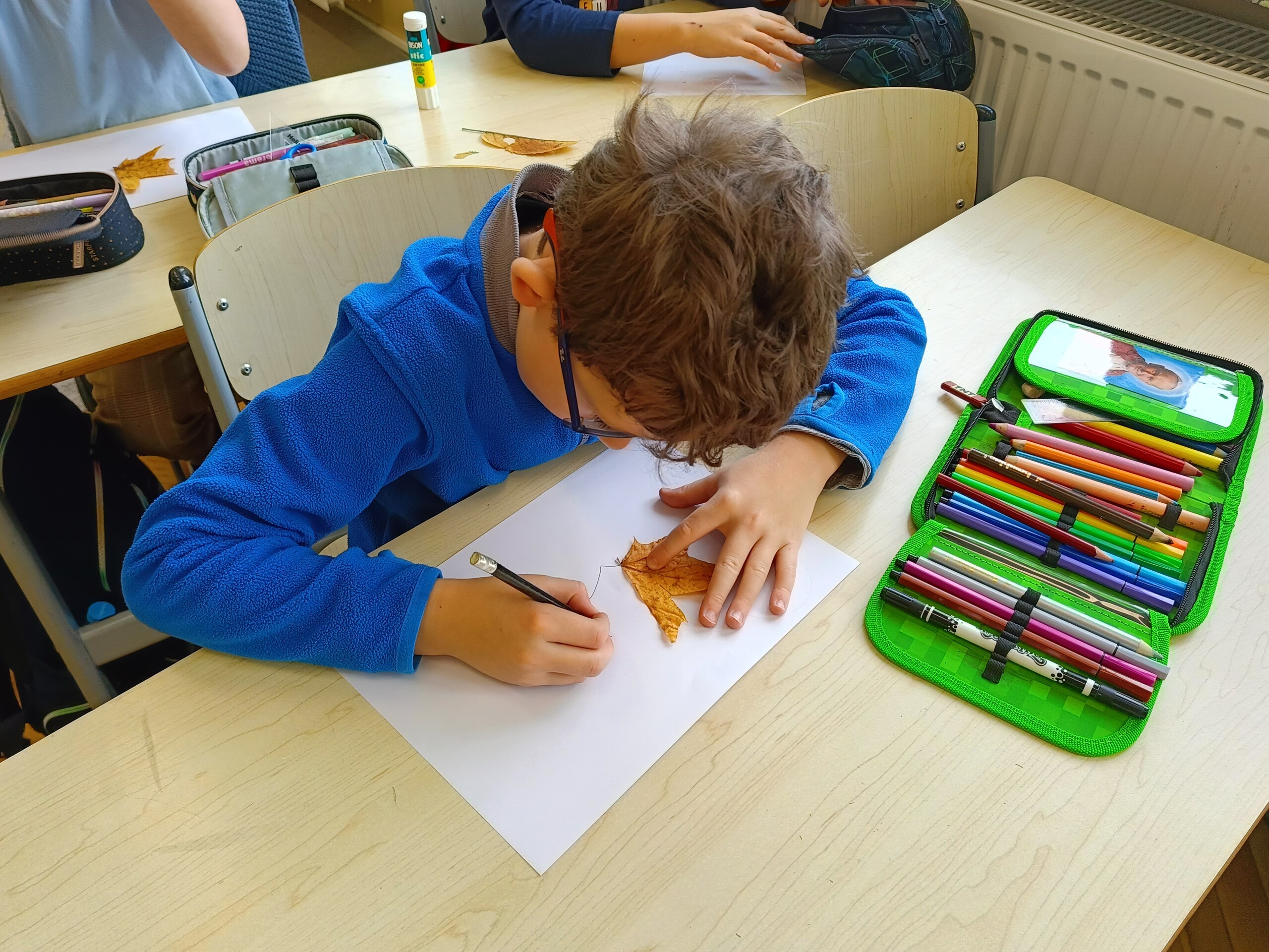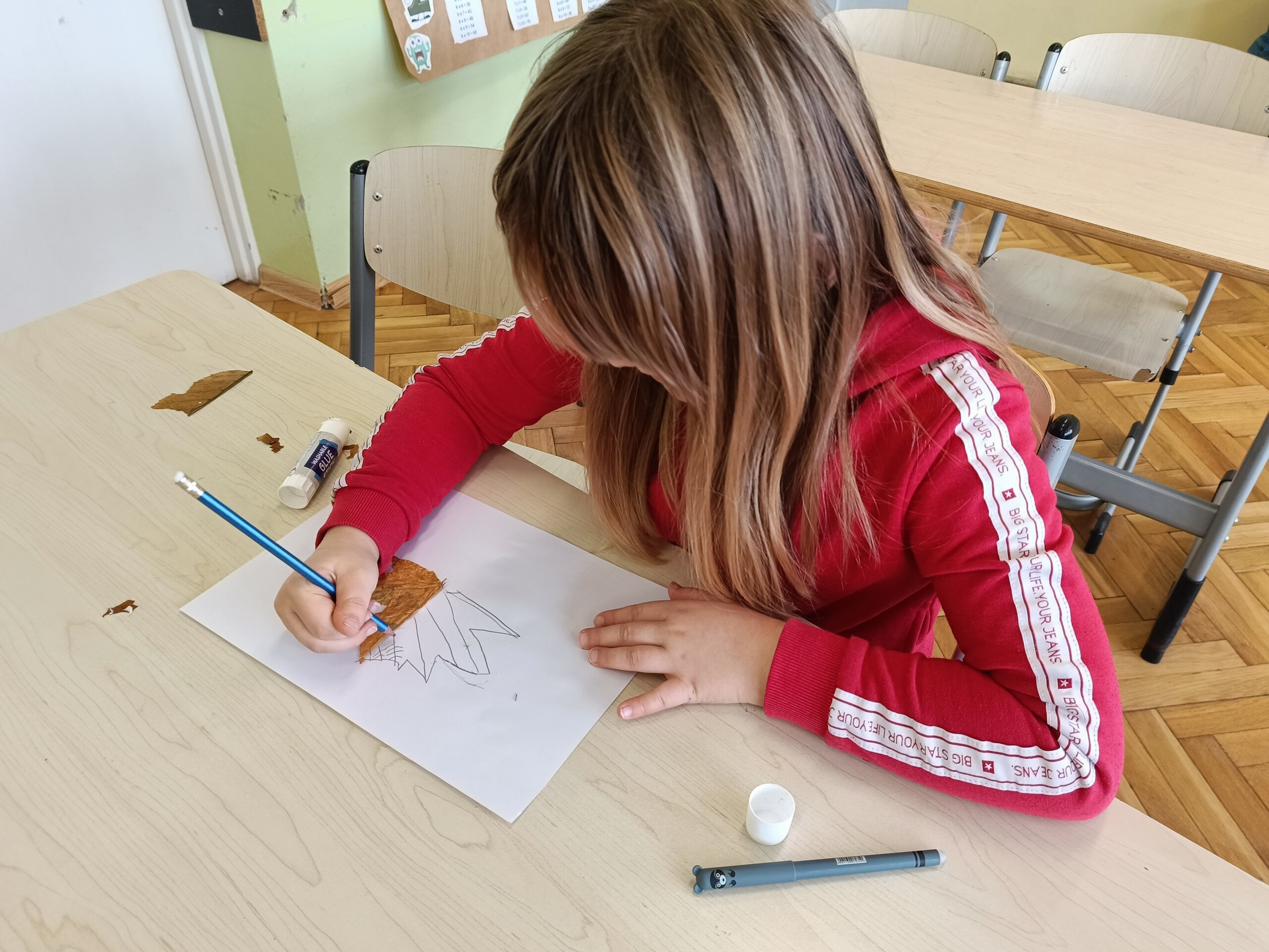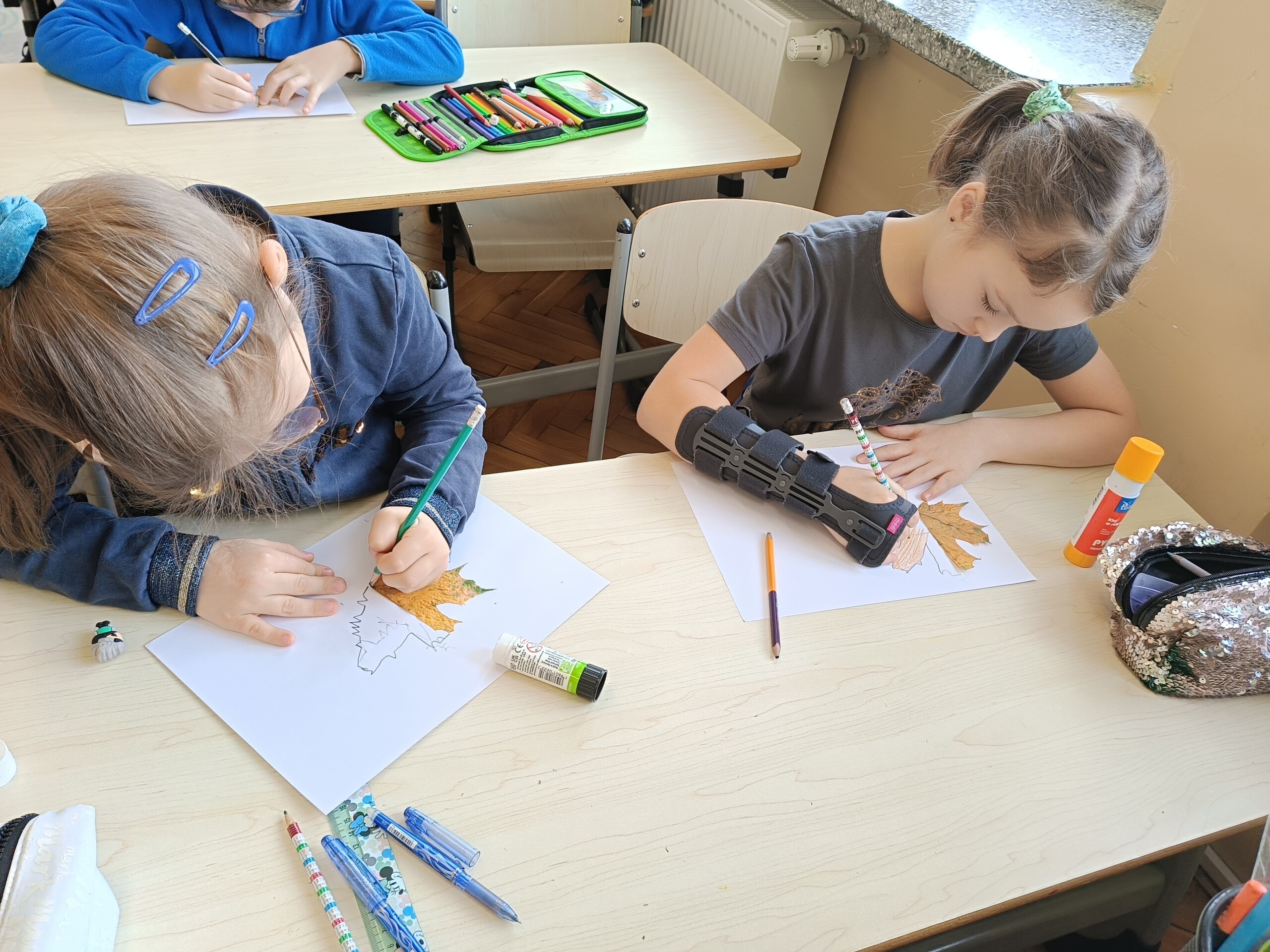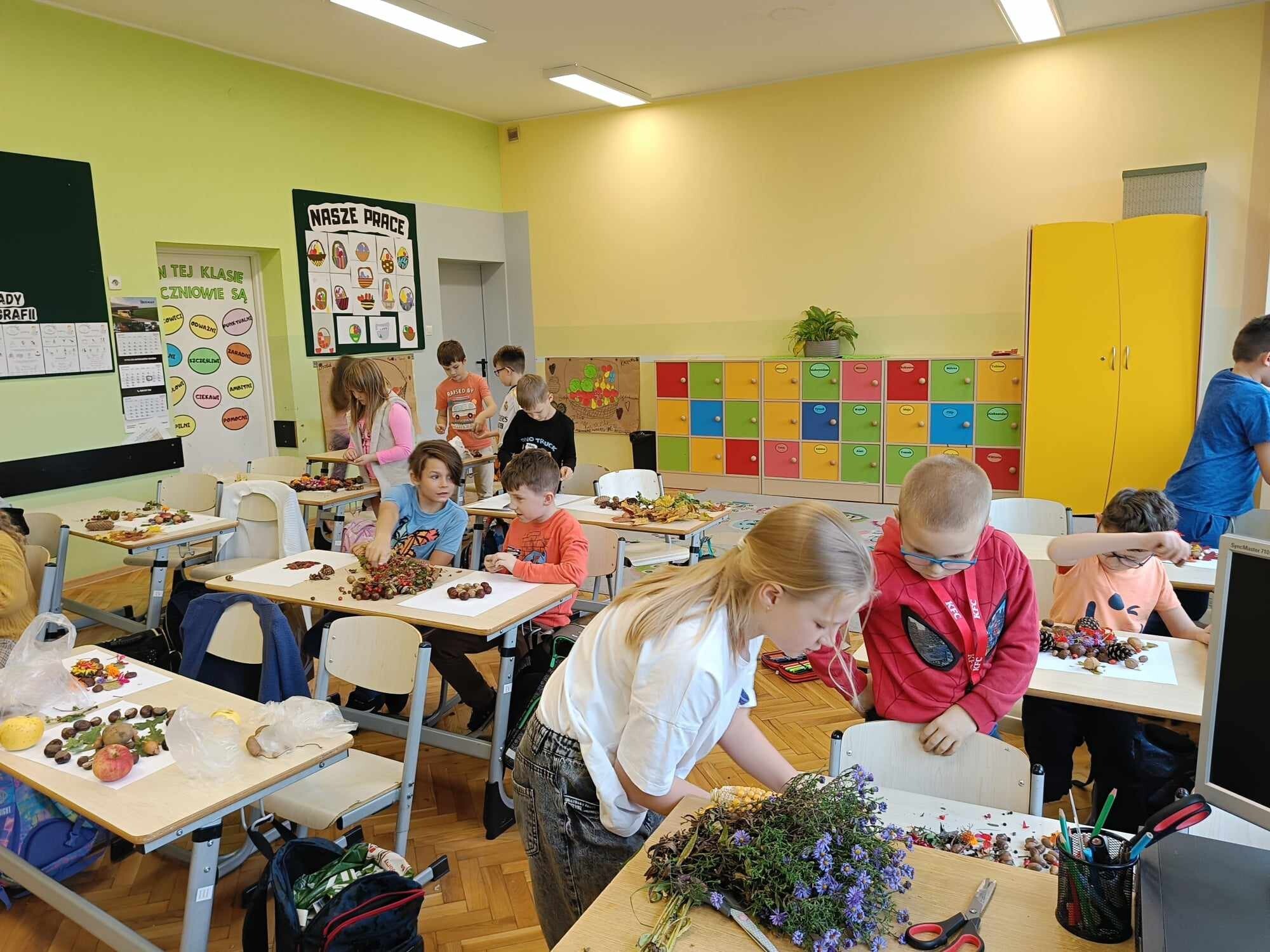 Uczniowie klasy 2 zrealizowali dwa jesienne moduły w ramach projektu „Kreatywna matematyka”. Pierwszy moduł pod hasłem „Matematyka w przyrodzie” zakładał szukanie darów jesieni i stworzenie z nich symetrycznej kompozycji. Idealne stały się mandale tworzone na bazie koła. Drugi moduł to „Matematyka wokół nas”, gdzie celem było rozwijanie spostrzegawczości i logicznego myślenia. Uczniowie dorysowywali brakującą część liścia w oparciu o oś symetrii.