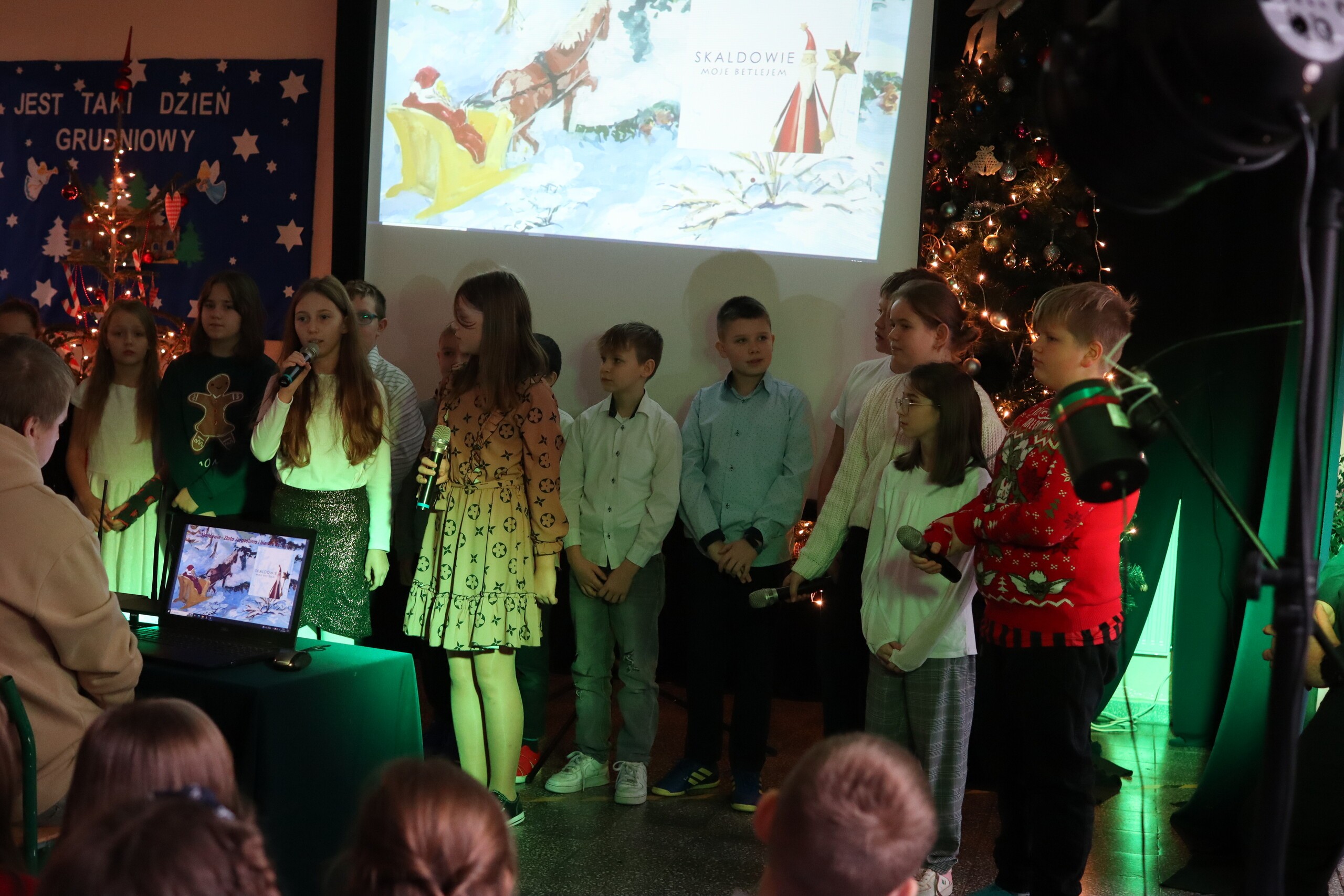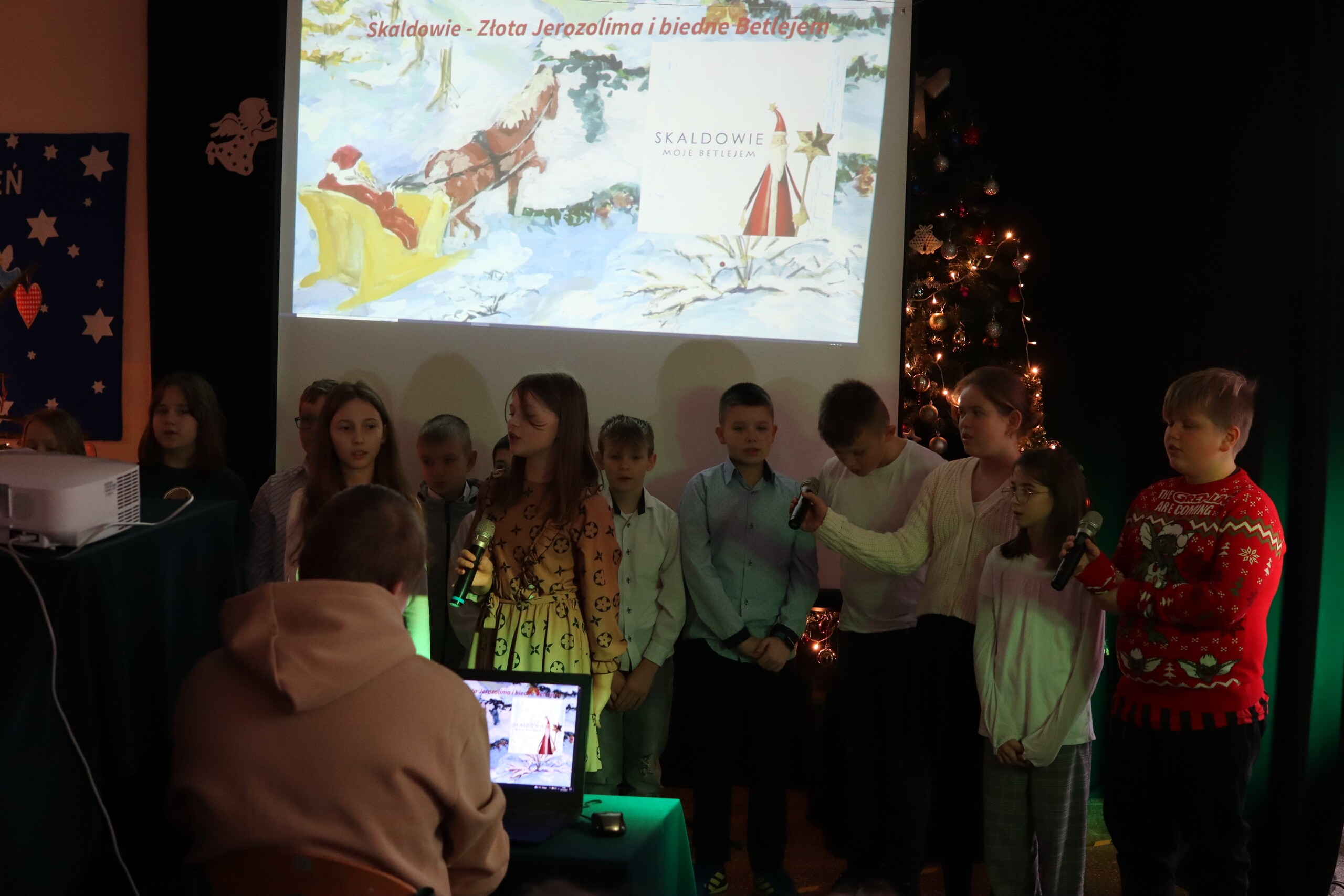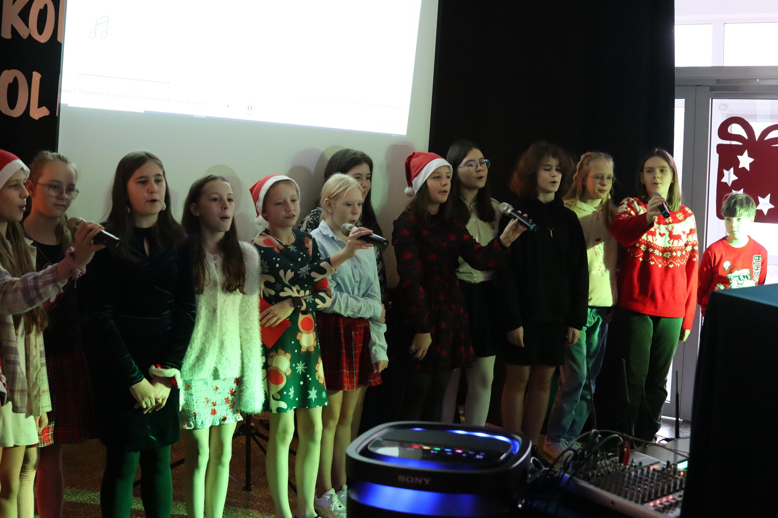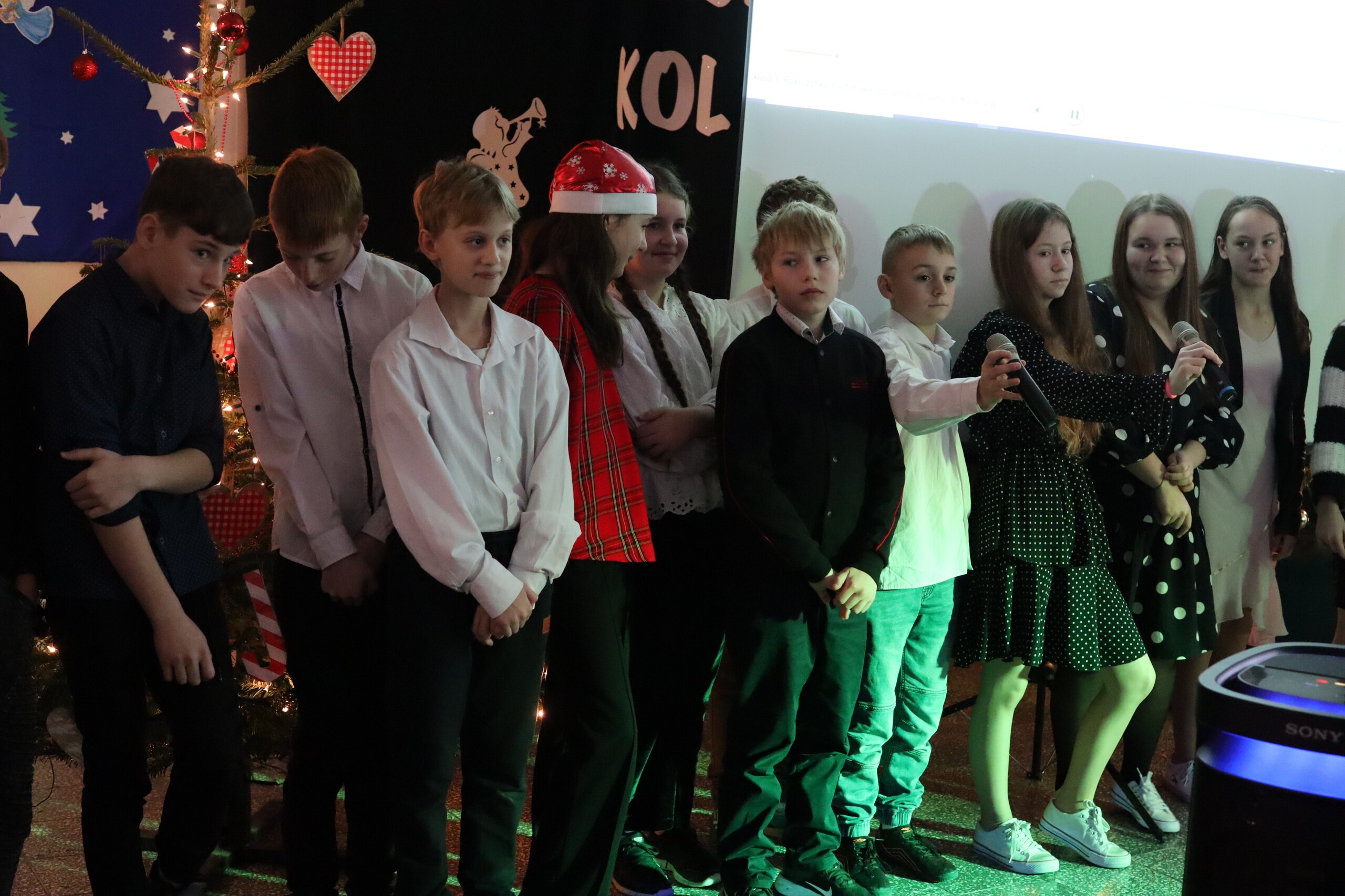 Święta tuż, tuż. Tradycją ostatniego dnia w naszej szkole jest wspólne spotkanie całej społeczności szkolnej. Uroczystość rozpoczęliśmy od wręczenia nagród za konkursy. Odwiedziła nas Pani Magdalena Downar – Zapolska z Gminnego Ośrodka w Nowej Wsi Lęborskiej, która wręczyła nagrody za Gminny Konkurs pt. „Kartka świąteczna”. Konkurs cieszył się w naszej szkole dużym powodzeniem, ponad 30 uczniów wzięło w nim udział. Następnie wręczone zostały nagrody za Konkurs na „Najpiękniejszy list do Św. Mikołaja”. Przyszła pora na życzenia świąteczne. Piękne życzenia wszystkim zgromadzonym złożyli Przewodnicząca Samorządu Uczniowskiego Wiktoria Kusznierewicz, Przewodnicząca Rady Rodziców Pani Emilia Stanuch i Pan Dyrektor Krzysztof Wojtysiak. Następnie każda klasa zaprezentowała przygotowaną wcześniej kolędę lub pastorałkę, do występów dołączyli wszyscy nauczyciele i chętni uczniowie. W tym świątecznym nastroju uczniowie wraz z wychowawcami udali się na Wigilie klasowe.