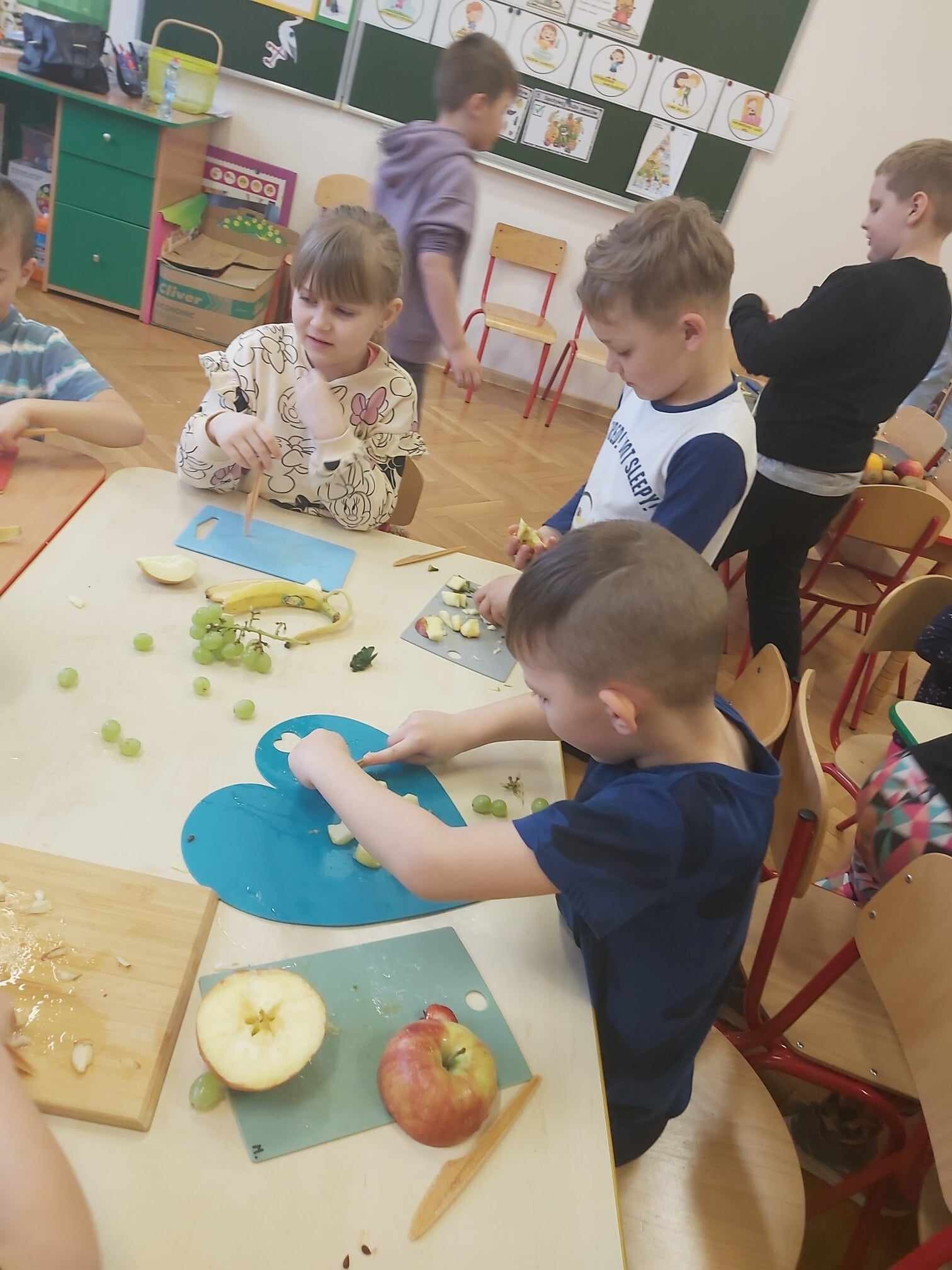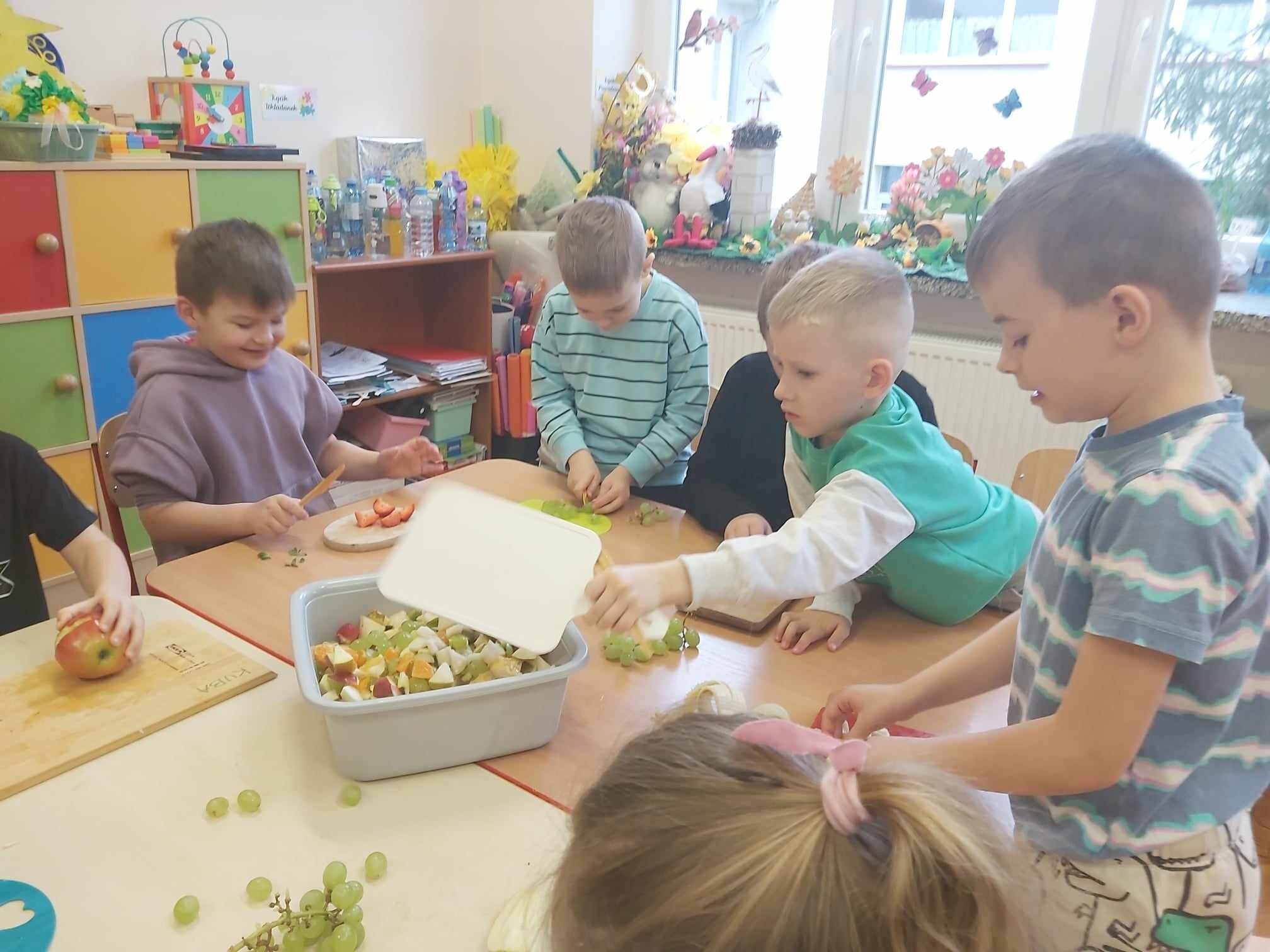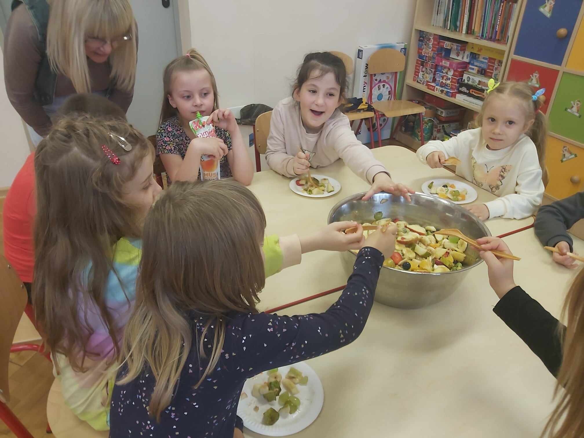Jeżyki wzięły udział w programie ekologiczno - edukacyjnym pt. „Skąd się biorą produkty ekologiczne?”. Program jest bardzo wartościowy, ponieważ właśnie okres przedszkolny jest etapem intensywnego rozwoju dziecka, a przy tym kształtowania jego postaw, w tym zdrowego stylu życia. Podczas realizacji projektu dzieci dowiedziały się, jakie produkty spożywcze są najlepsze dla naszego zdrowia, jak dbać o higienę i jak ważny w życiu człowieka jest ruch i aktywność fizyczna. Dzieci poznały znaczek produktów ekologicznych, obejrzały prezentację multimedialną o pochodzeniu ekologicznej żywności. Poznały piramidę zdrowego żywienia, którą następnie same wykonały. W ramach programu Jeżyki przyrządziły pyszną, kolorową i pełną cennych witamin sałatkę owocową, którą wspólnie skonsumowały.