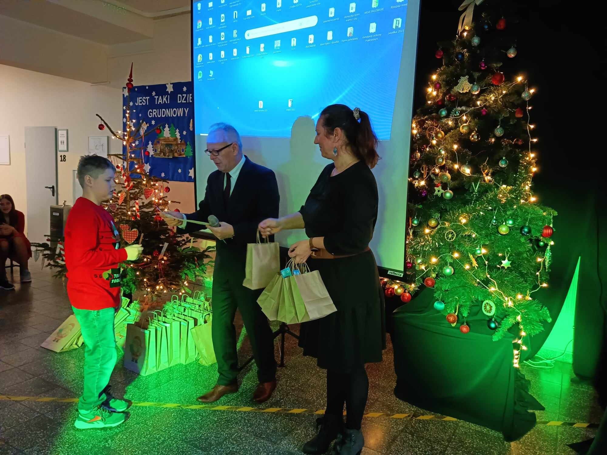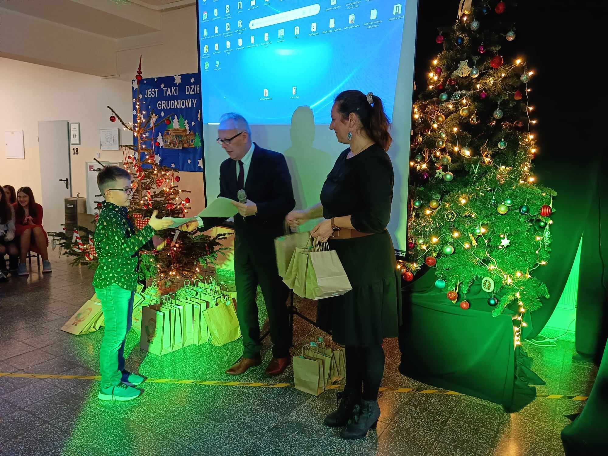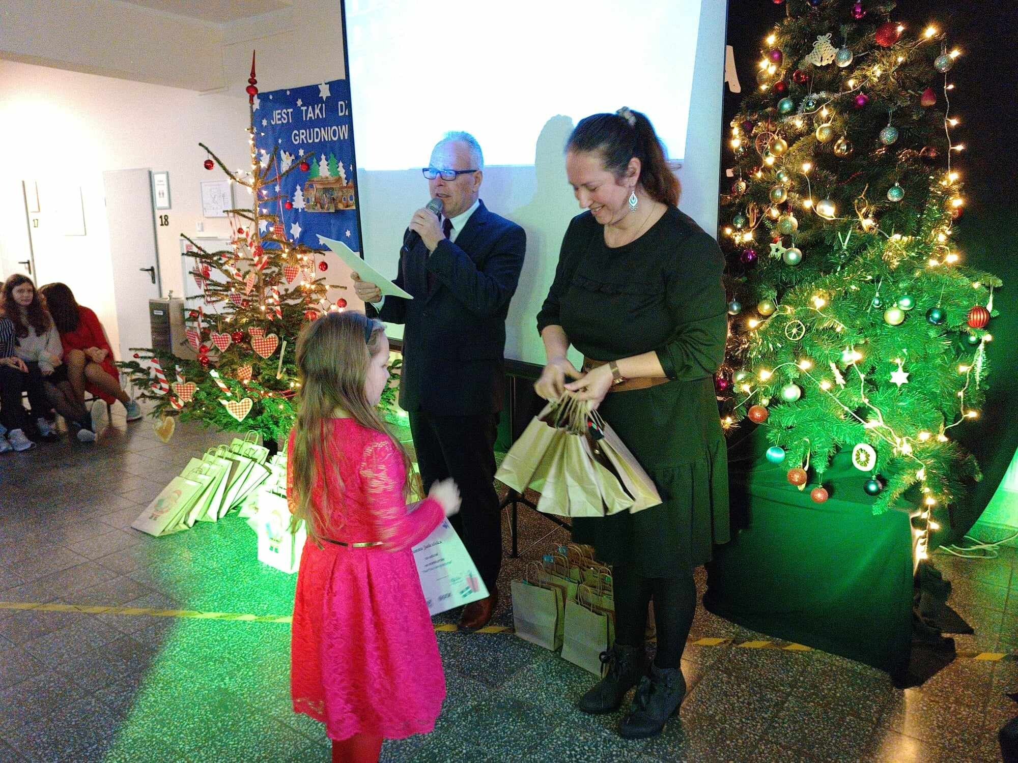 Tuż przed świętami uczniowie naszej szkoły wzięli udział w corocznym konkursie plastycznym pt.: „Kartka lub stroik świąteczny” zorganizowanym przez Gminny Ośrodek Kultury w Nowej Wsi Lęborskiej. Konkurs cieszył się ogromnym powodzeniem – wpłynęło łącznie 120 prac z 7 szkół z gminy Nowa Wieś Lęborska i Lęborka. W ostatnim dniu szkoły przez świętami odwiedziła nas pani Magdalena Downar – Zapolska z Gminnego Ośrodka Kultury i wraz z dyrektorem naszej szkoły podczas świątecznego apelu wręczyła uczniom dyplomy i nagrody za udział w konkursie.