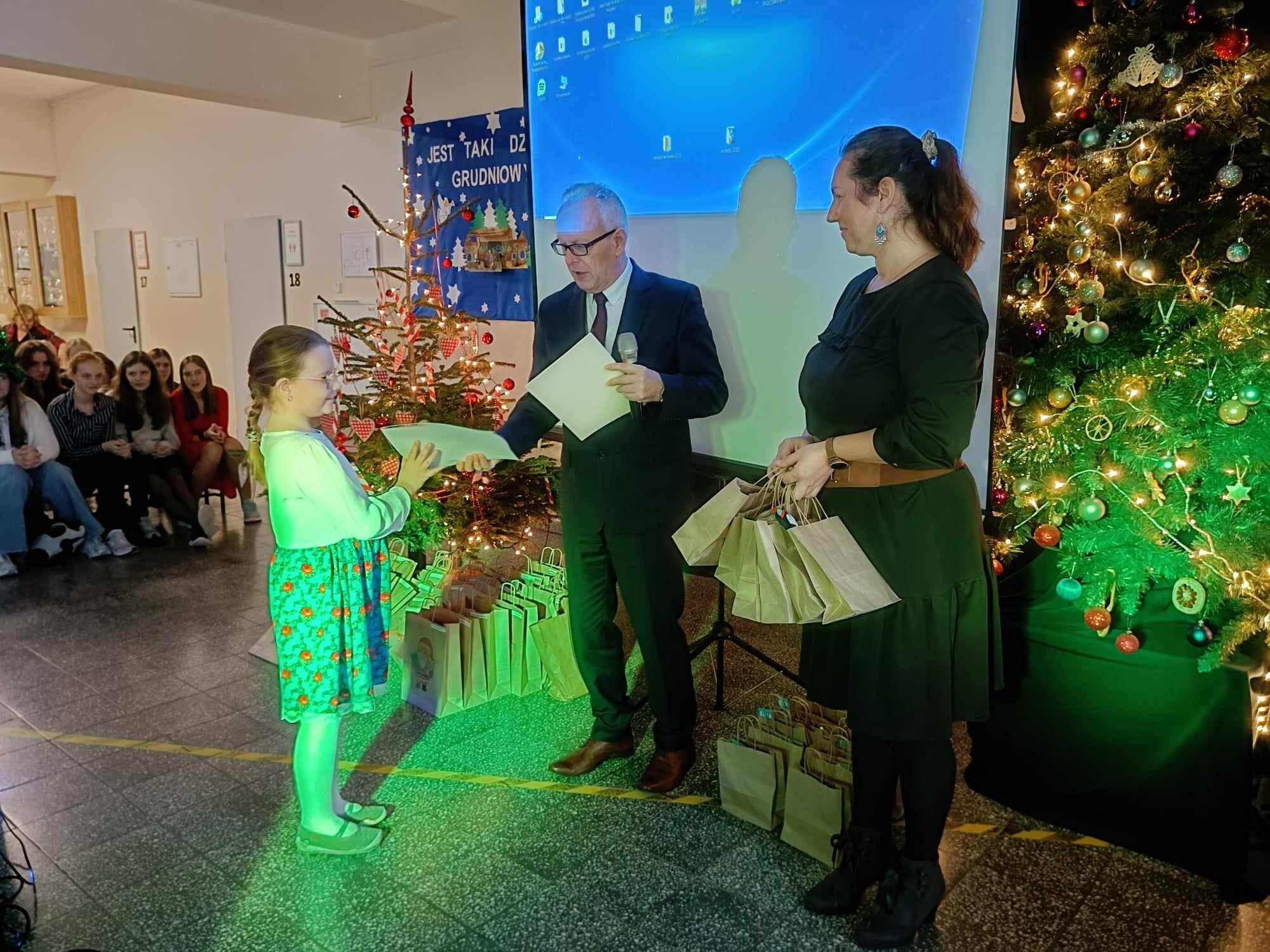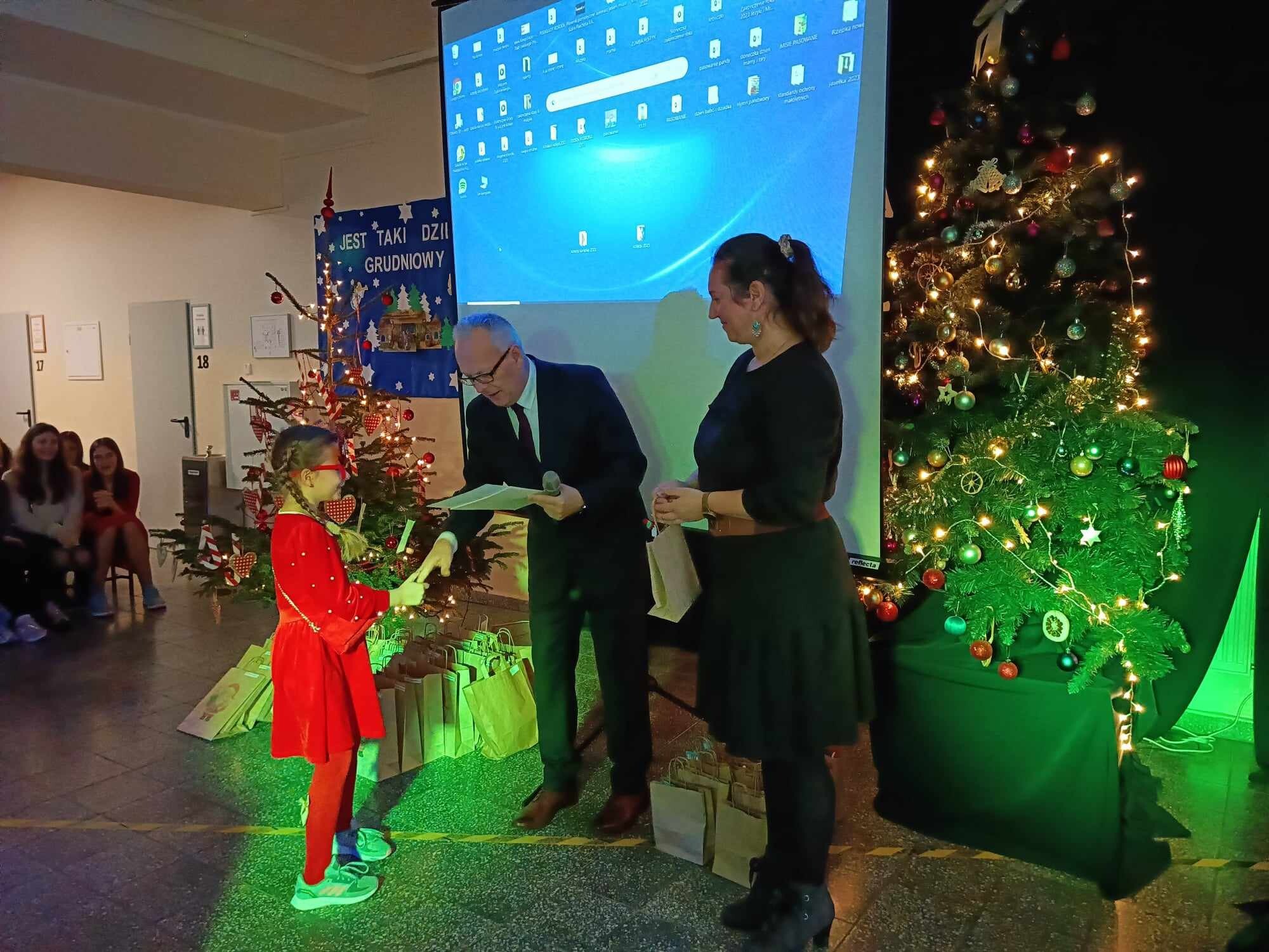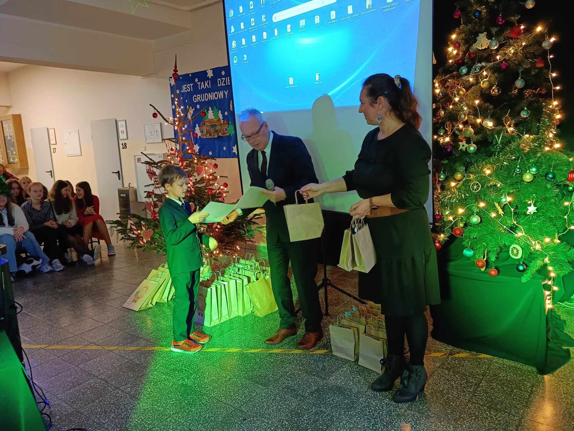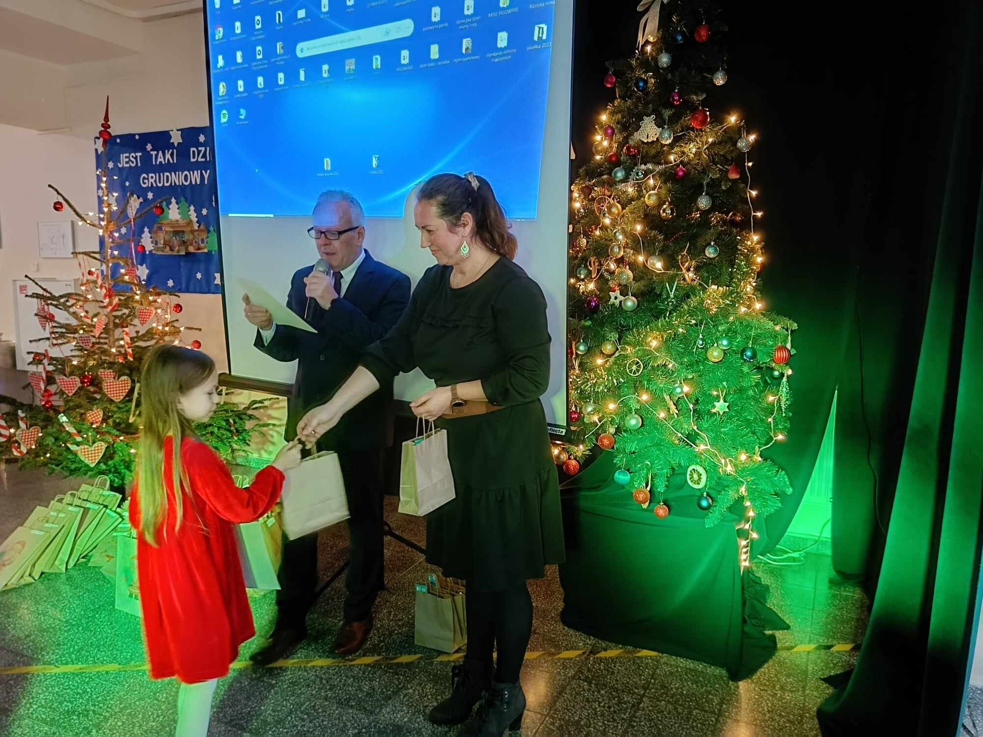 Tuż przed świętami uczniowie naszej szkoły wzięli udział w corocznym konkursie plastycznym pt.: „Kartka lub stroik świąteczny” zorganizowanym przez Gminny Ośrodek Kultury w Nowej Wsi Lęborskiej. Konkurs cieszył się ogromnym powodzeniem – wpłynęło łącznie 120 prac z 7 szkół z gminy Nowa Wieś Lęborska i Lęborka. W ostatnim dniu szkoły przez świętami odwiedziła nas pani Magdalena Downar – Zapolska z Gminnego Ośrodka Kultury i wraz z dyrektorem naszej szkoły podczas świątecznego apelu wręczyła uczniom dyplomy i nagrody za udział w konkursie.